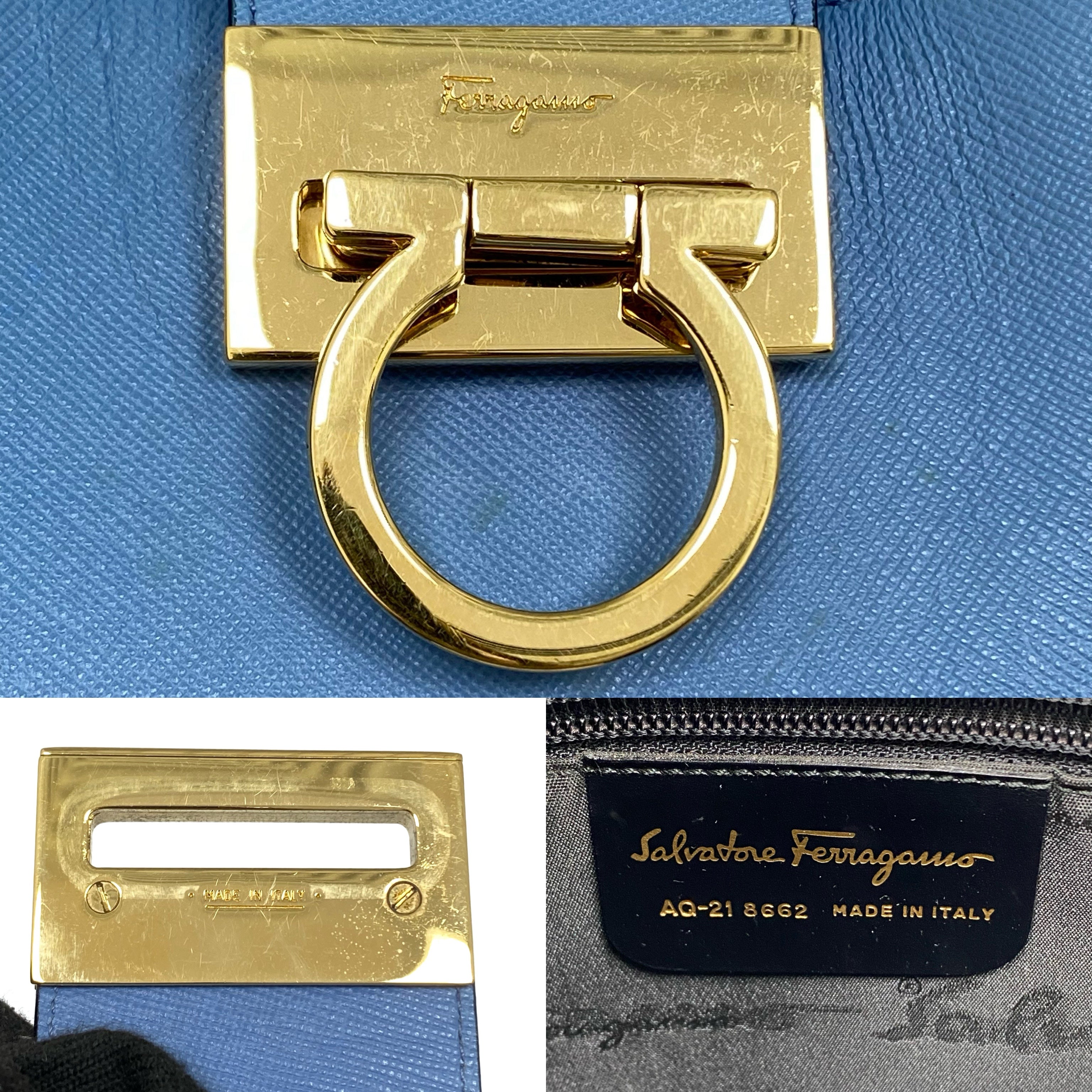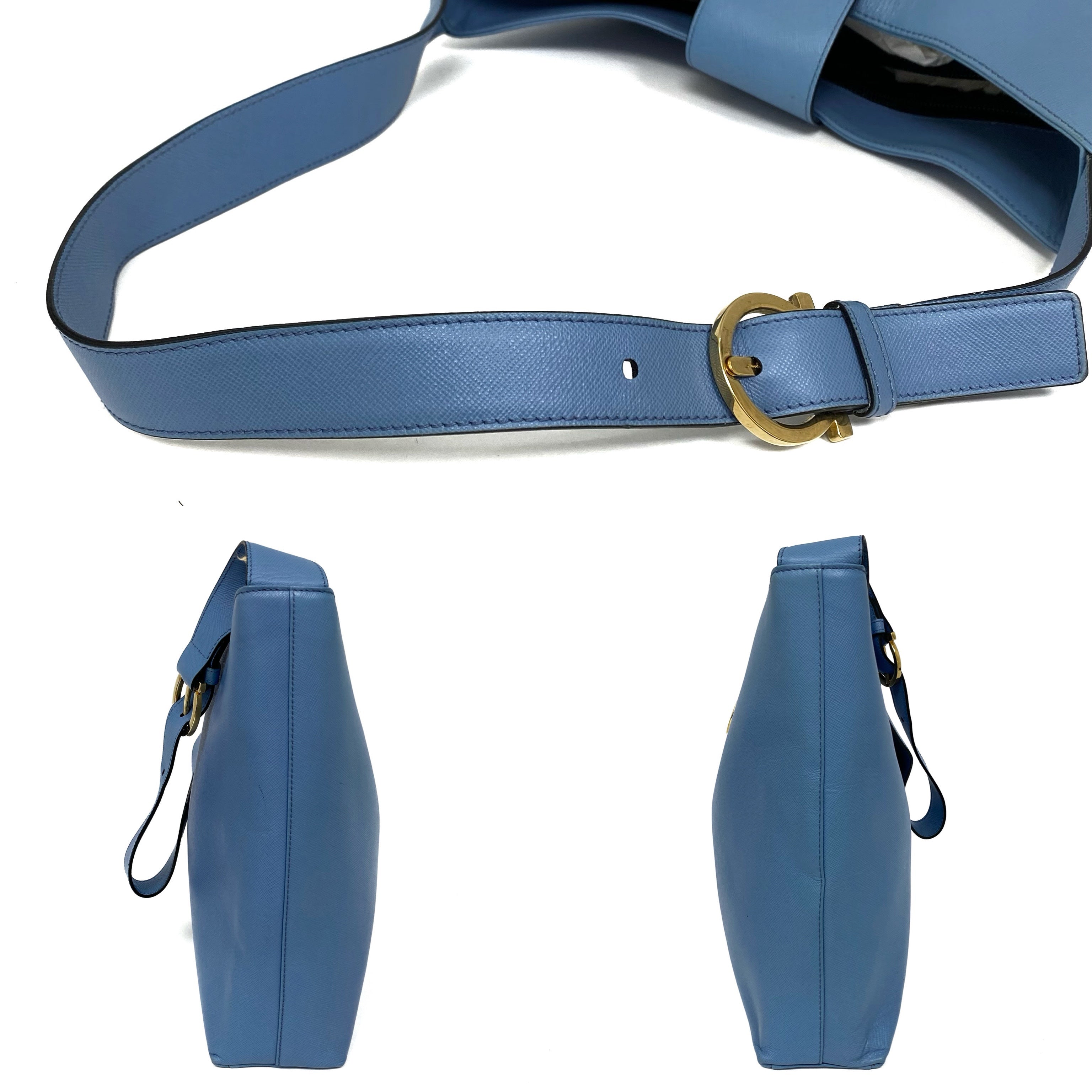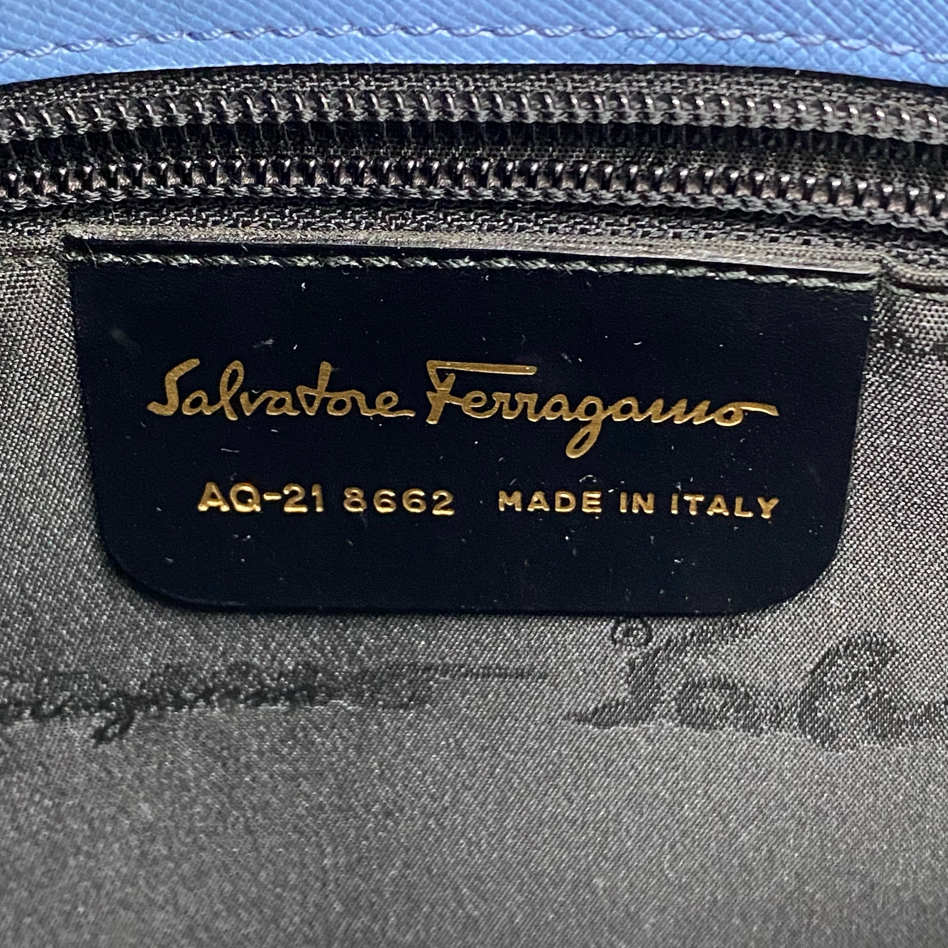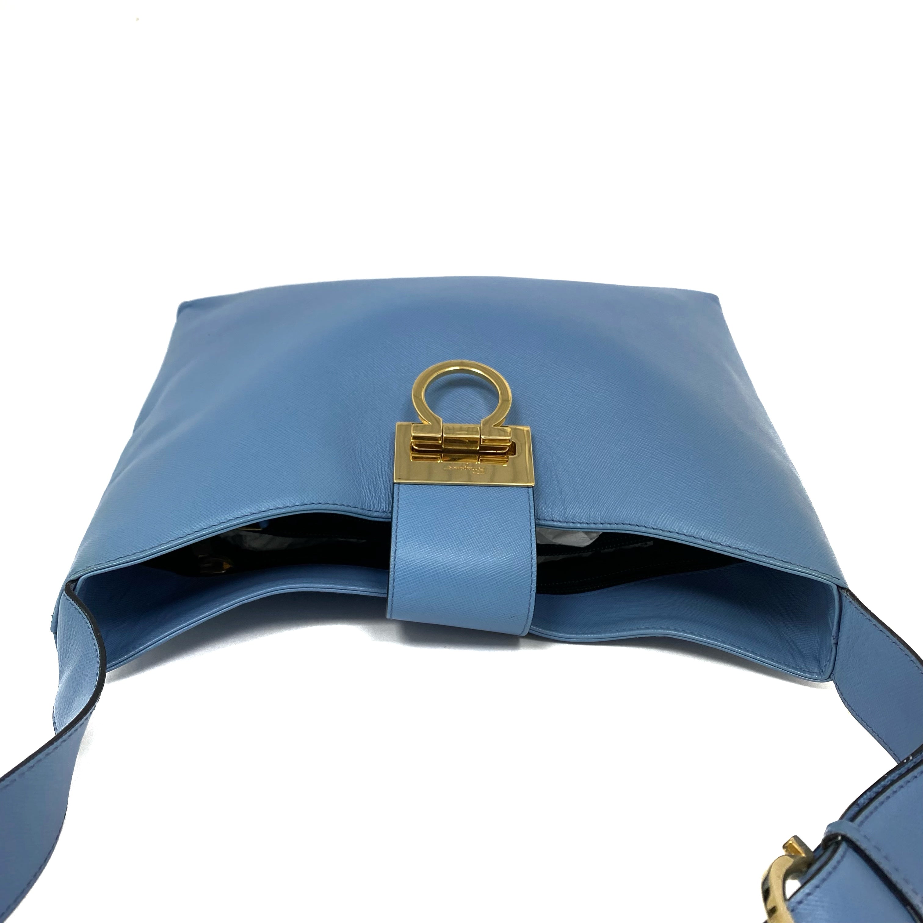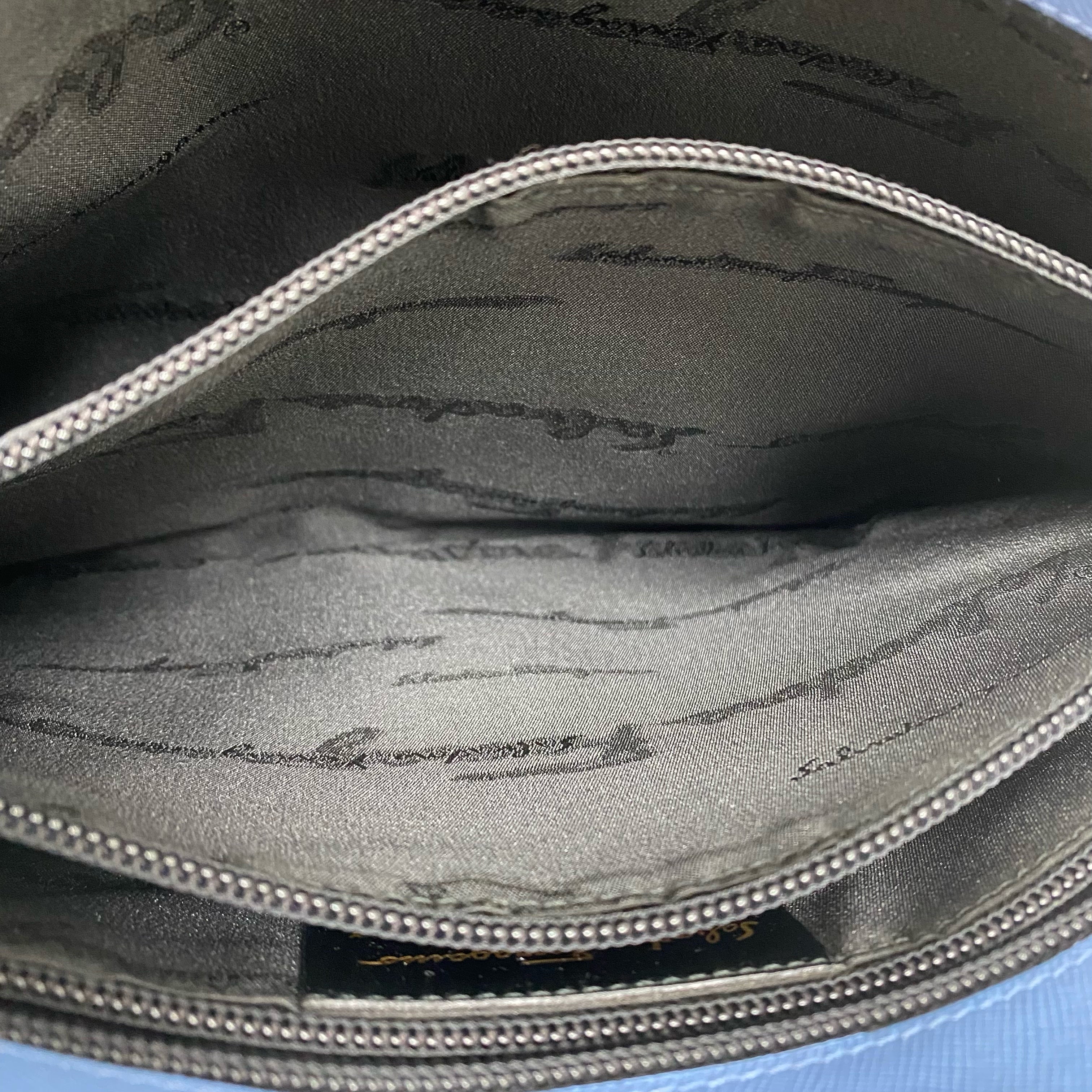☆Salvatore Ferragamo 菲拉格慕 Light Blue Saffiano Leather Shoulder Bag 淺藍色十字壓紋皮革肩背袋 -257021361