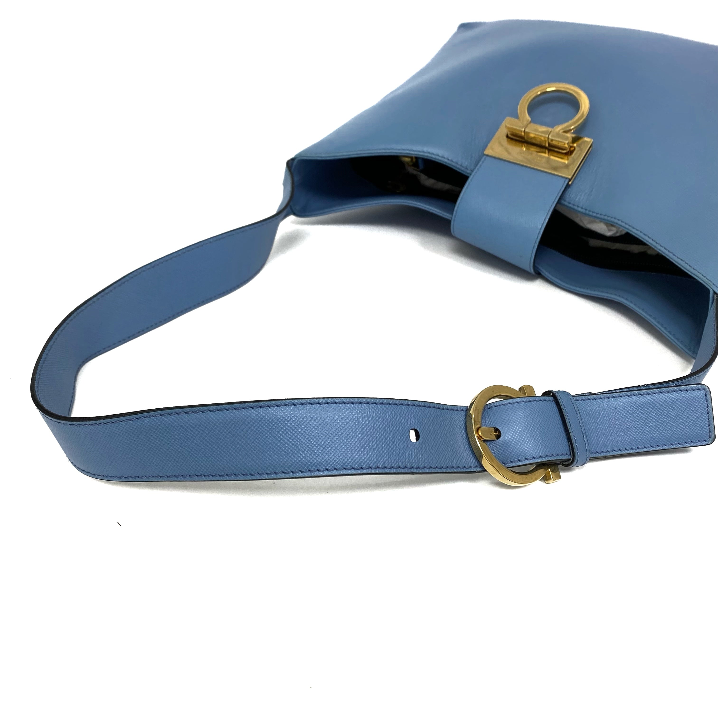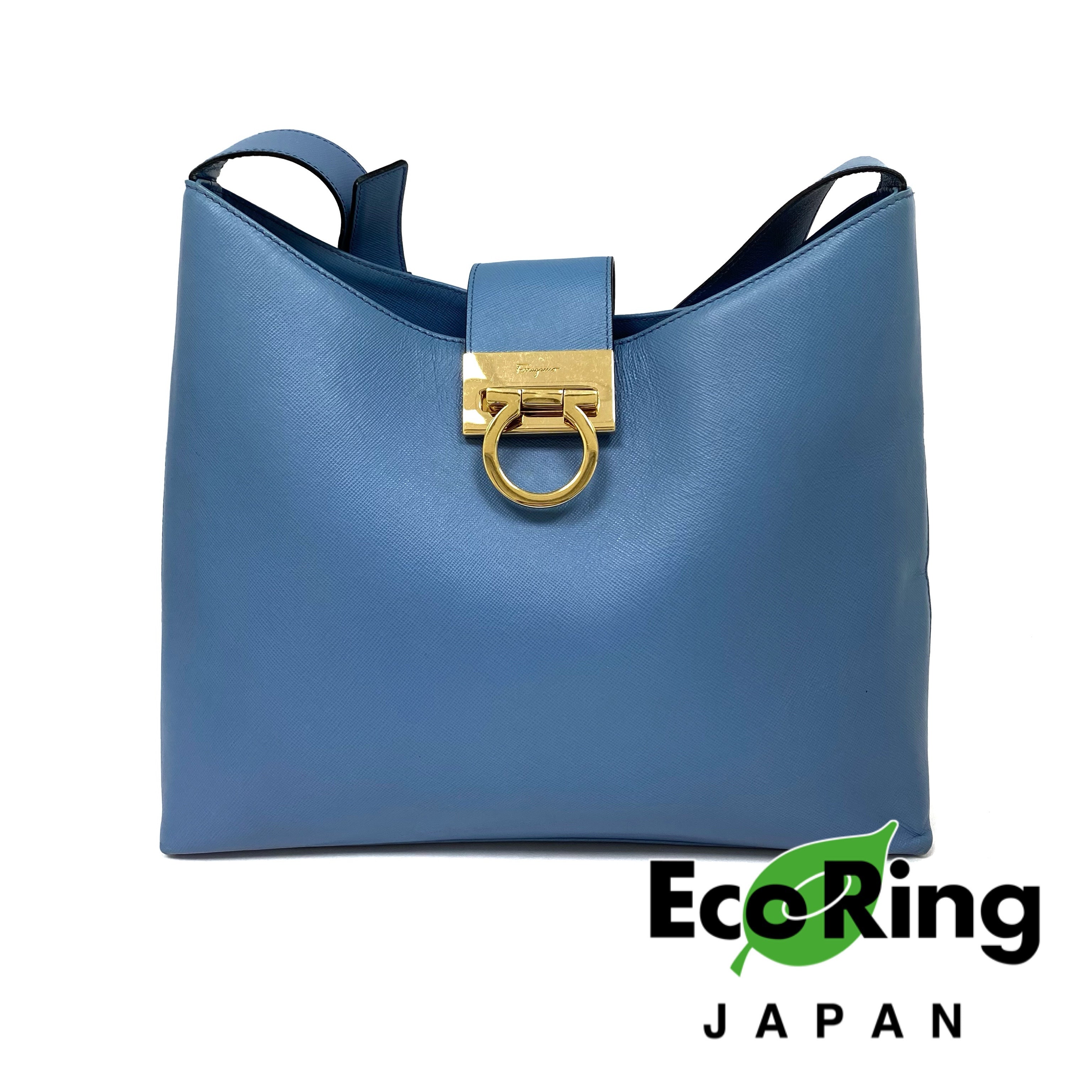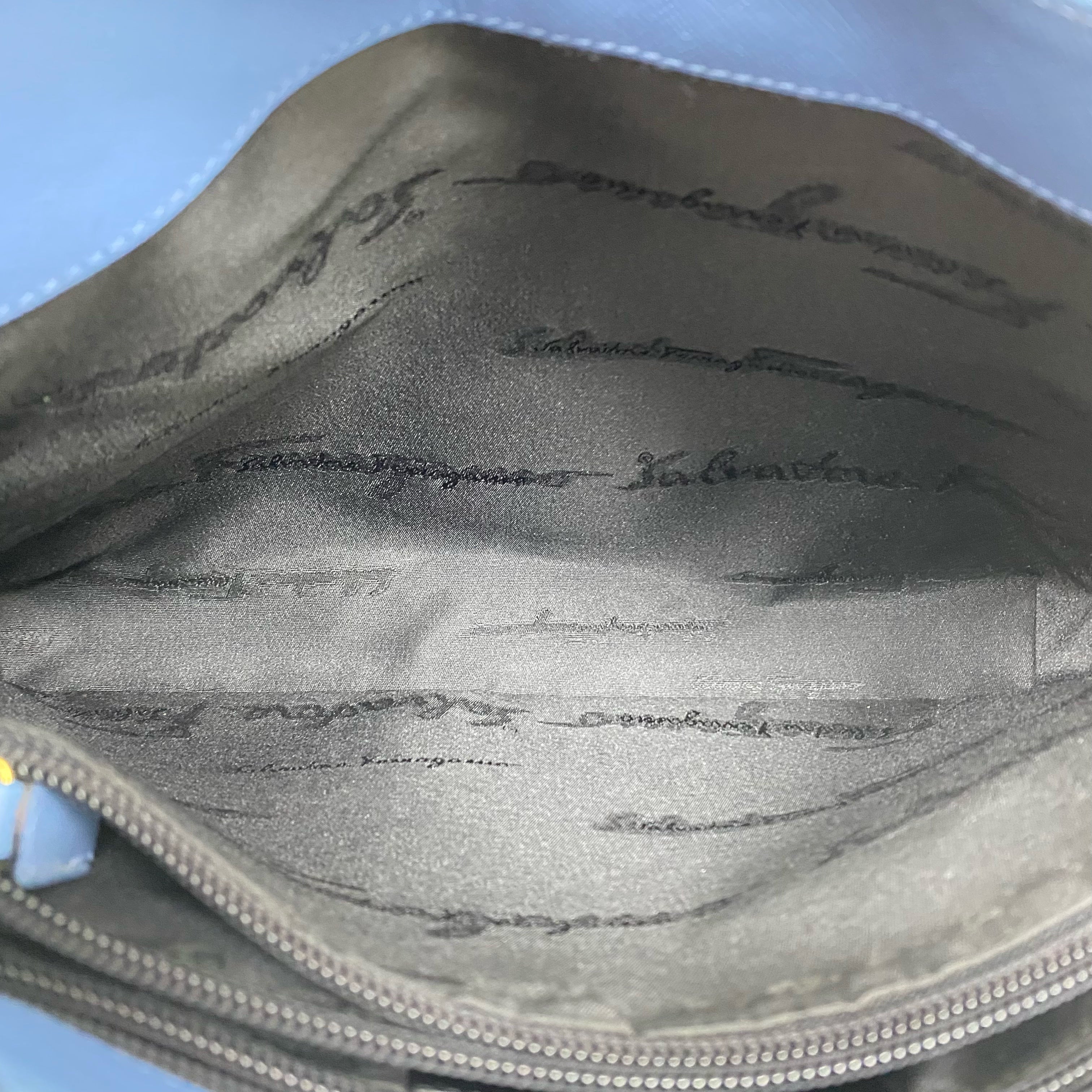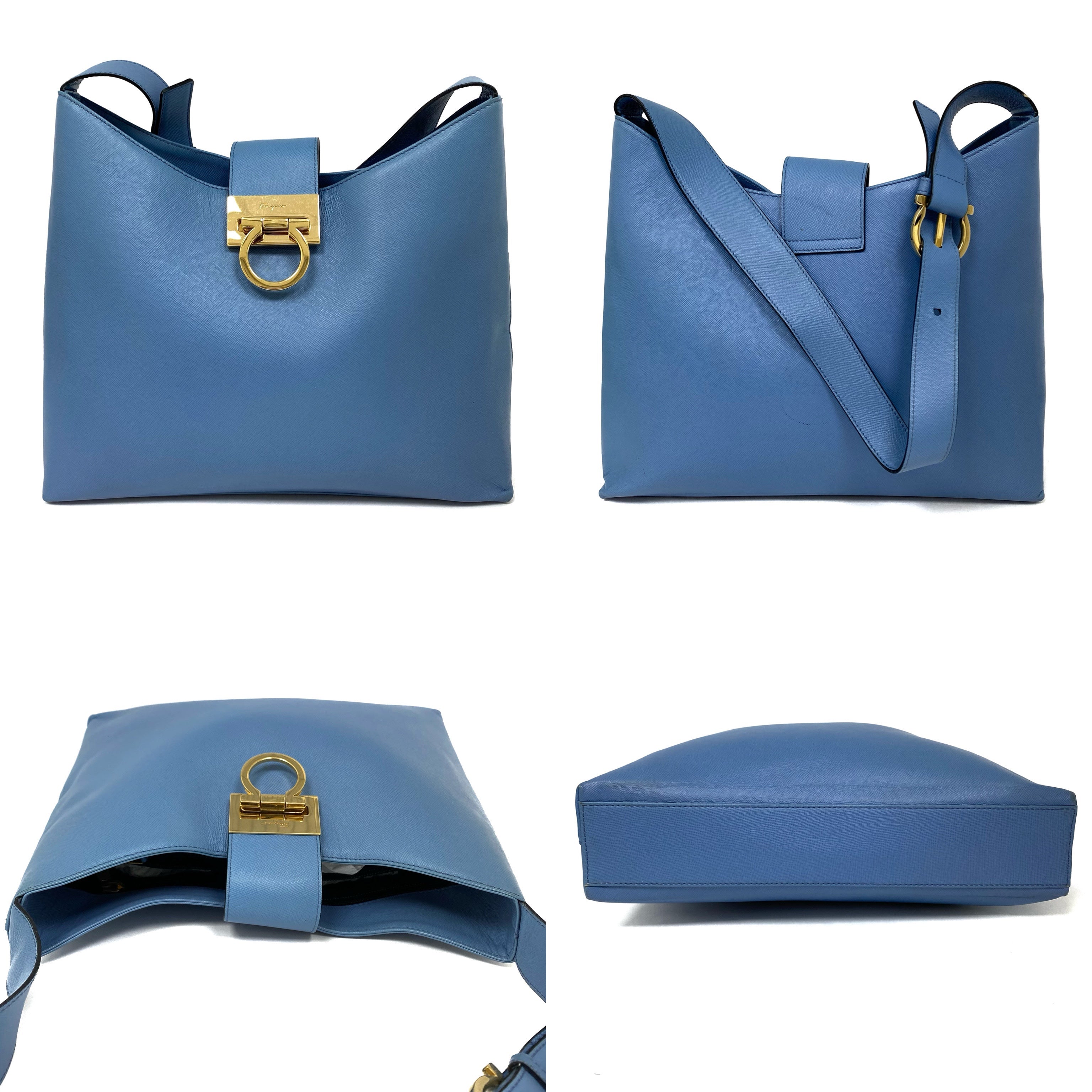 ☆Salvatore Ferragamo 菲拉格慕 Light Blue Saffiano Leather Shoulder Bag 淺藍色十字壓紋皮革肩背袋 -257021361