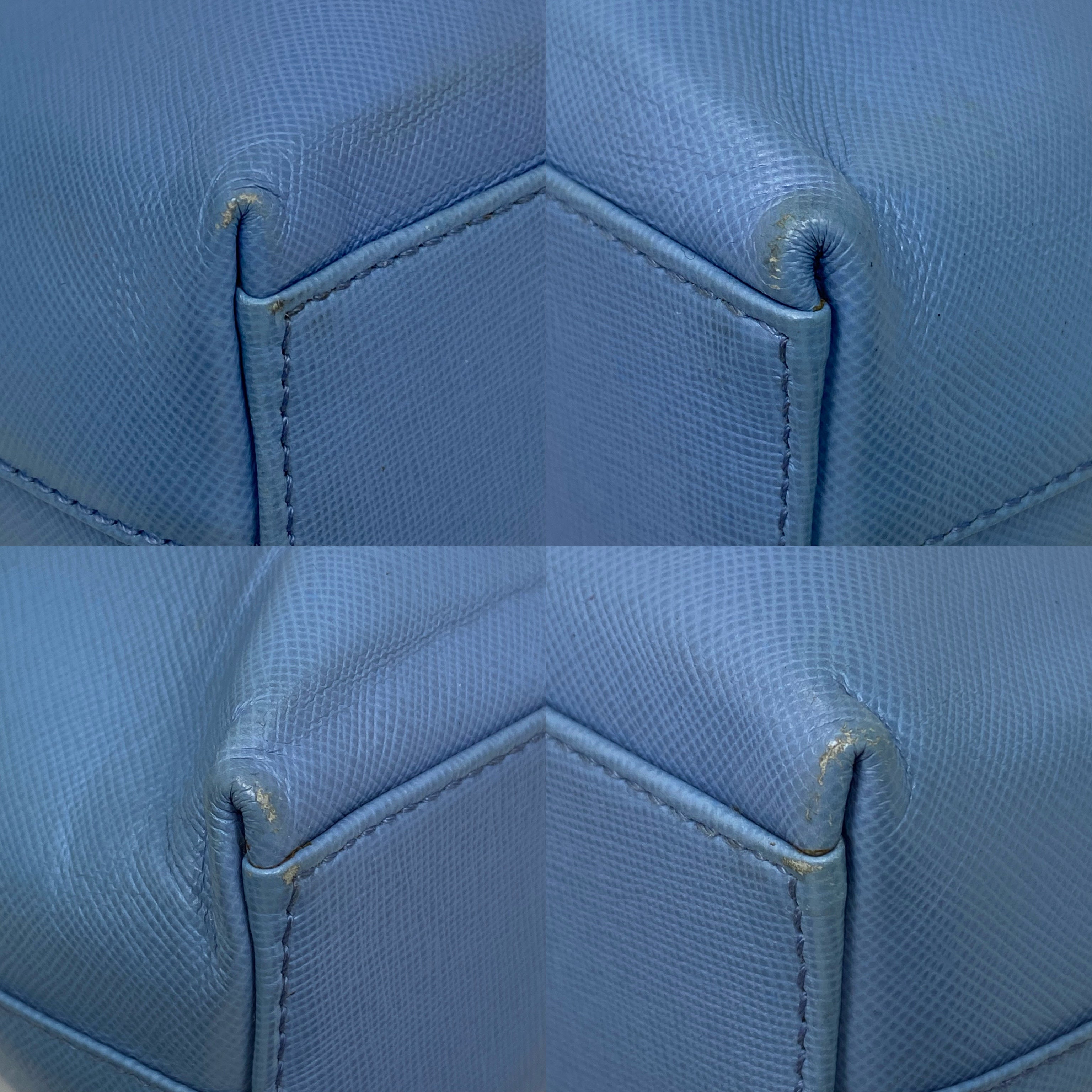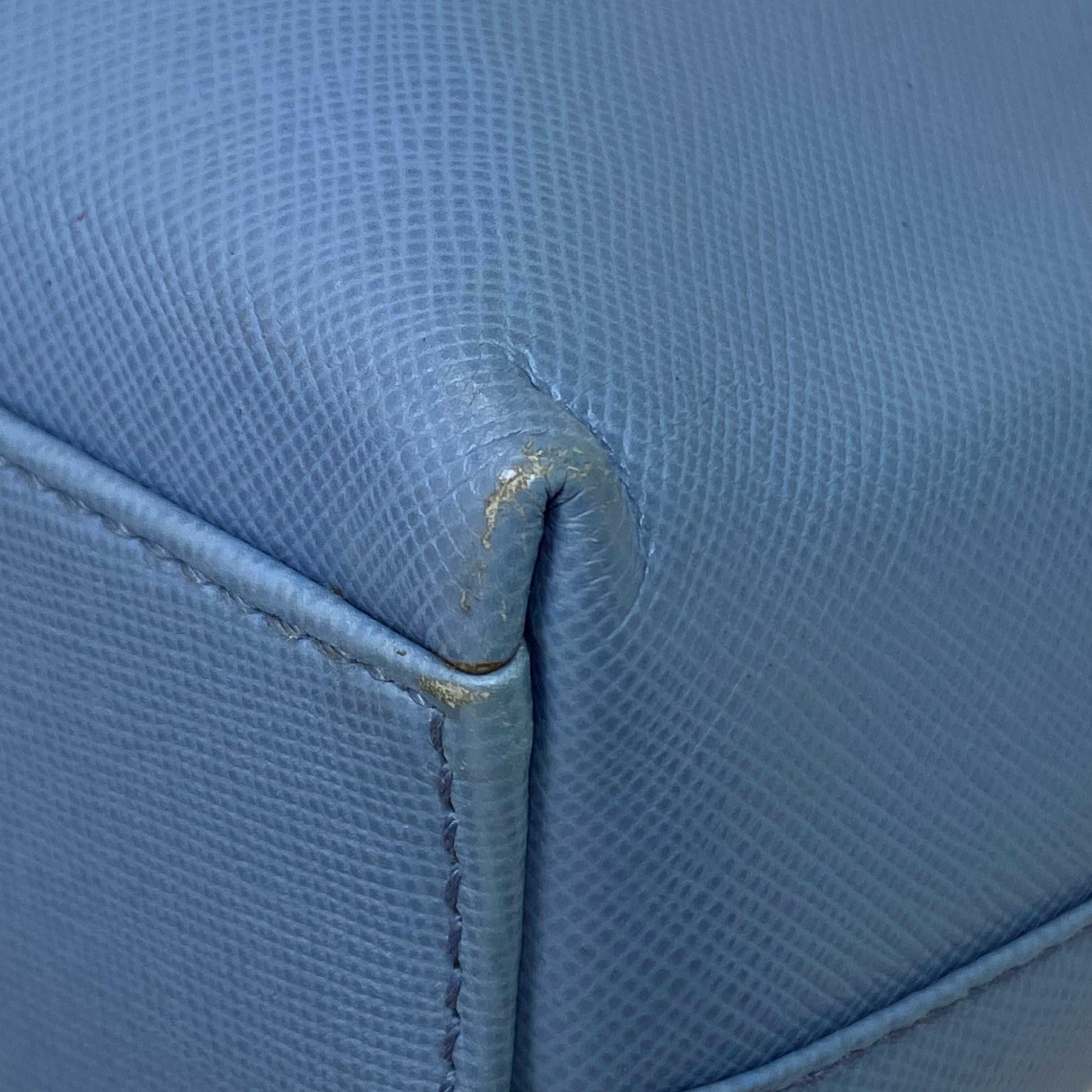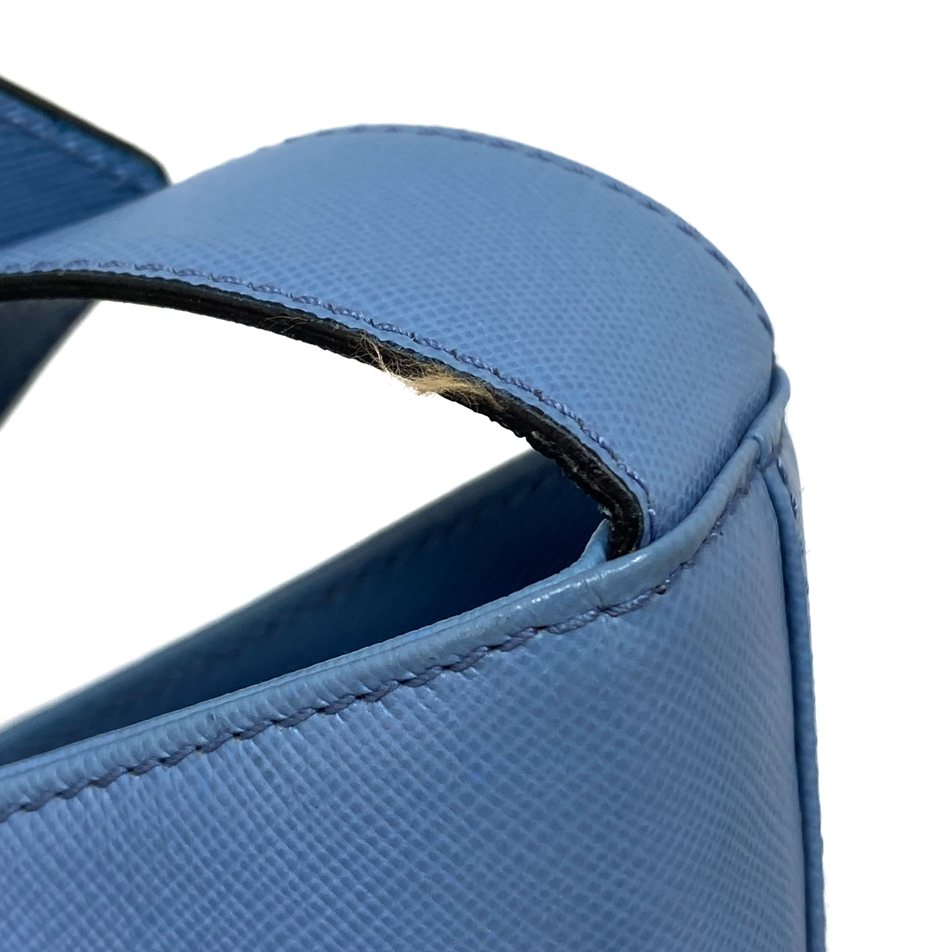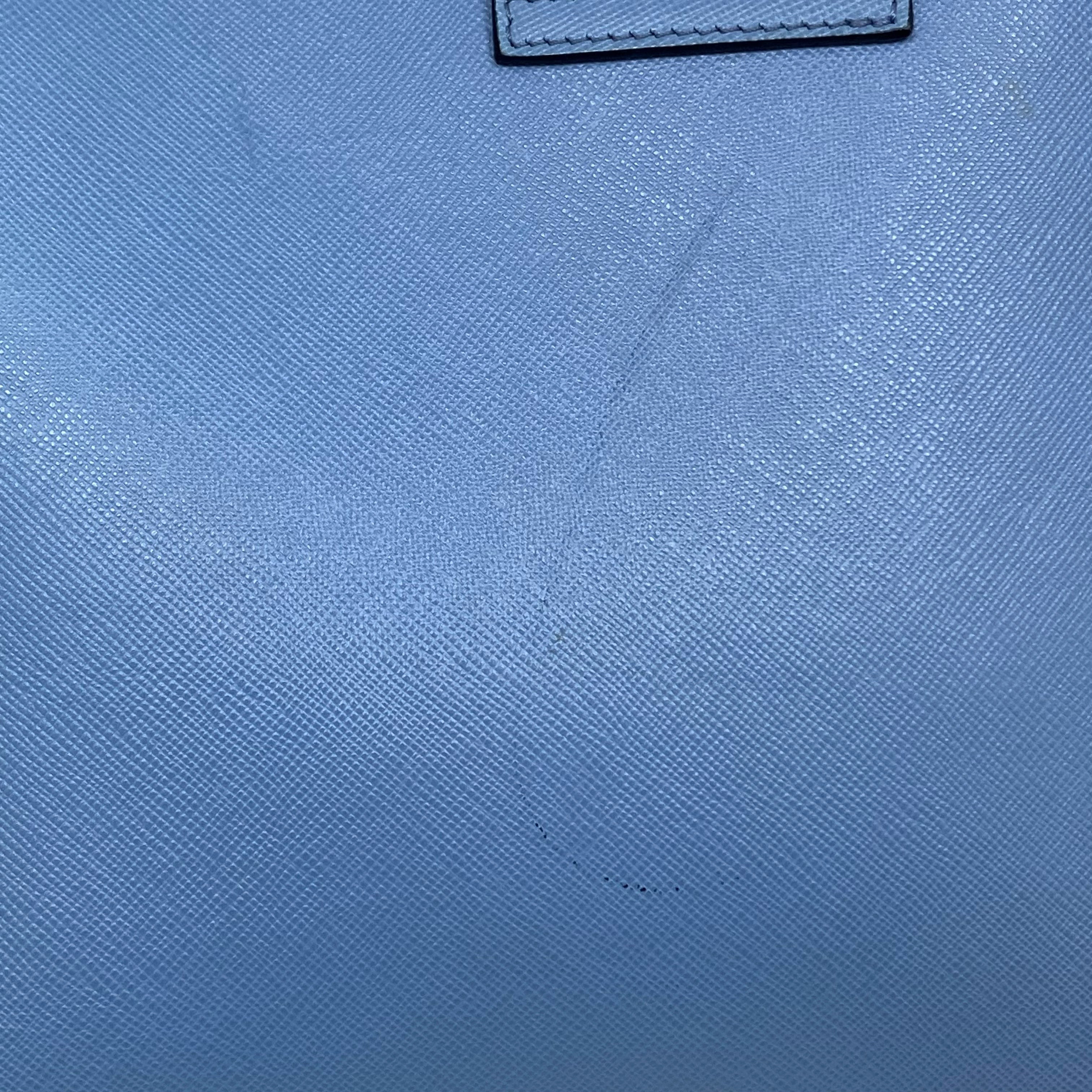 淺藍色十字壓紋皮革肩背袋 Light Blue Saffiano Leather Shoulder Bag |