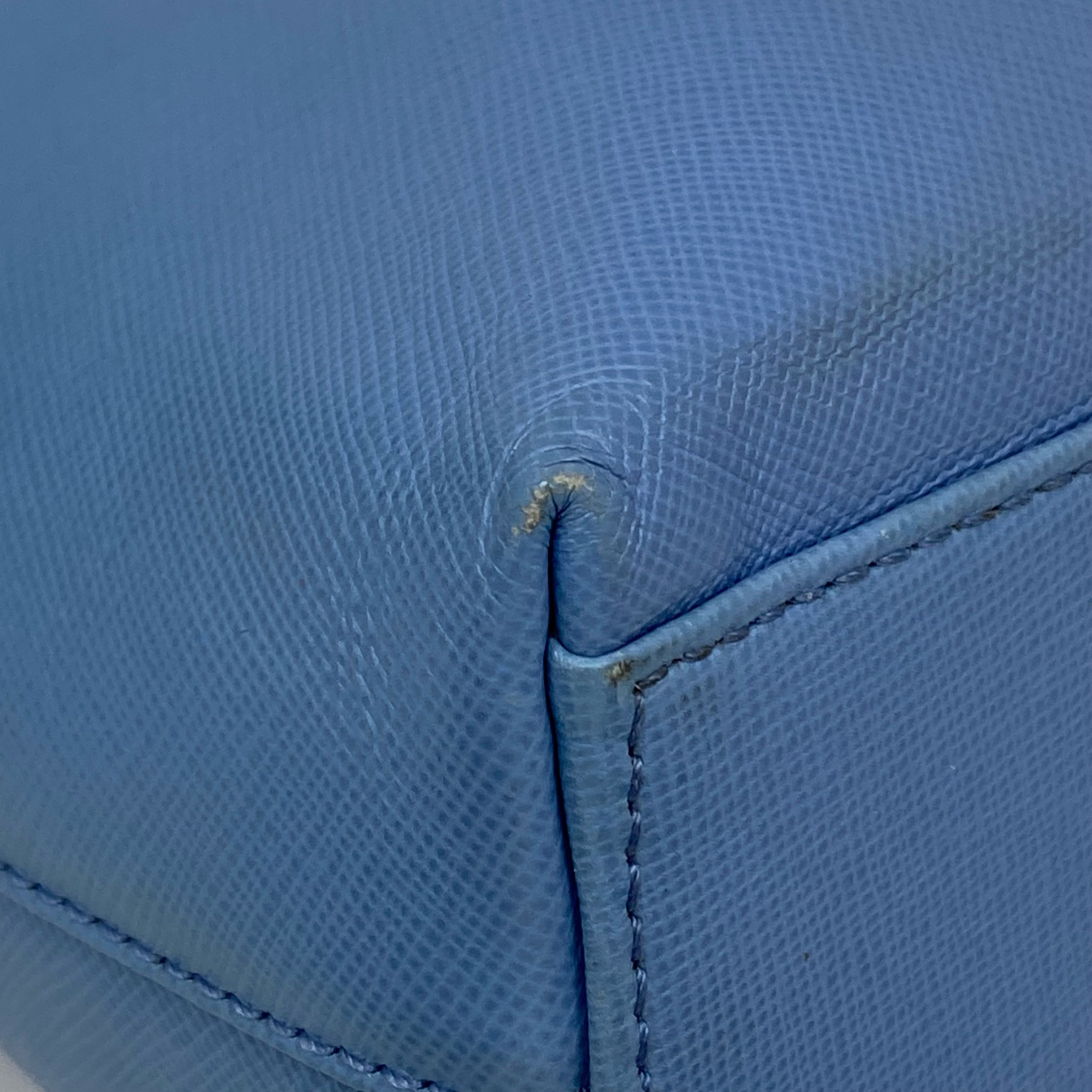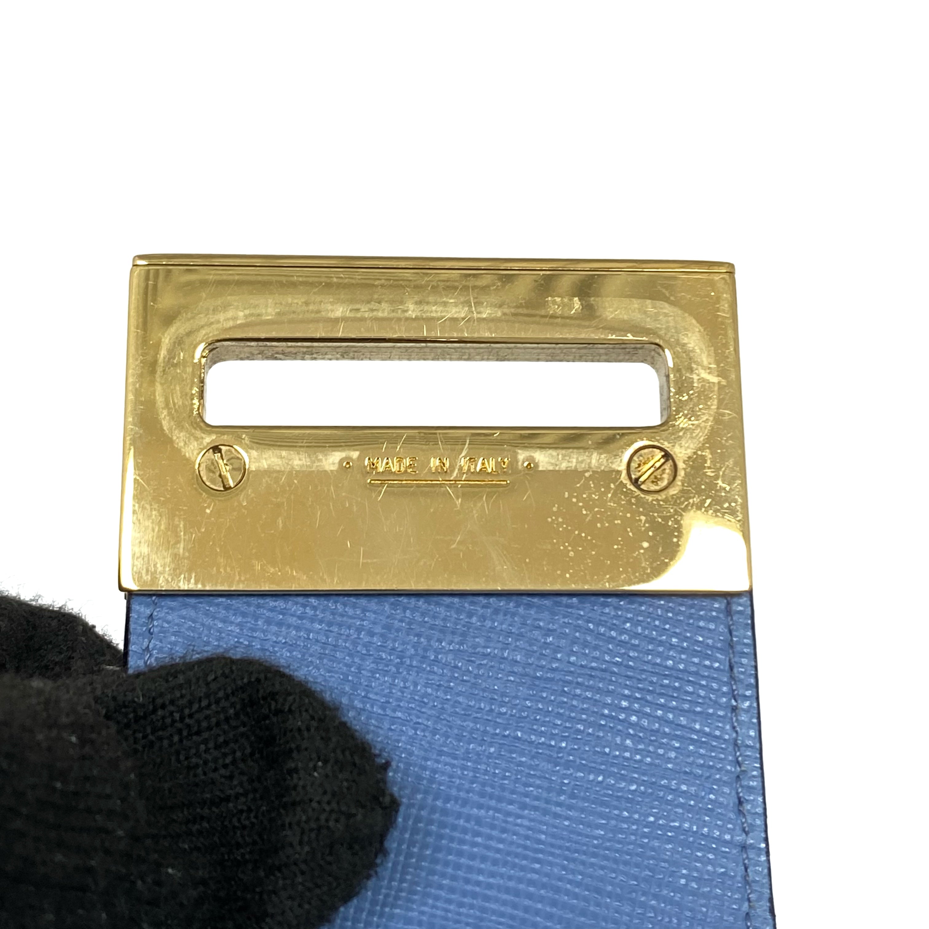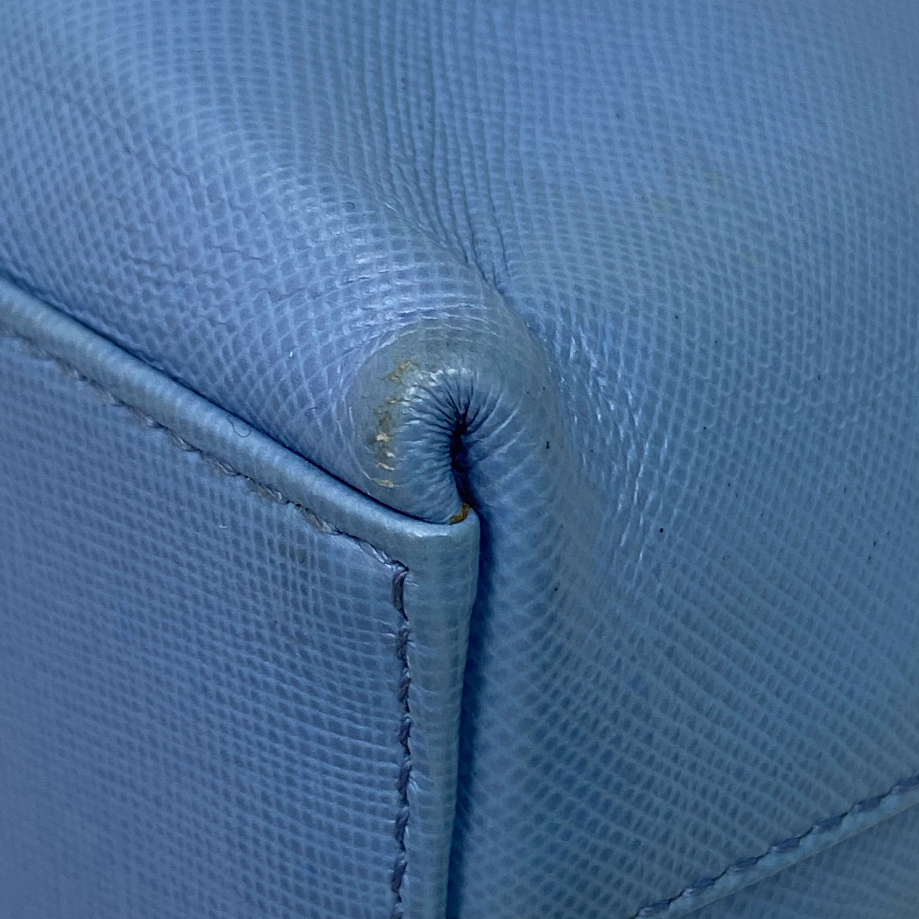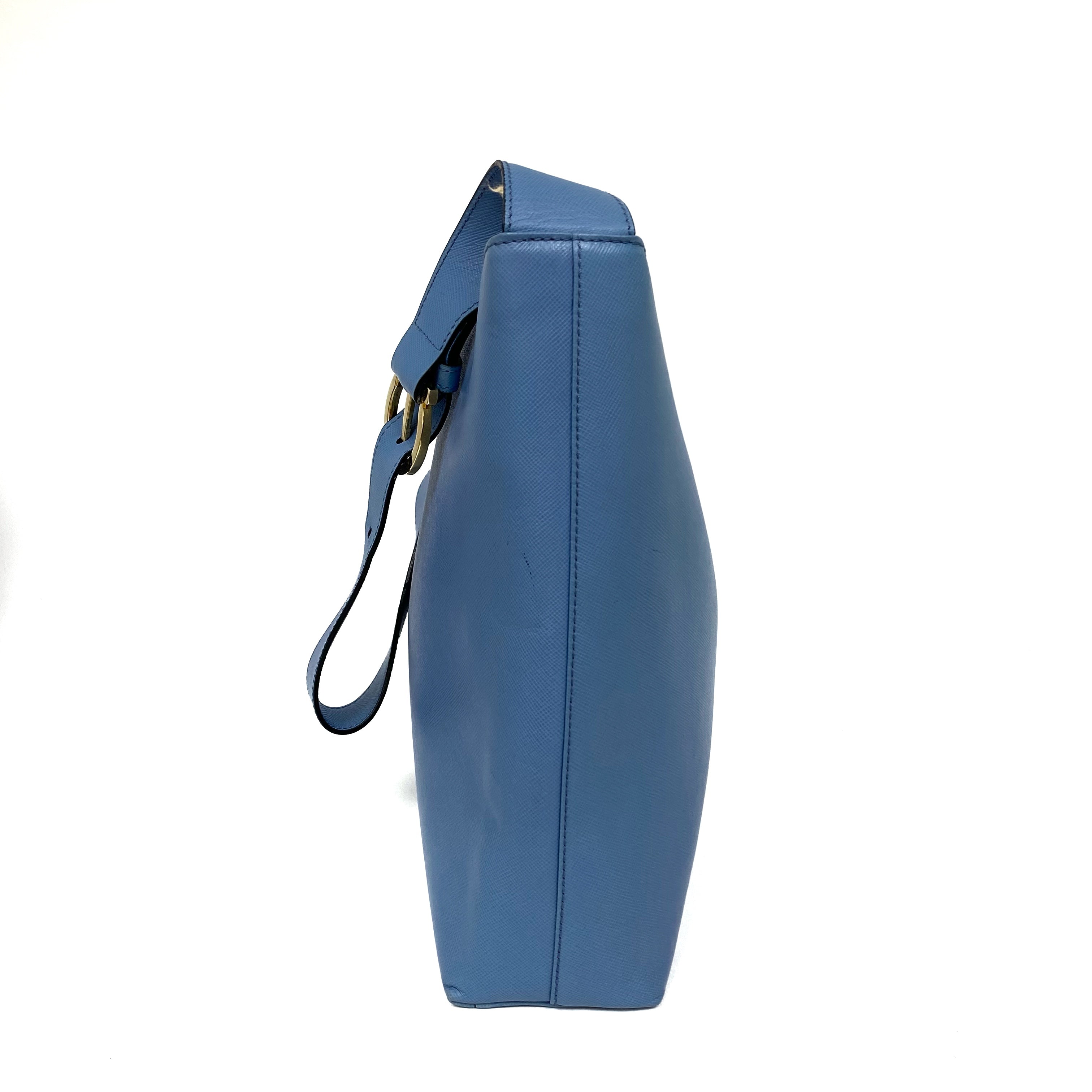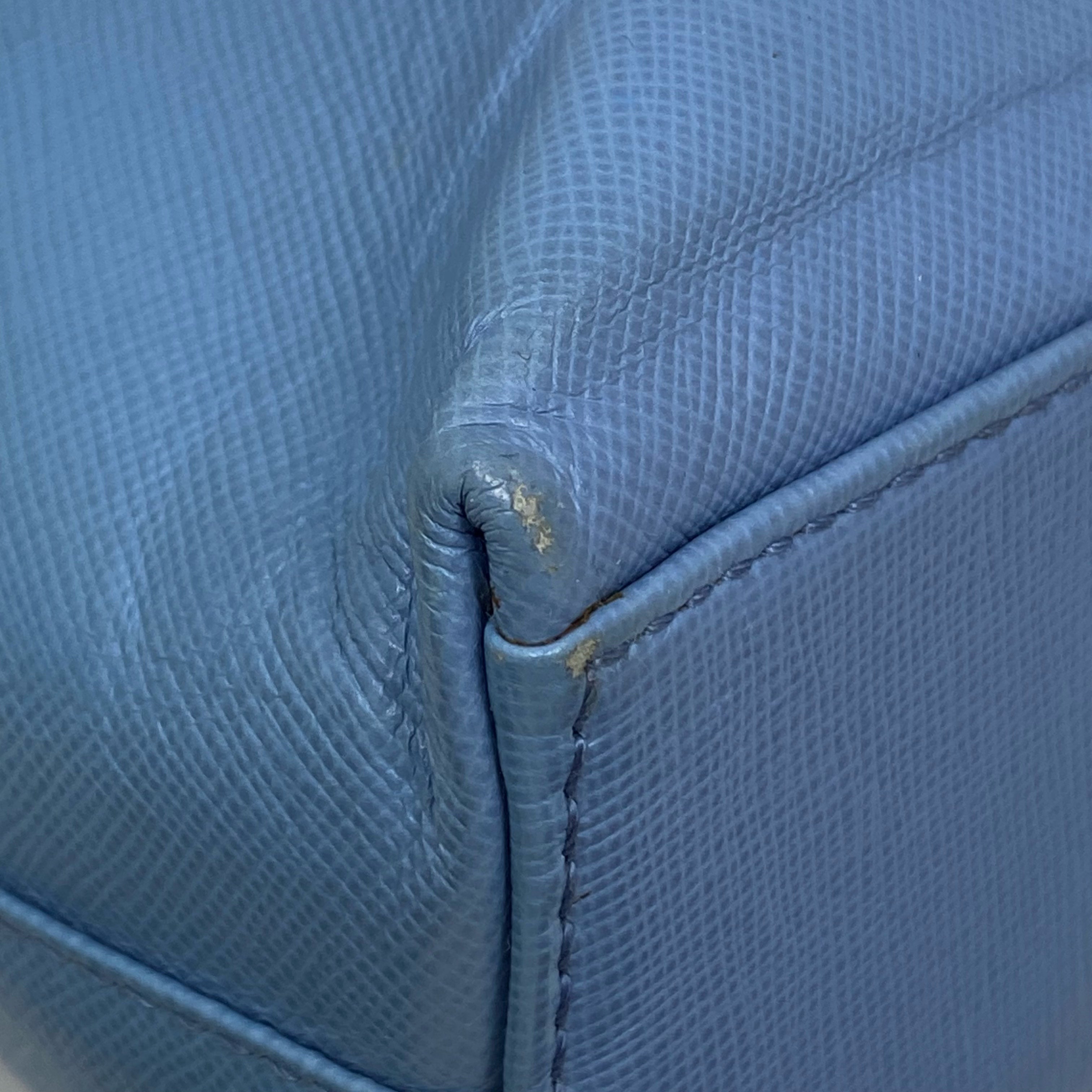 淺藍色十字壓紋皮革肩背袋 Light Blue Saffiano Leather Shoulder Bag |