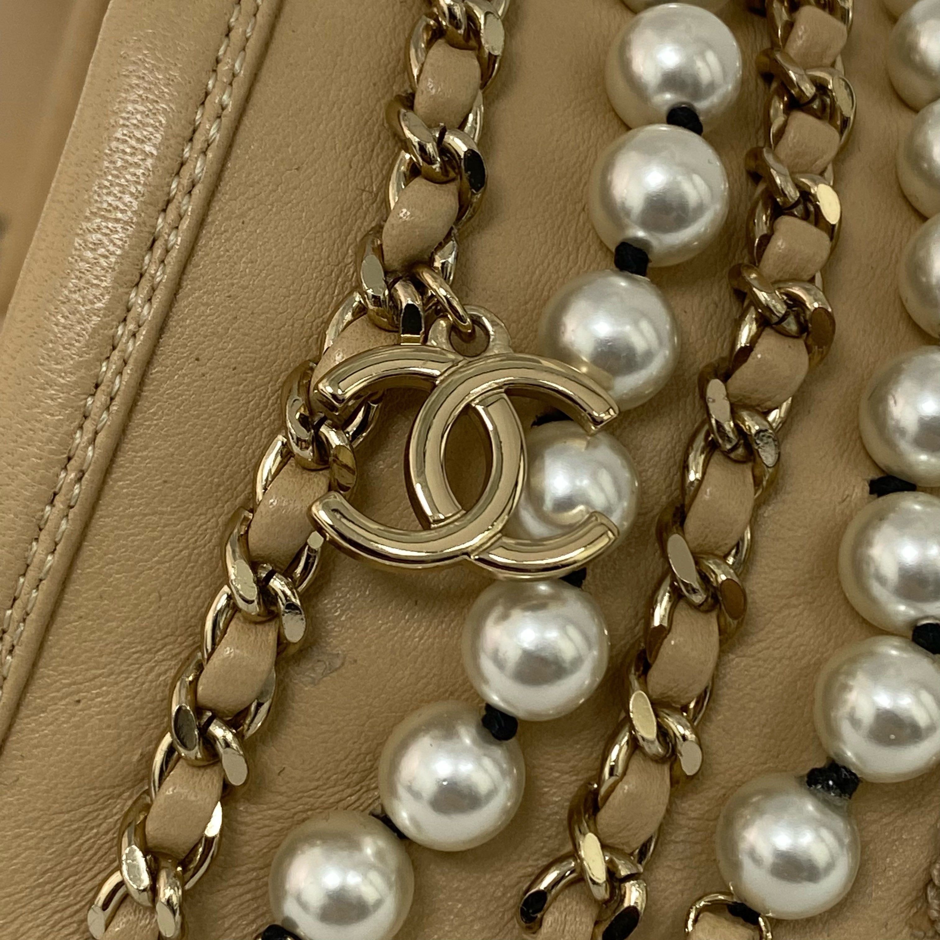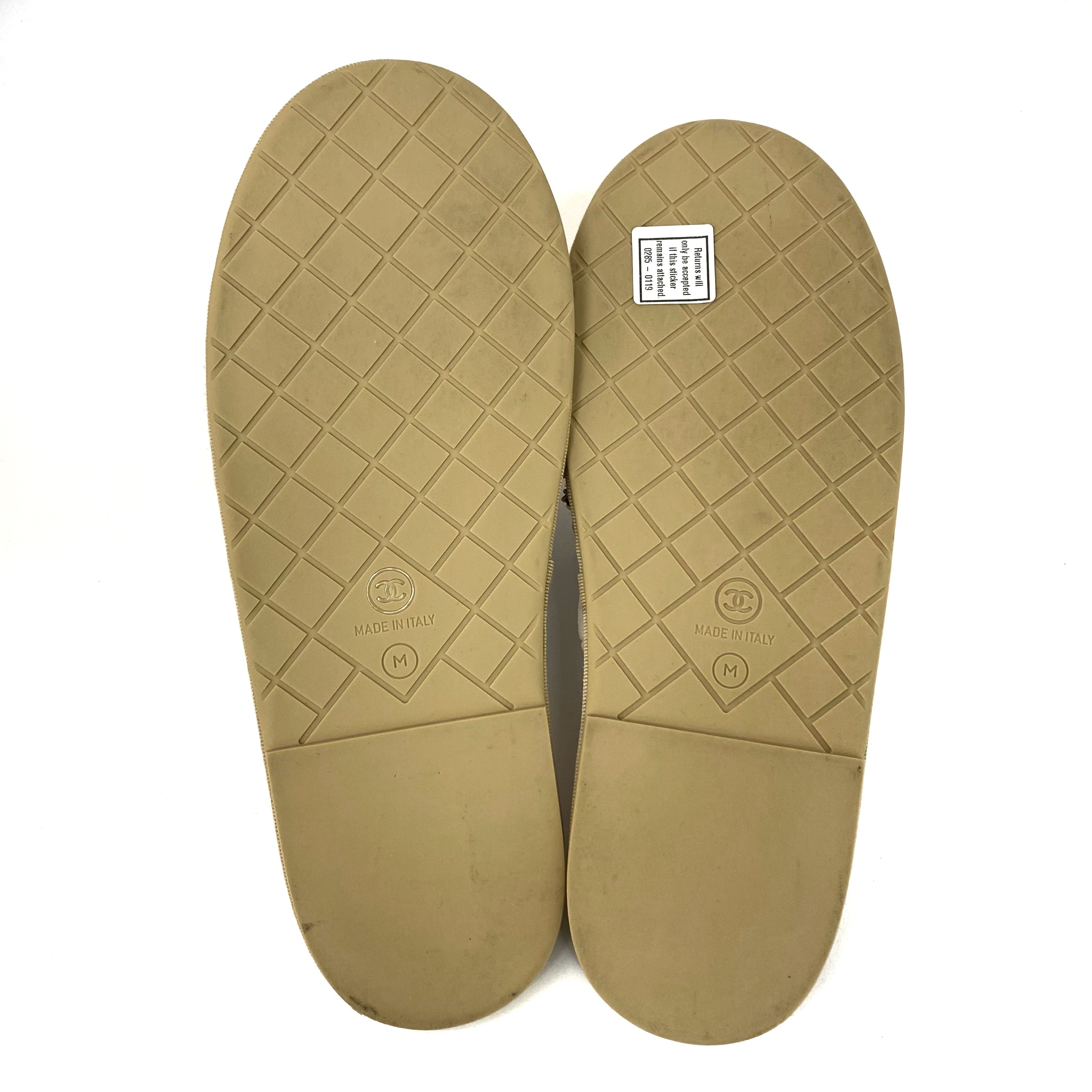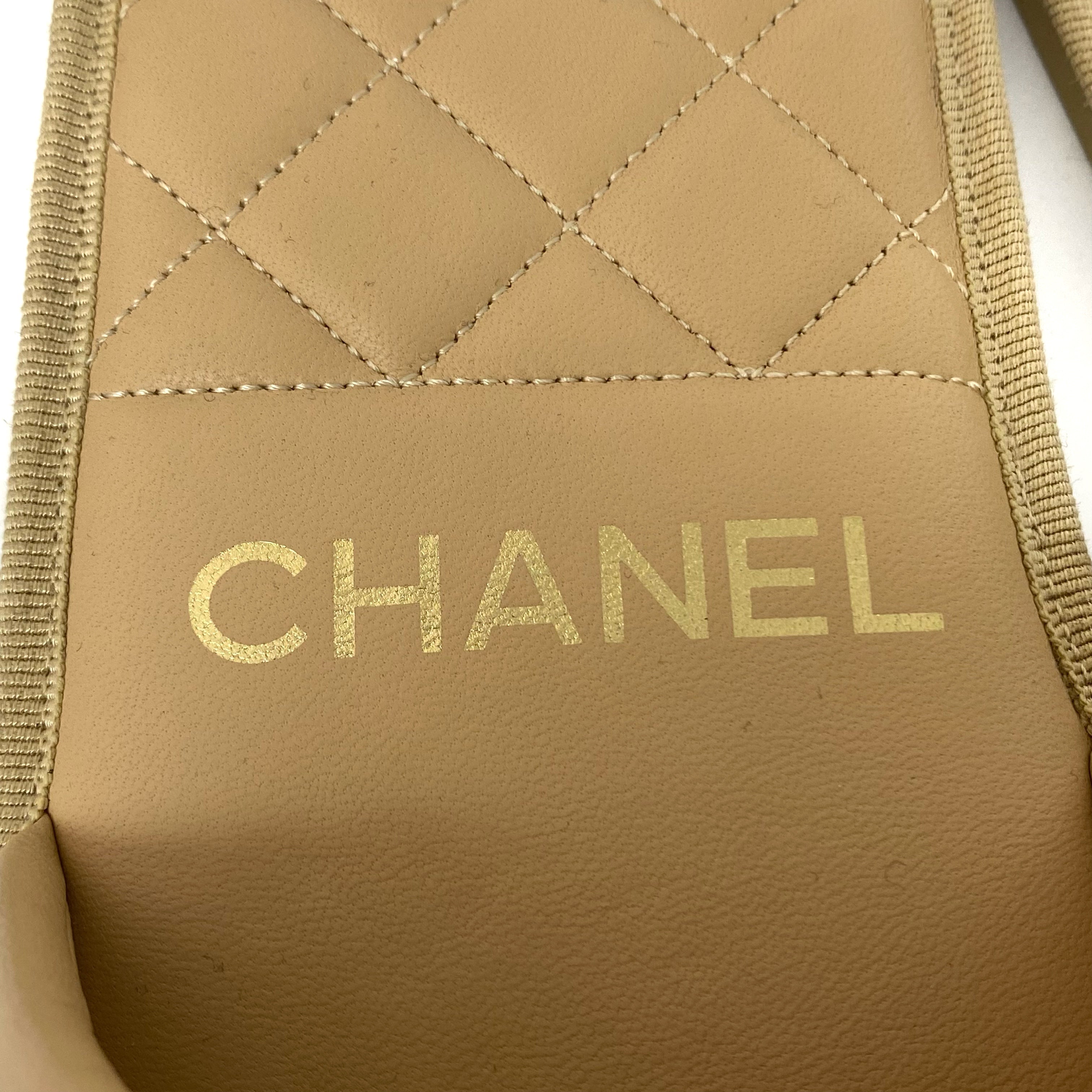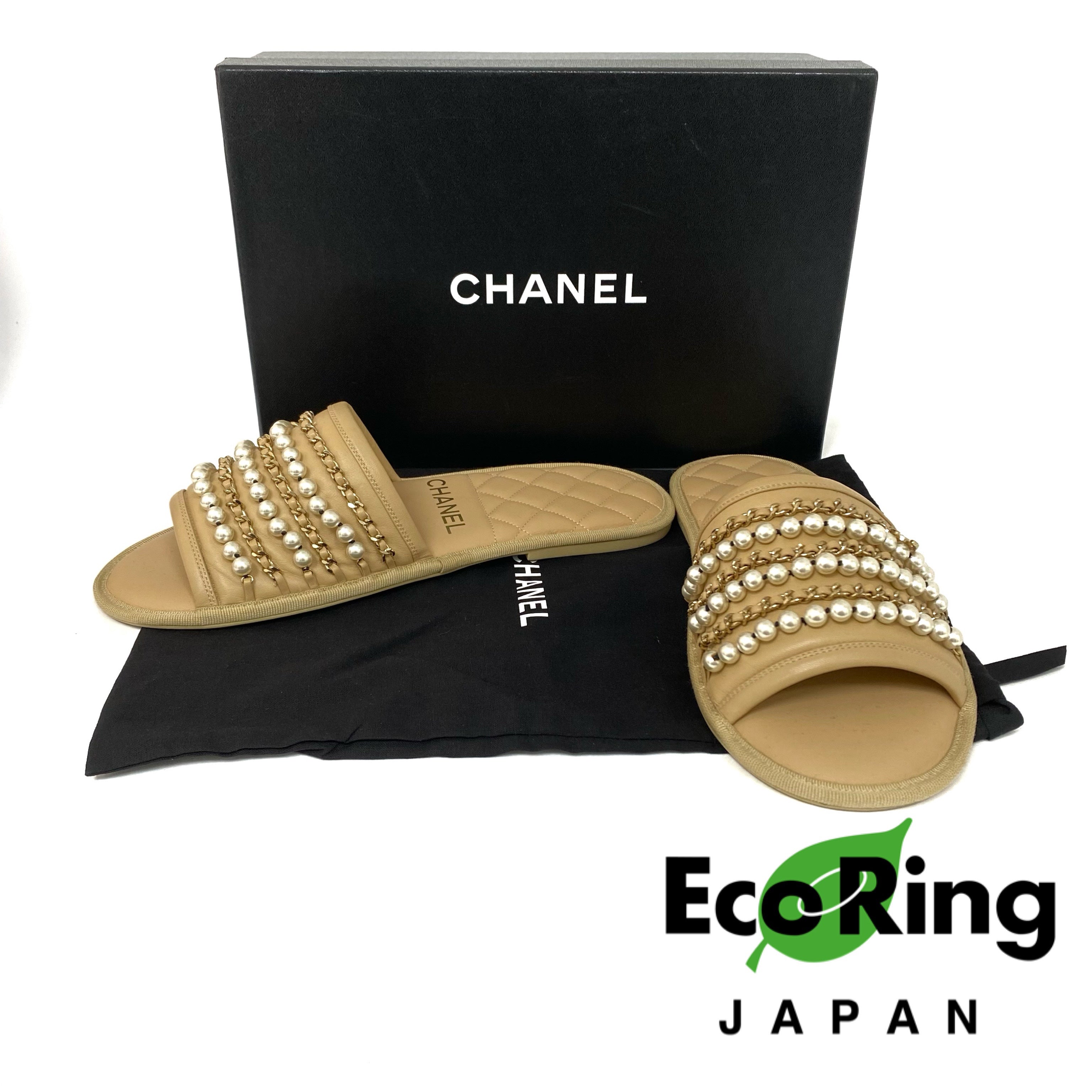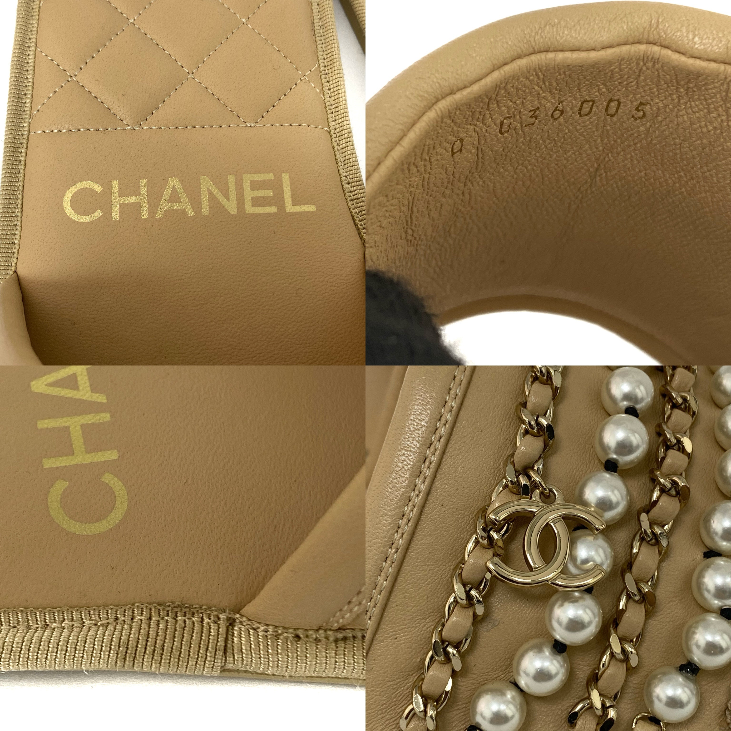 ☆Chanel香奈兒 Beige Calfskin Faux Pearl Slippers M Size 淺褐色小牛皮仿珍珠拖鞋 M 碼 -257022319