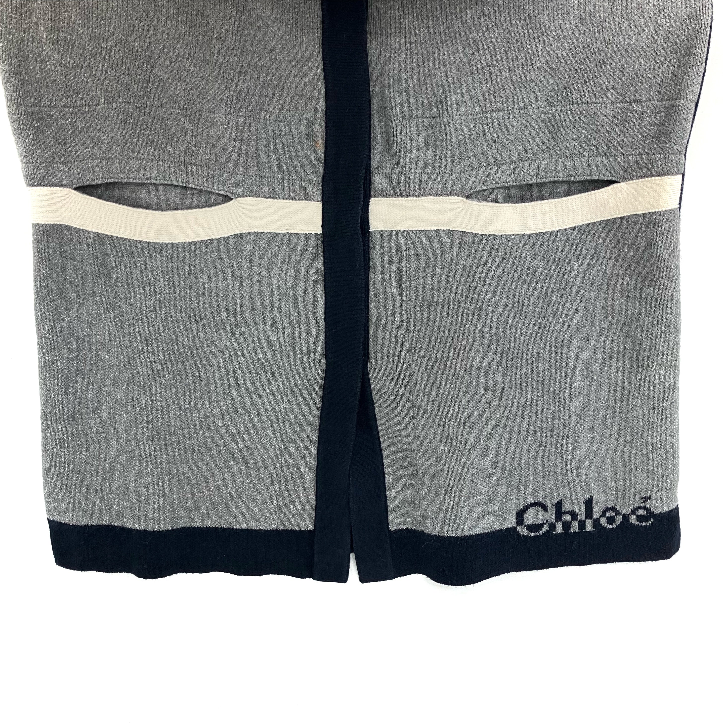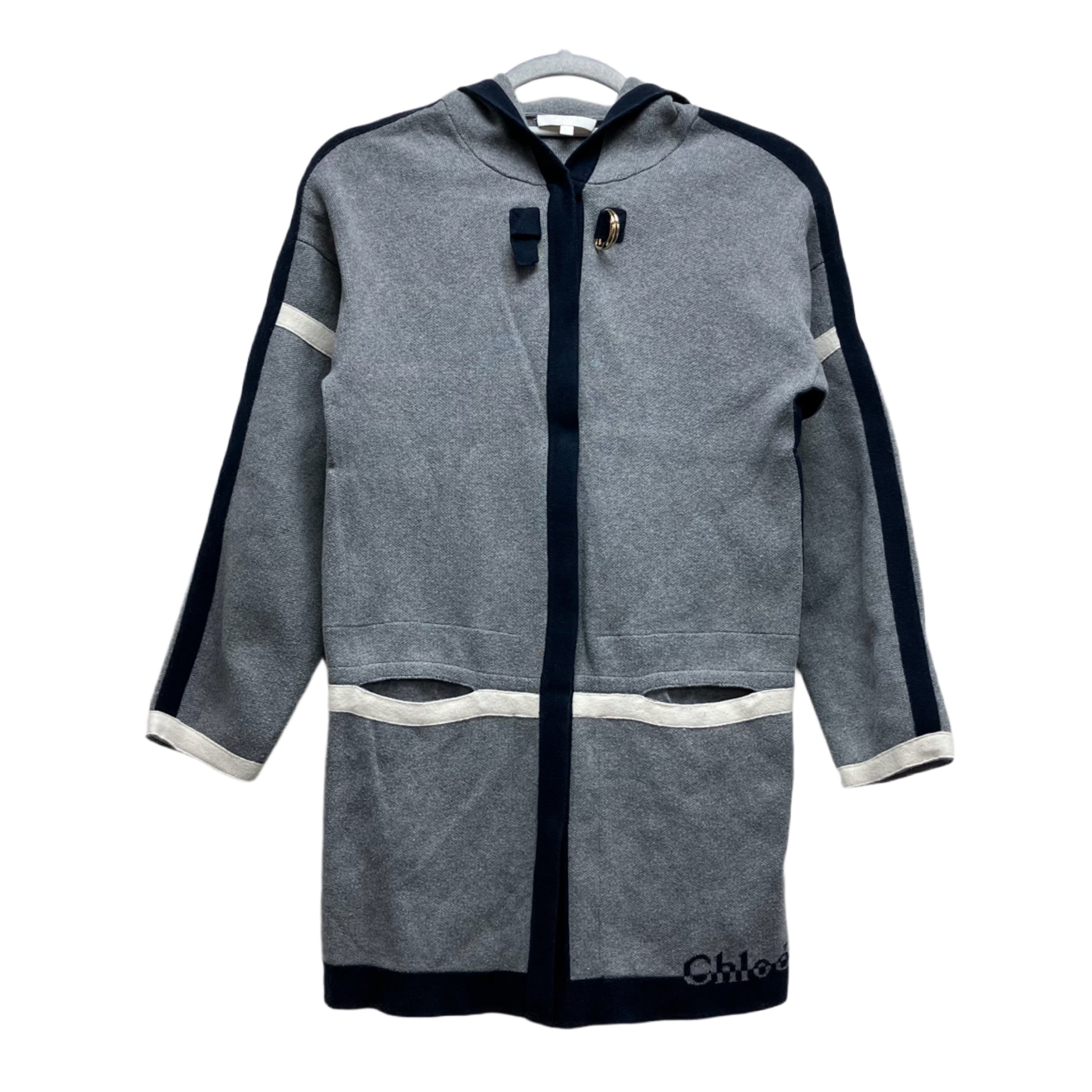 ☆ Chloe 蔻依 Grey And Navy 90%Cotton And 10% Wool Cardigan #12 灰色和藍色90%棉和10%羊毛開胸毛衣12碼 - 267001506