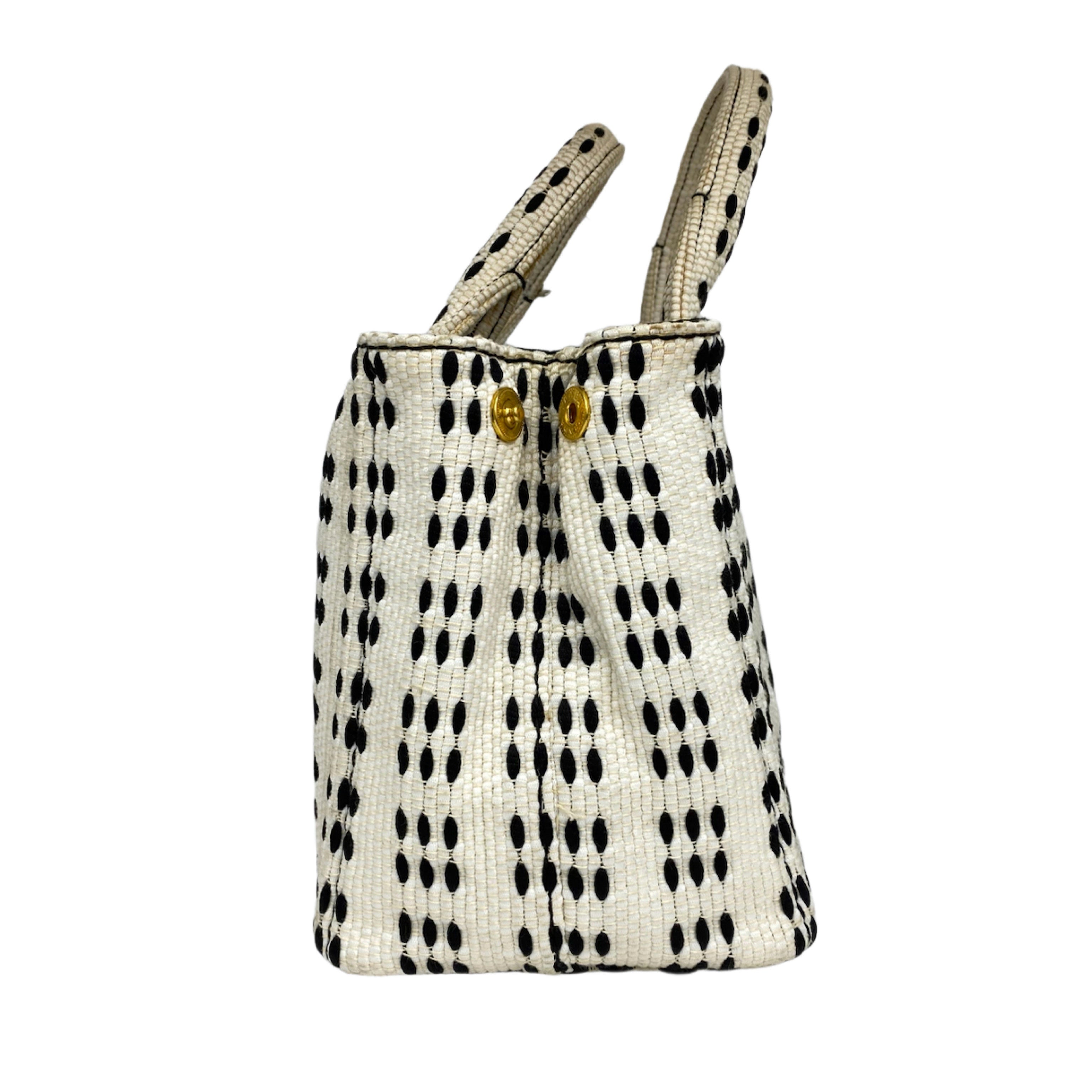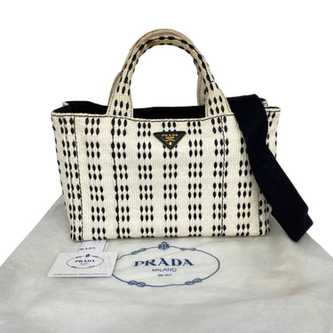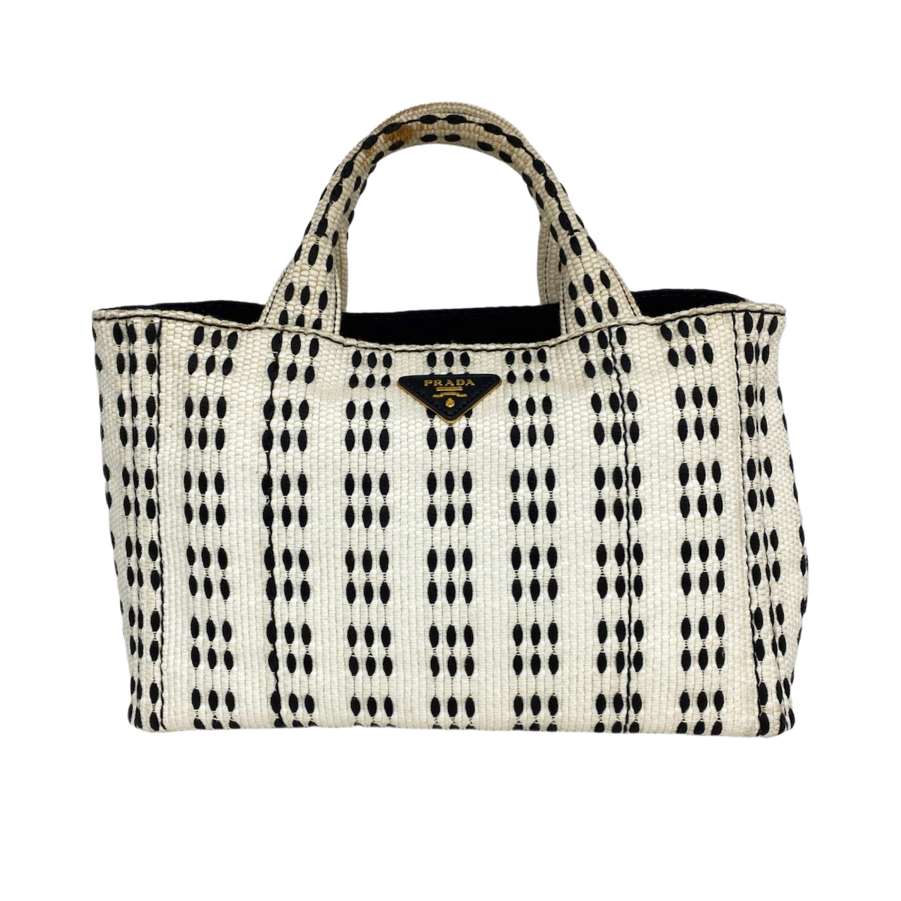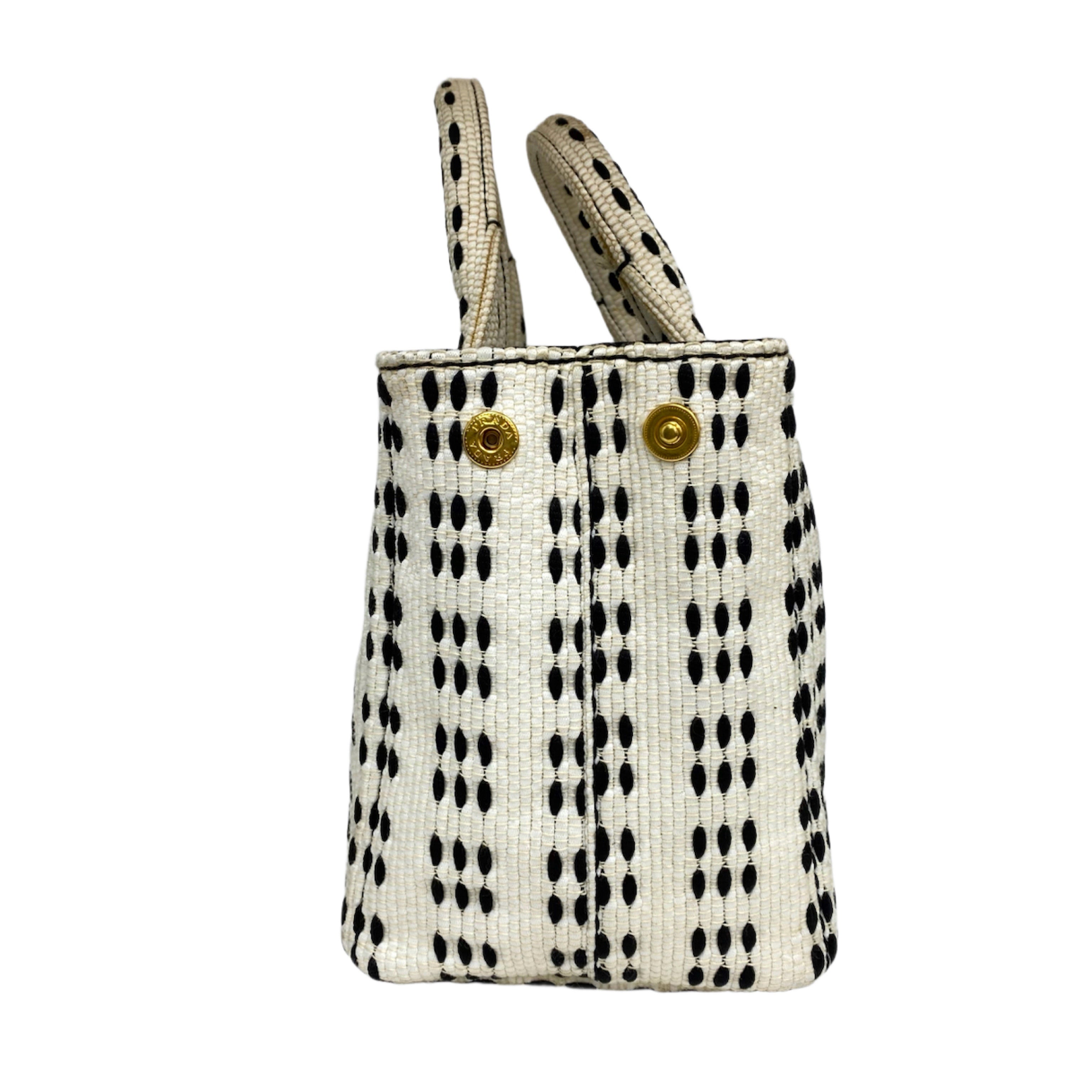 ☆ Prada 普拉達 White Black Canvas 2 Way Bag 白色黑色帆布兩用袋 - 267001326