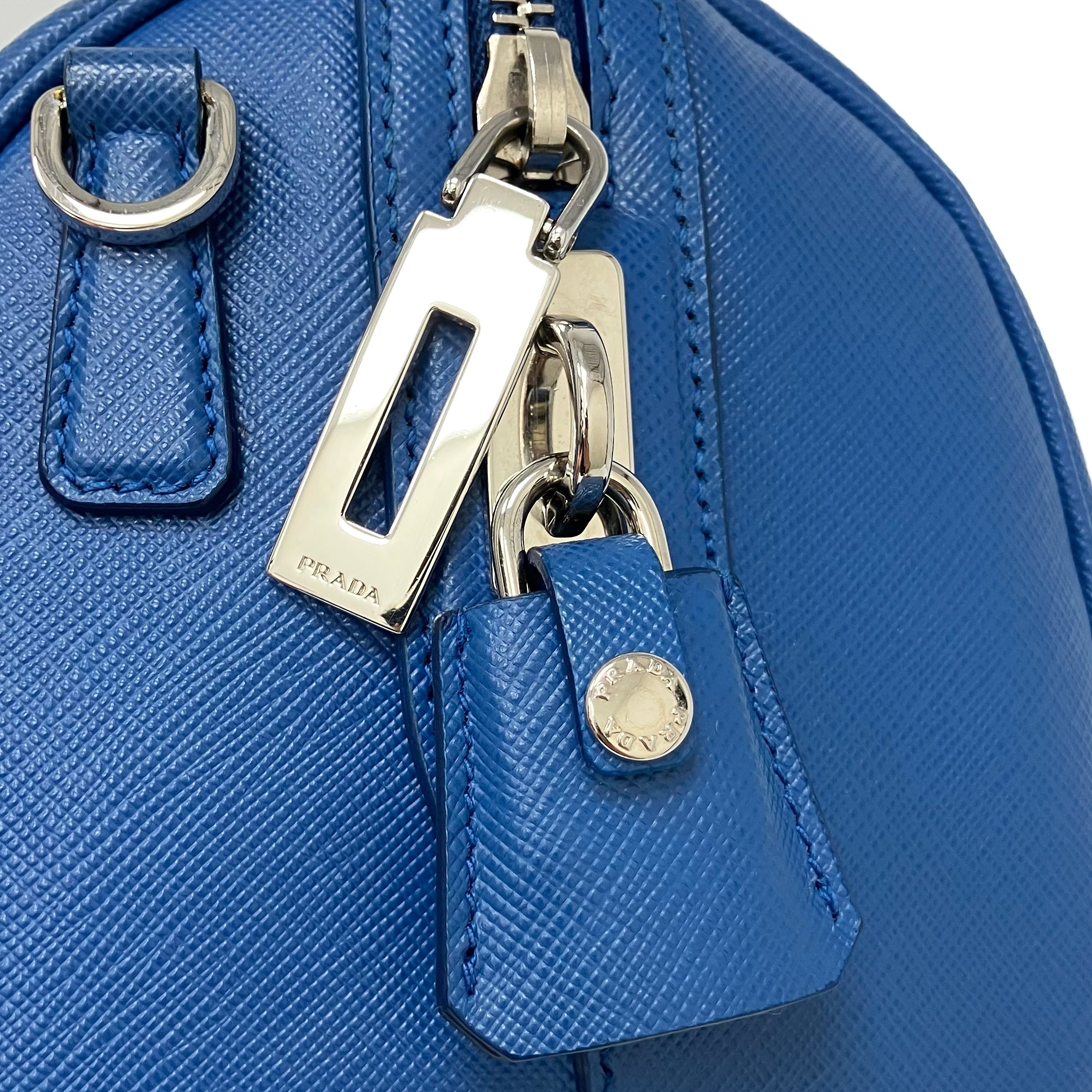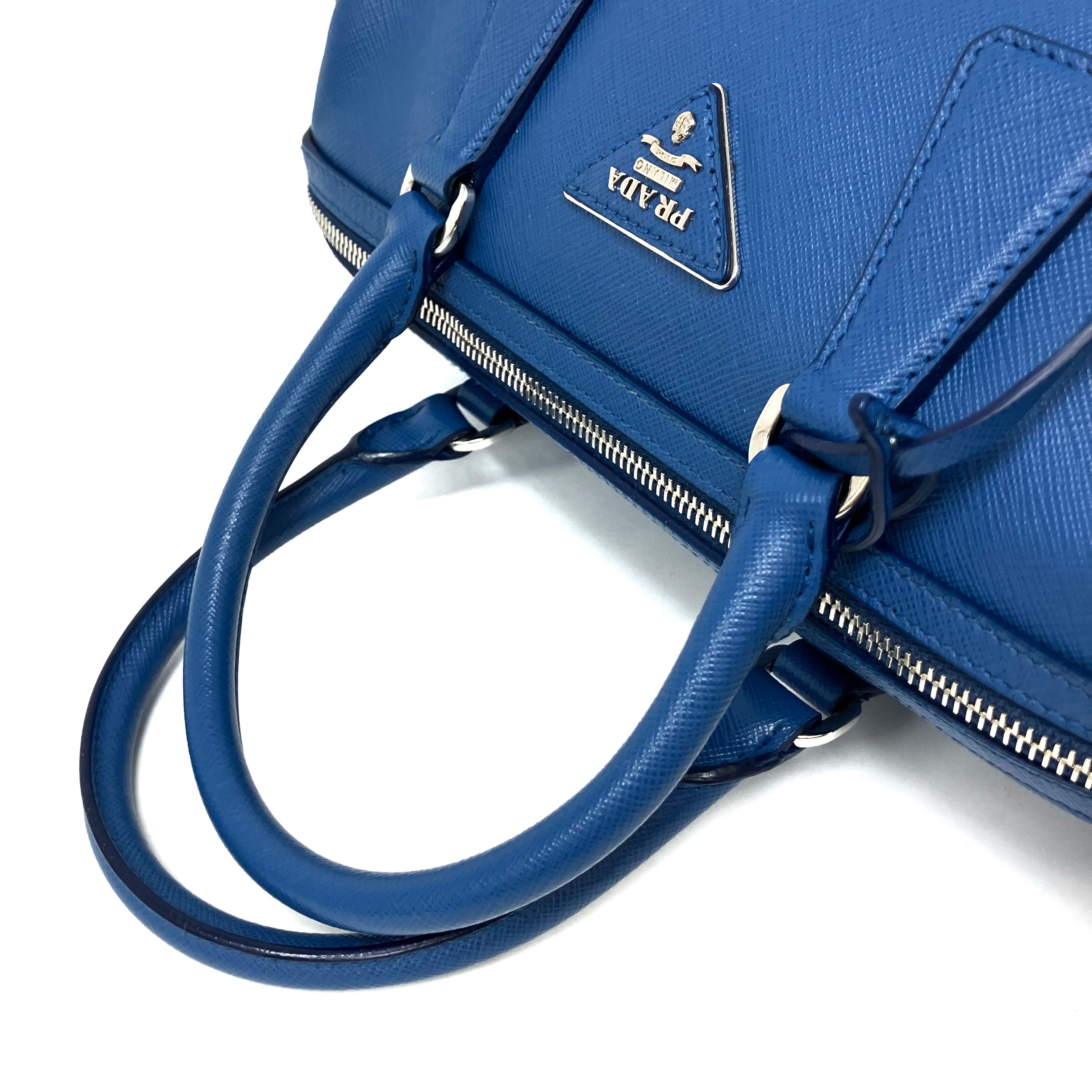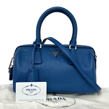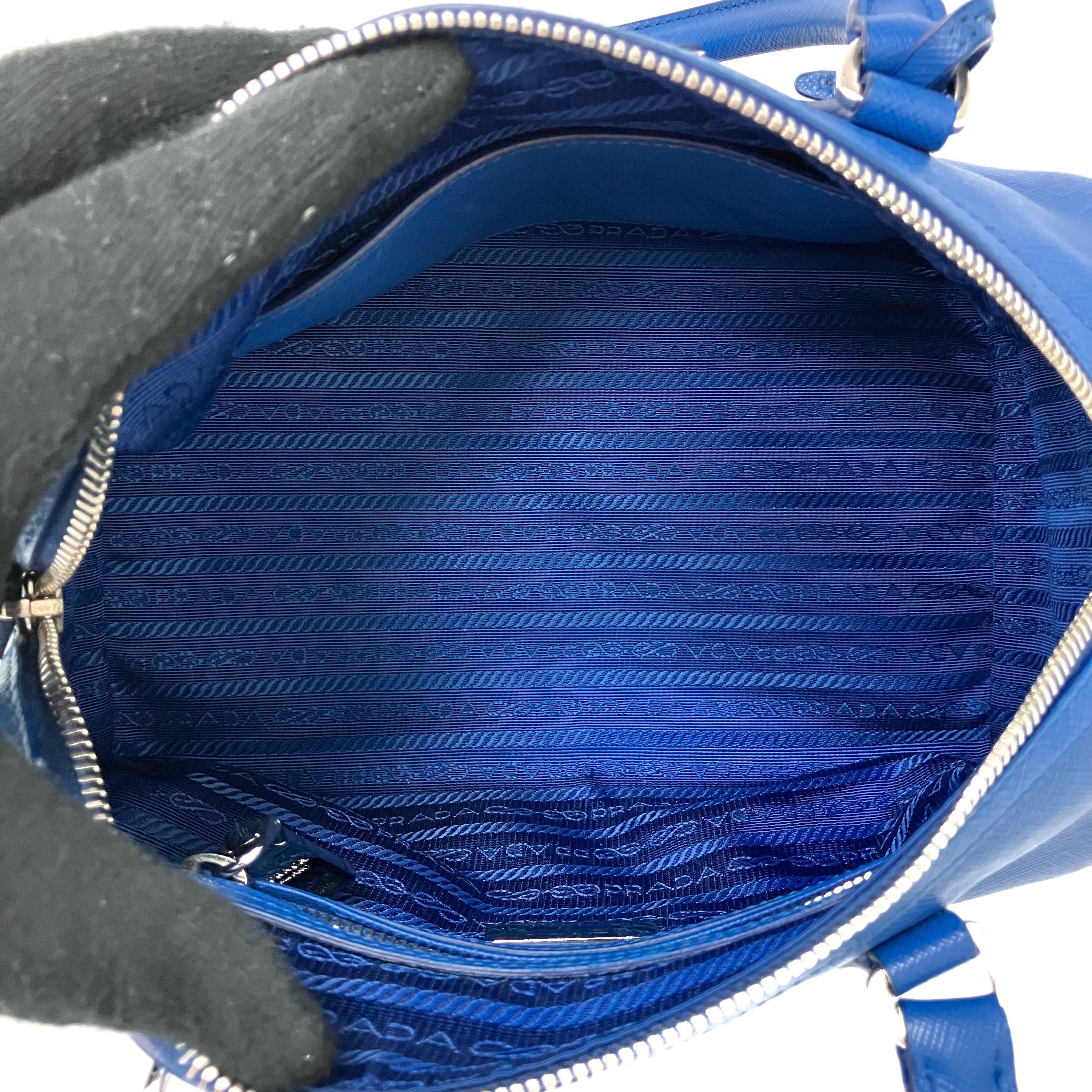☆Prada普拉達 Blue Saffiano Leather 2Way Bag 1BB845 藍色十字壓紋皮革兩用袋 1BB845 -267002128