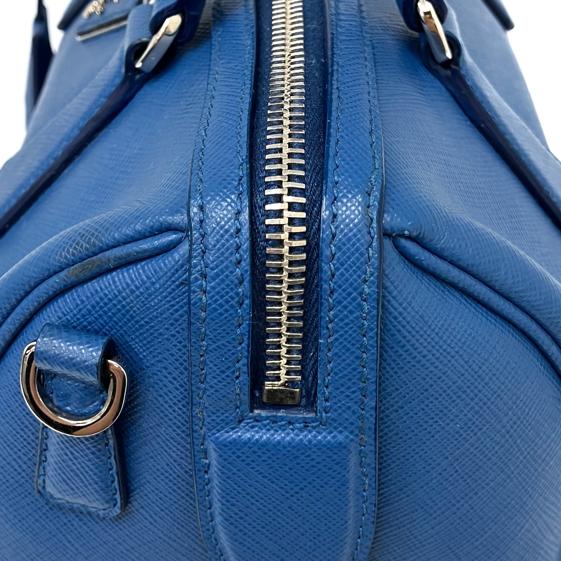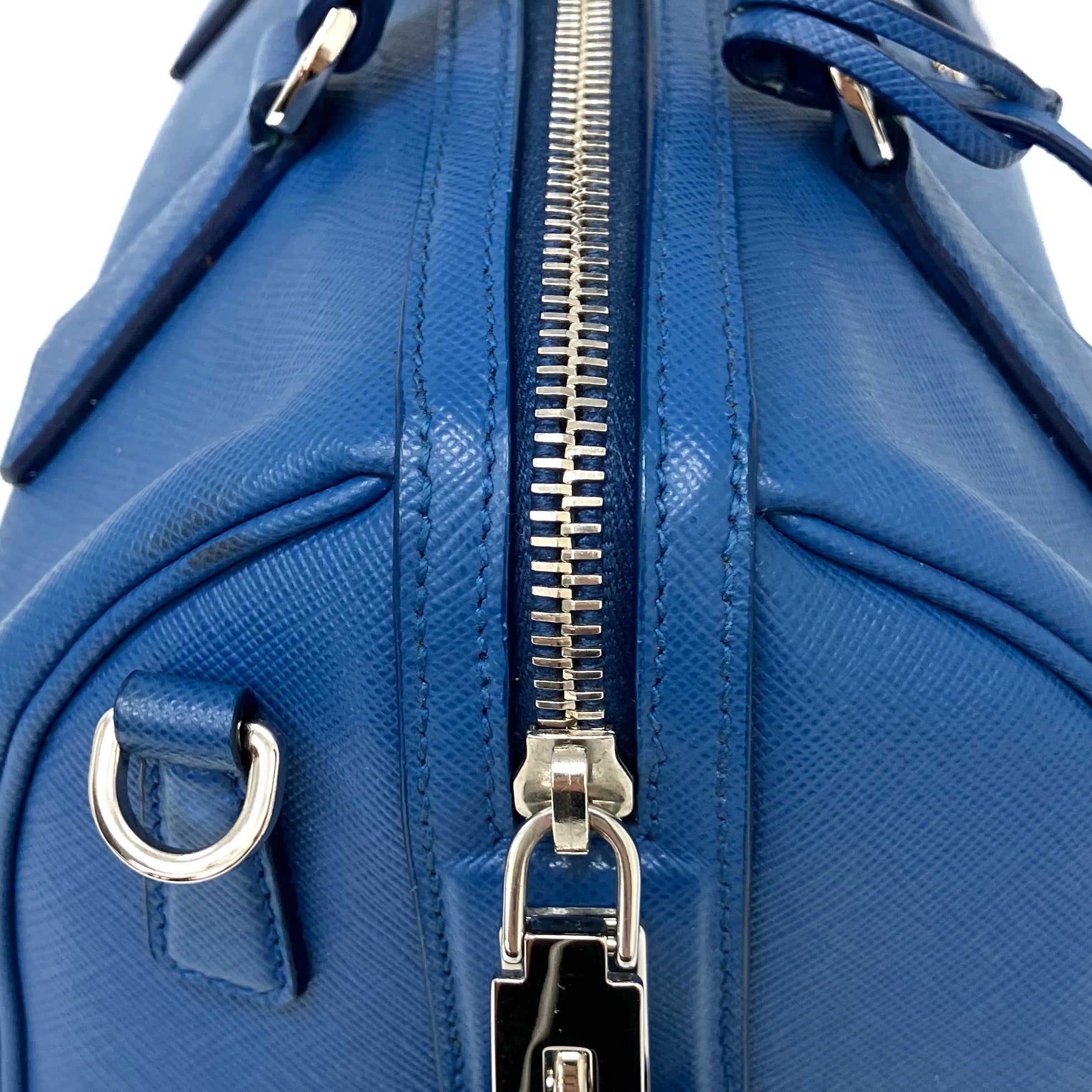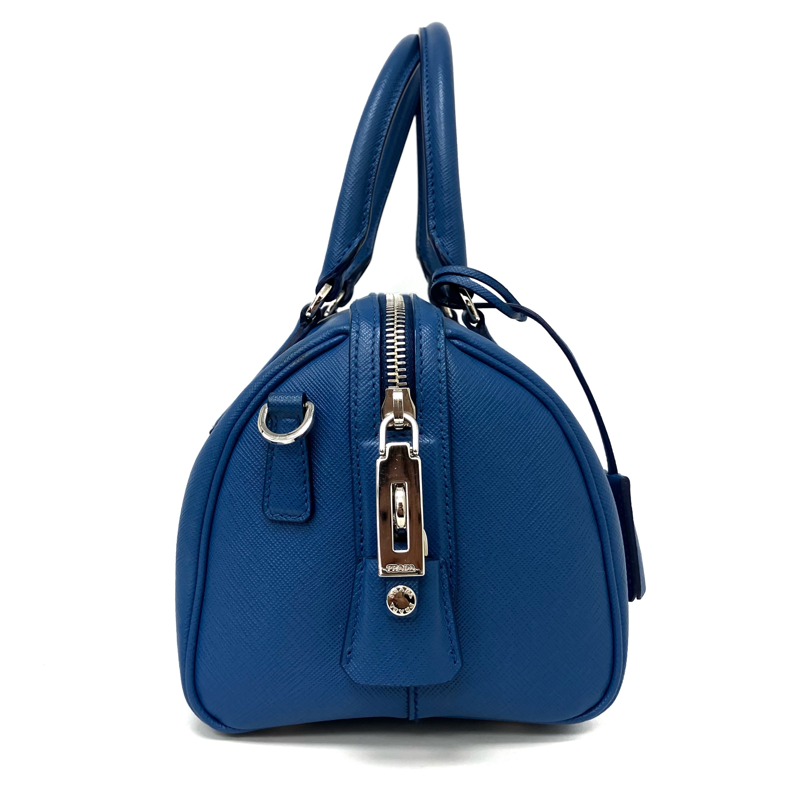 ☆Prada普拉達 Blue Saffiano Leather 2Way Bag 1BB845 藍色十字壓紋皮革兩用袋 1BB845 -267002128