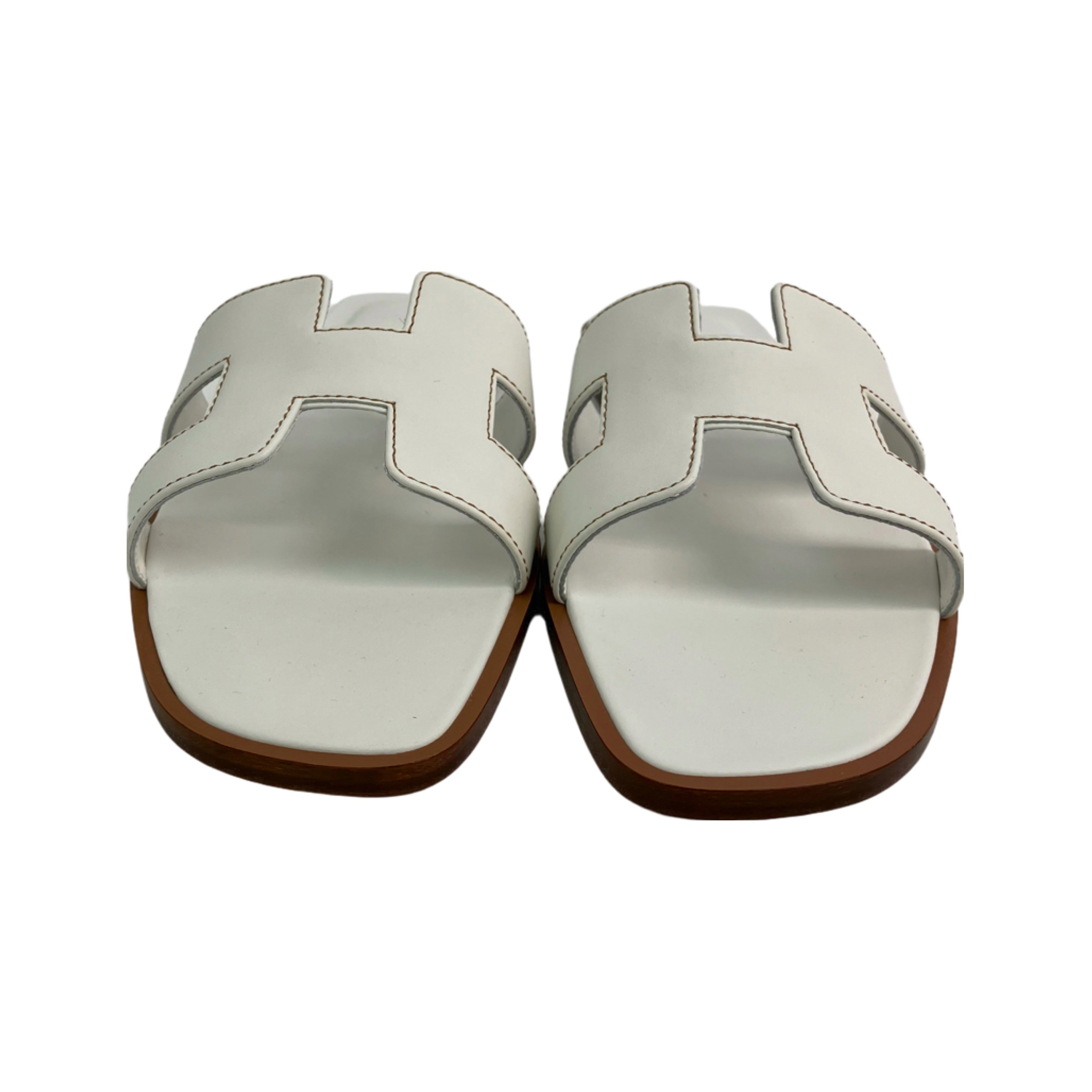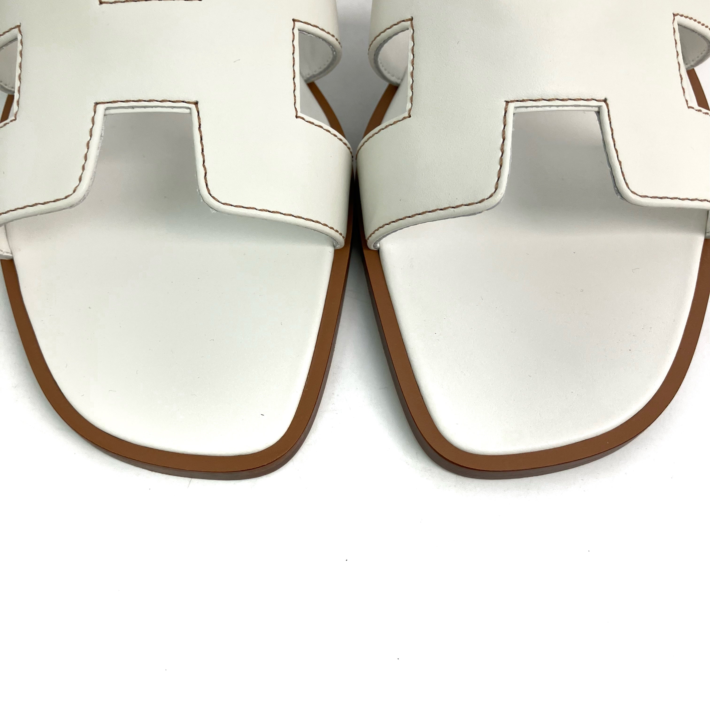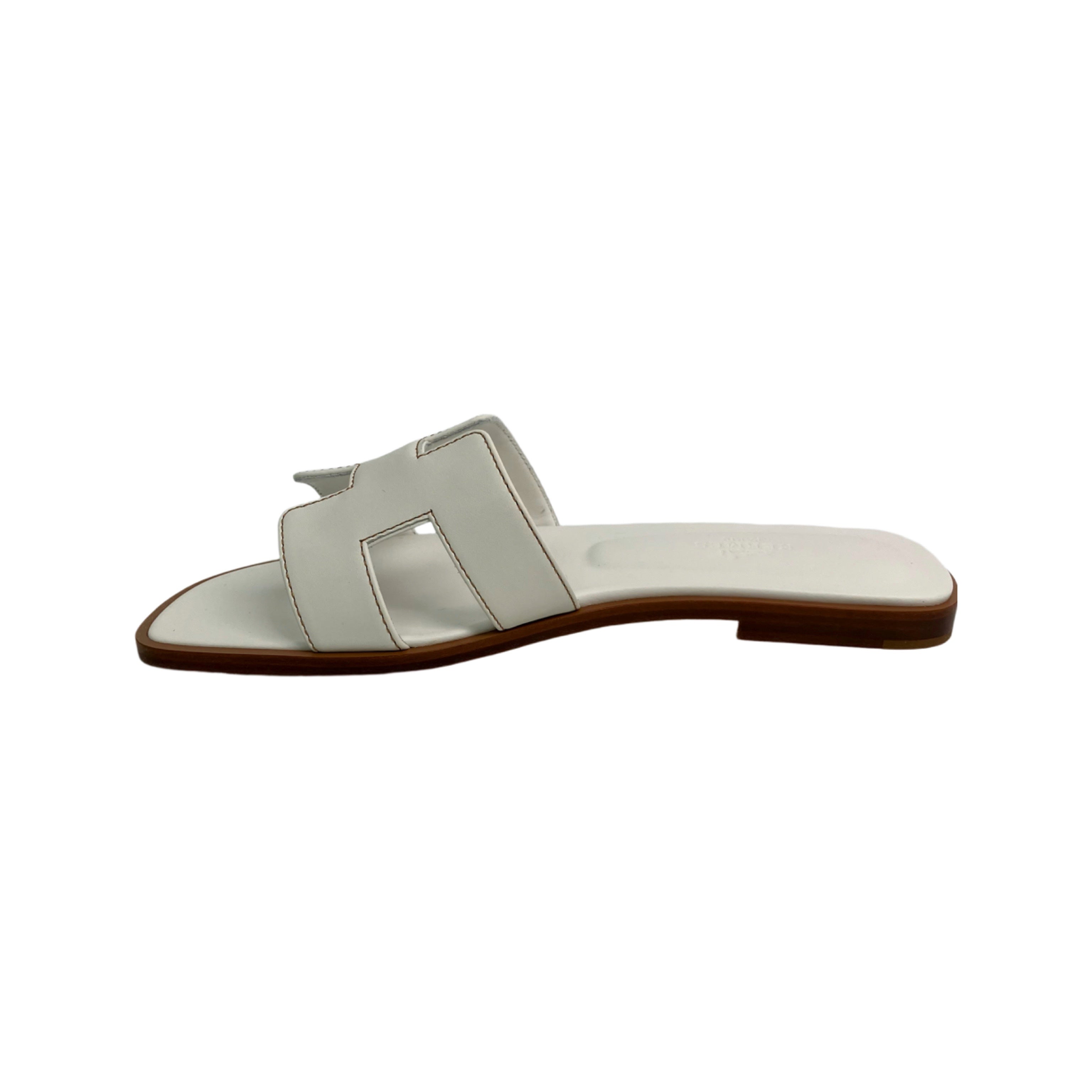 ☆ Hermes 愛馬仕 White Lambskin Oran Sandals #36 白色小羊皮涼鞋 36碼 - 257023412