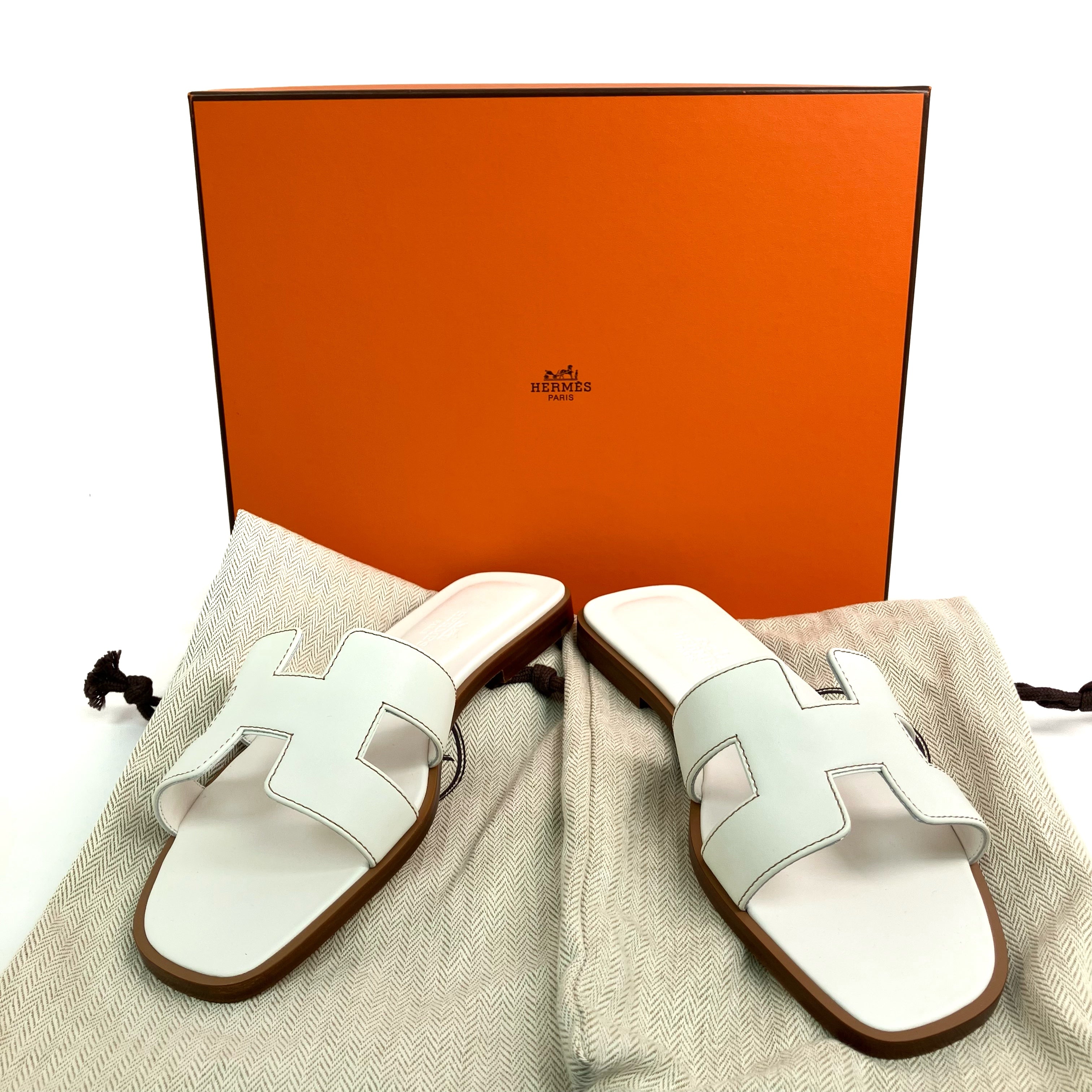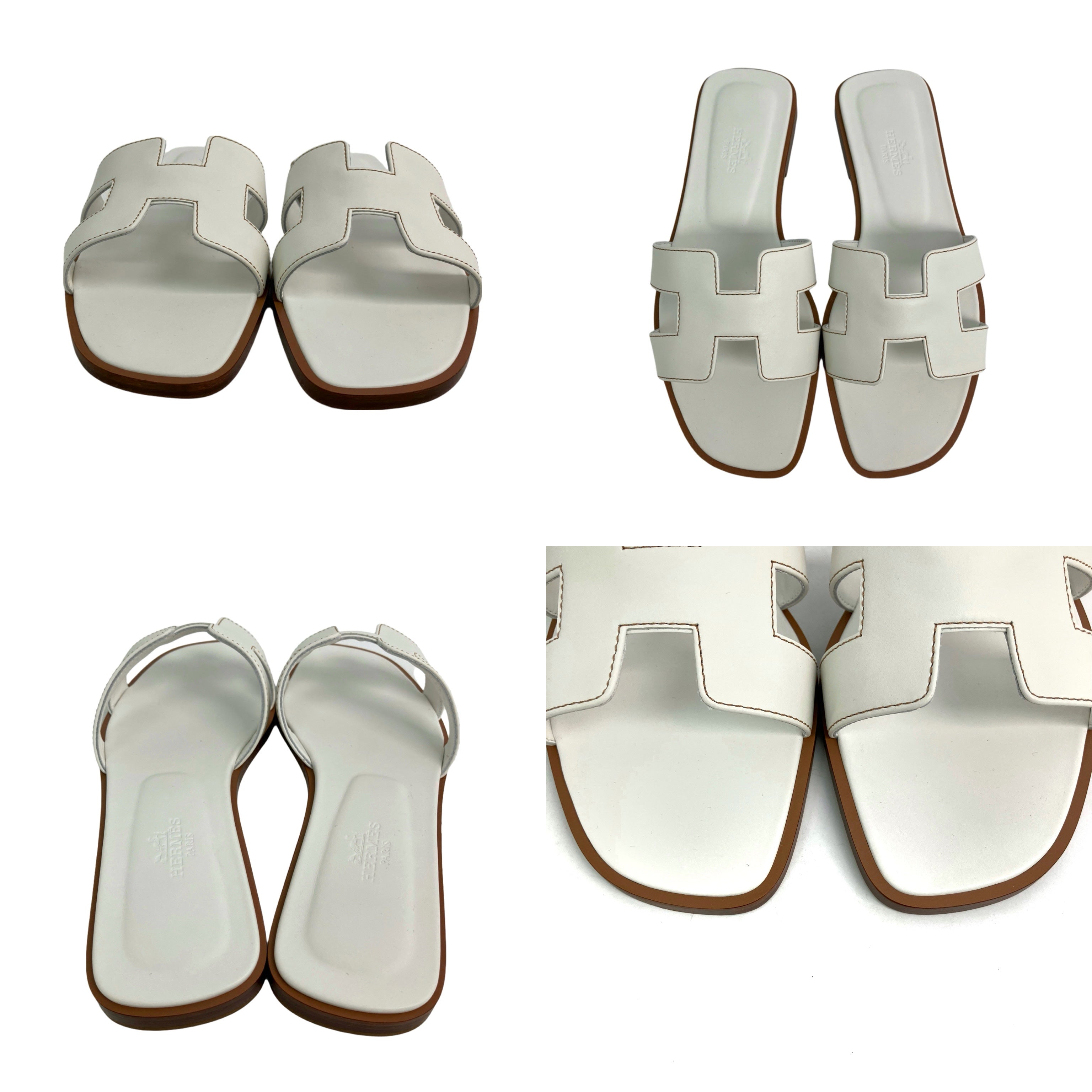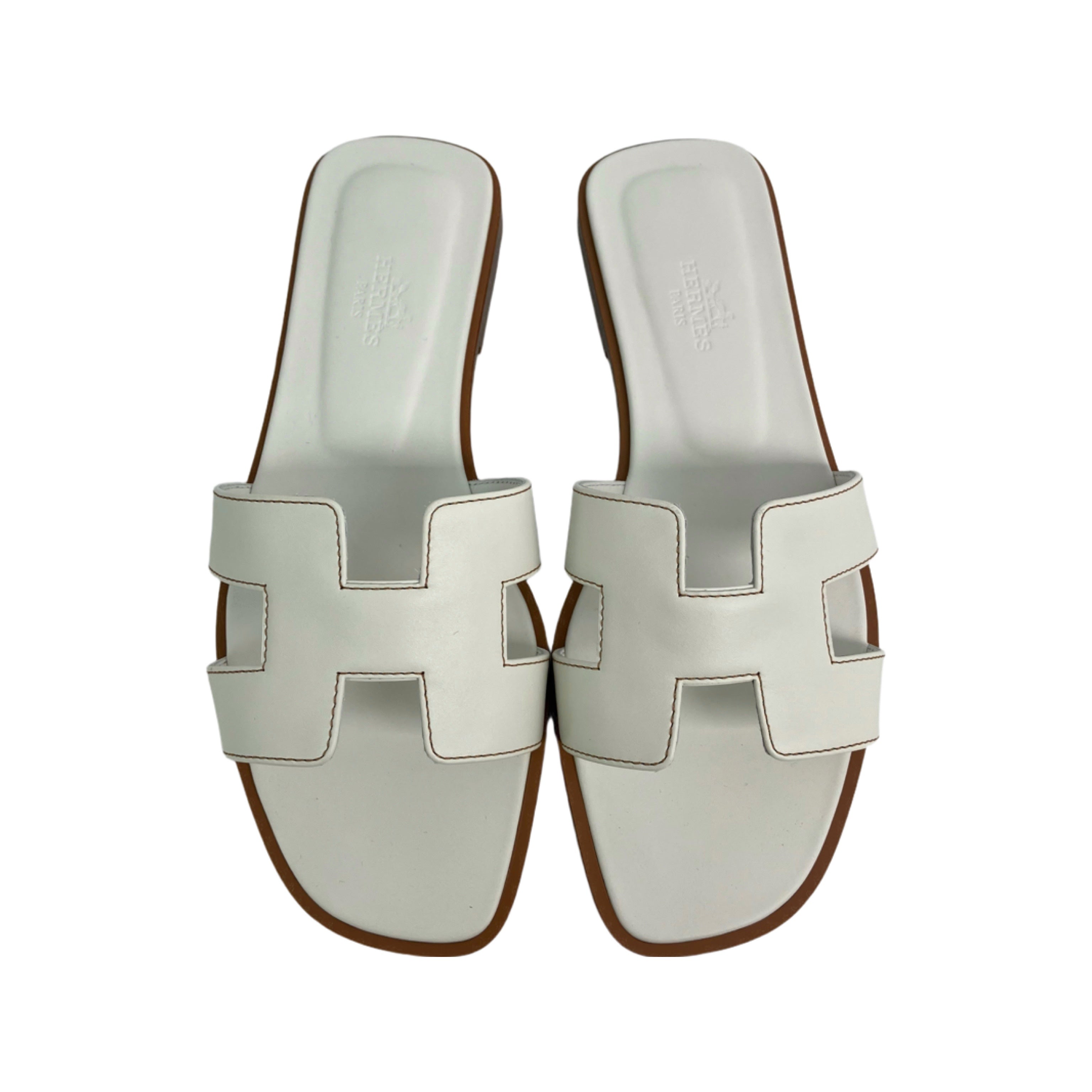 ☆ Hermes 愛馬仕 White Lambskin Oran Sandals #36 白色小羊皮涼鞋 36碼 - 257023412
