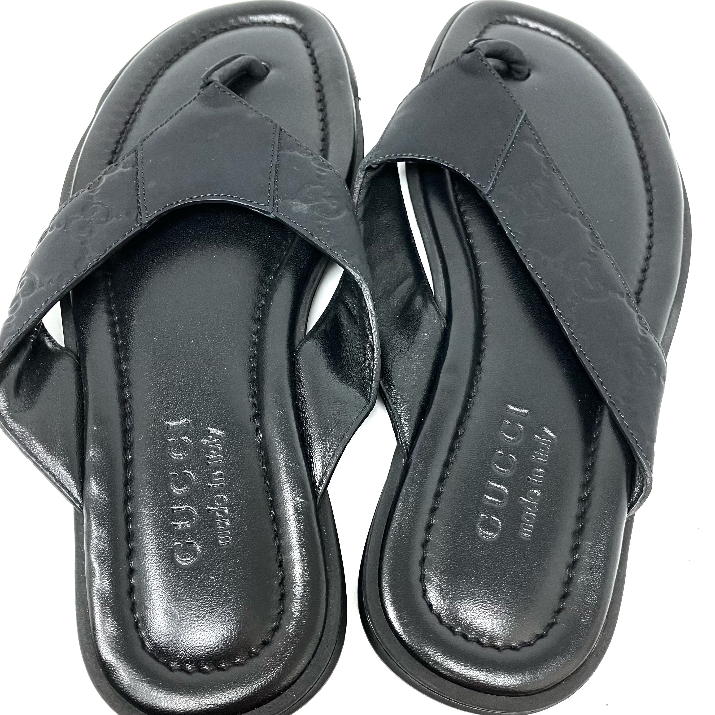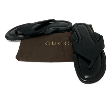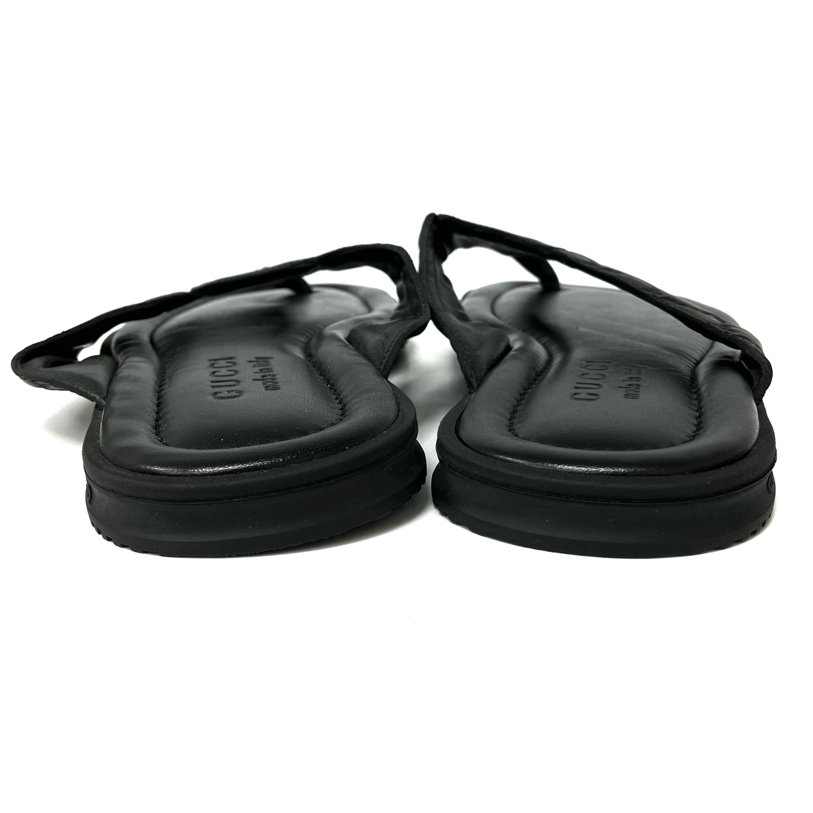 ☆ Gucci 古馳 Black Calfskin Slippers #7.5黑色小牛皮拖鞋7.5碼 - 257028025