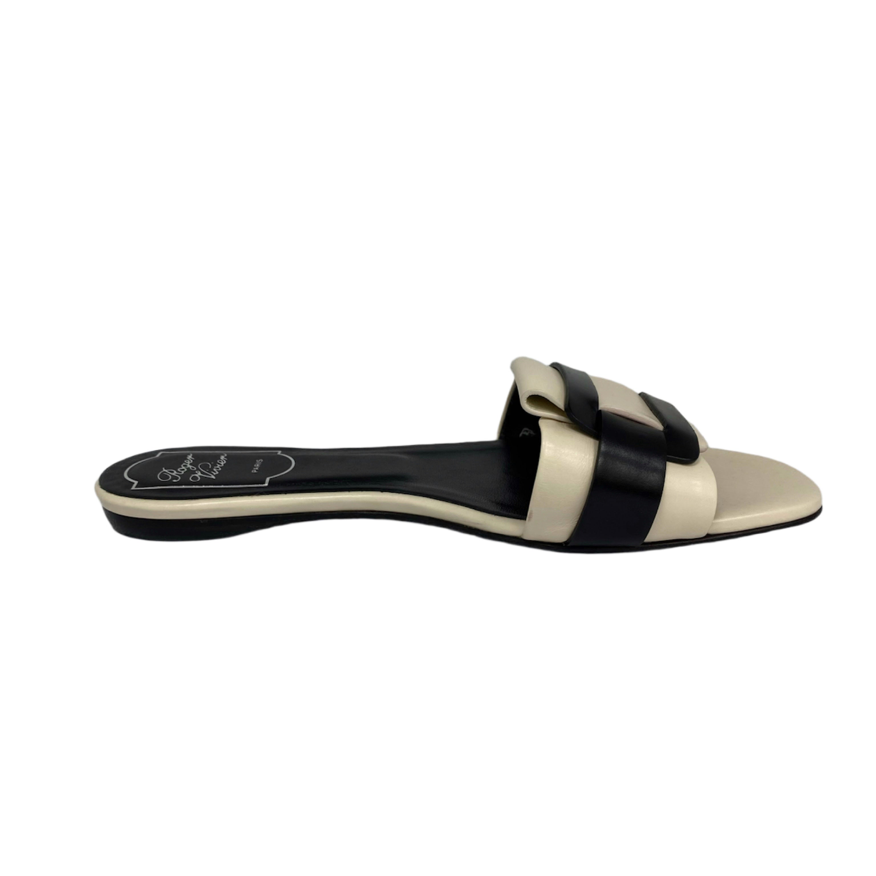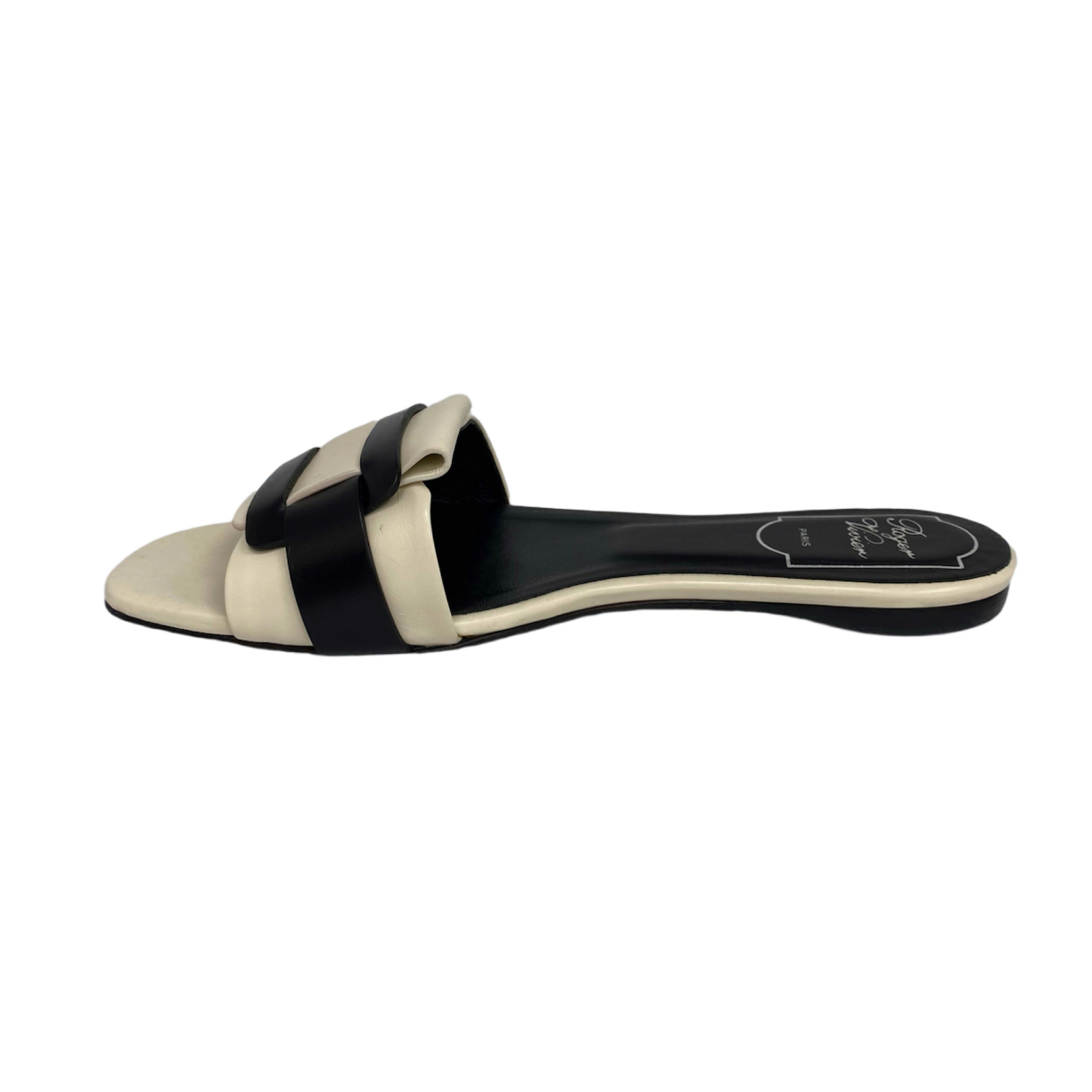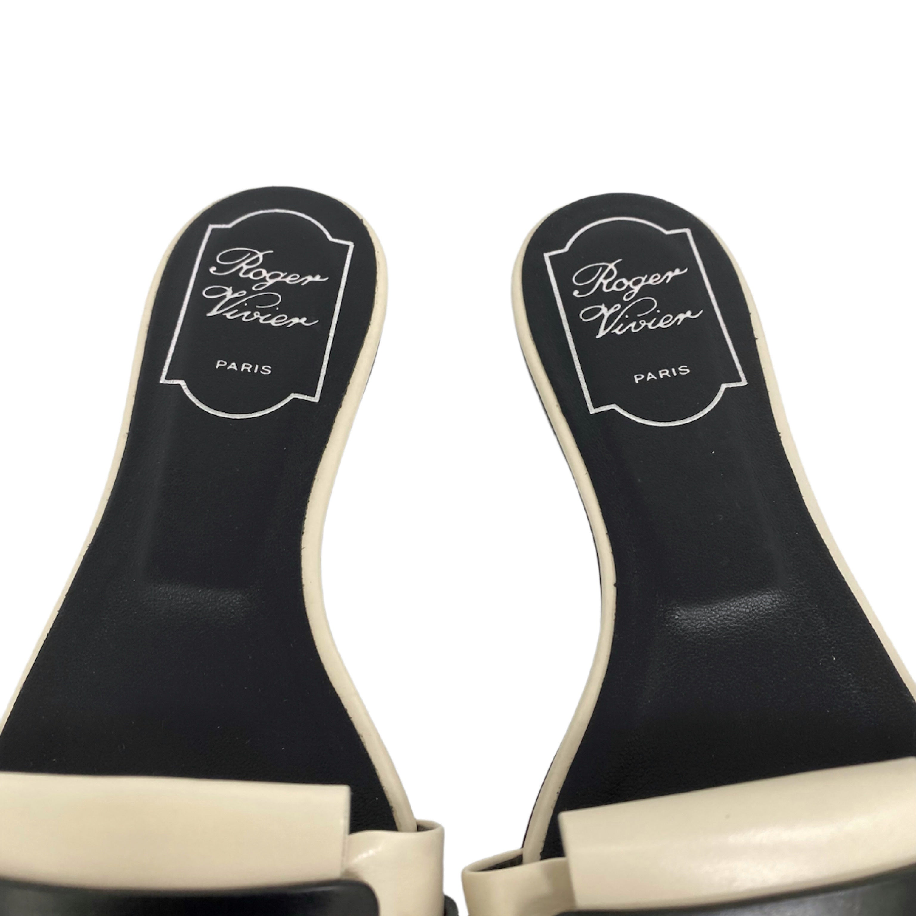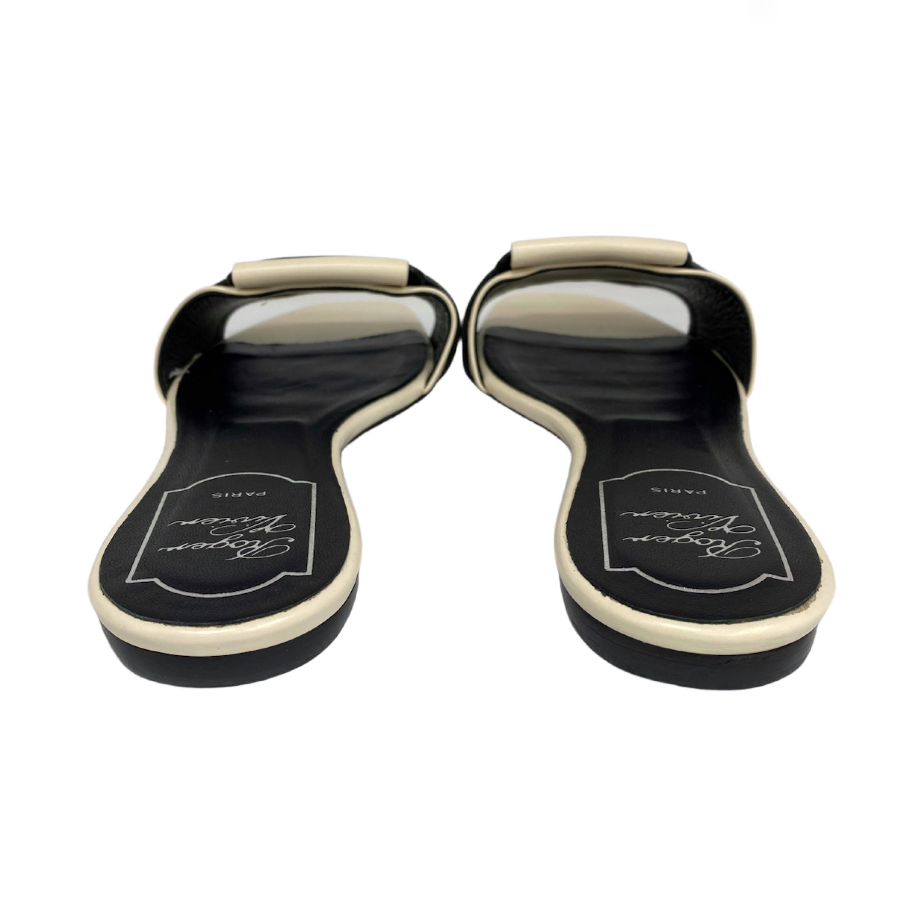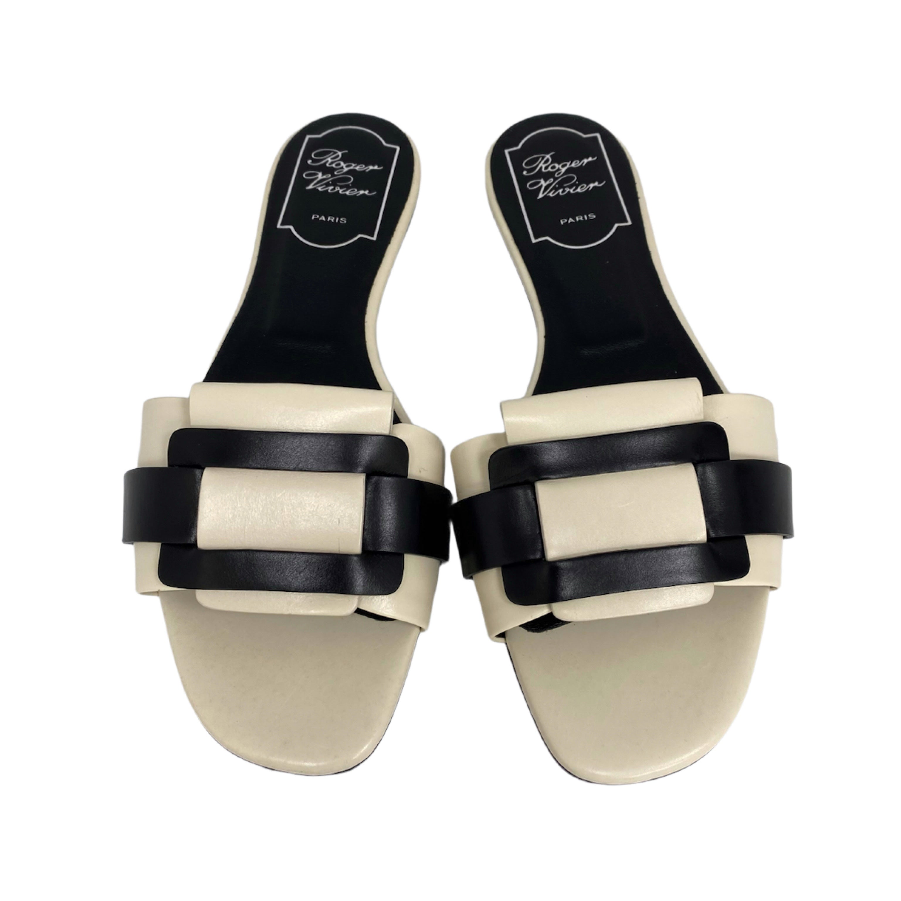 ☆ Roger Vivier Beige And Black Lambskin Slippers #35.5 米色和黑色小羊皮拖鞋35.5碼 - 267002237
