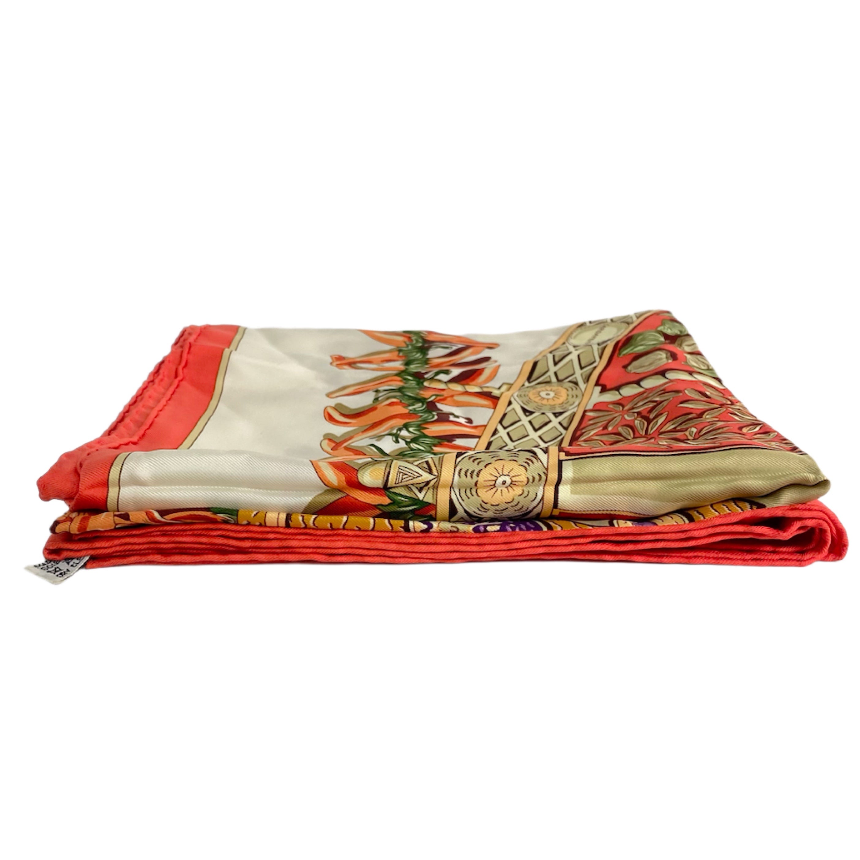 ☆ Hermes 愛馬仕 White Red 100% Silk Scarf 白色紅色100%絲質絲巾 - 267001219