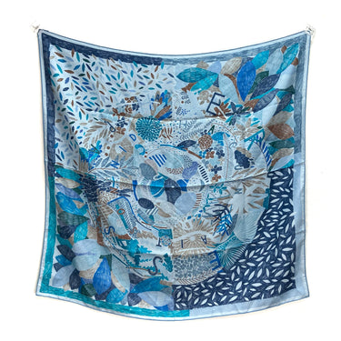 ☆ Hermes 愛馬仕 Blue 100% Silk Scarf 藍色100%絲質巾 - 267003153
