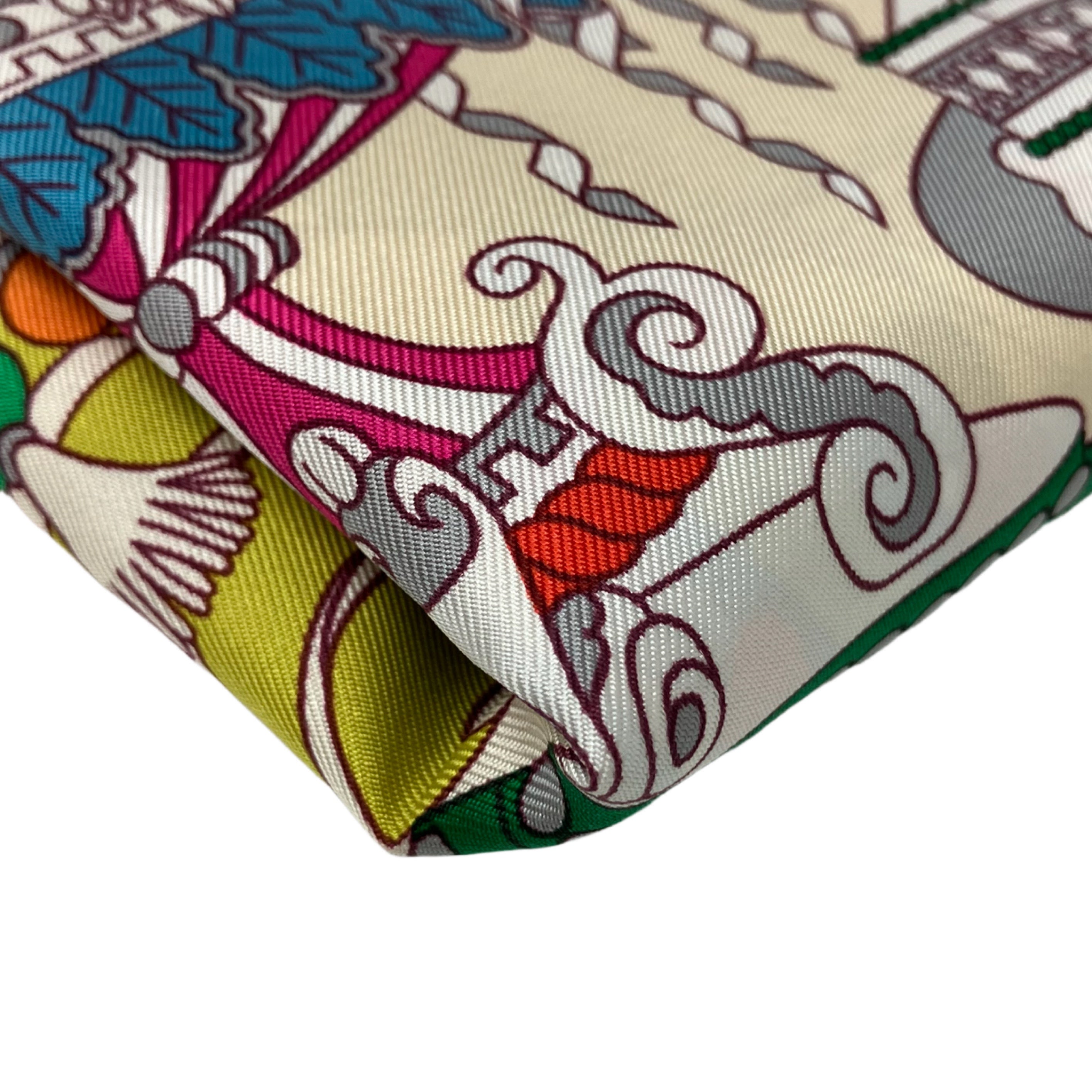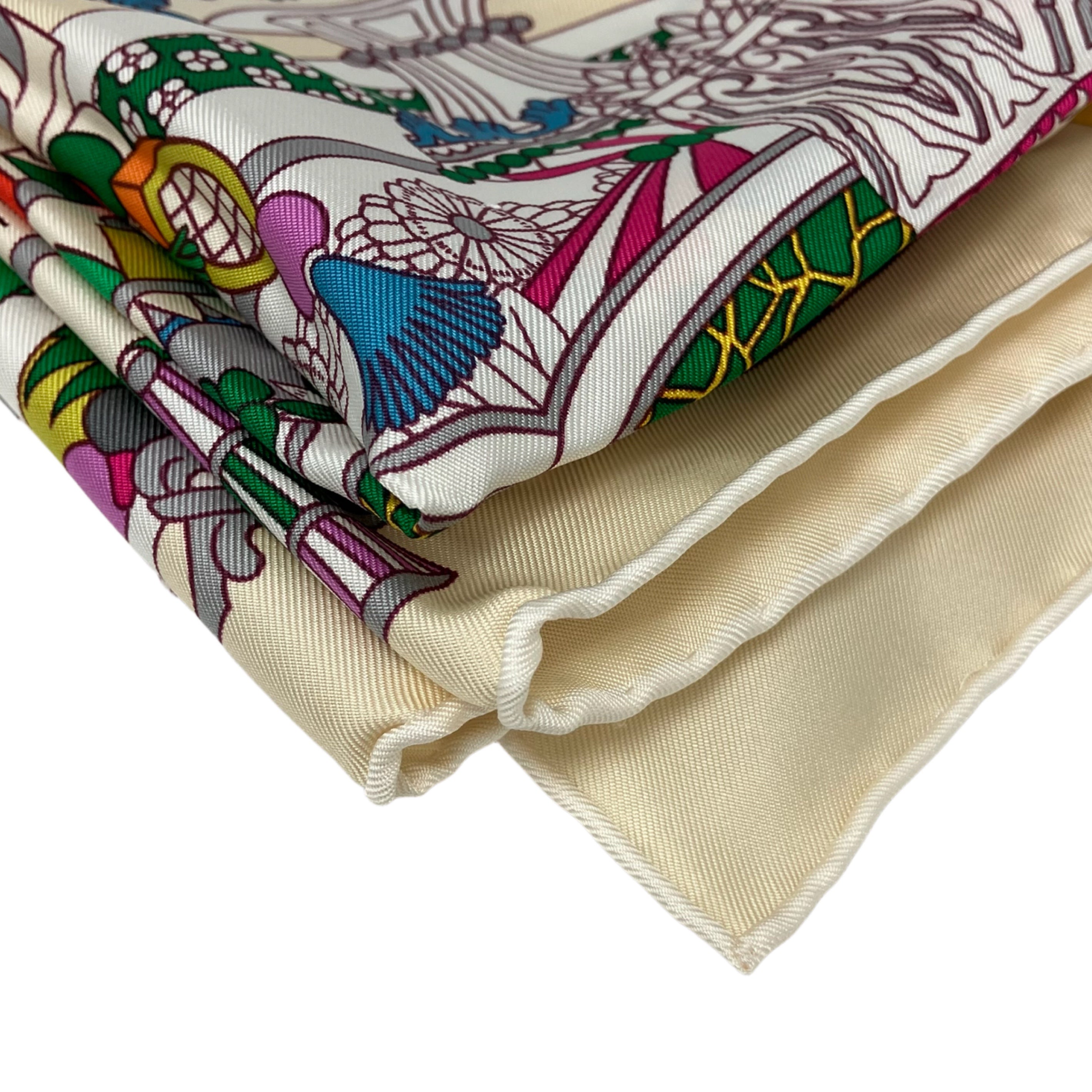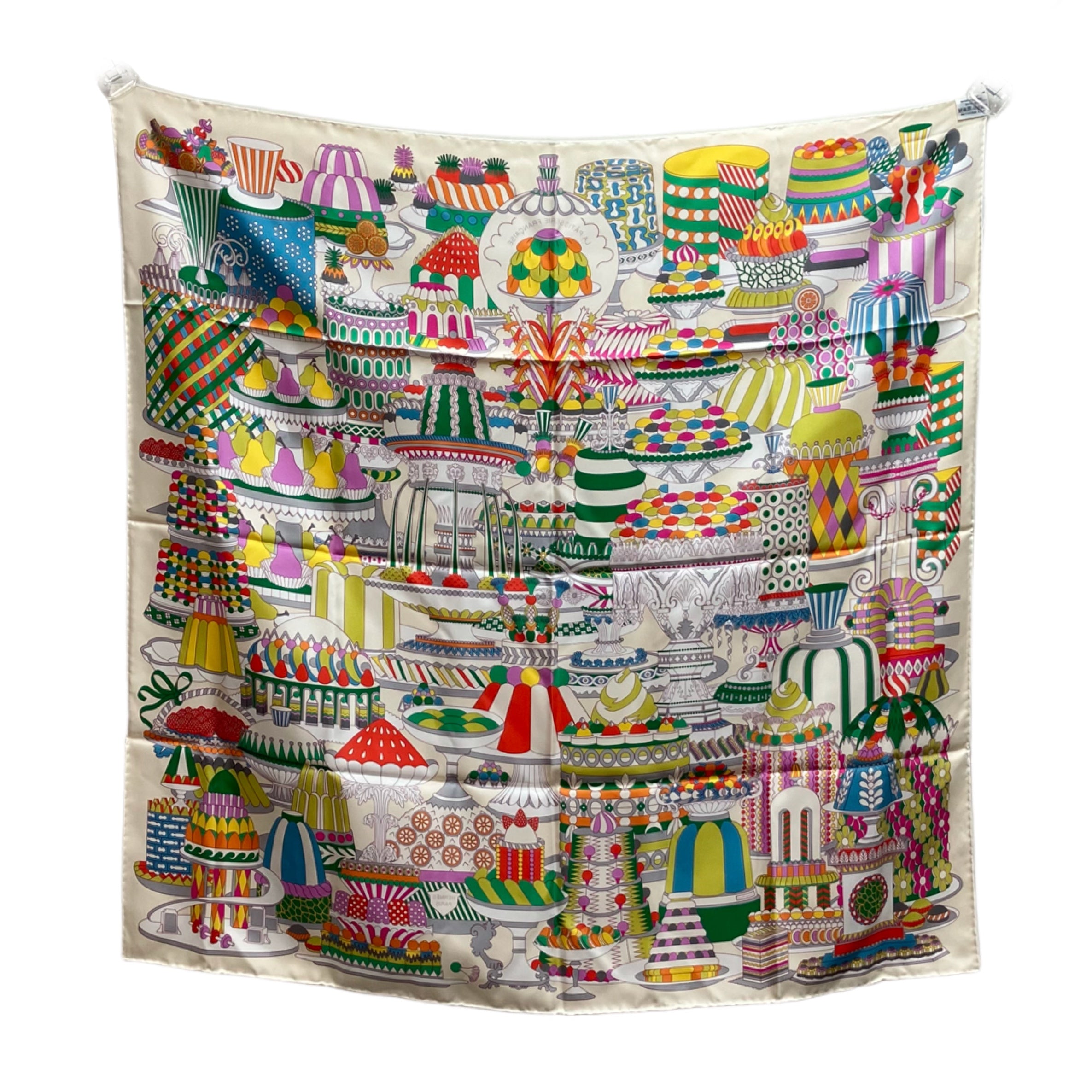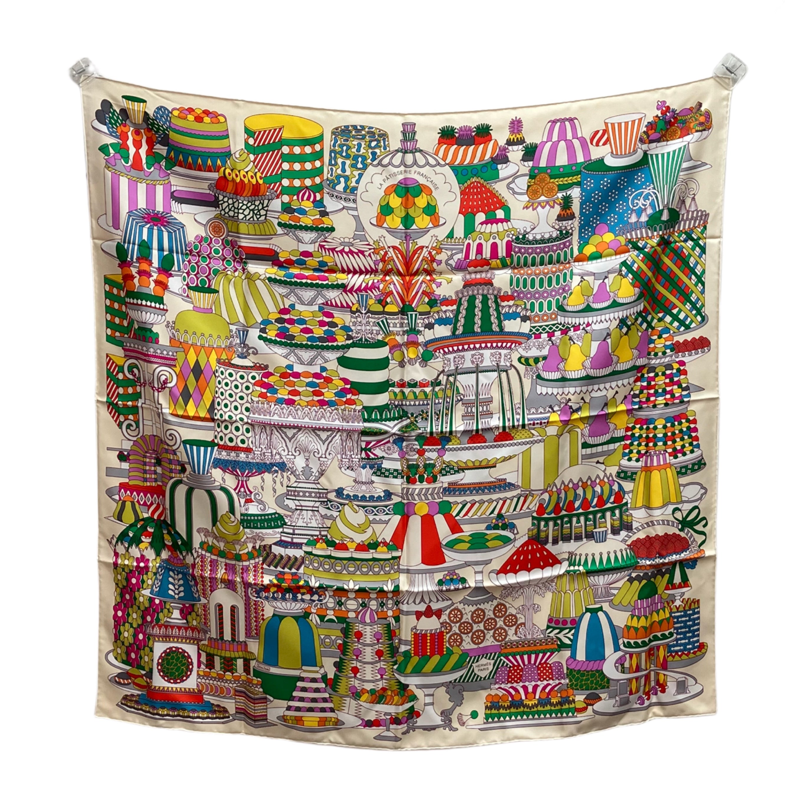 ☆ Hermes 愛馬仕 Light Yellow Multicolor 100% Silk La Patisserie Francaise Scarf 淺黃色多色100%絲巾- 267002086