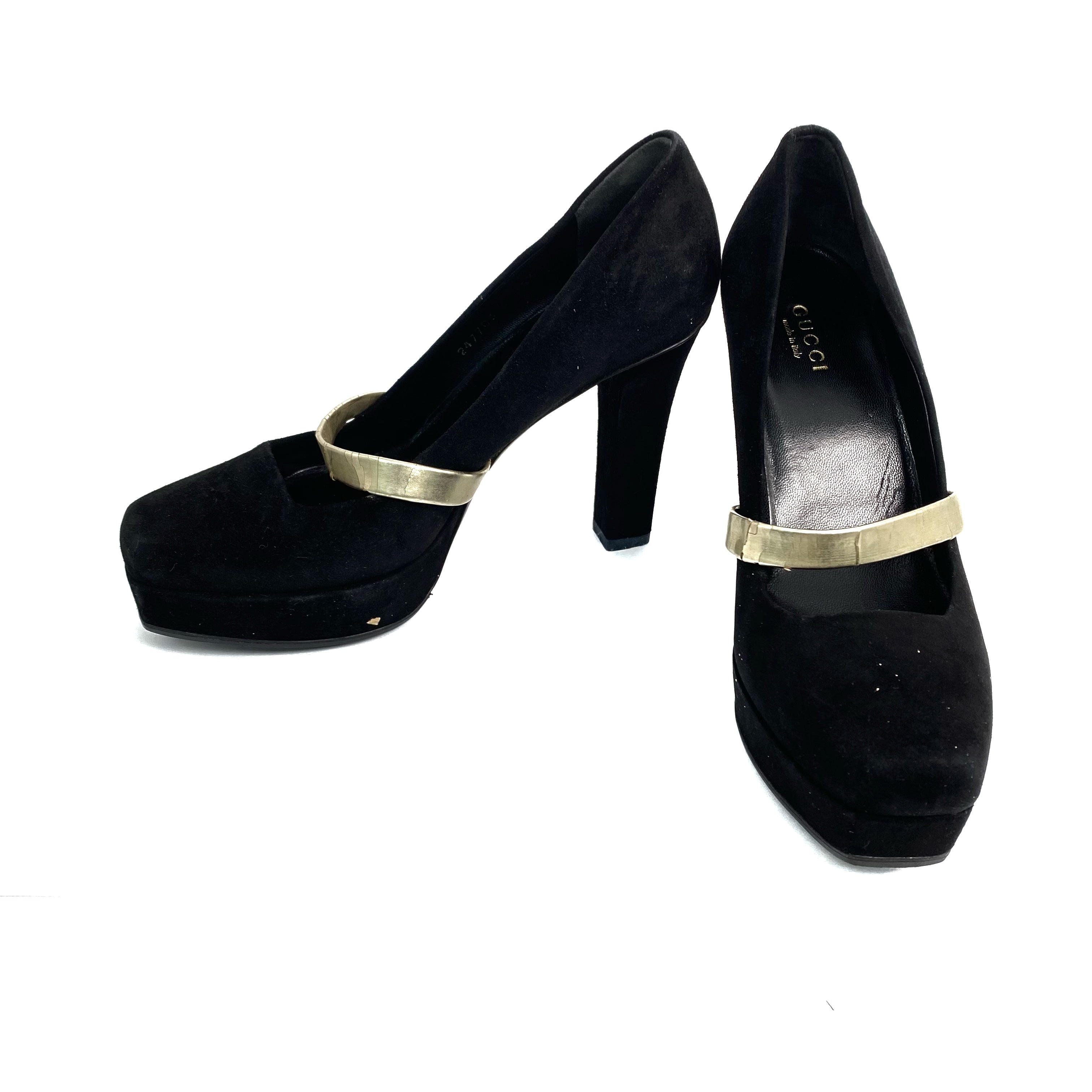☆ Gucci 古馳 Black Suede Heels #35.5 黑色麂皮高跟鞋 35.5碼 - 257022276