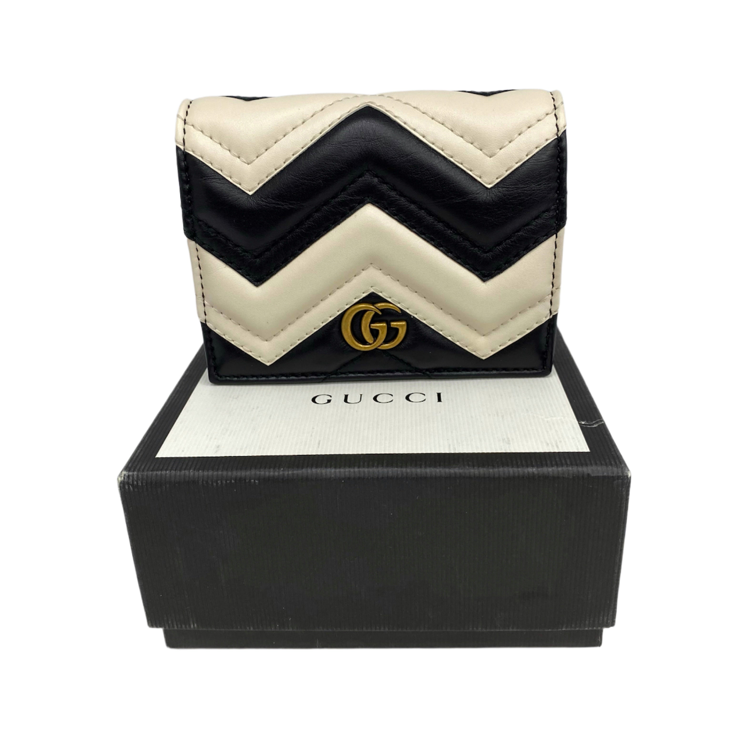 ☆ Gucci 古馳 Black White Calfskin Marmont Short Wallet 443125 黑色白色小牛皮短銀包 443125 - 267002527