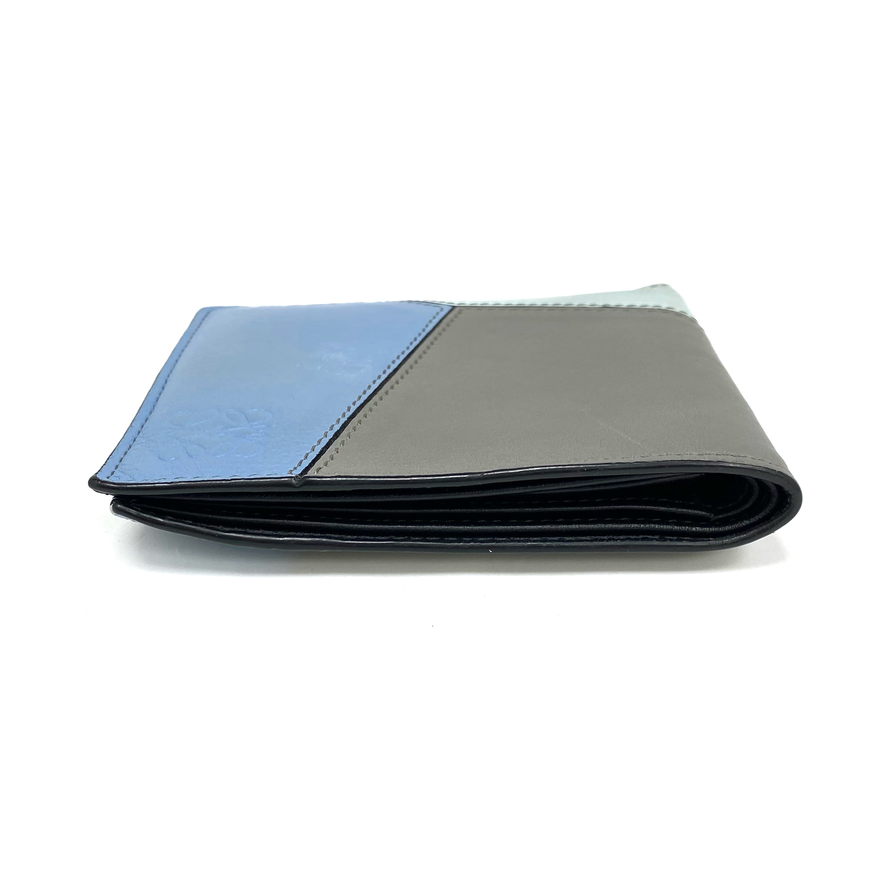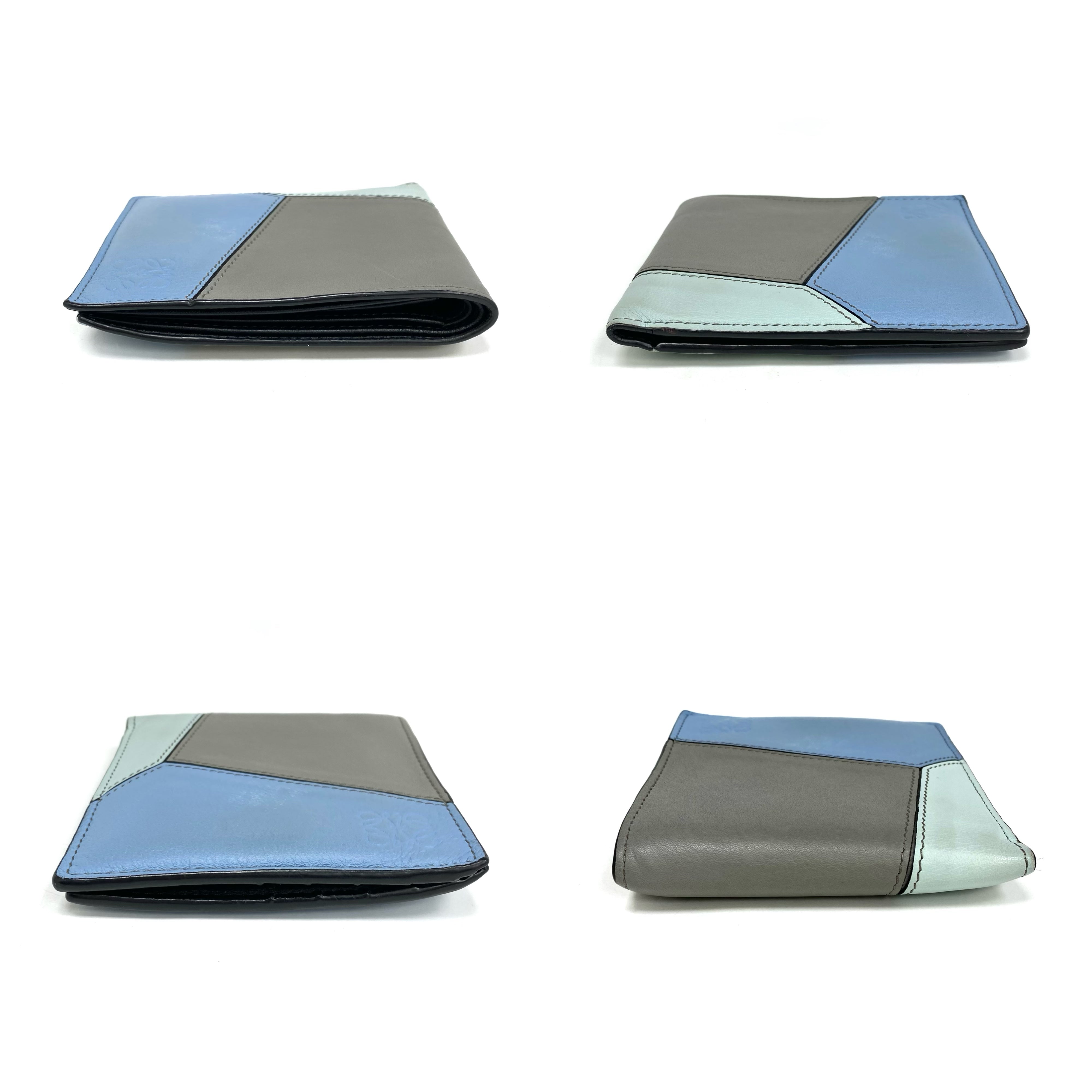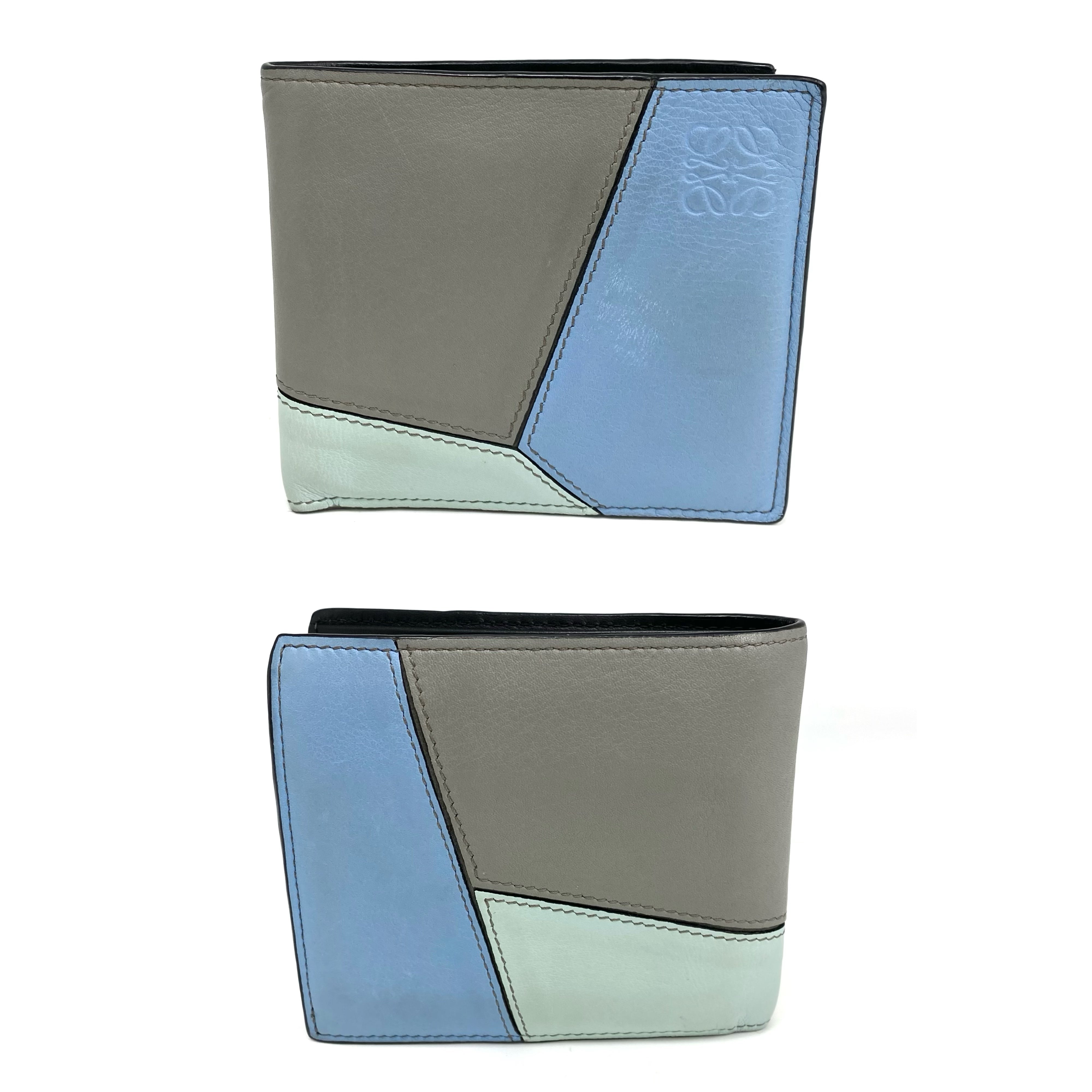 ☆ Loewe 羅意威 Blue, Grey Calfskin Puzzle Short Wallet 藍色和灰色小牛皮短銀包 - 257026105