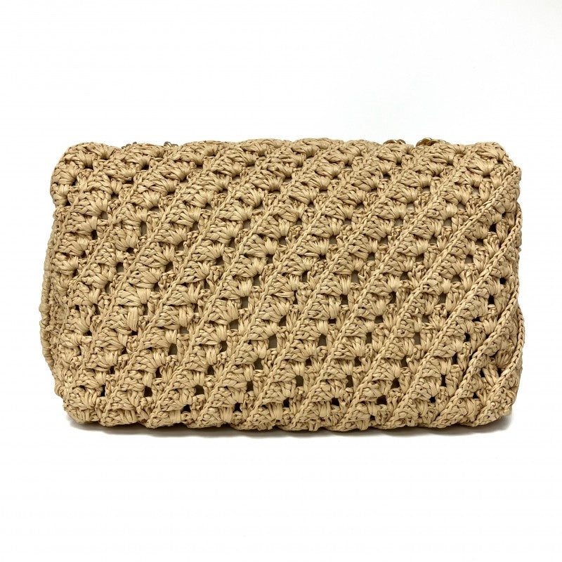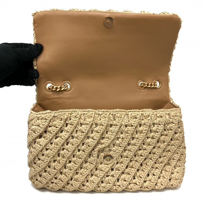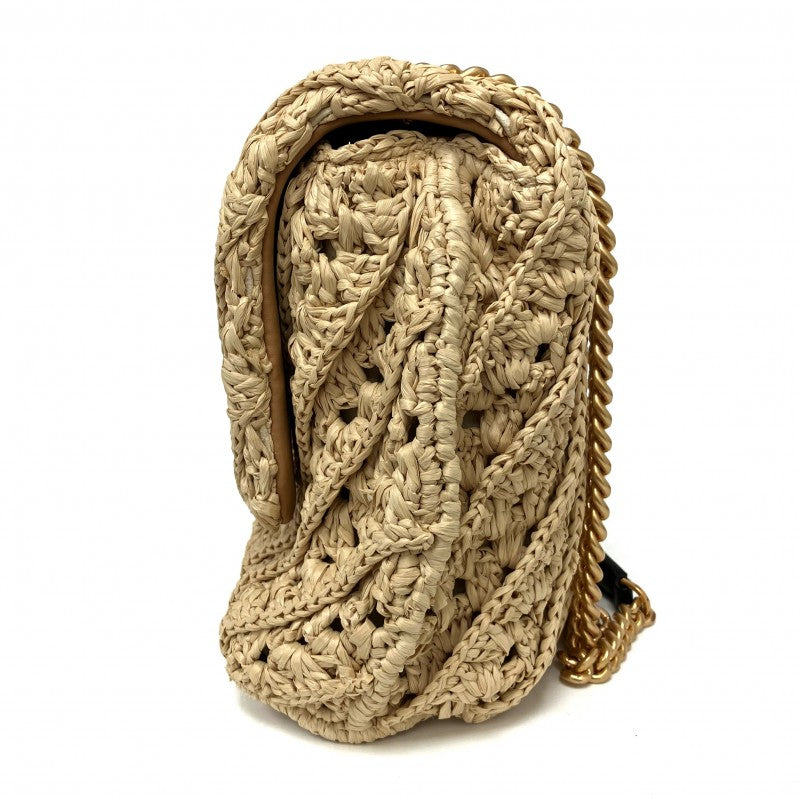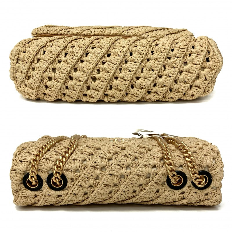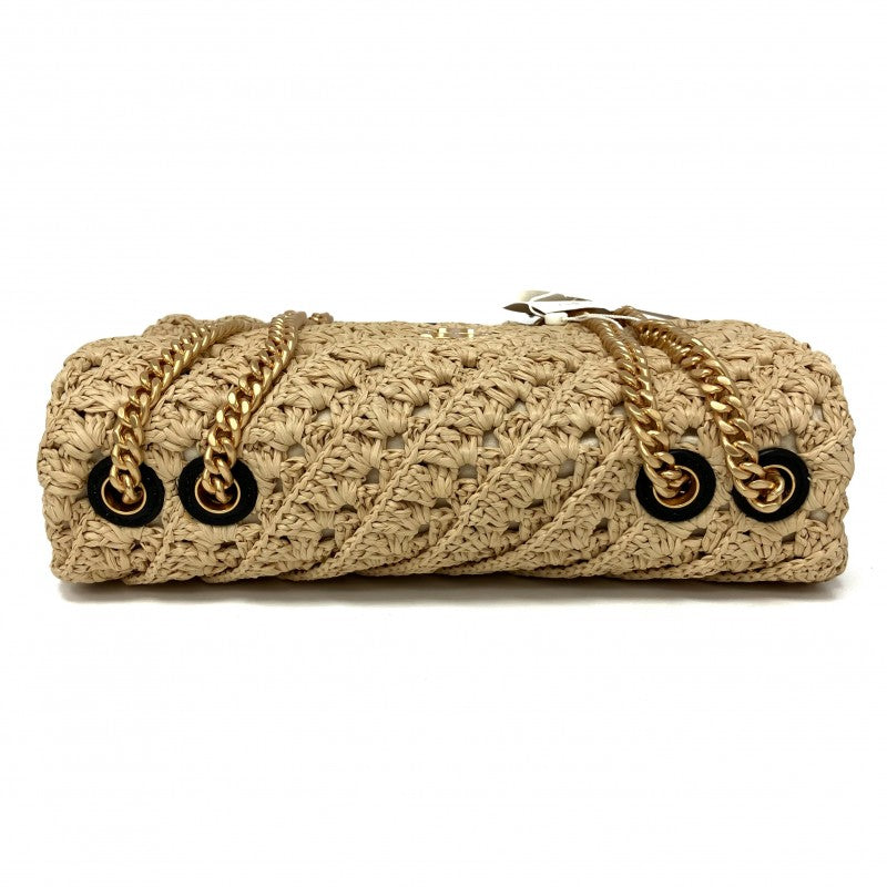 名稱 Name | 米色拉菲草鏈條肩背袋 Beige Raffia Chain Shoulder Bag |