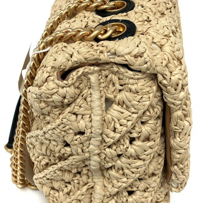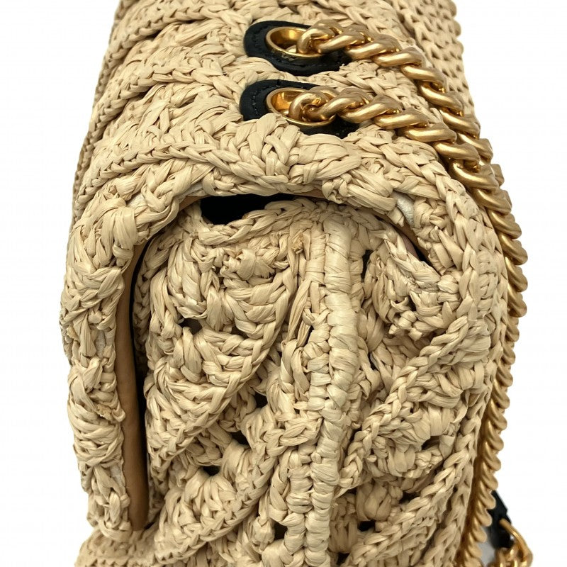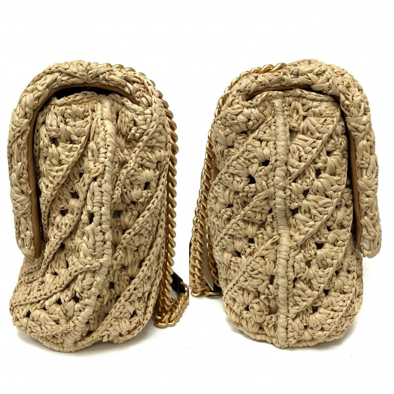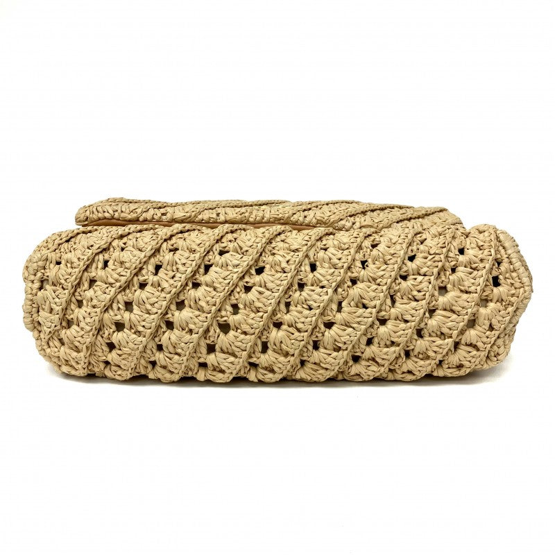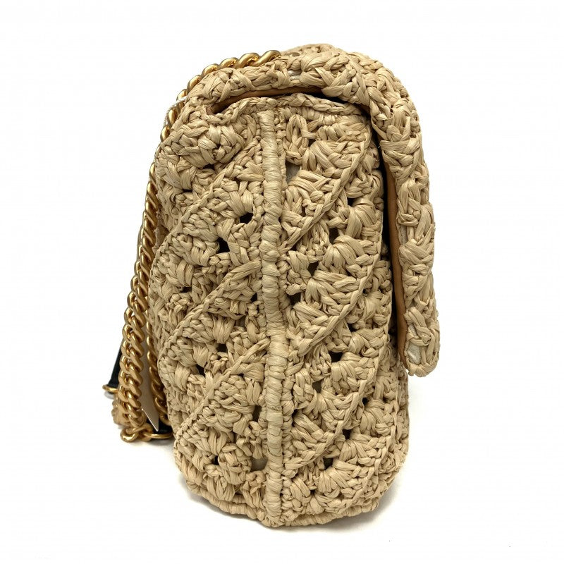 名稱 Name | 米色拉菲草鏈條肩背袋 Beige Raffia Chain Shoulder Bag |