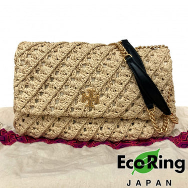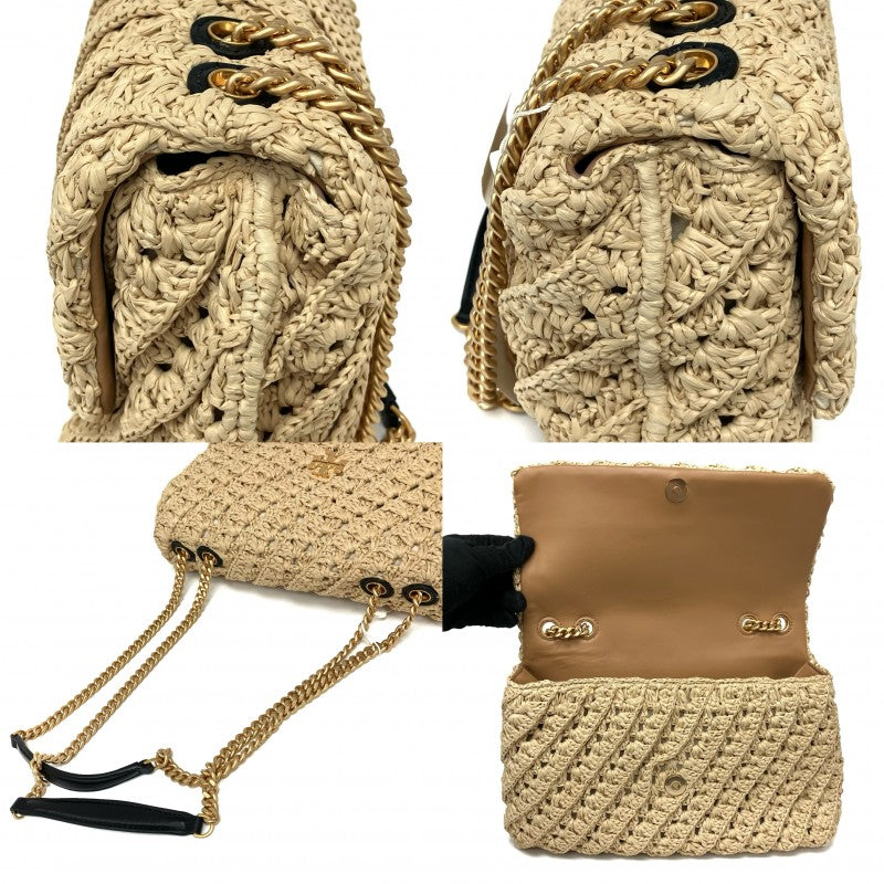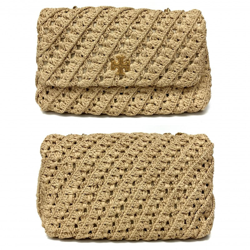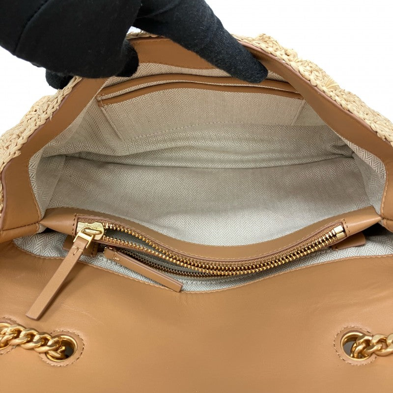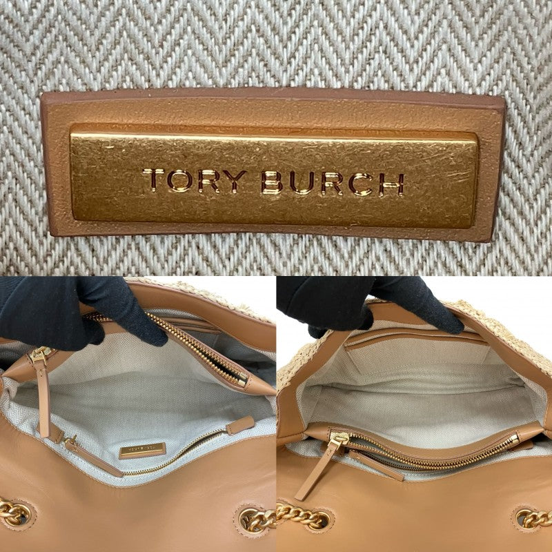 ☆Tory Burch 托里伯奇 Beige Raffia Chain Shoulder Bag 米色拉菲草鏈條肩背袋 - 257018009
