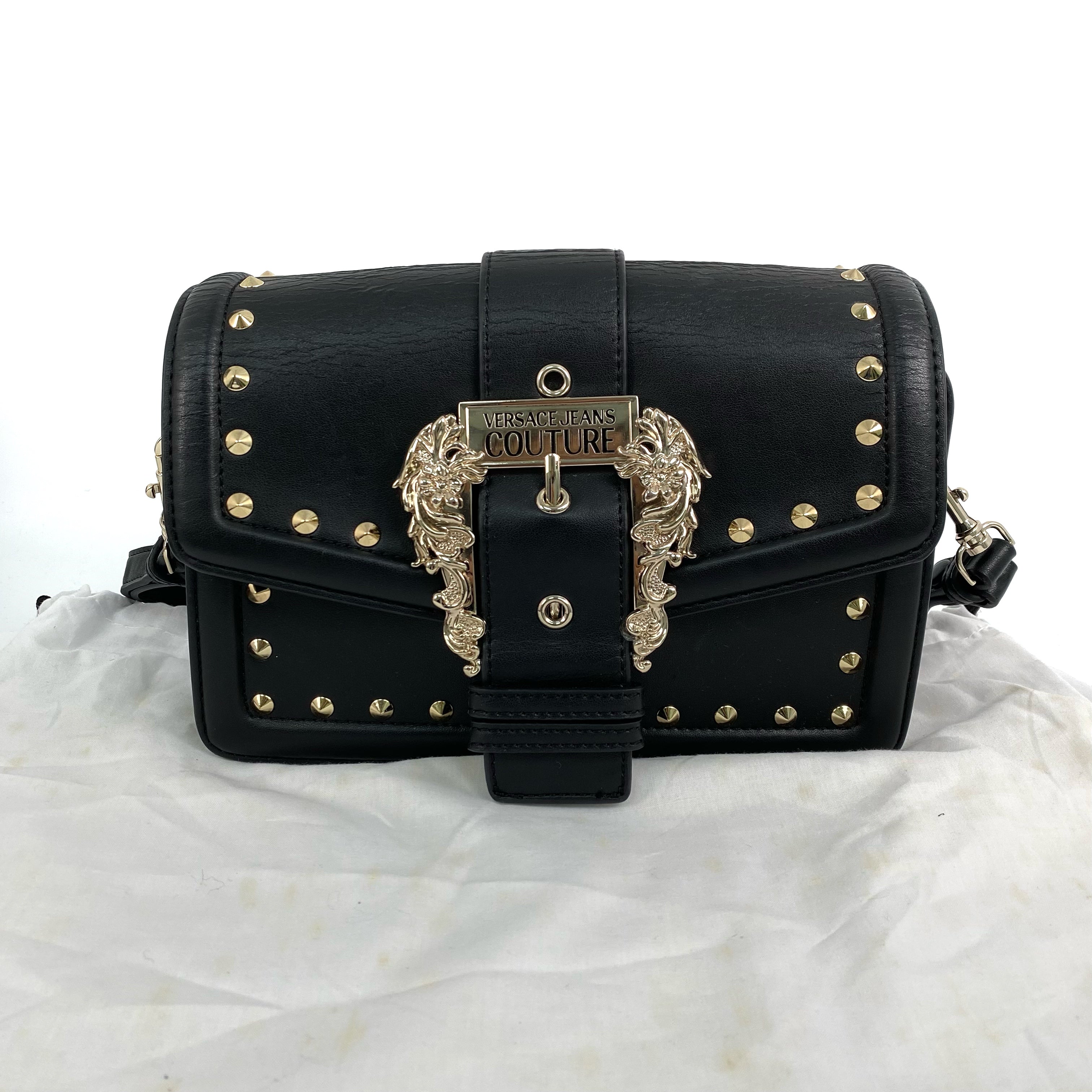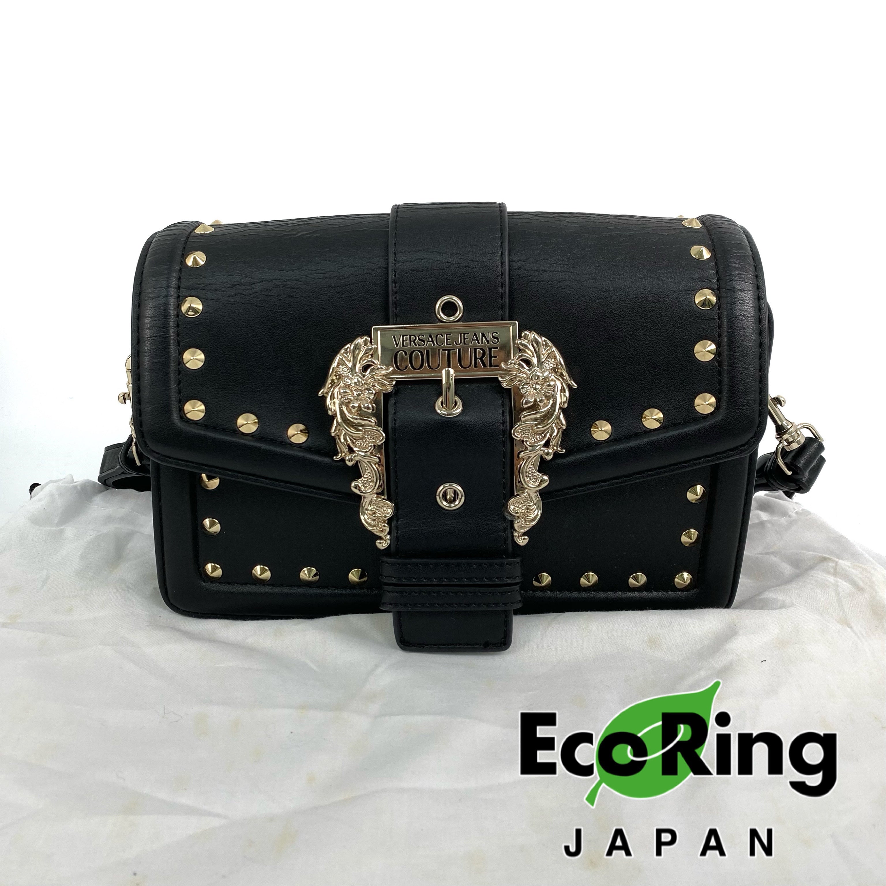 ☆ Versace Jeans Couture Black Faux Leather Shoulder Bag 黑色仿皮革肩背袋 - 257023602
