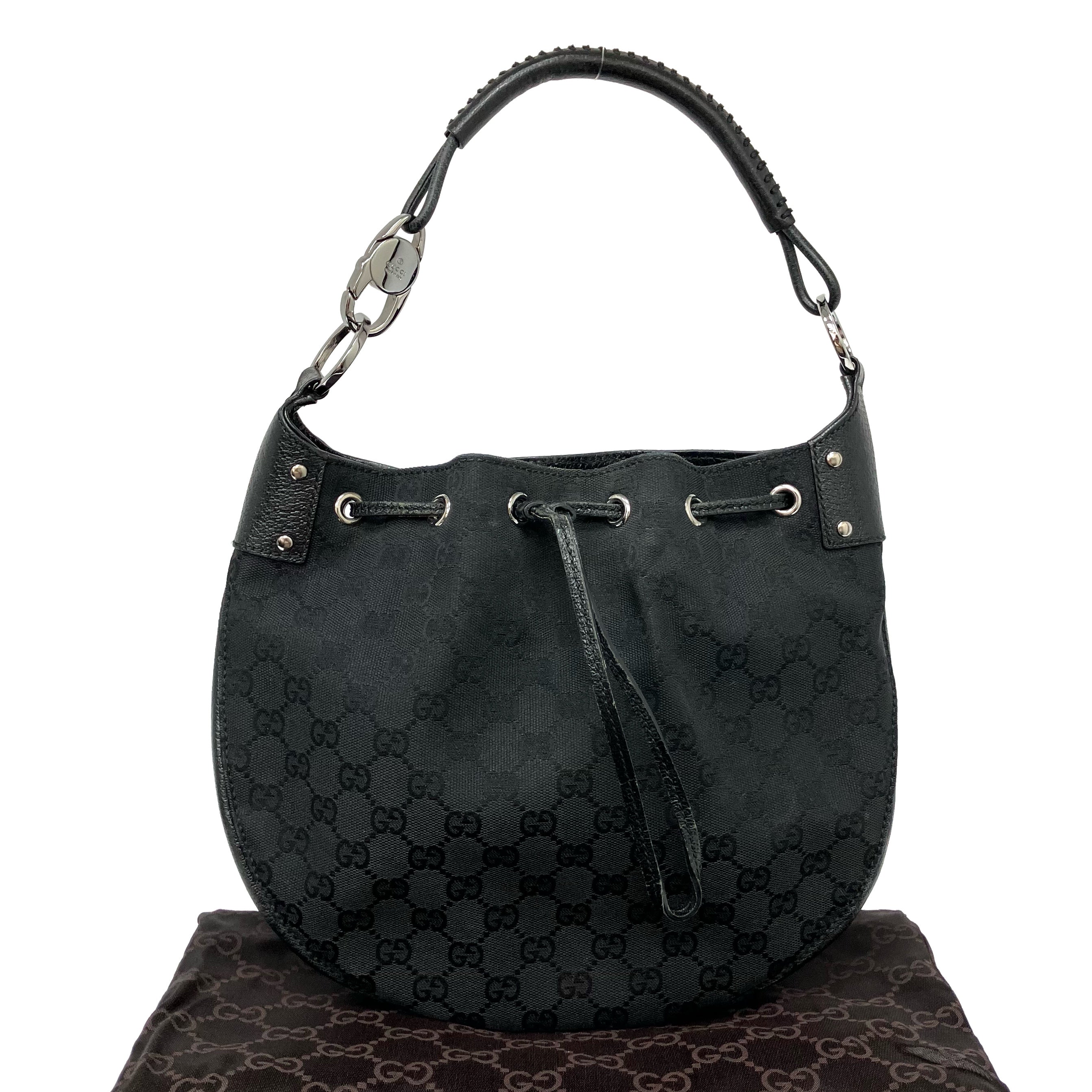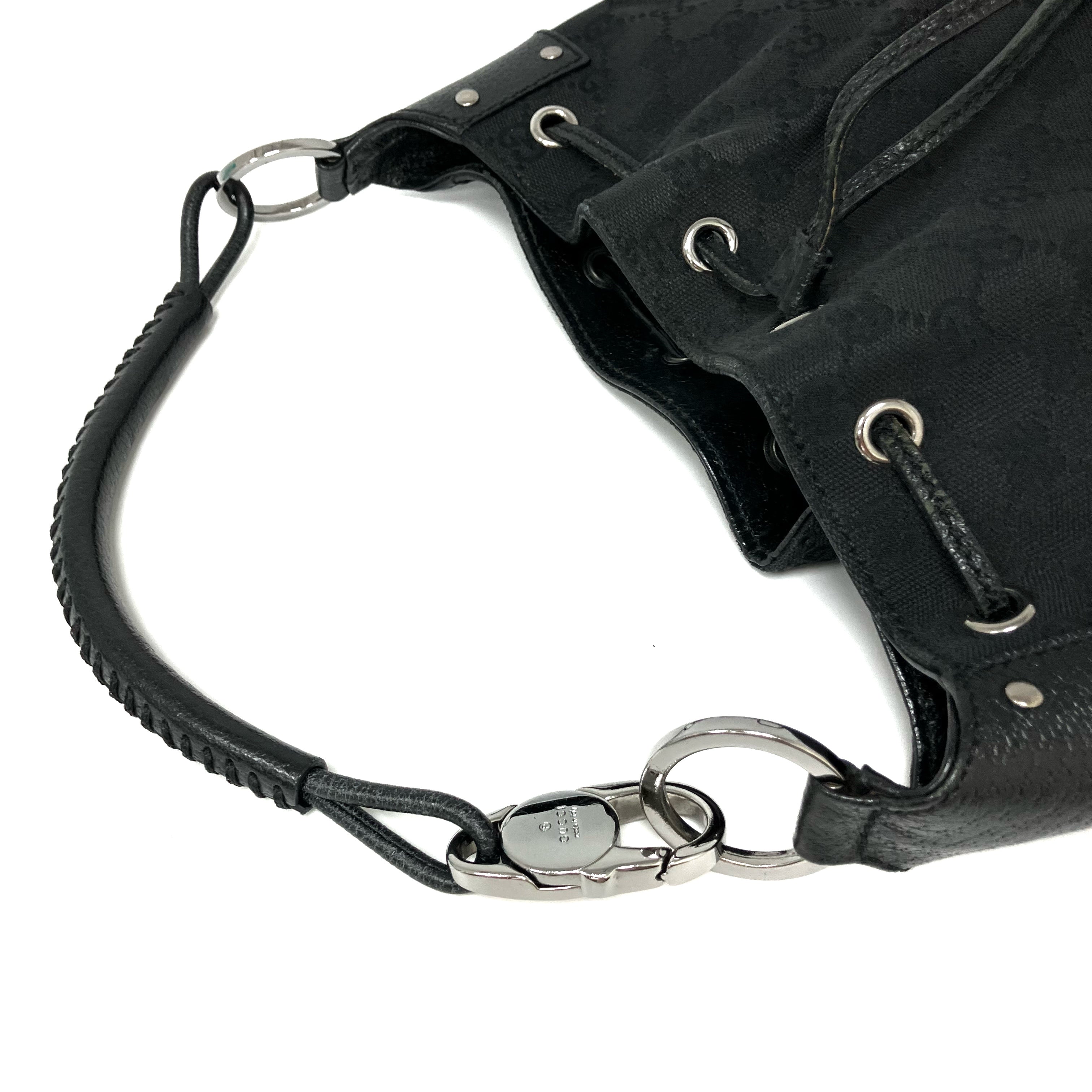 ☆ Gucci 古馳 Black Canvas Shoulder Bag 115006 黑色帆布肩背袋 - 267000638