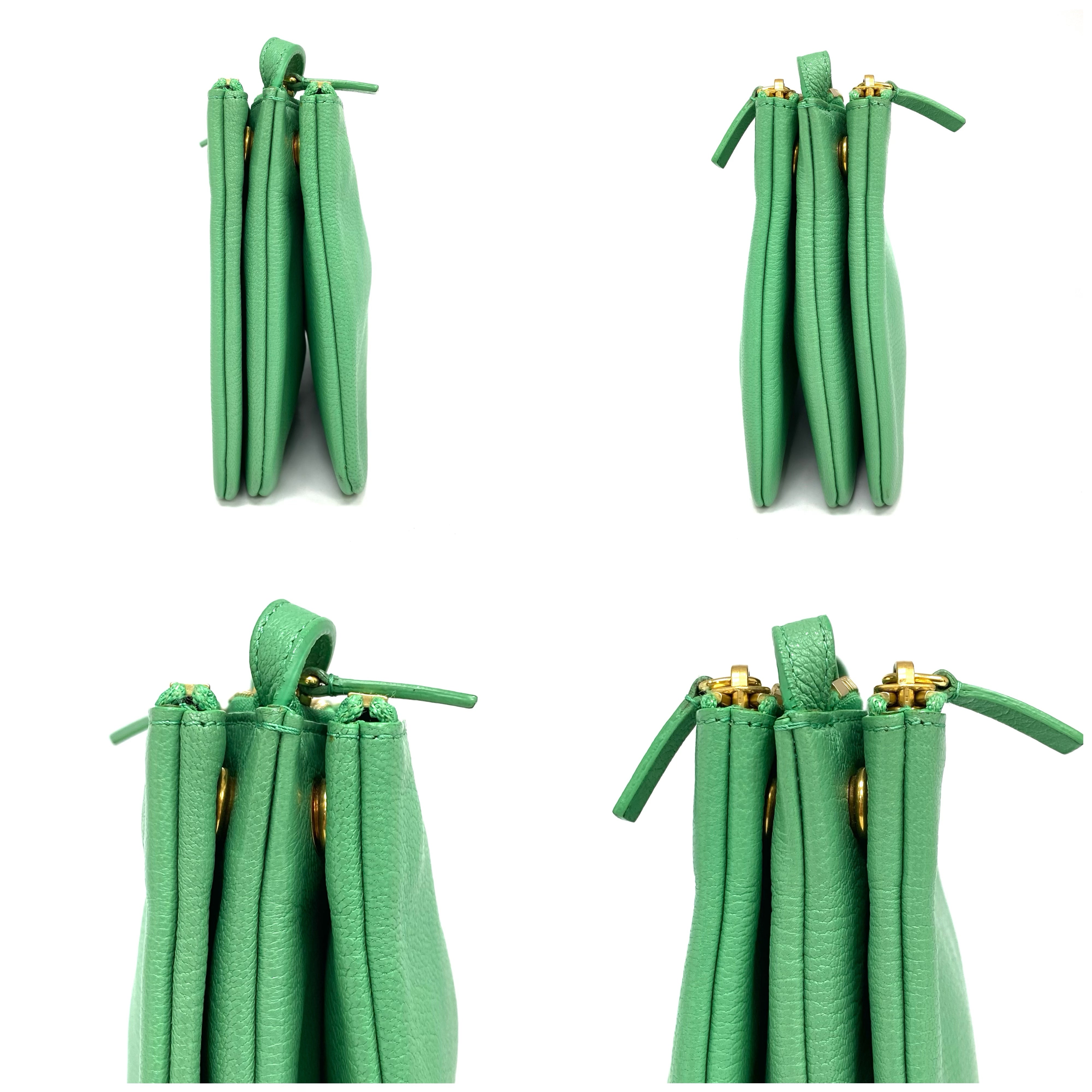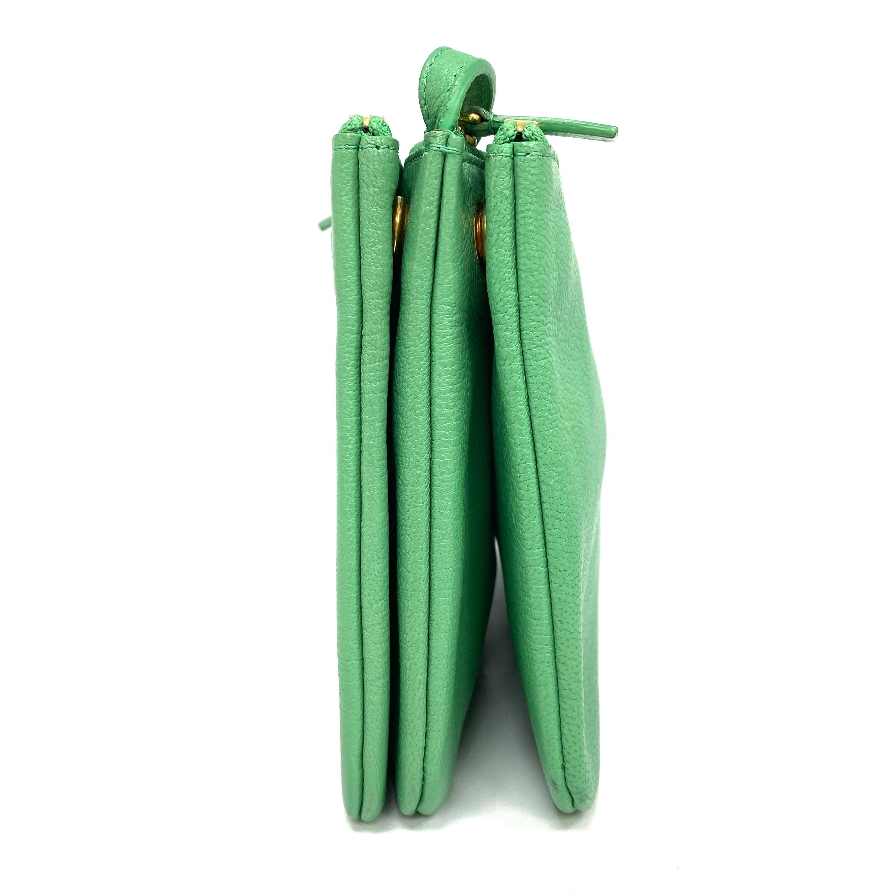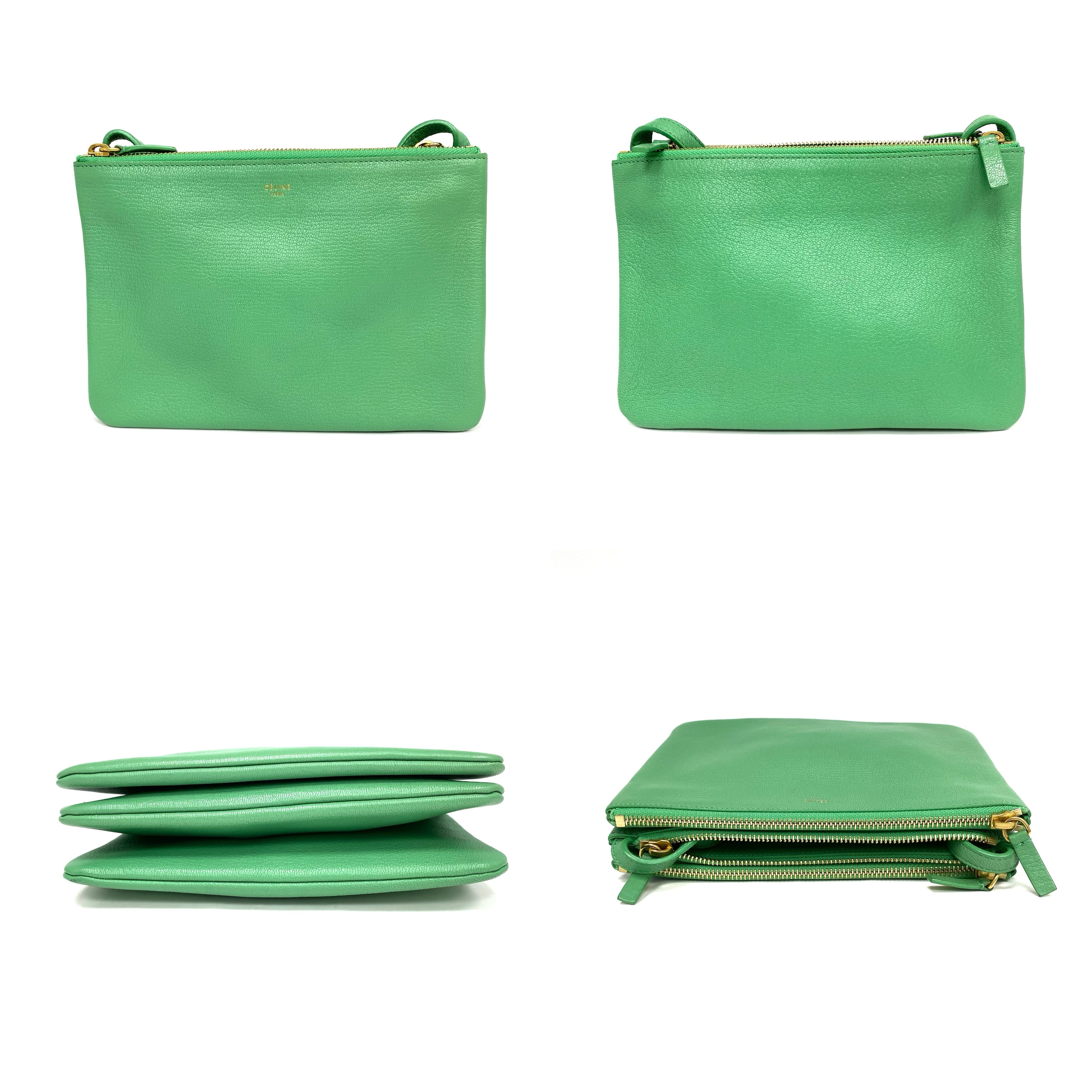 ☆ Celine 思琳 Green Goatskin Trio Crossbody Bag 綠色山羊皮斜揹袋 - 257025798
