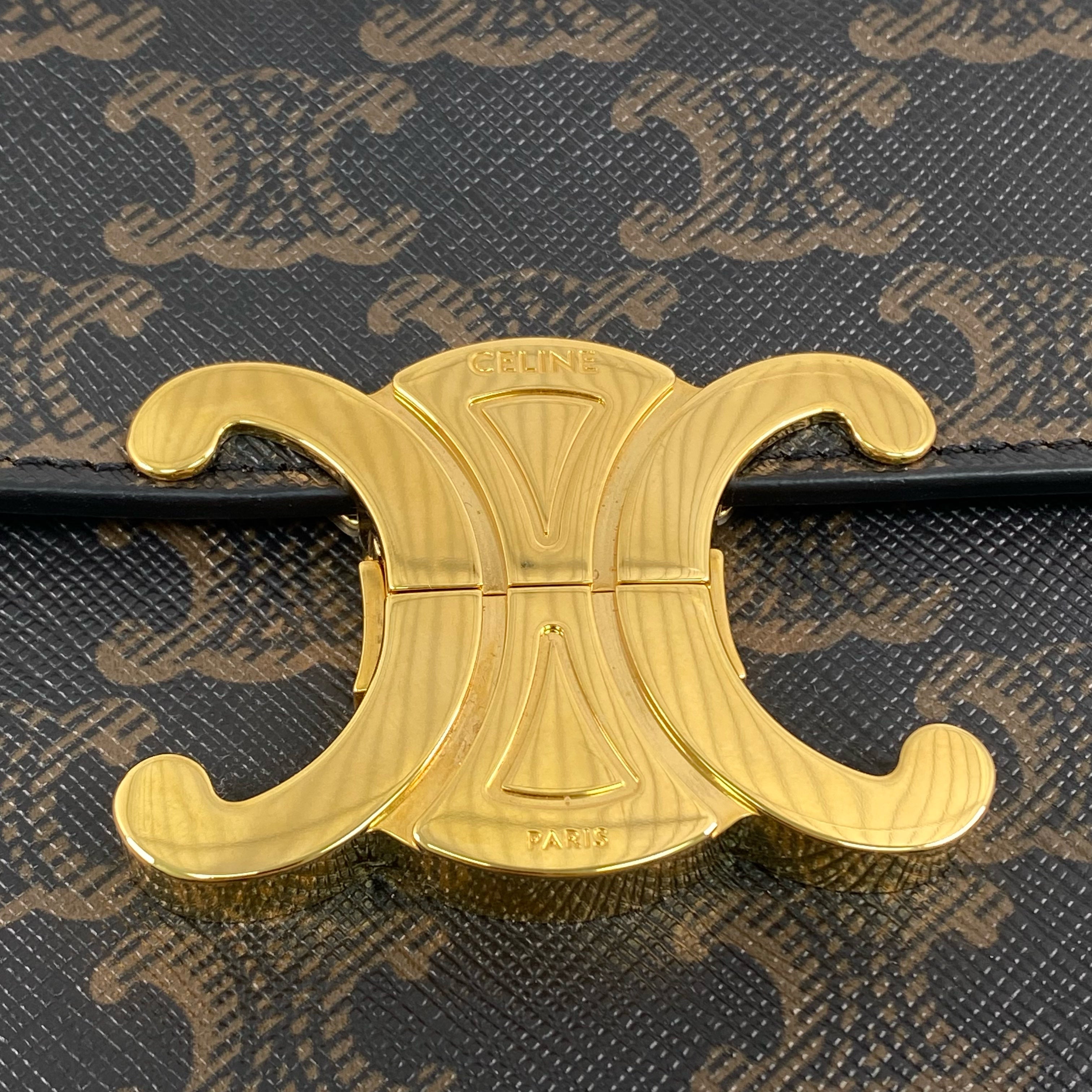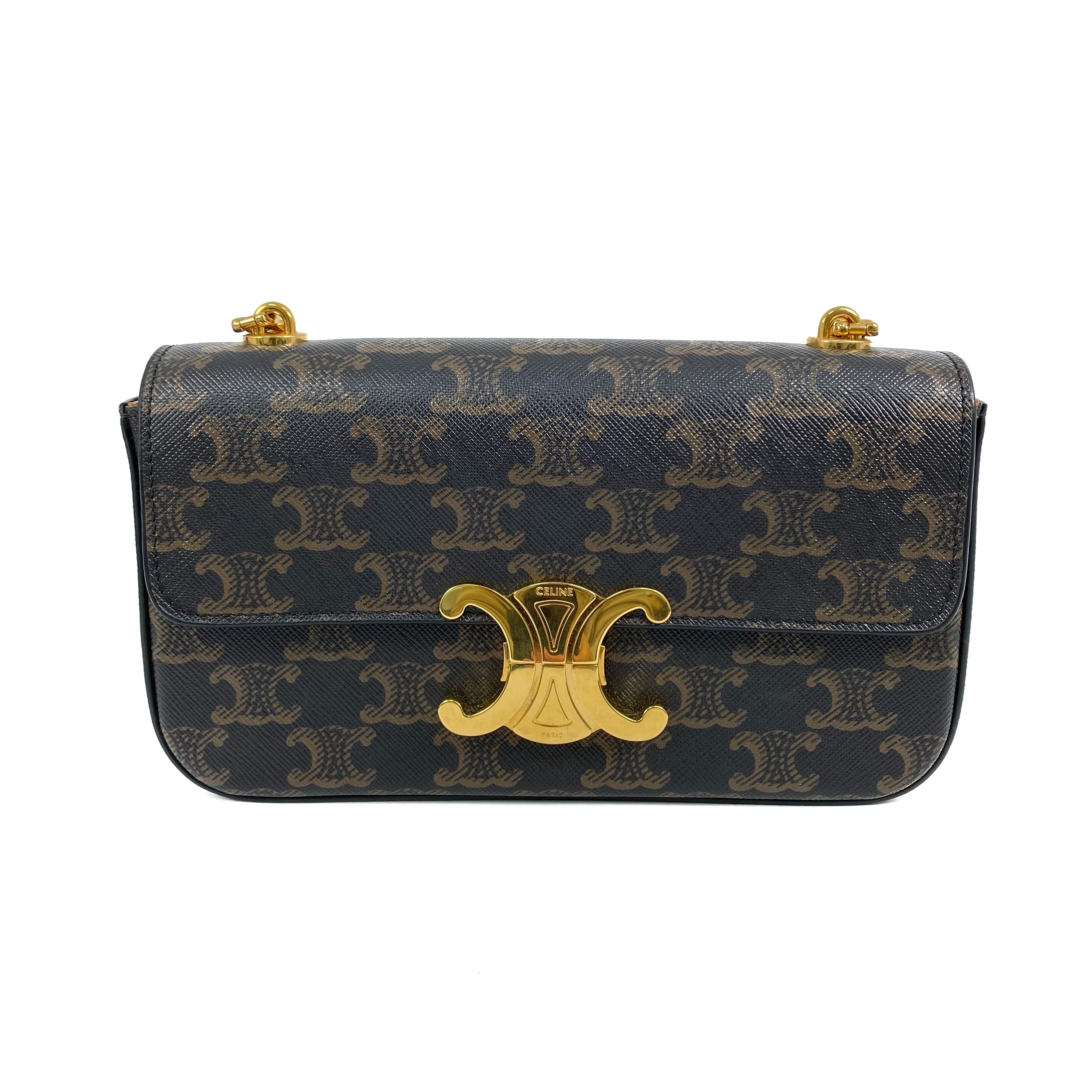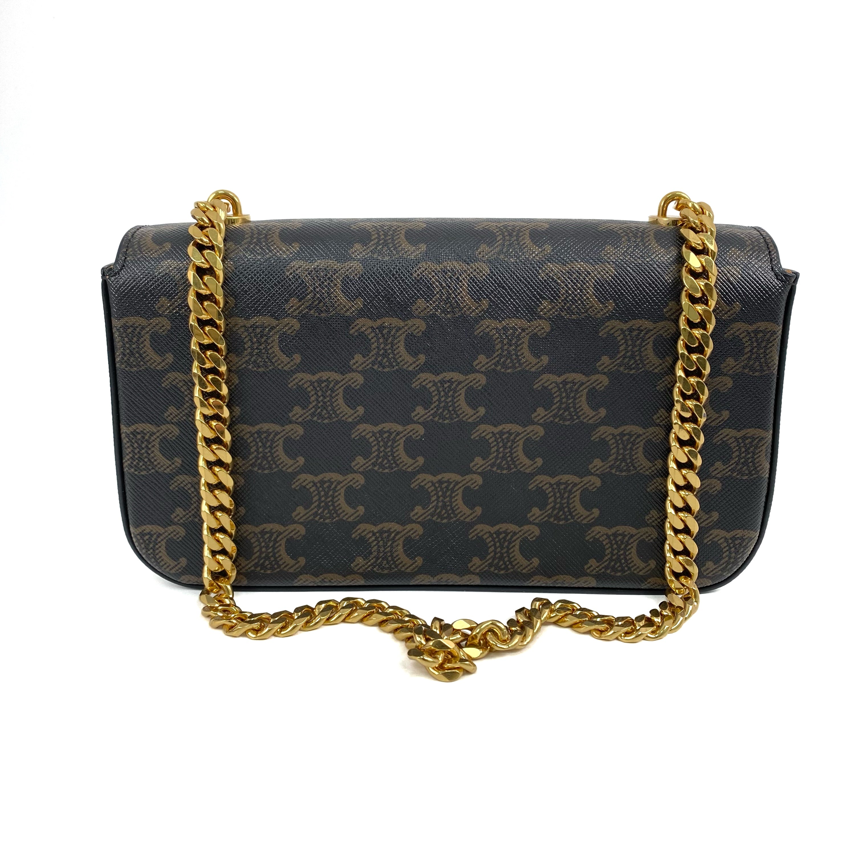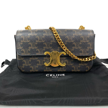 △ Celine 思琳 Dark Brown Coated Canvas Triomphe Chain Shoulder Bag 深啡色塗層帆布鎖鏈肩背袋 - 267003088