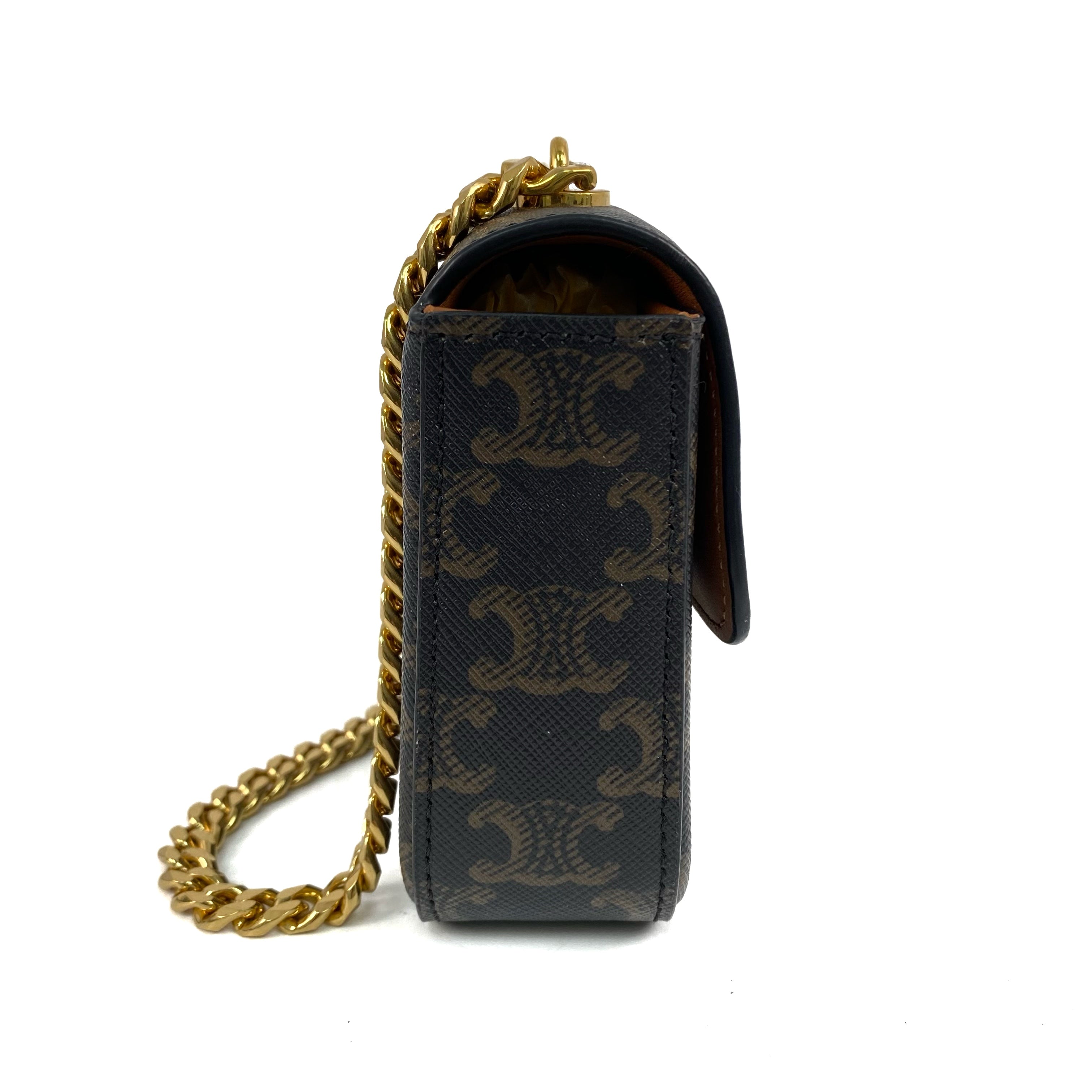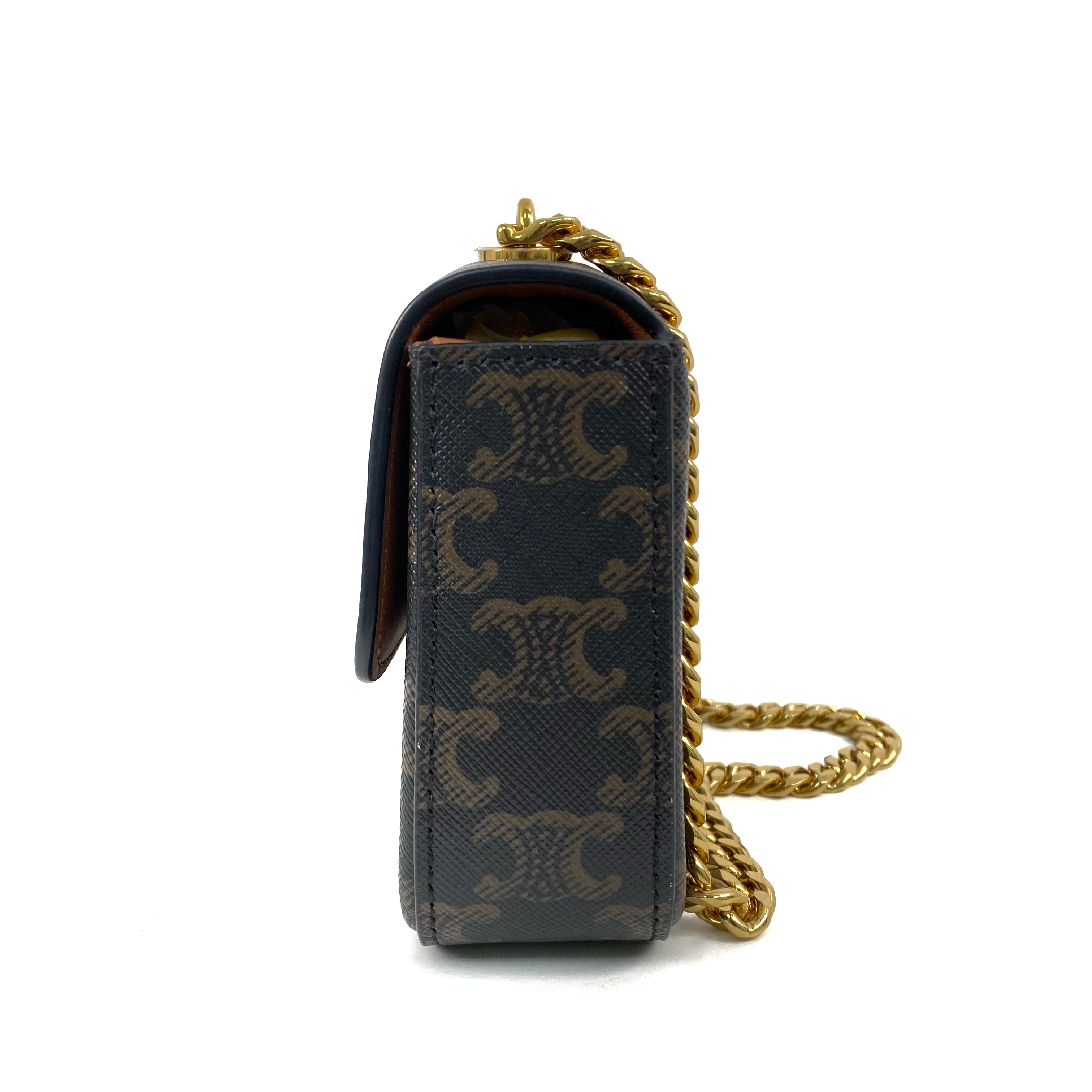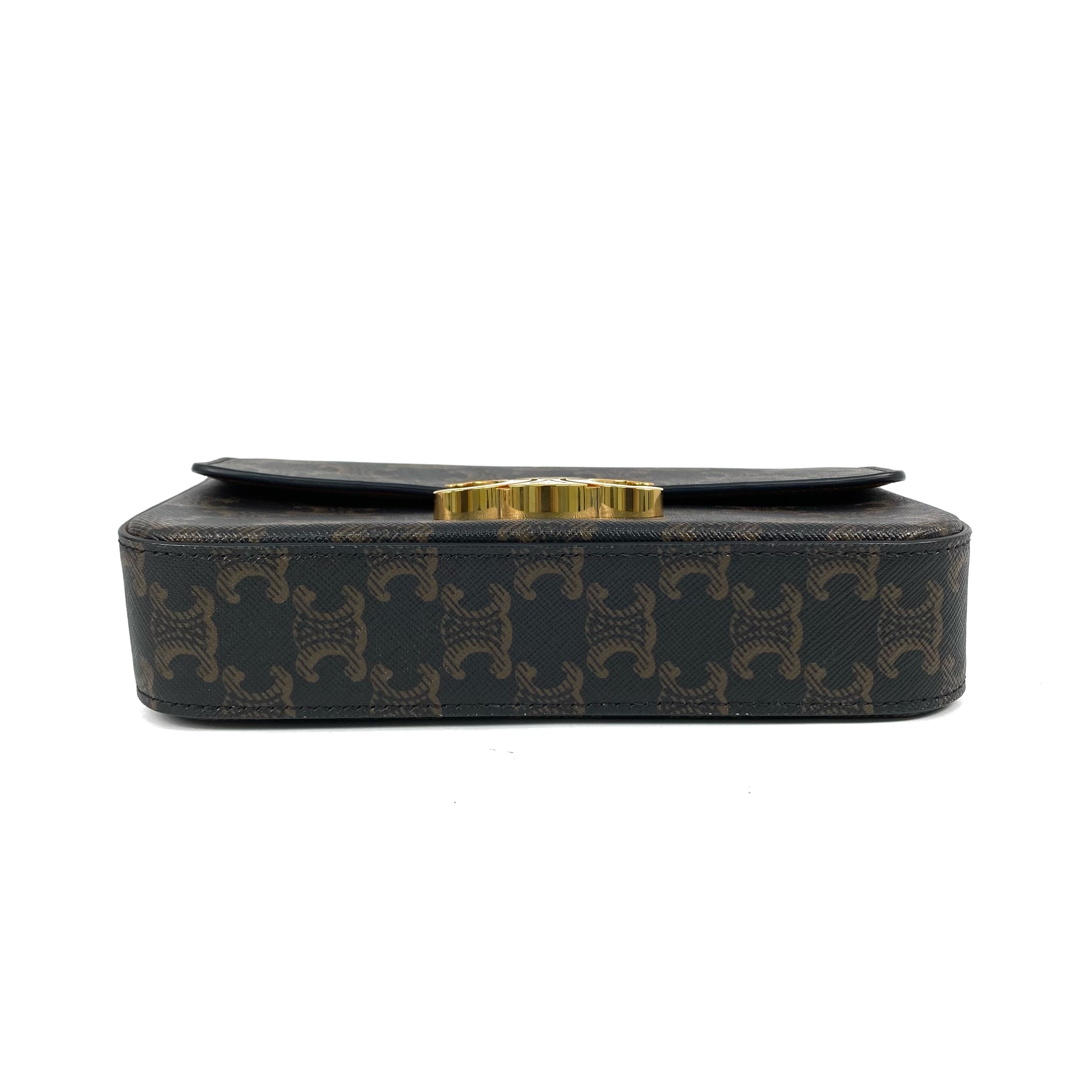 △ Celine 思琳 Dark Brown Coated Canvas Triomphe Chain Shoulder Bag 深啡色塗層帆布鎖鏈肩背袋 - 267003088