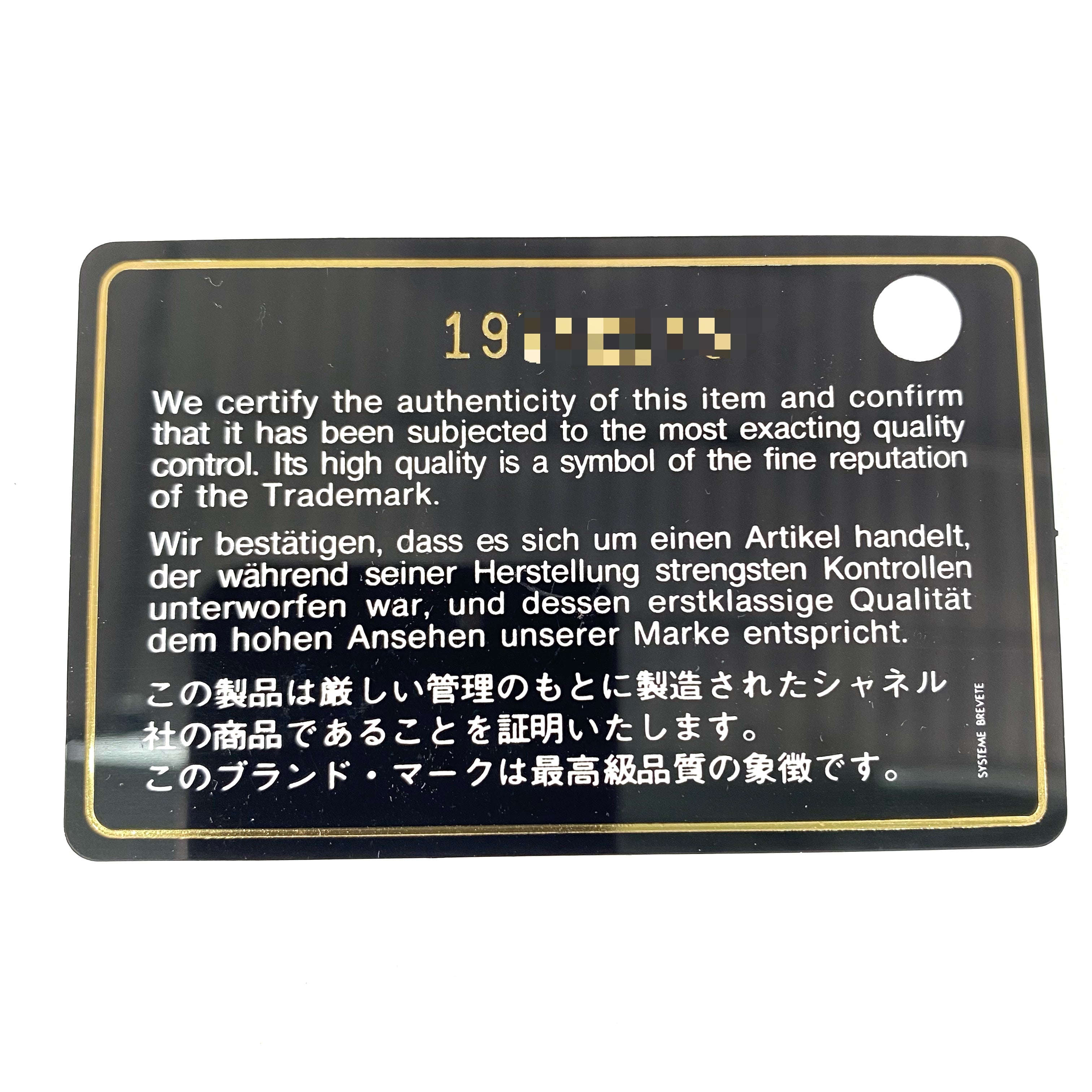| 附件 Accessory | (不會列出欠缺的原裝配件 Missing original accessories will not be listed ) 只有 塵袋, 卡, 貼紙, 專門店收據(7/2014) Dust bag, card, sticker, Chanel receipt(7/2014) only |