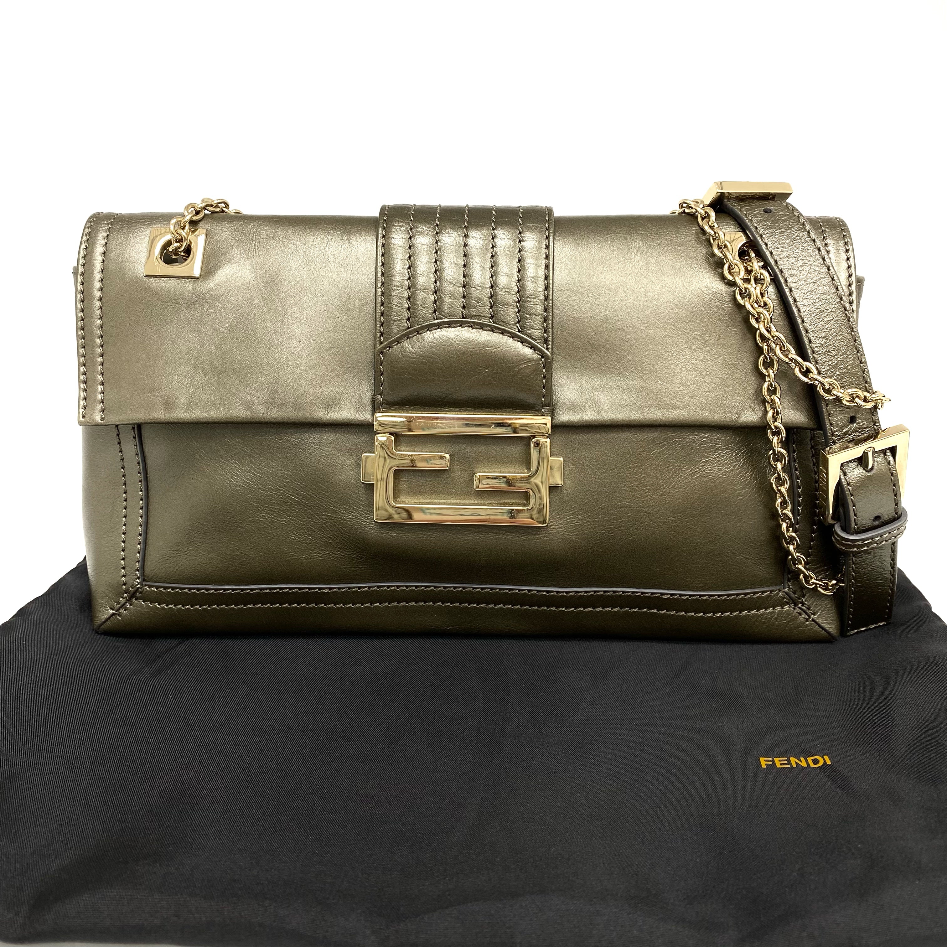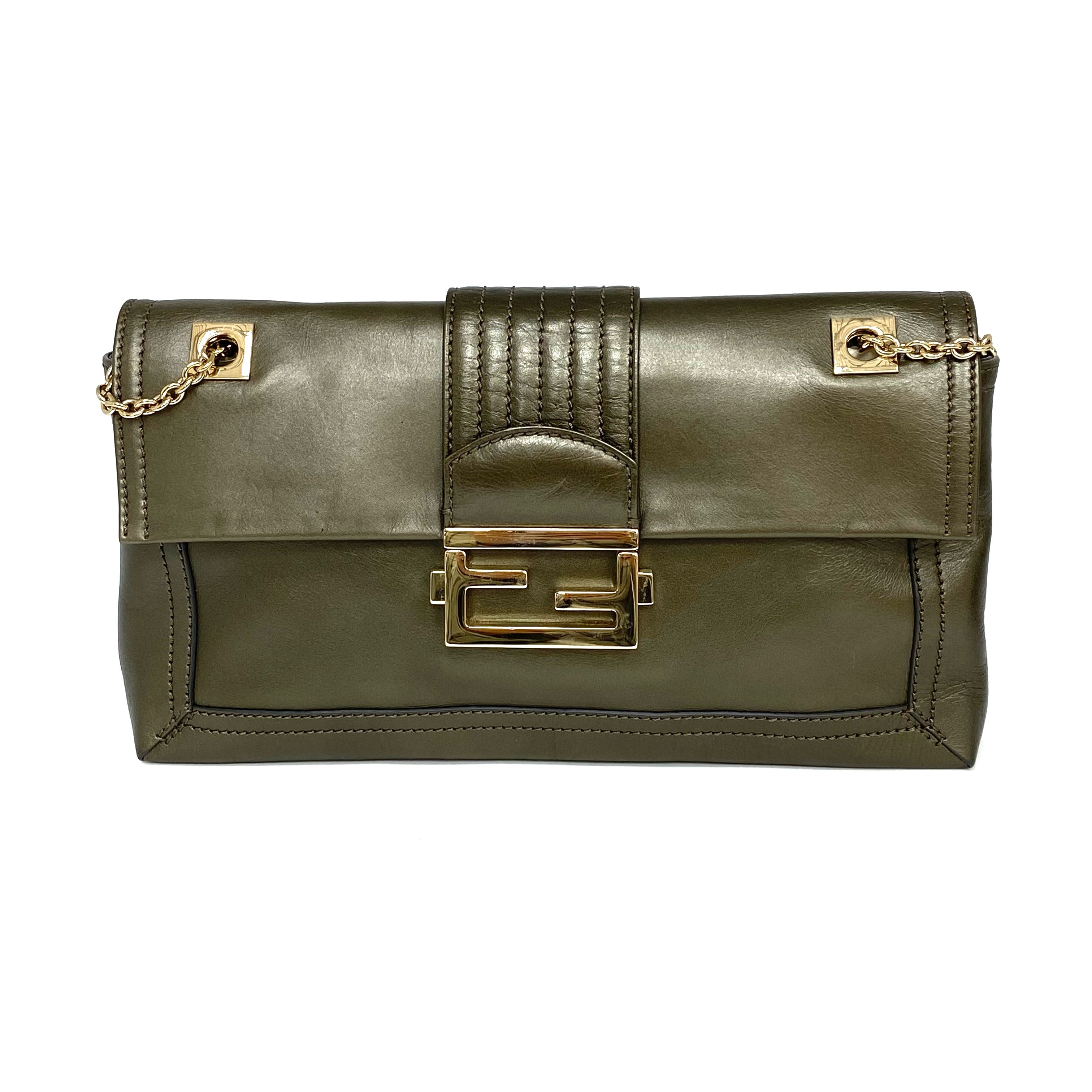 ☆ Fendi 芬迪 Green Calfskin Chain Shoulder Bag 綠色小牛皮鏈條肩背袋 - 267002610