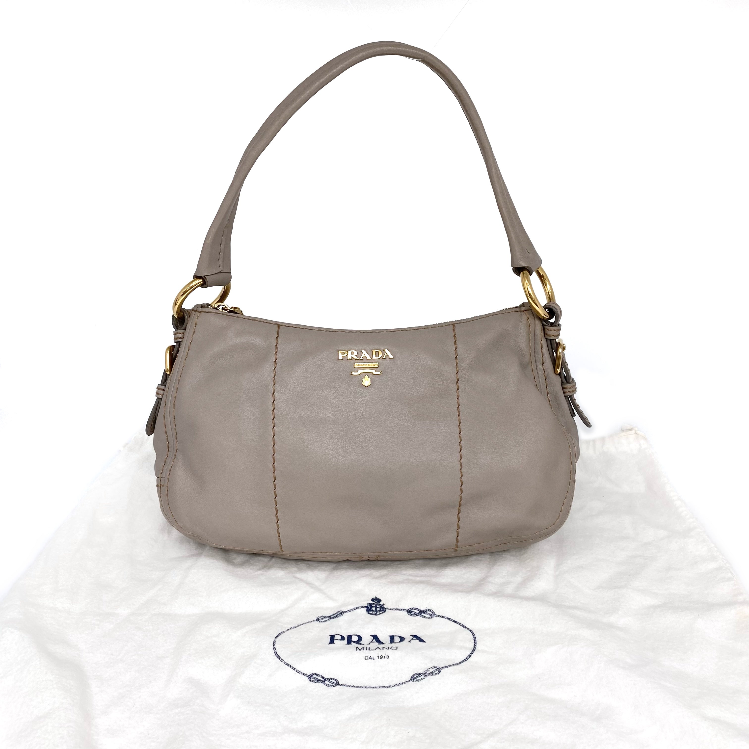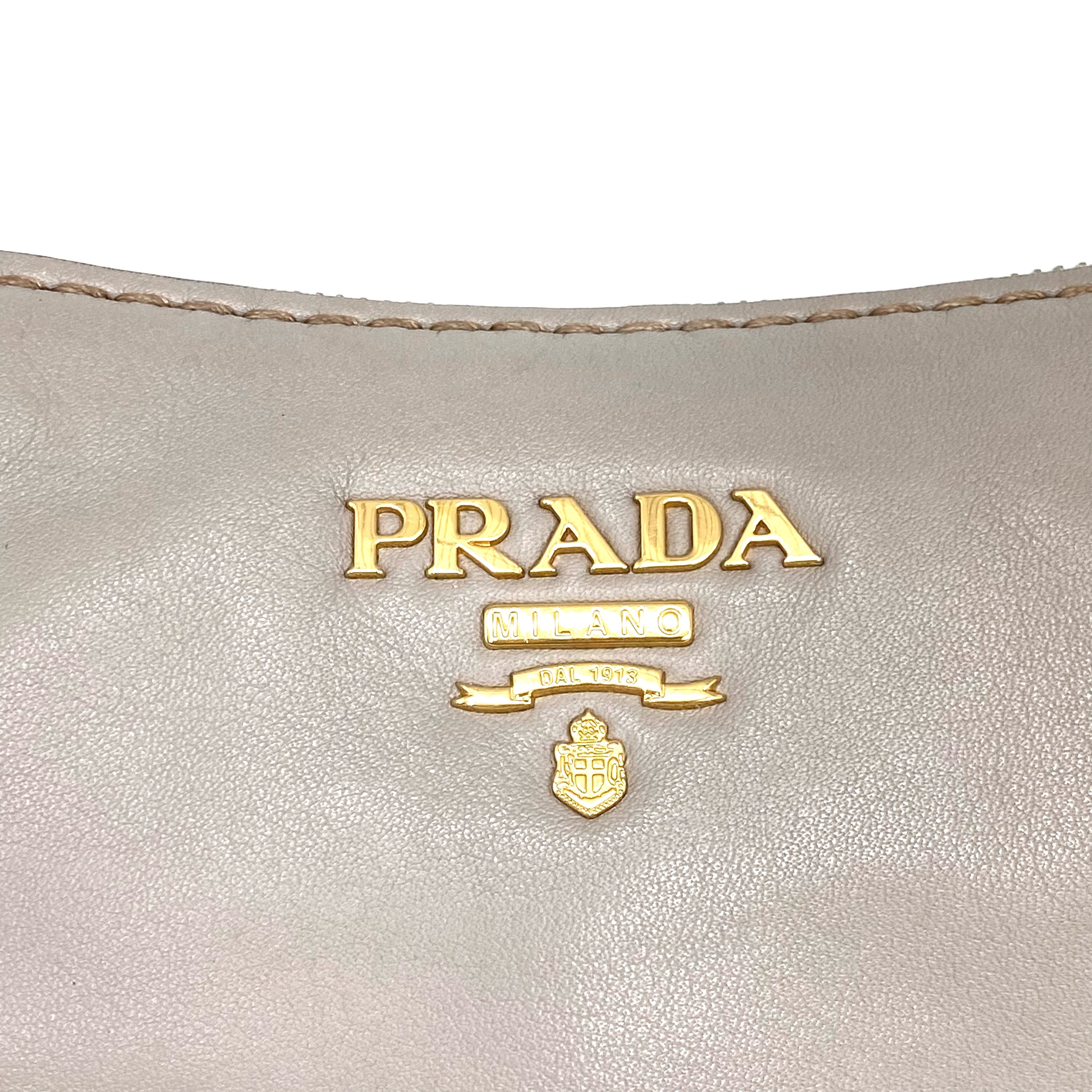 ☆ Prada 普拉達 Beige Calfskin Shoulder Bag 米色小牛皮肩背袋 - 267000747