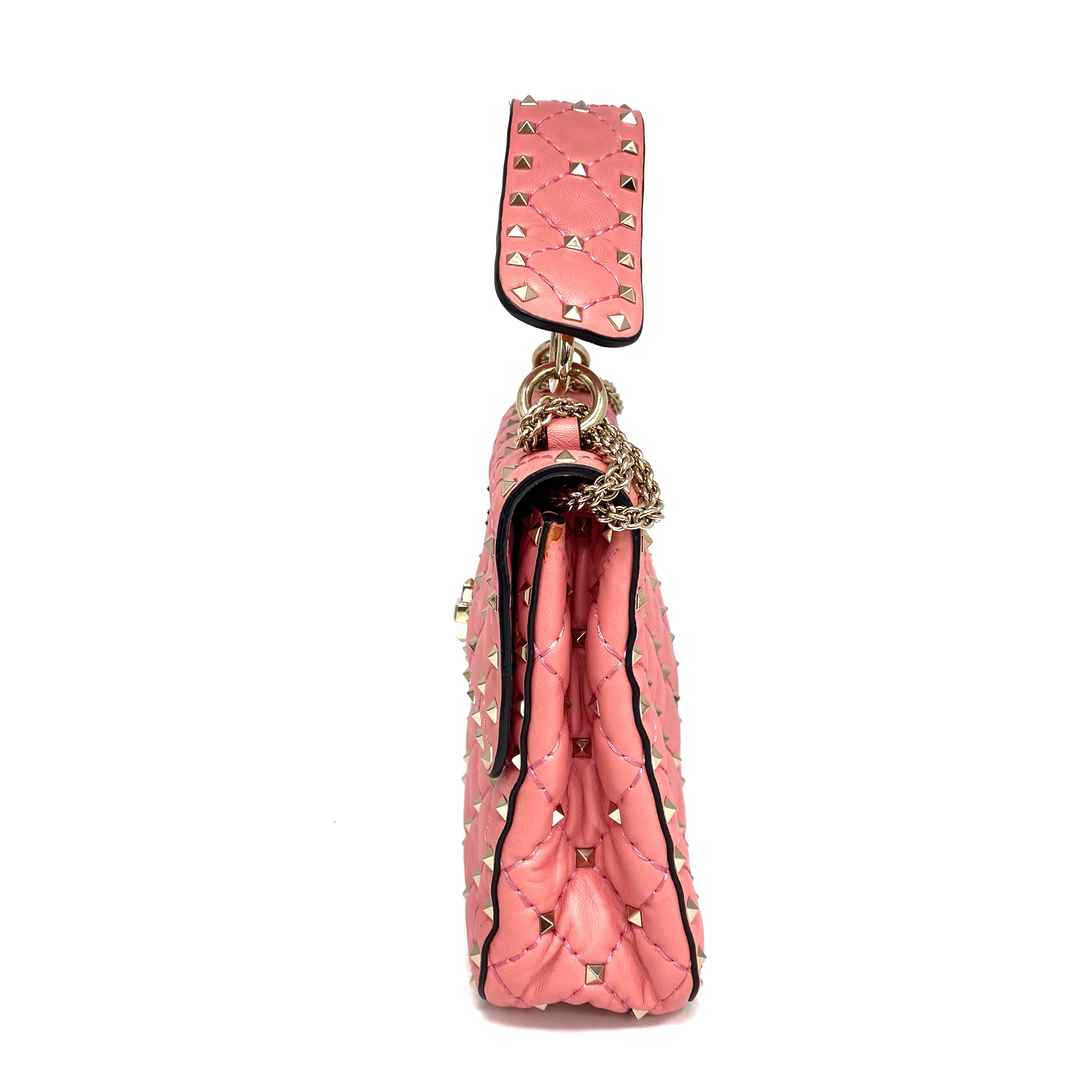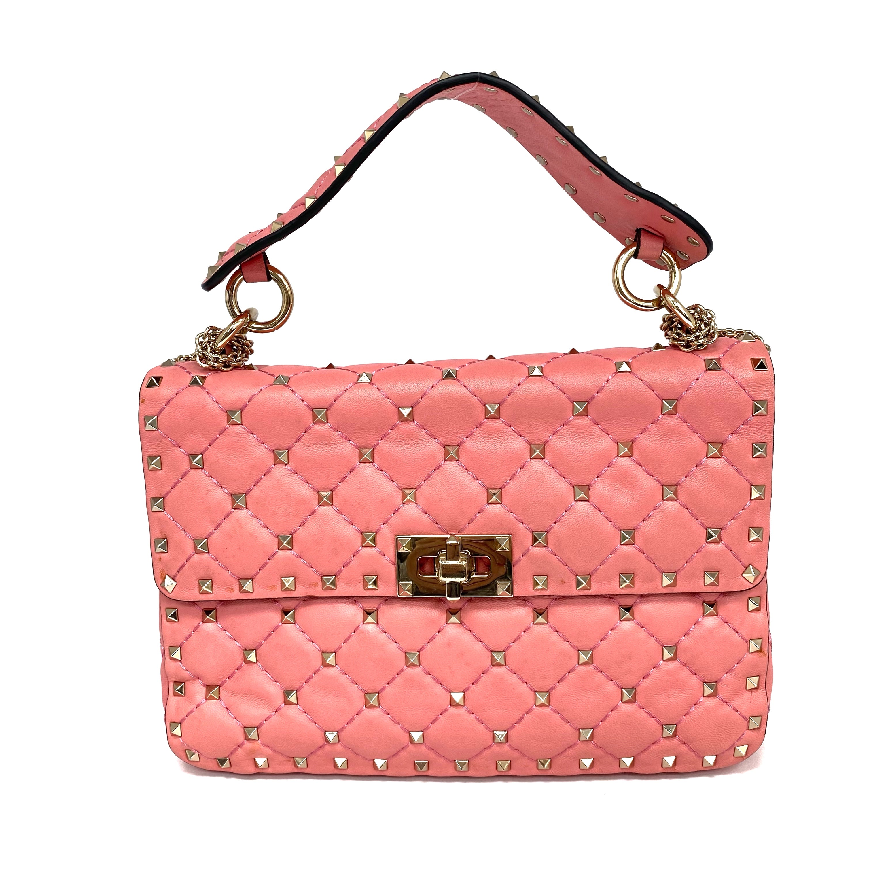☆ Valentino 華倫天奴 Pink Lambskin Studs 2 Way Bag 粉紅色小羊皮兩用袋 - 267002536