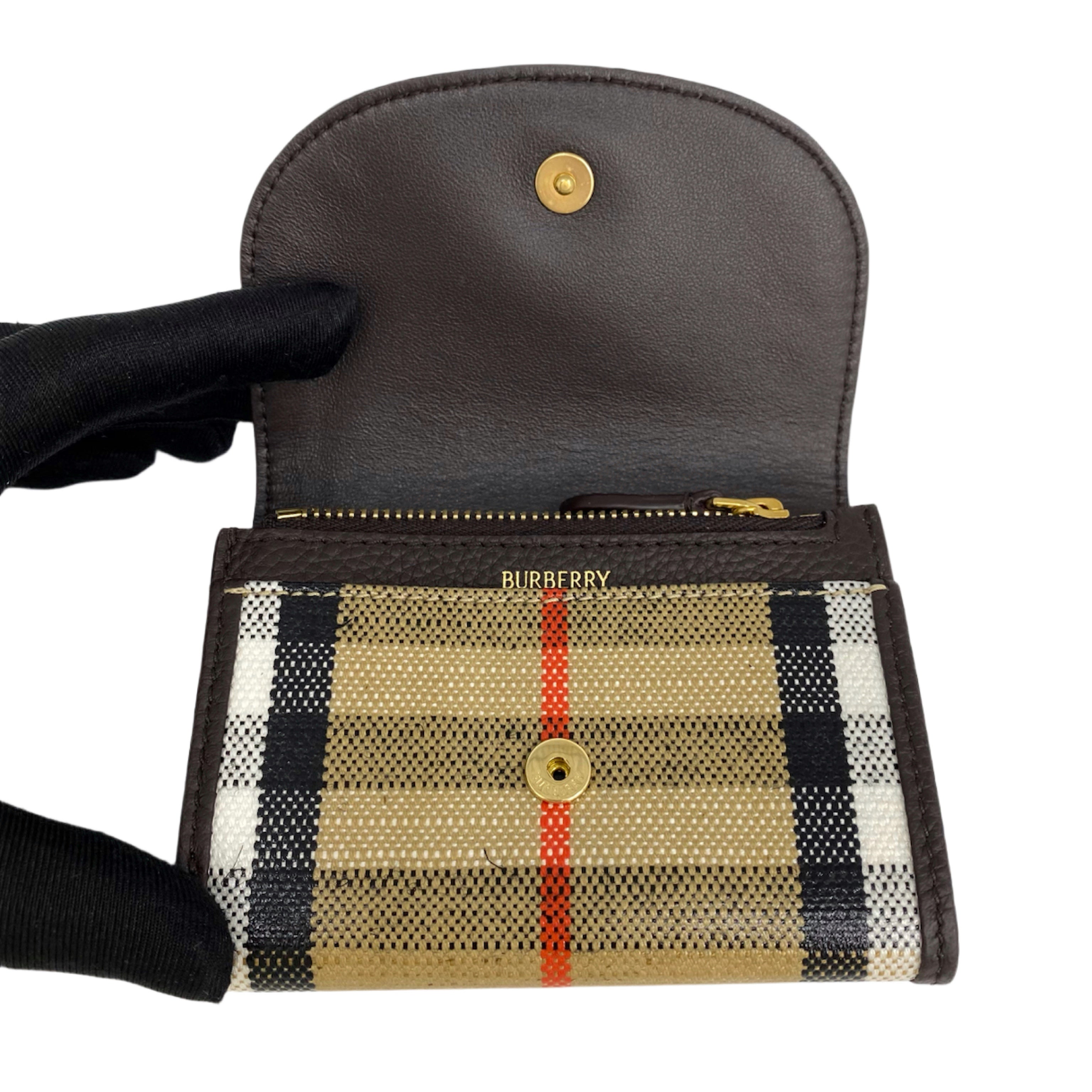 ☆ Burberry 博柏利 Brown Coated Canvas Checked Card Case 啡色塗層帆布格紋卡套 - 267006286