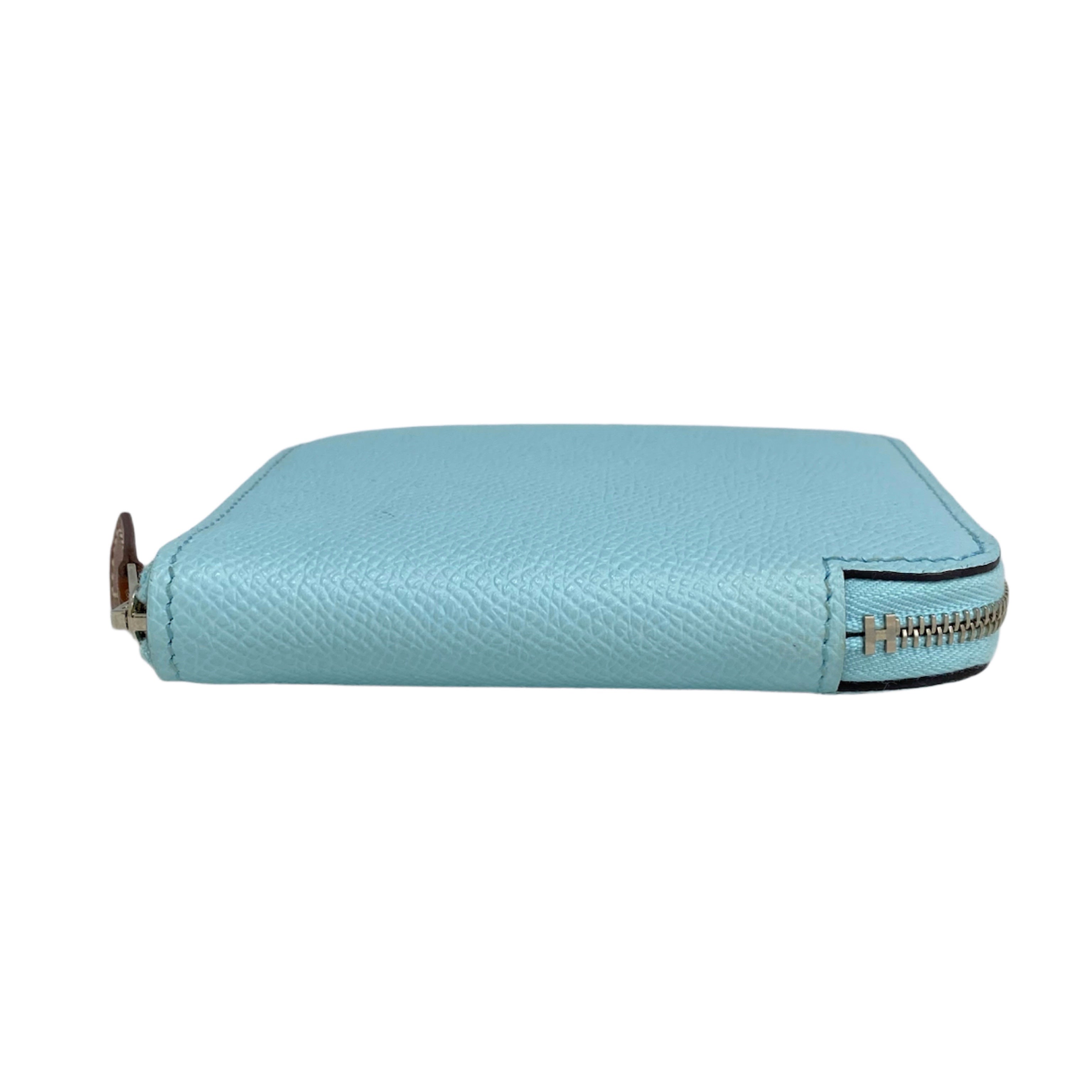 ☆ Hermes 愛馬仕 Light Blue Epsom Calfskin Azap Compact Short Wallet Stamp A 淺藍色粒紋小牛皮短銀包 A刻 - 267004792