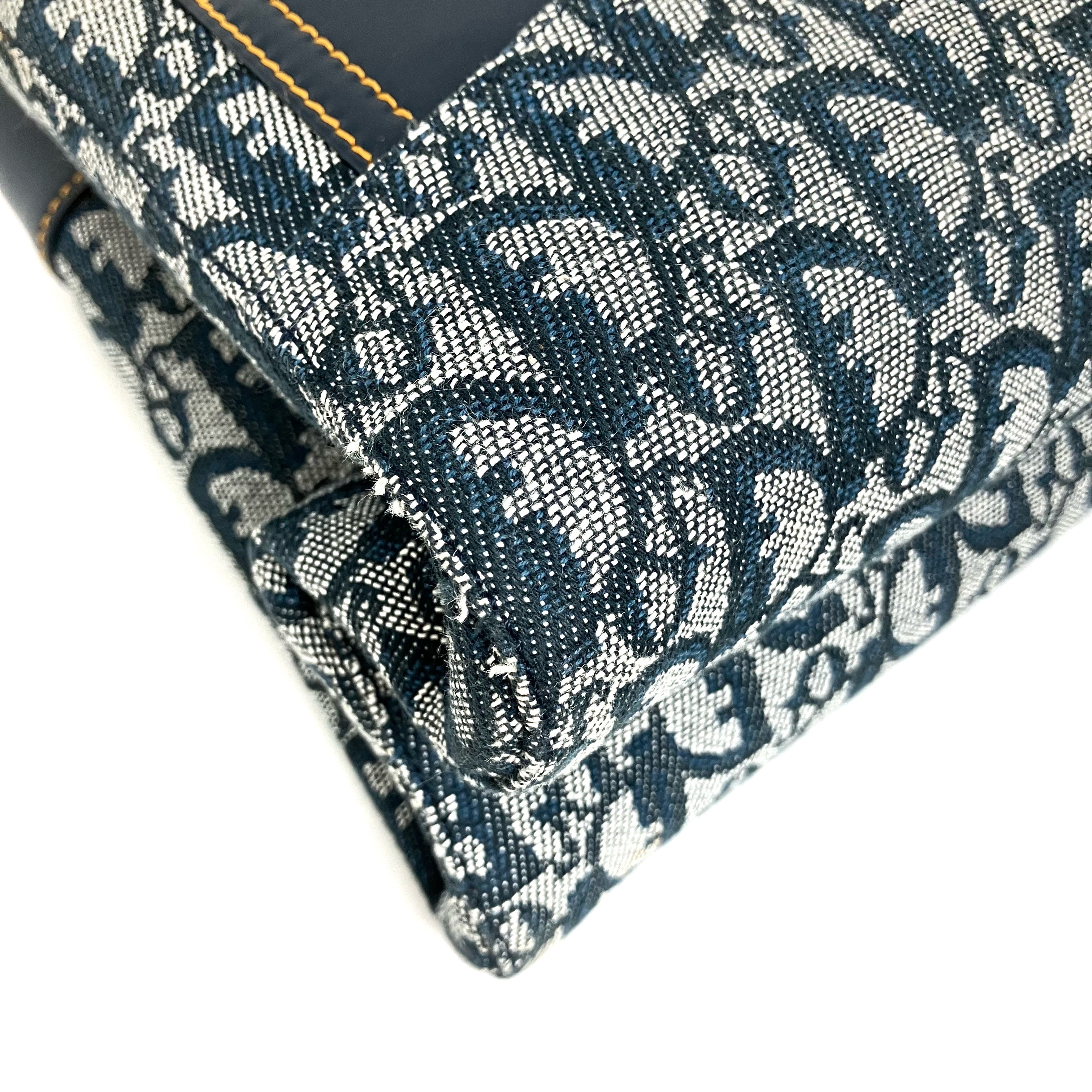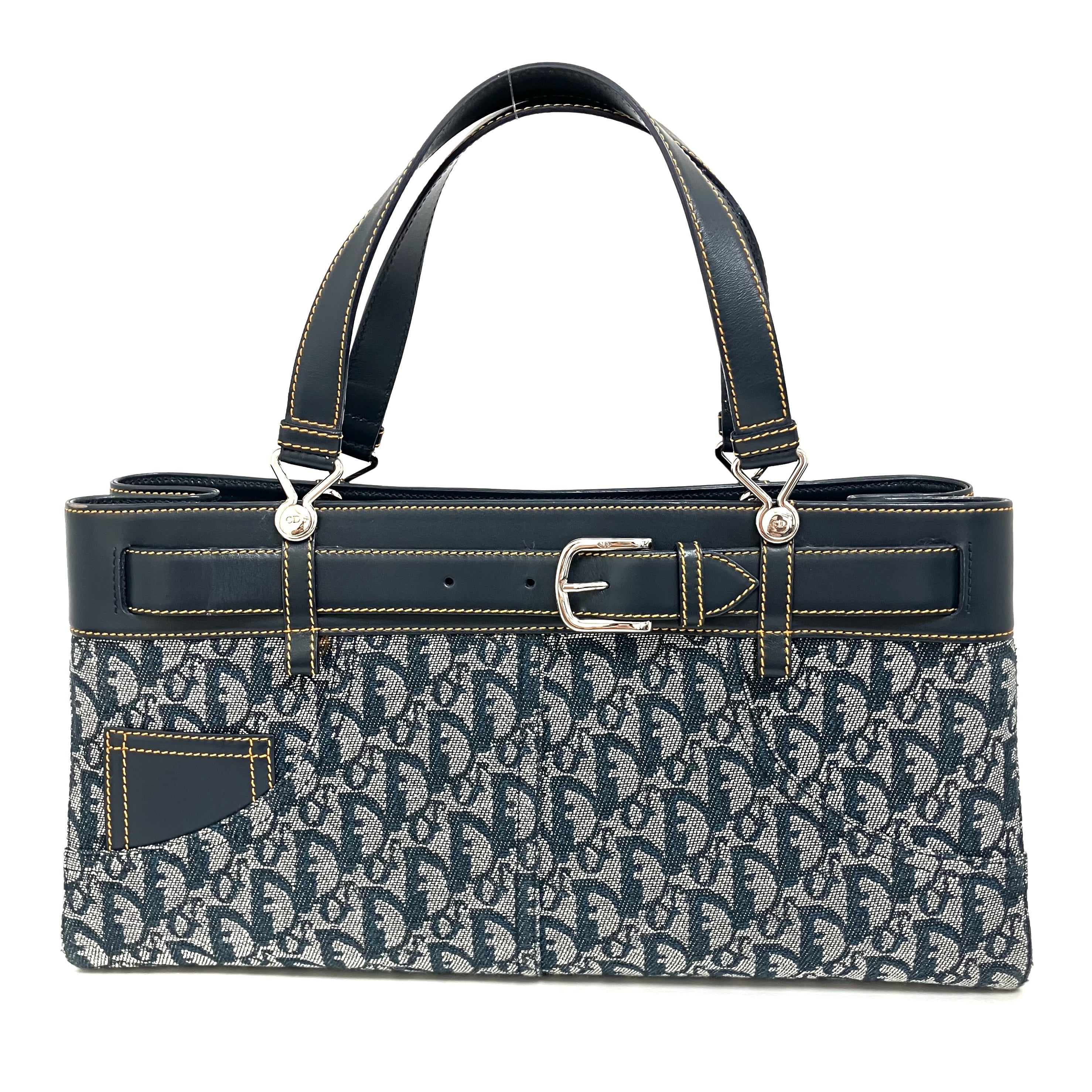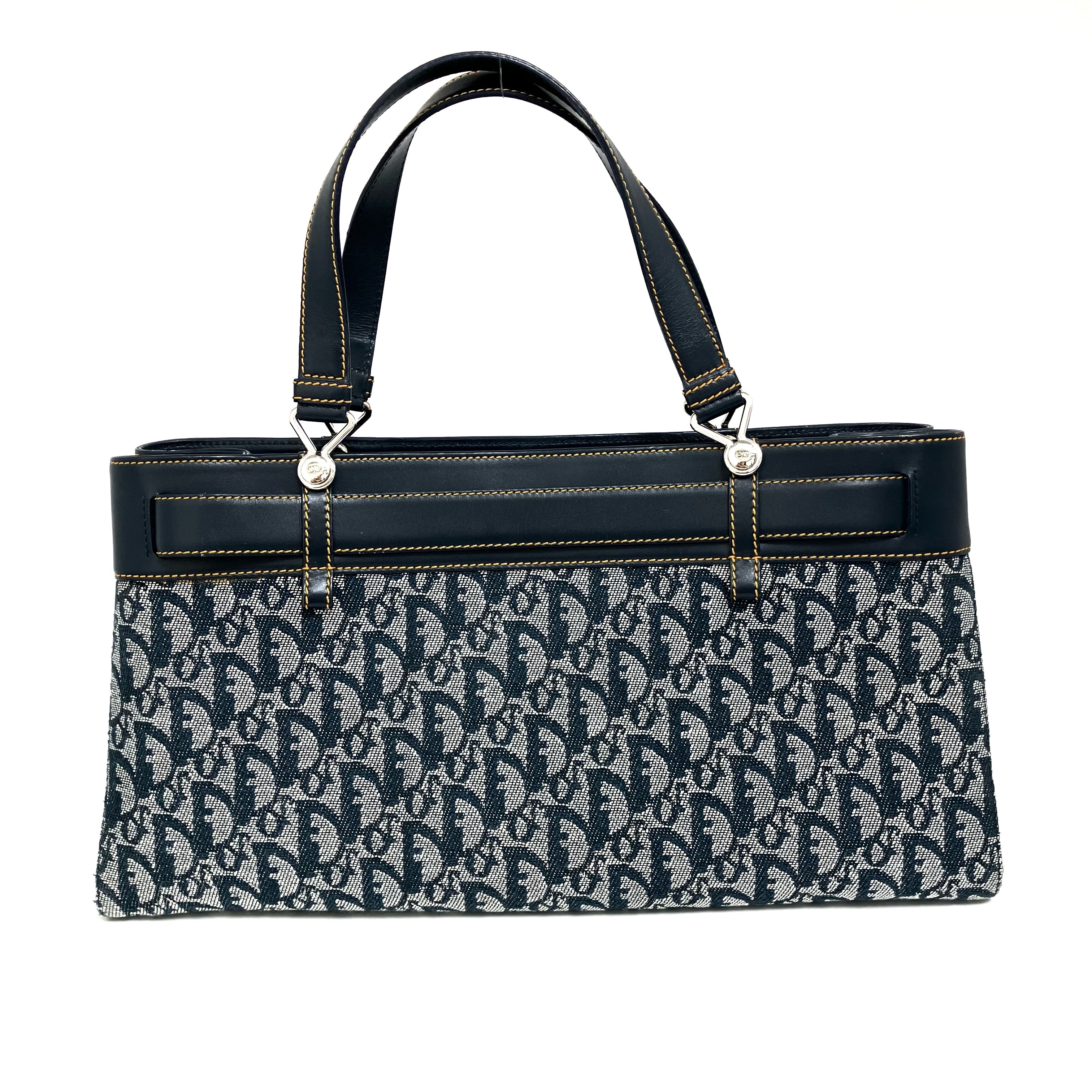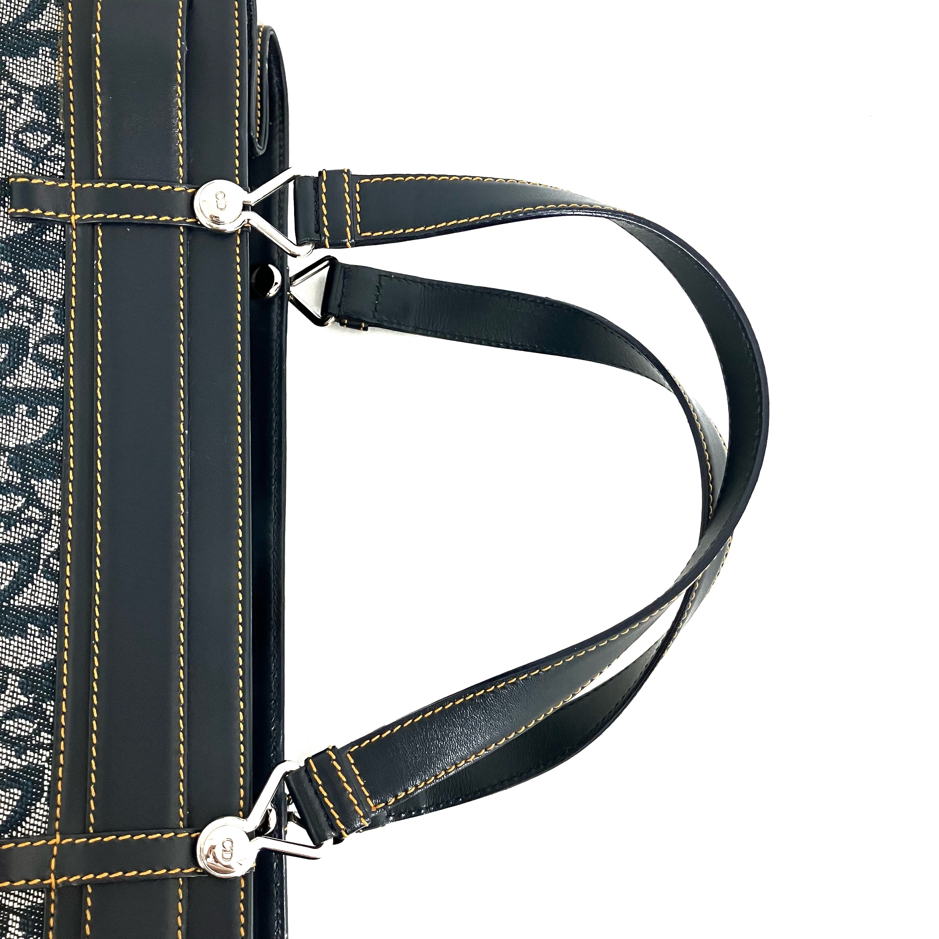 ☆ Christian Dior 迪奧 Navy Canvas Calfskin Trotter Tote Bag 深藍色帆布小牛皮托特袋 - 257028637