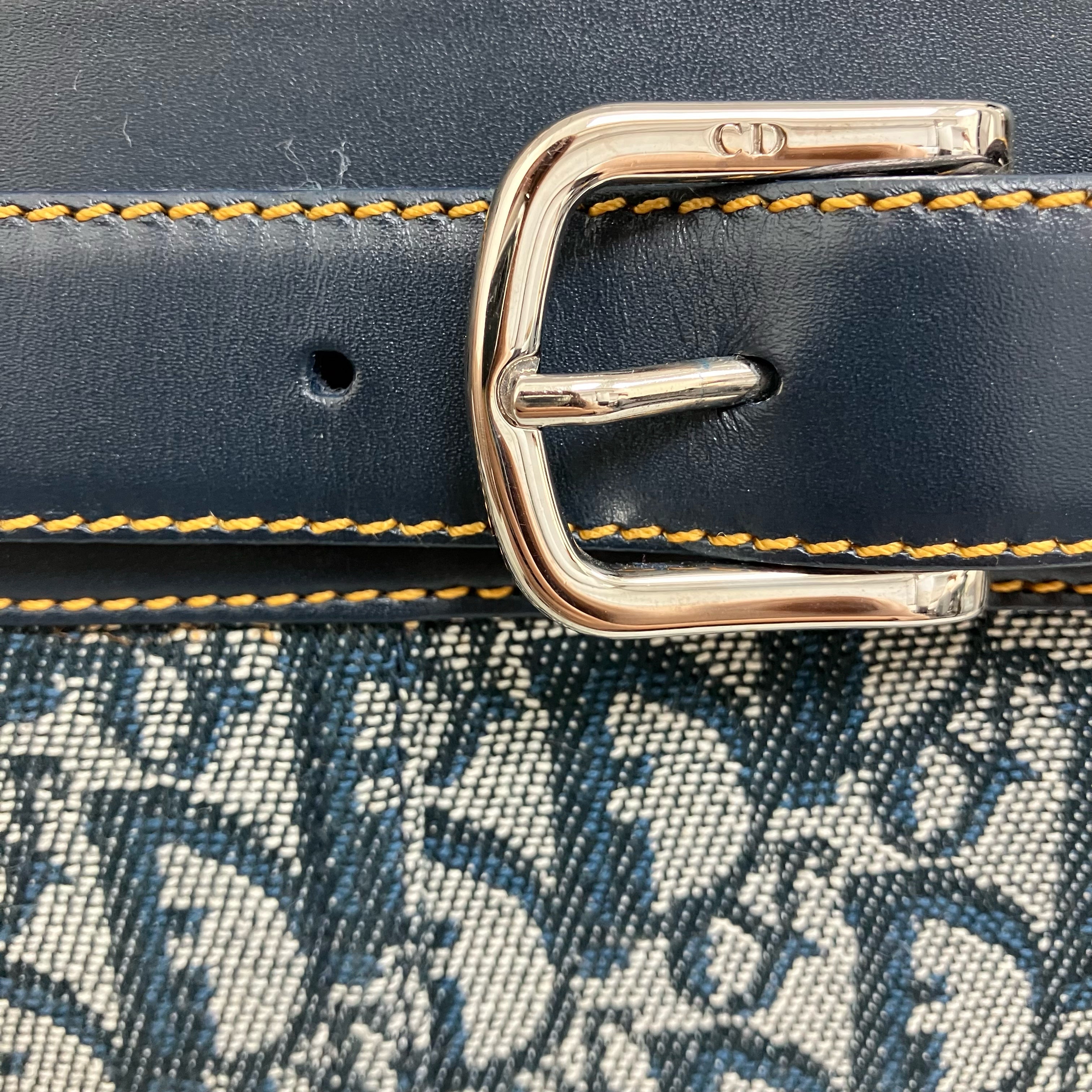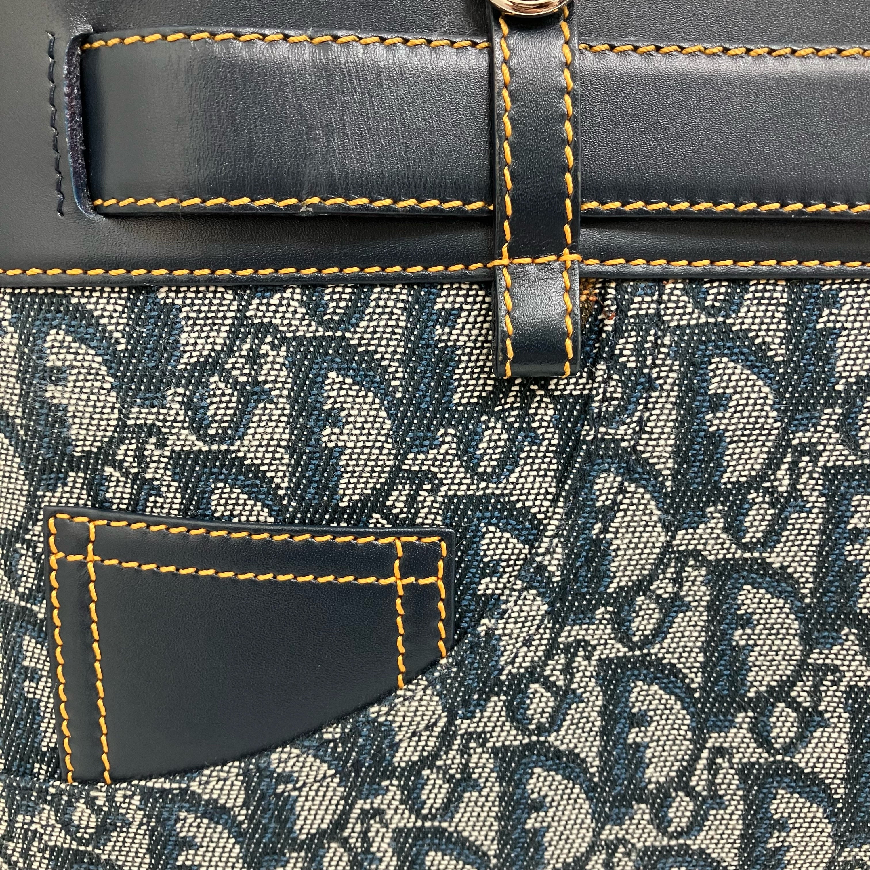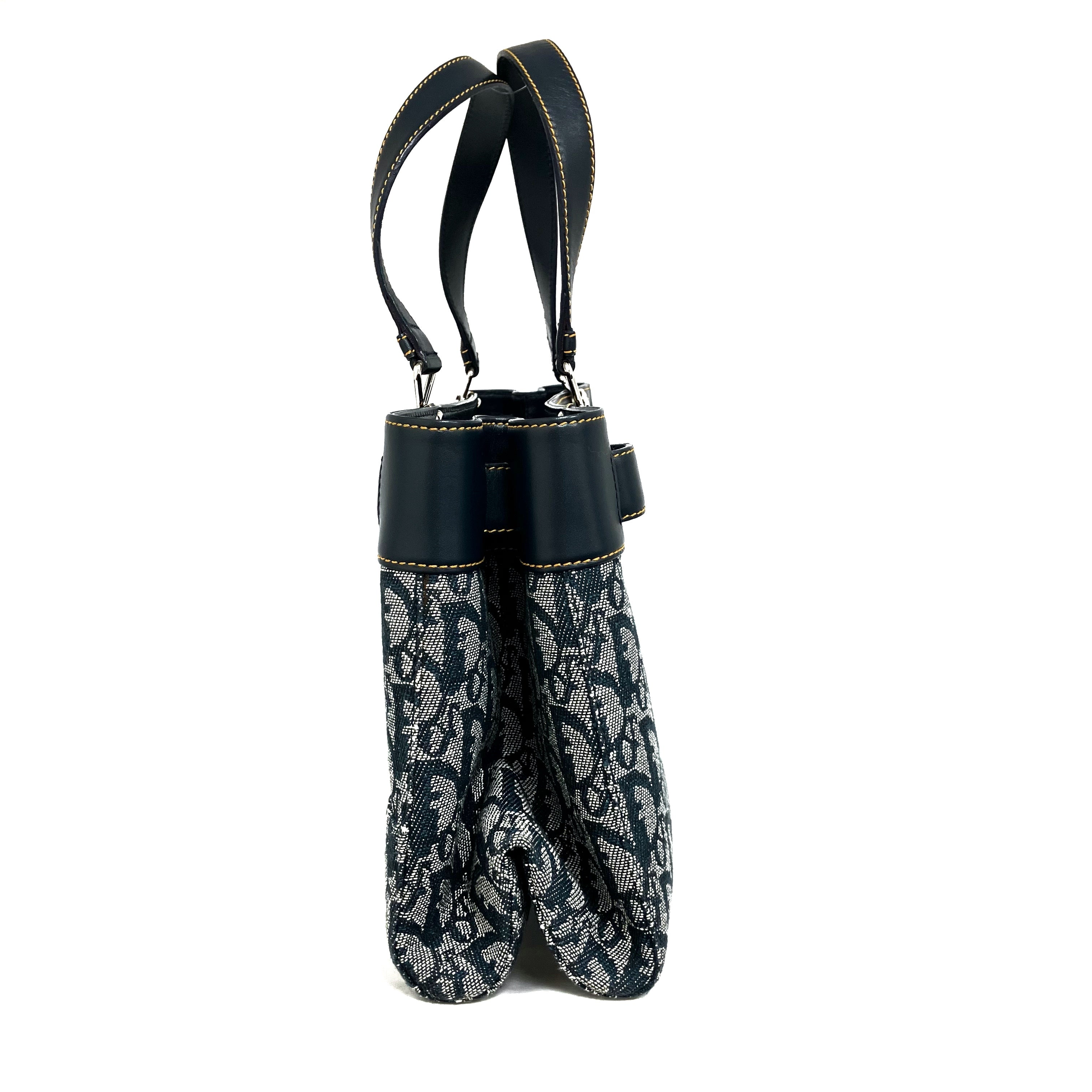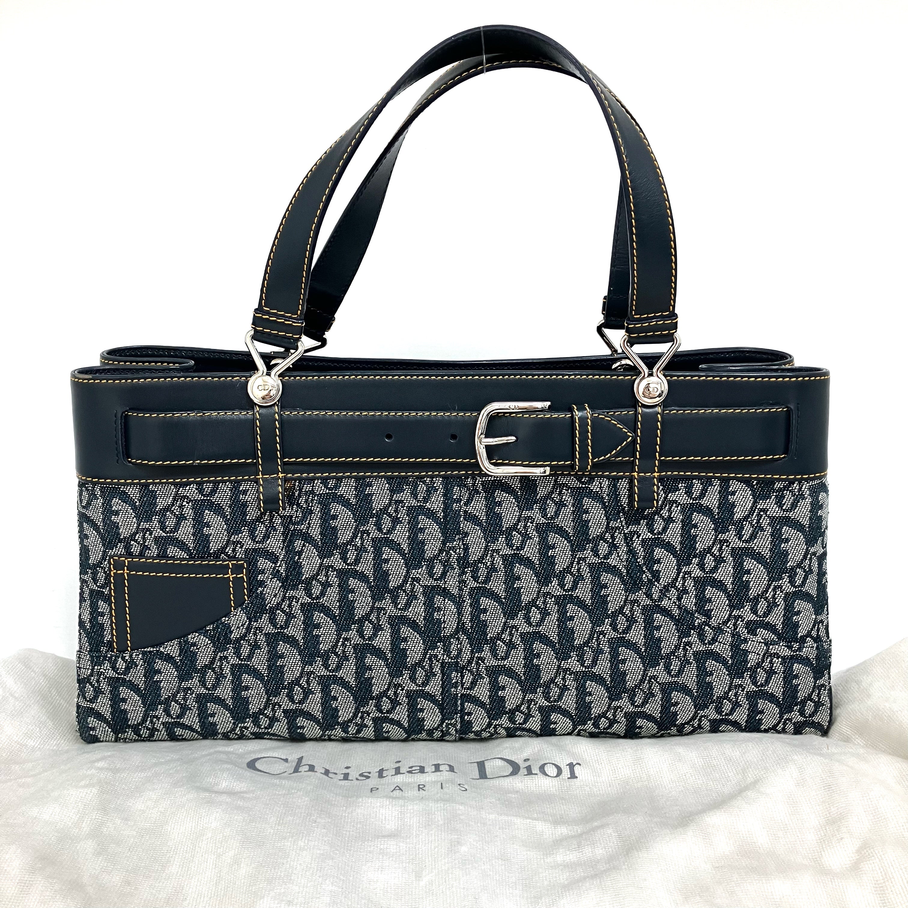 ☆ Christian Dior 迪奧 Navy Canvas Calfskin Trotter Tote Bag 深藍色帆布小牛皮托特袋 - 257028637