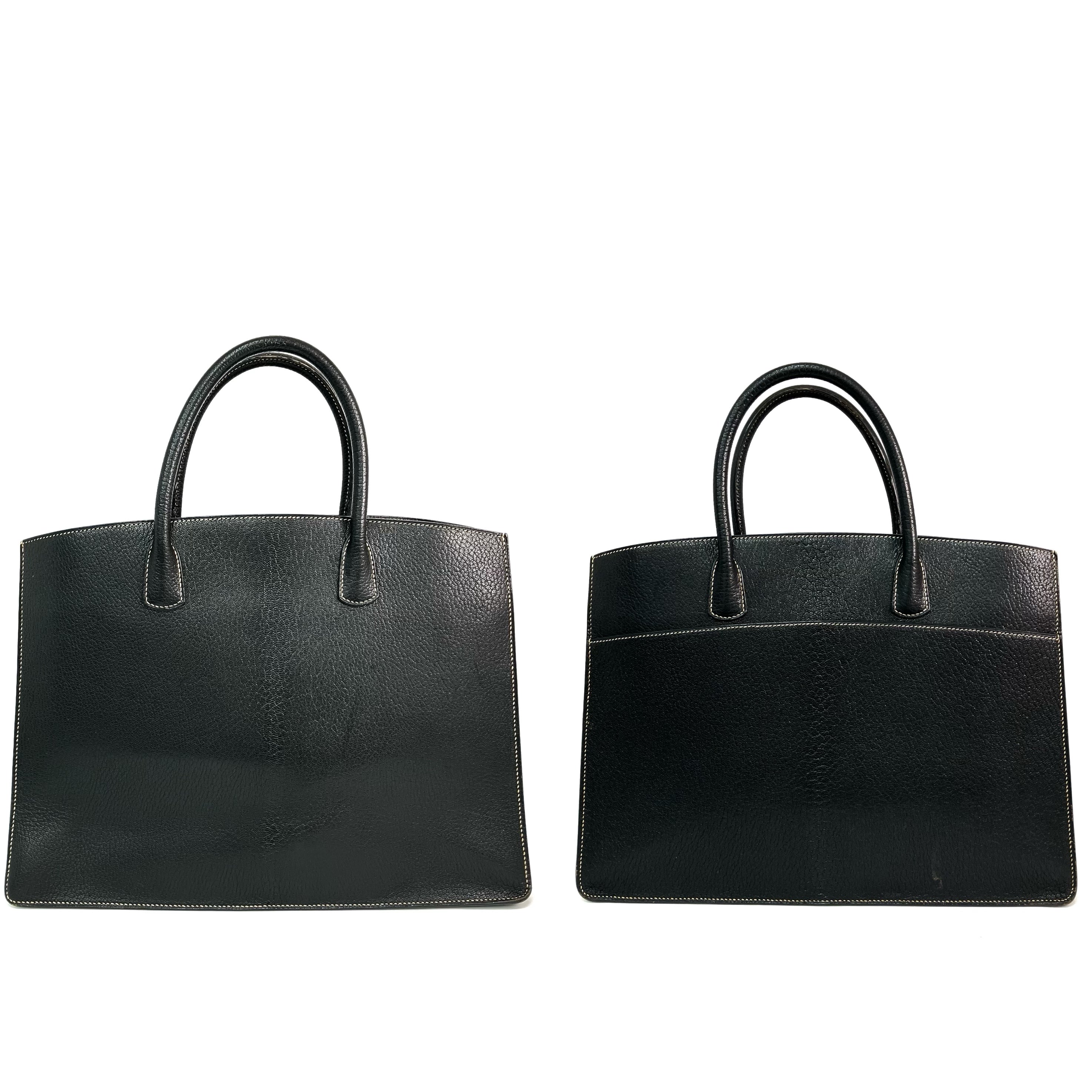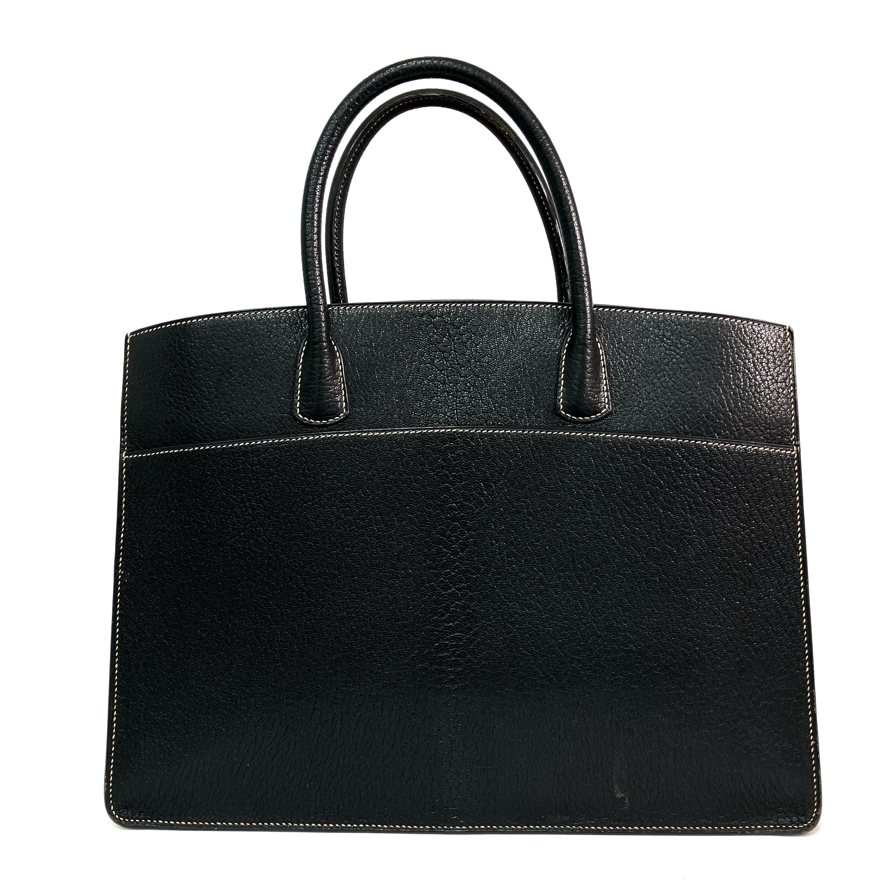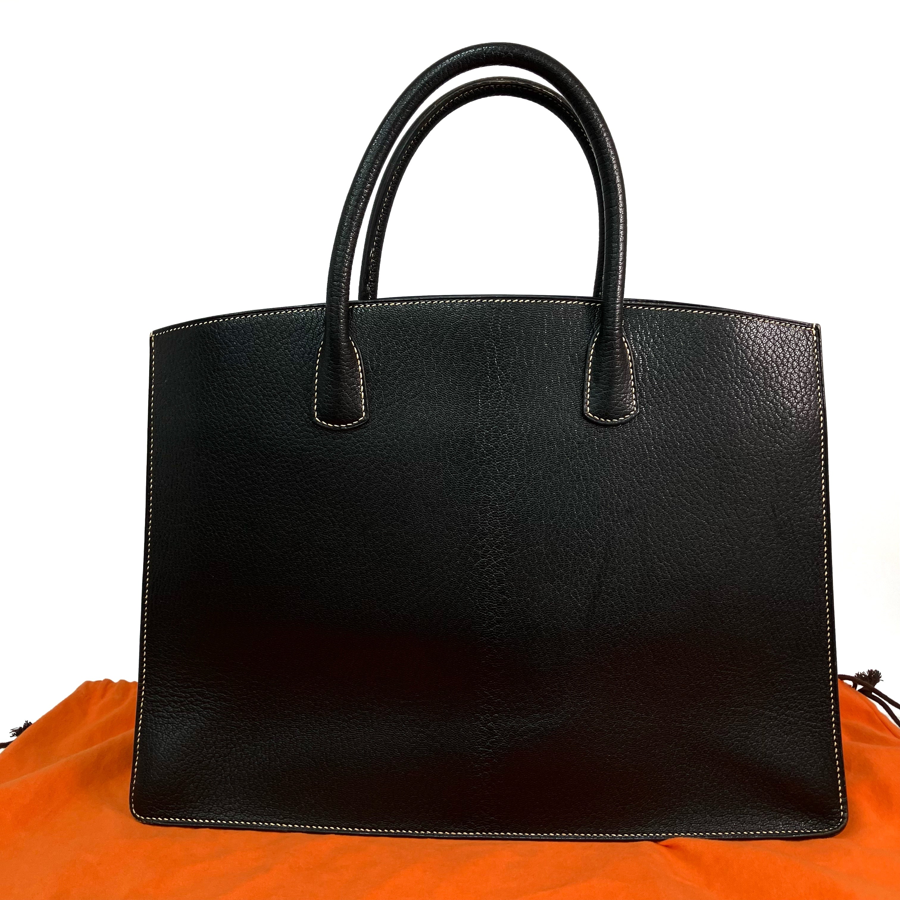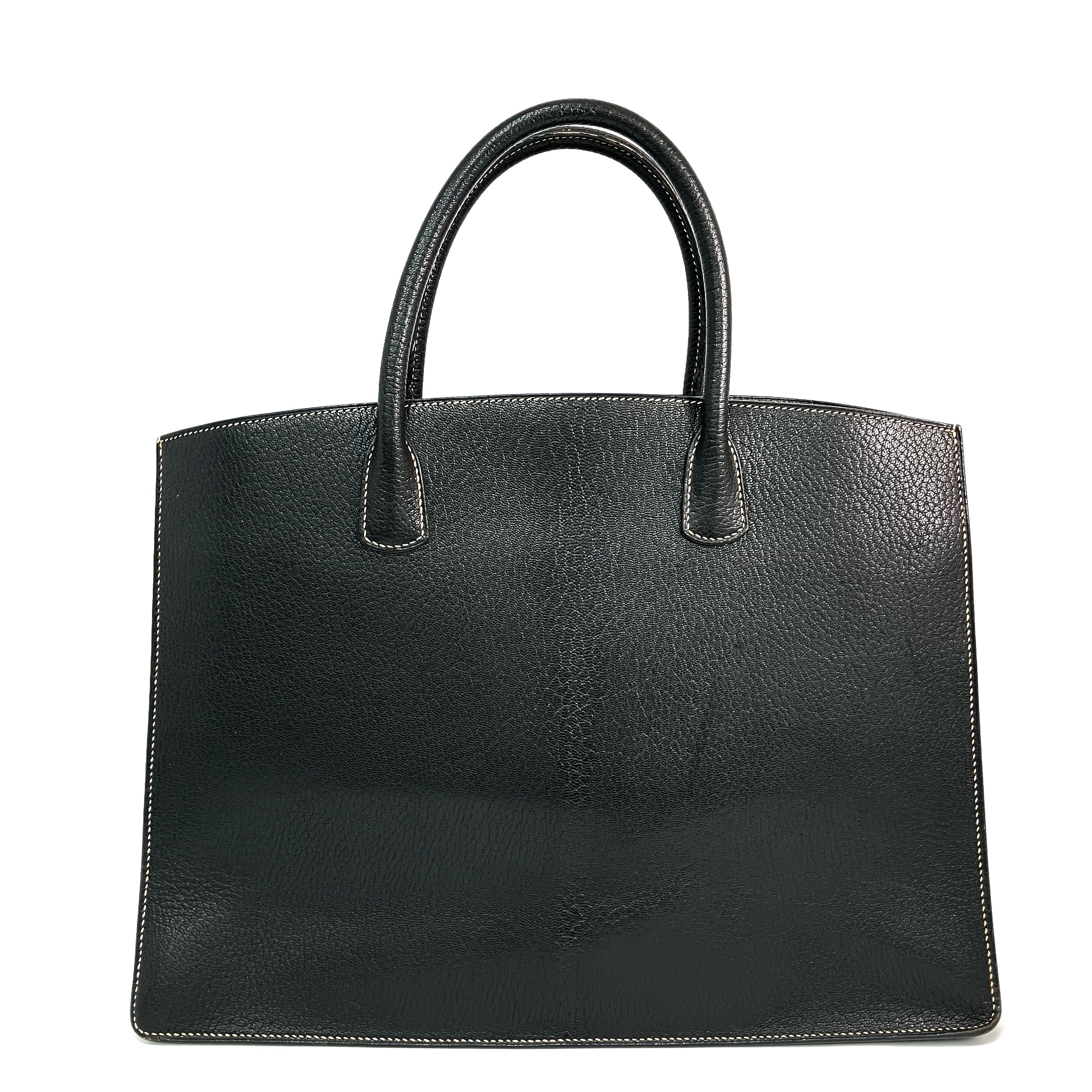 △ Hermes 愛馬仕 Black Epsom Calfskin White Bus 39 Tote Bag Stamp [C] 黑色壓紋小牛皮托特袋[C]刻 - 257026460