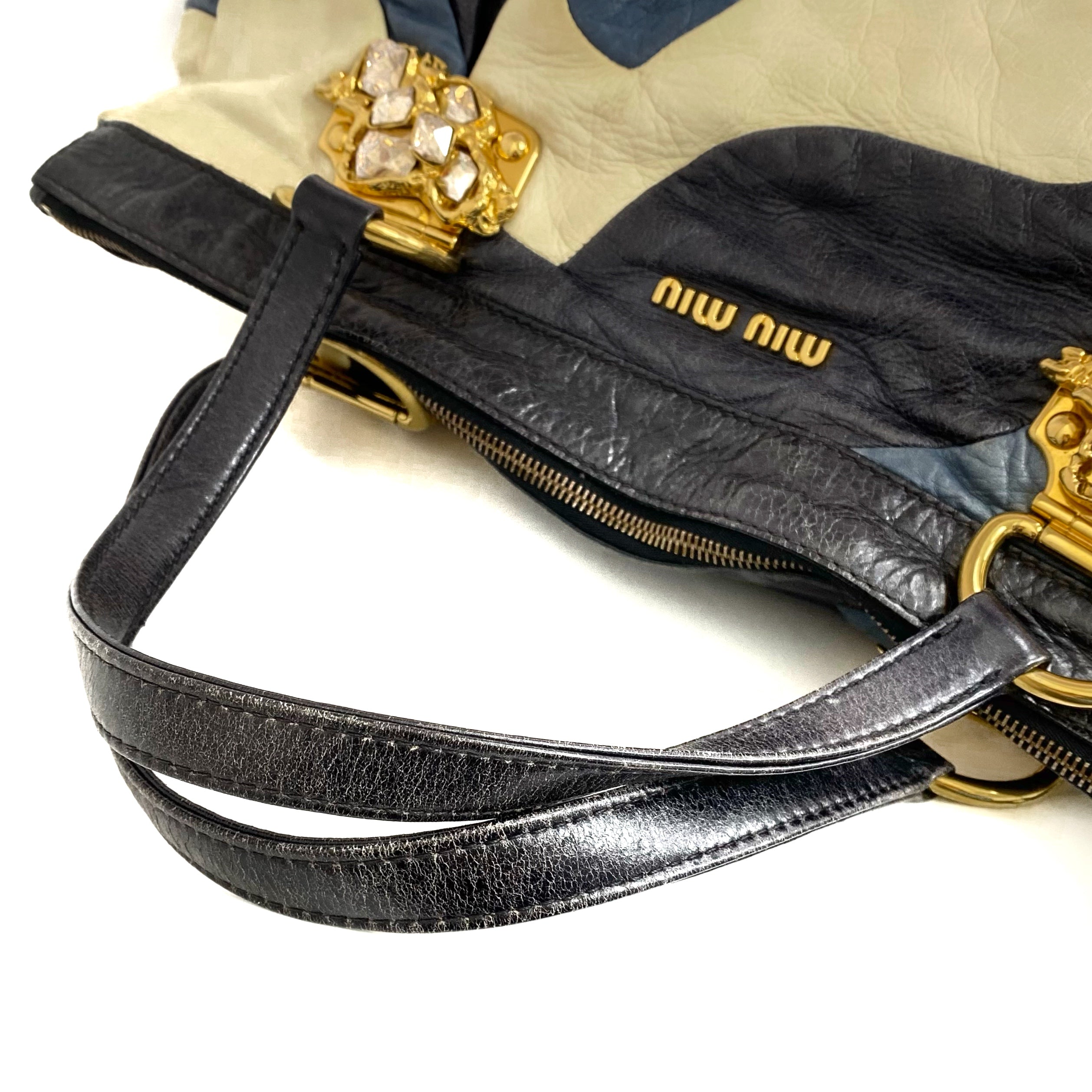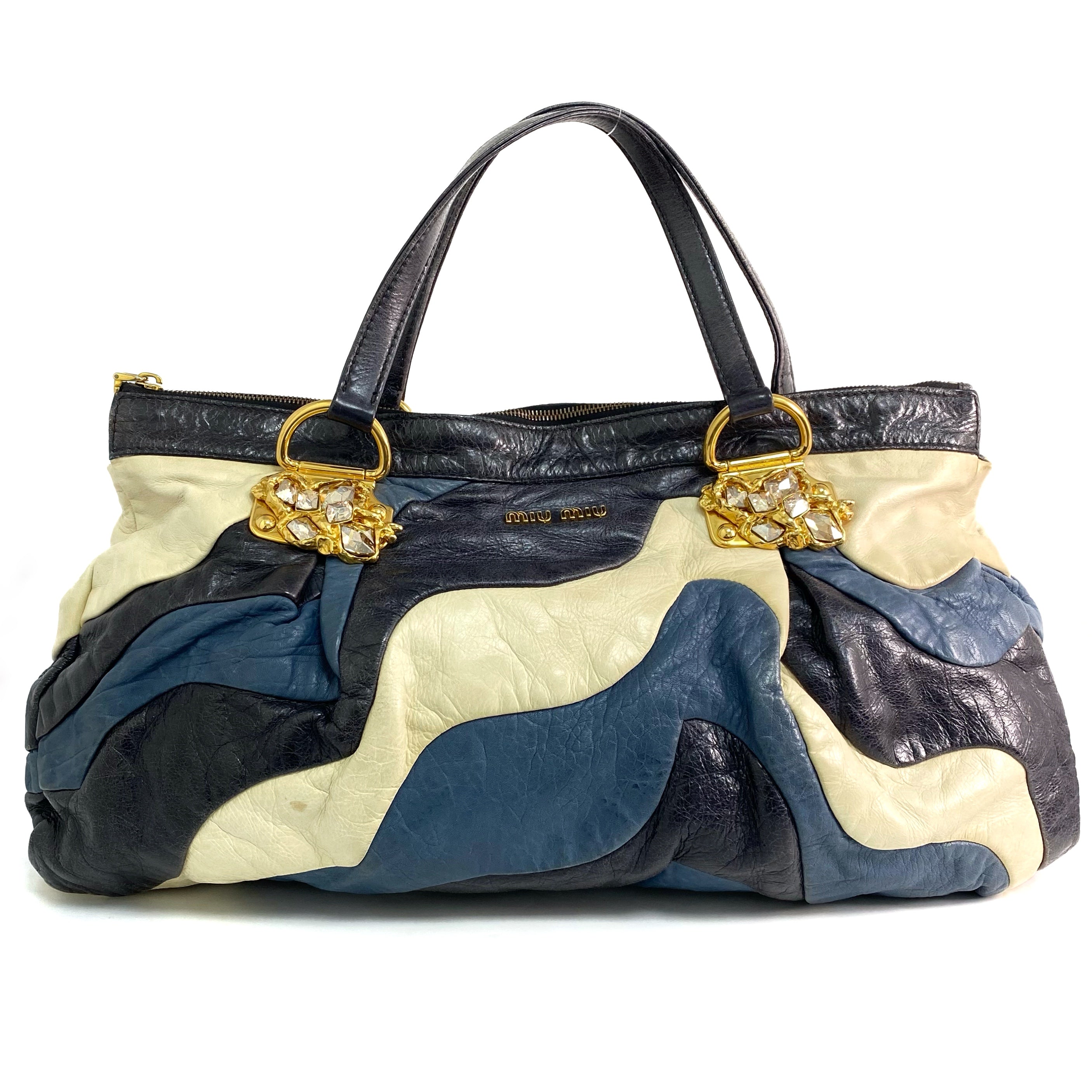 ☆ Miu Miu 繆繆 Black, Yellow & Blue Calfskin Tote Bag 黑色, 黃色和藍色小牛皮托特袋 - 257028779