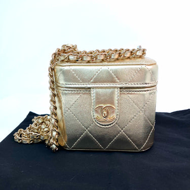 △ Chanel 香奈兒 Gold Lambskin Gold Tone Metal Mini Vanity Case AP3459 金色小羊皮金色金屬迷你化妝箱 - 257024981