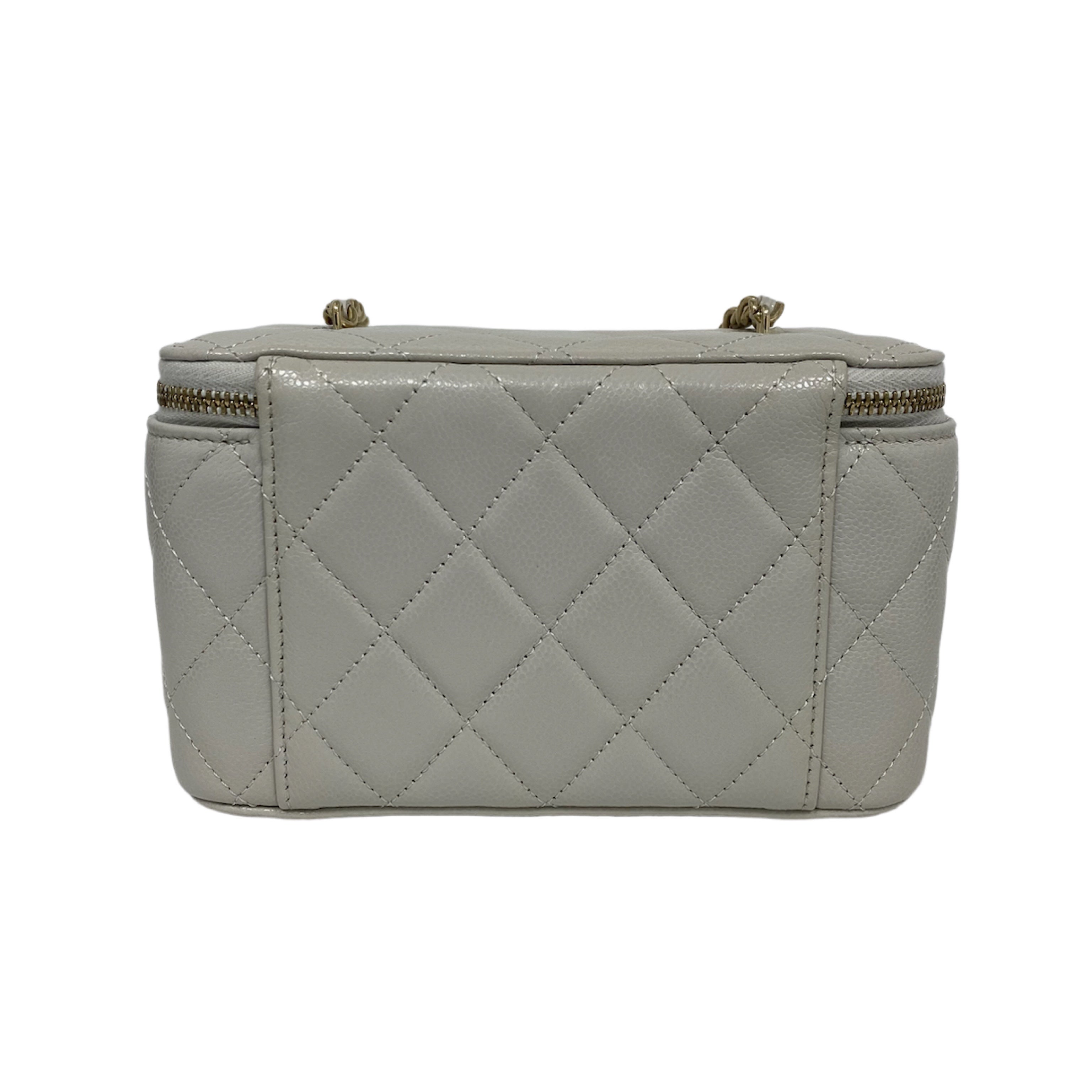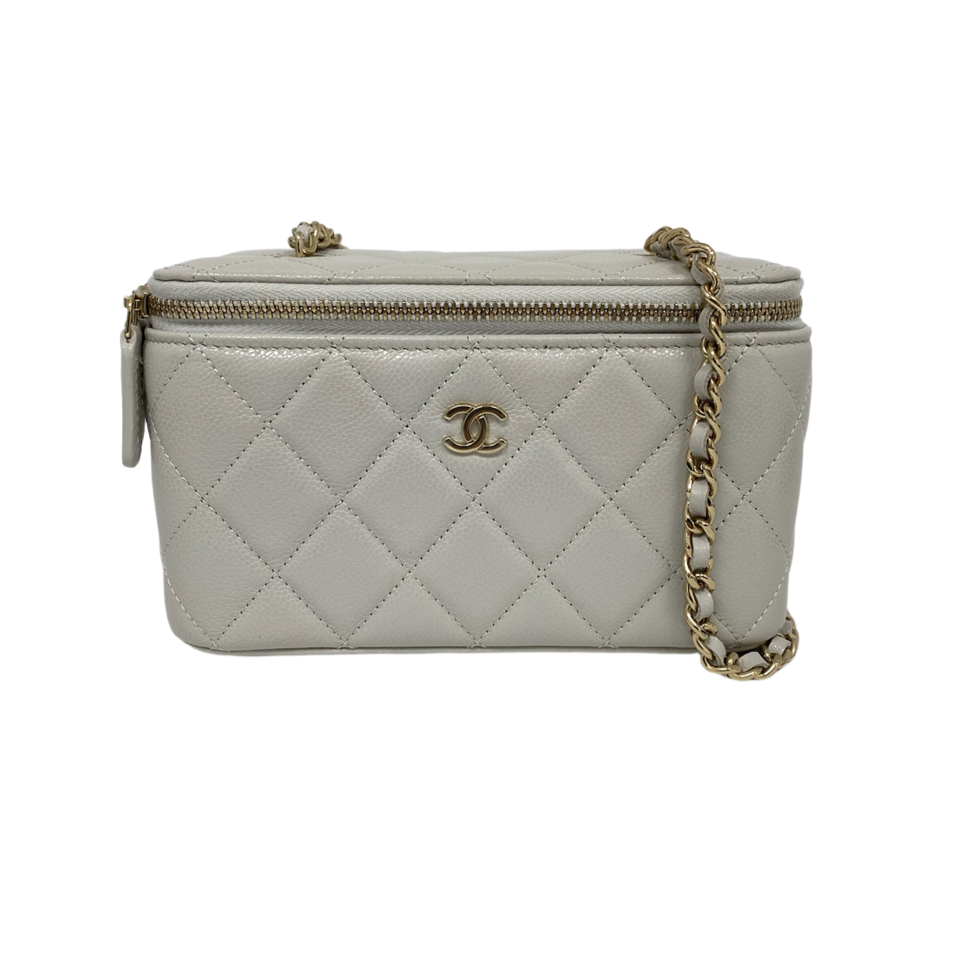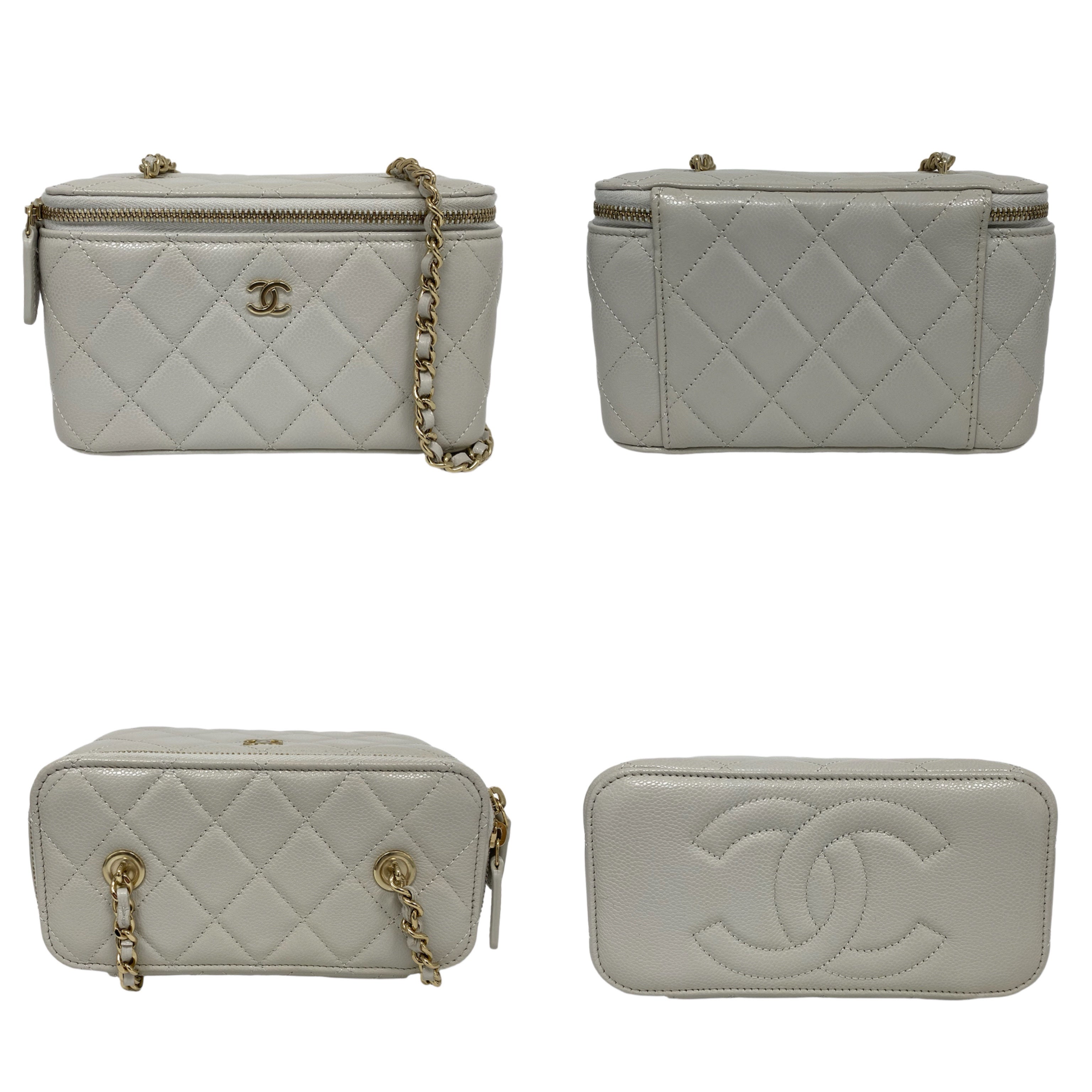 △ Chanel 香奈兒 Grey Caviar Skin Gold Tone Metal Chain Vanity Case AP1341 灰色粒紋小牛皮金色金屬鎖鏈化妝箱 - 257027573