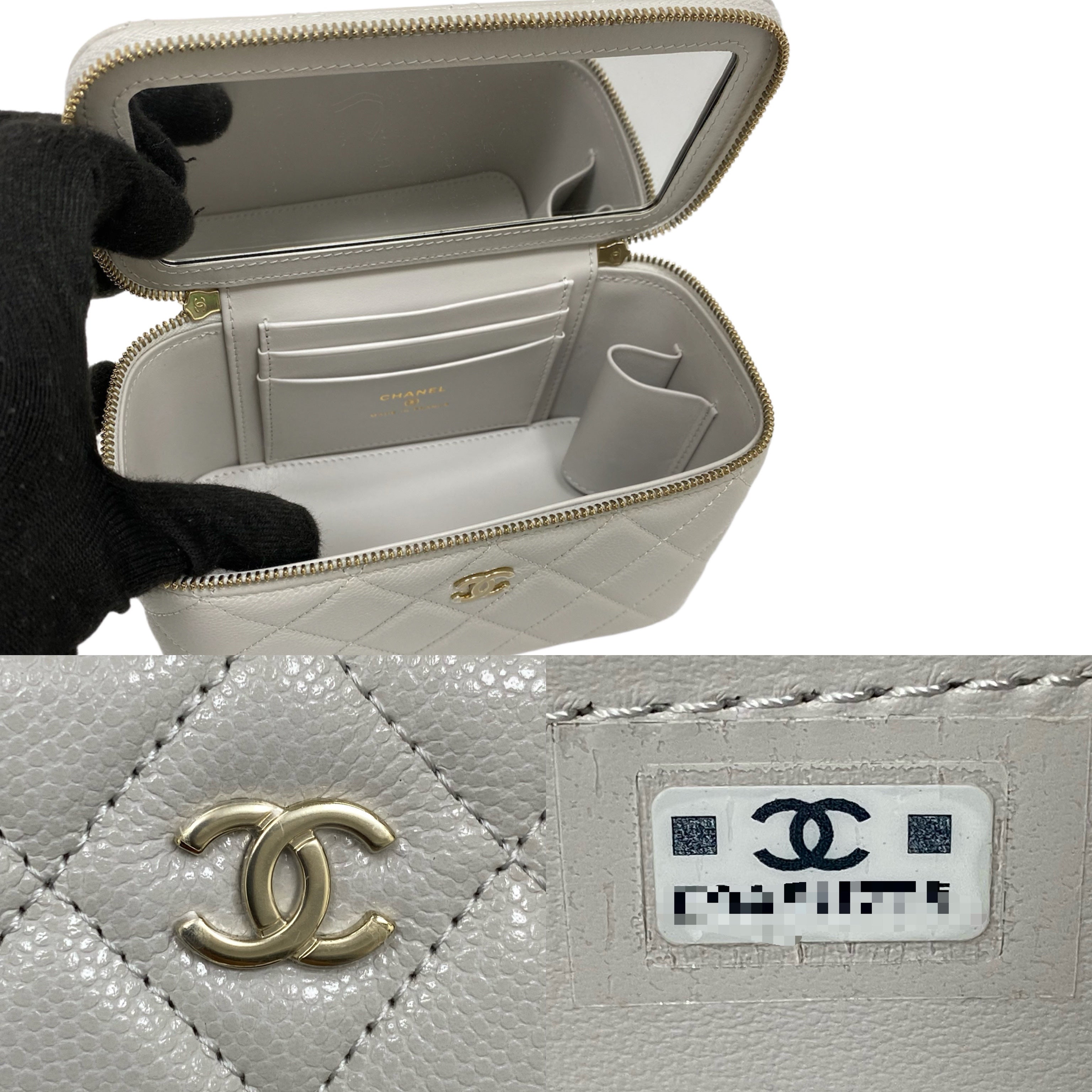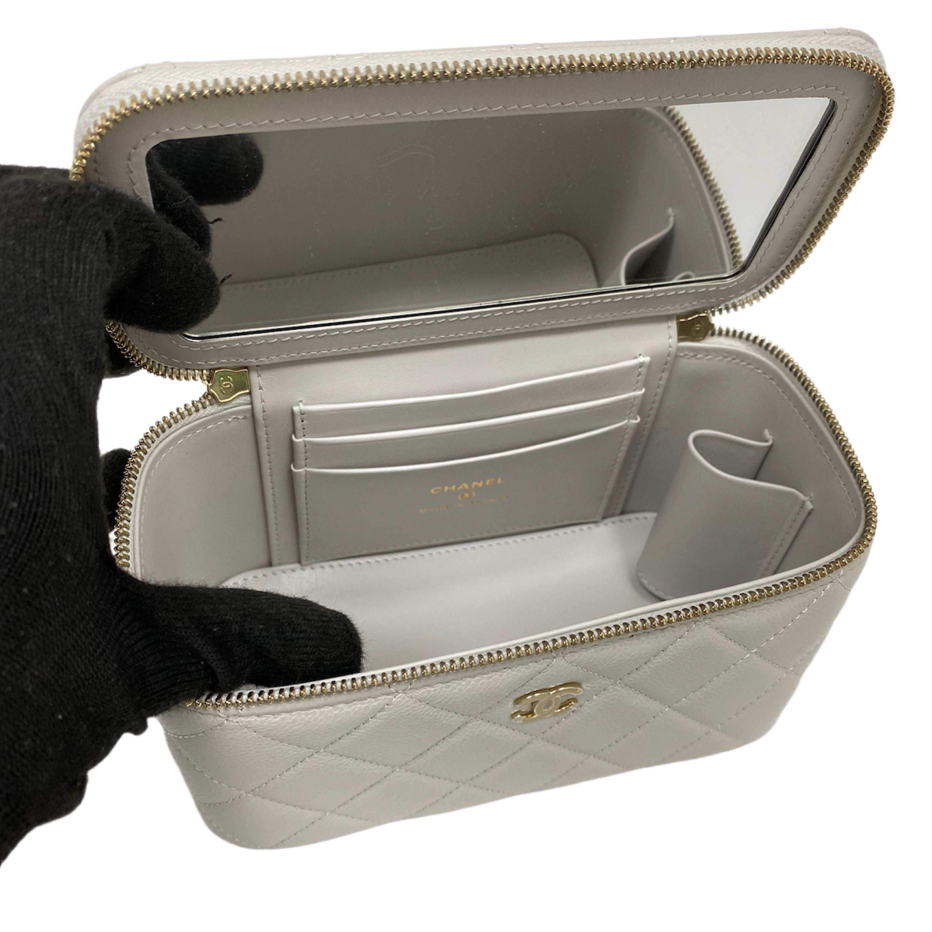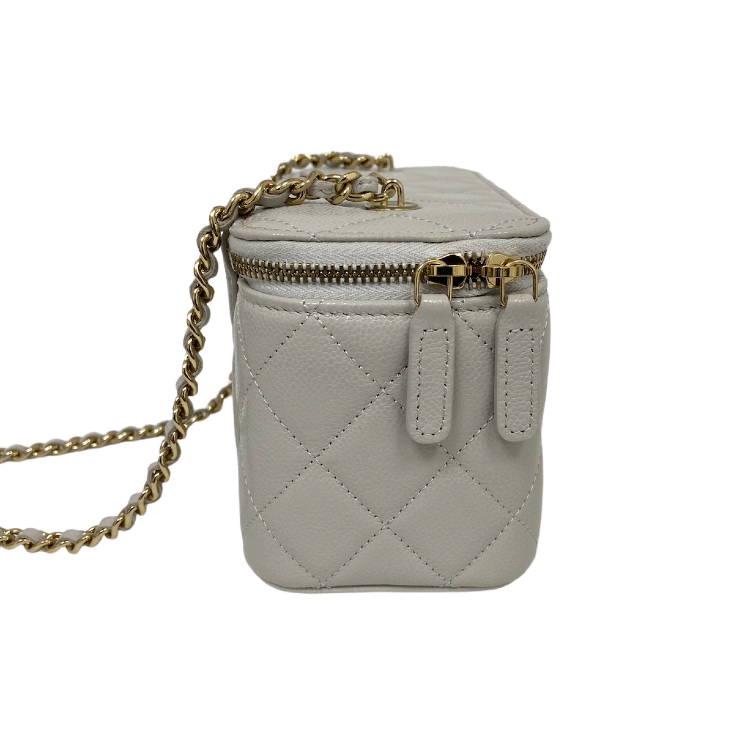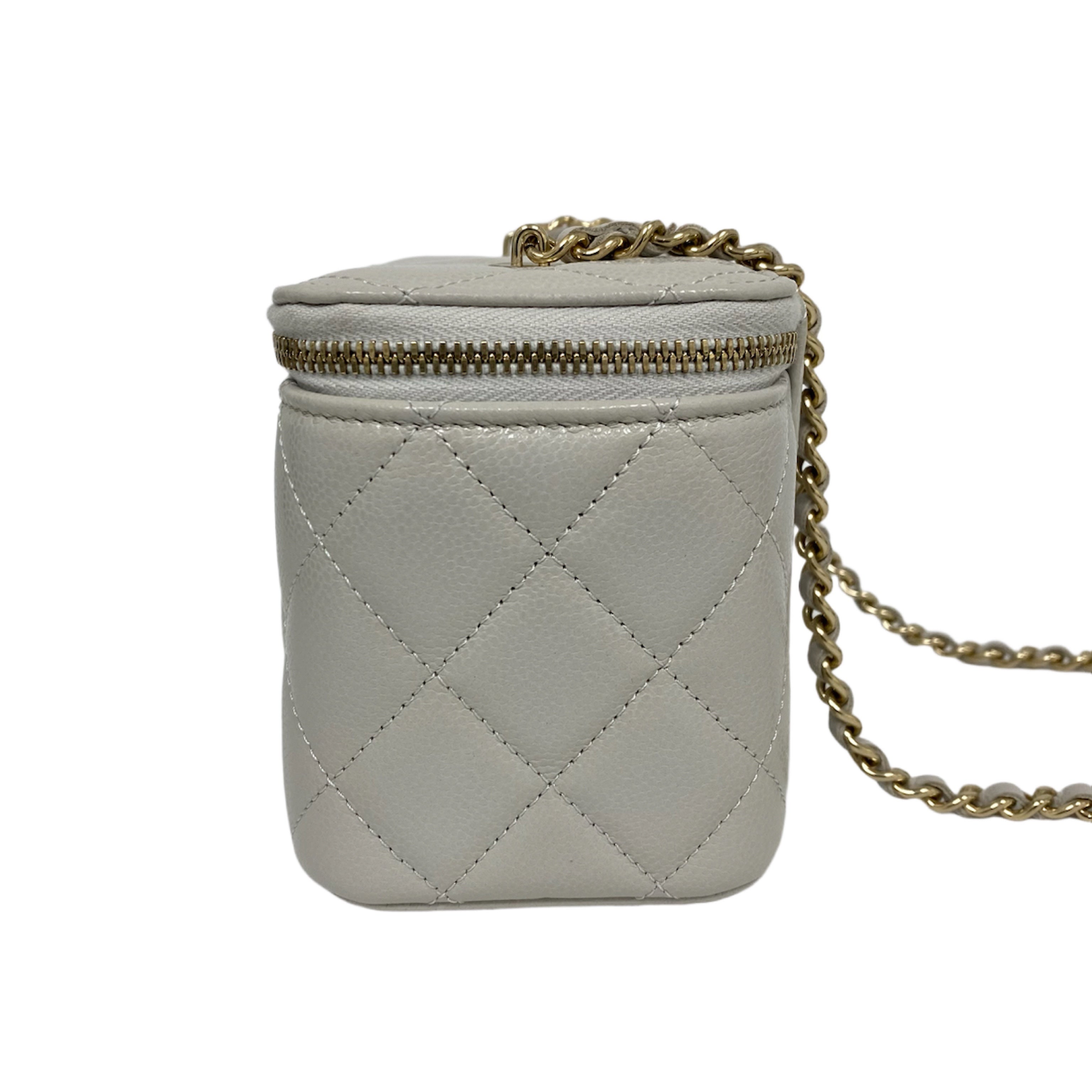 △ Chanel 香奈兒 Grey Caviar Skin Gold Tone Metal Chain Vanity Case AP1341 灰色粒紋小牛皮金色金屬鎖鏈化妝箱 - 257027573