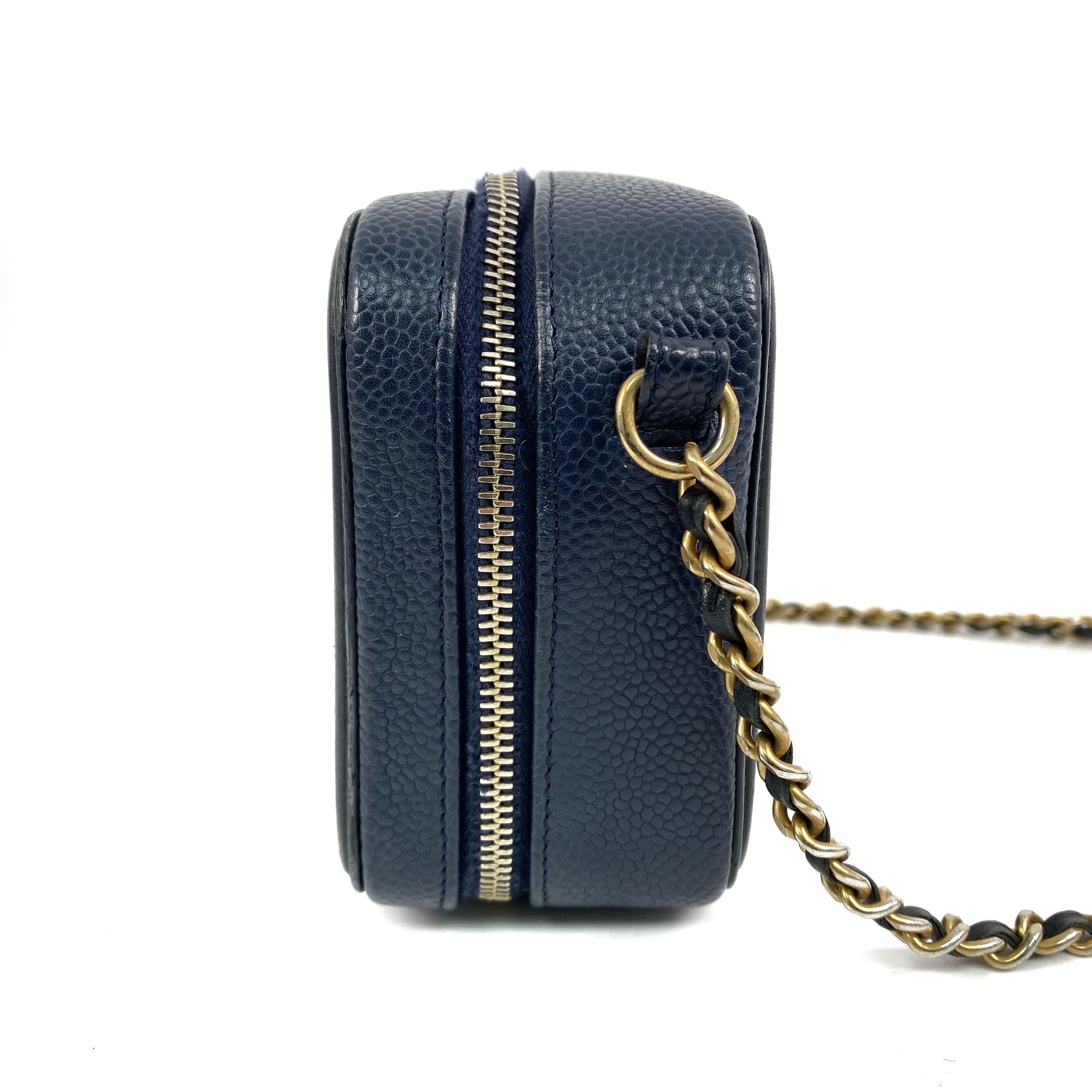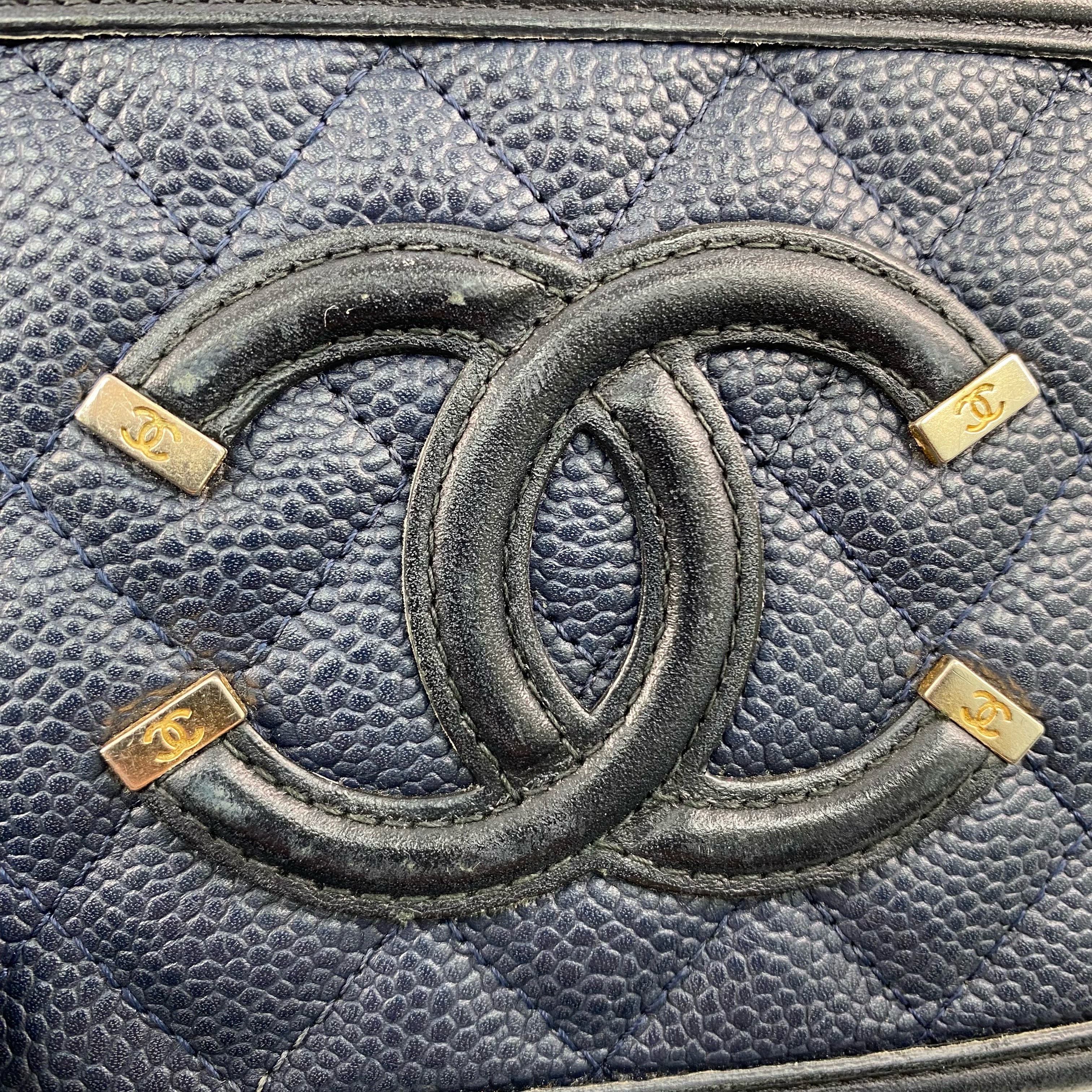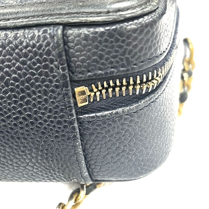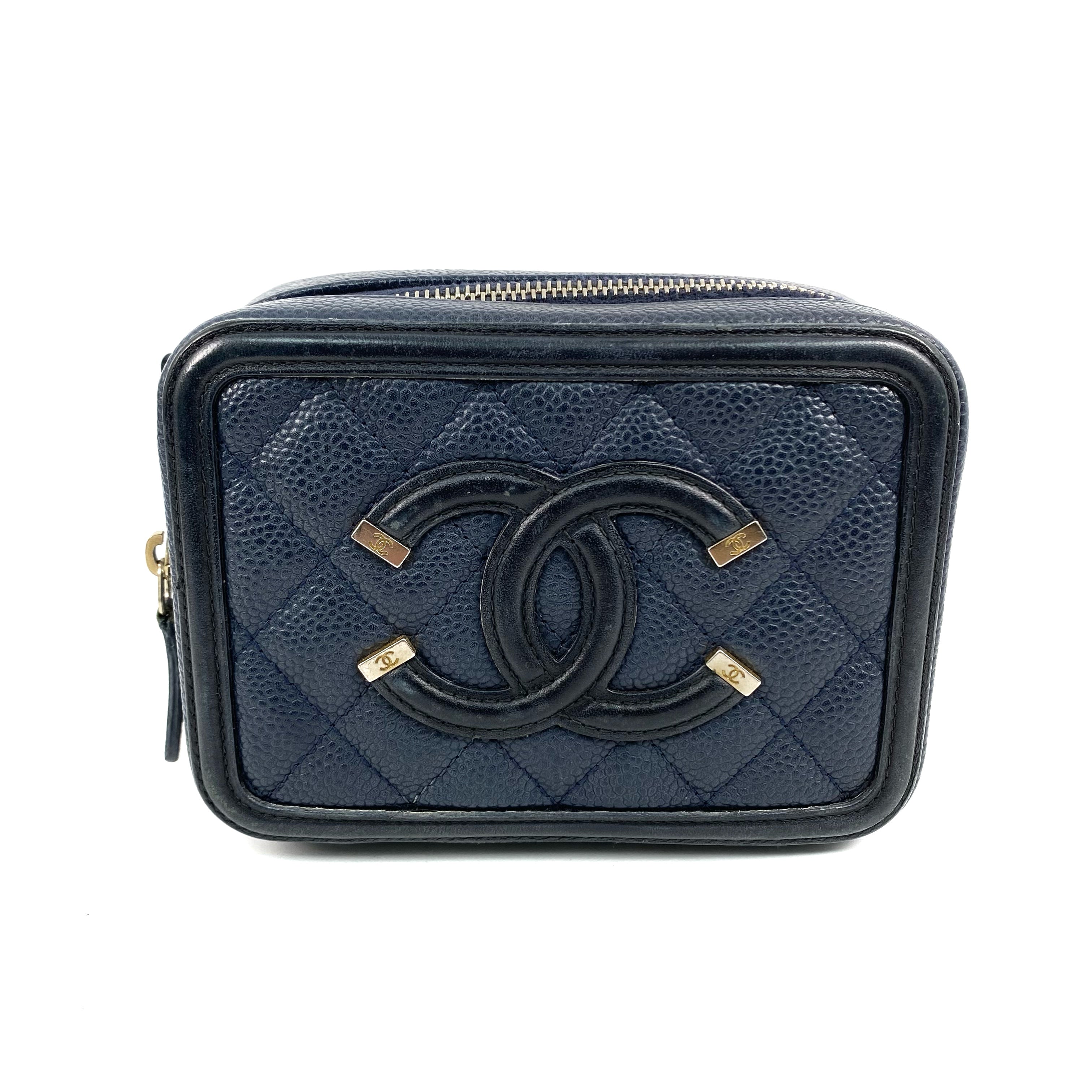 △ Chanel 香奈兒 Navy Caviar Skin Gold Tone Metal Filigree Mini Chain Vanity Case No.26 深藍色粒紋小牛皮金色金鎖鏈化妝箱No.26 - 267001936