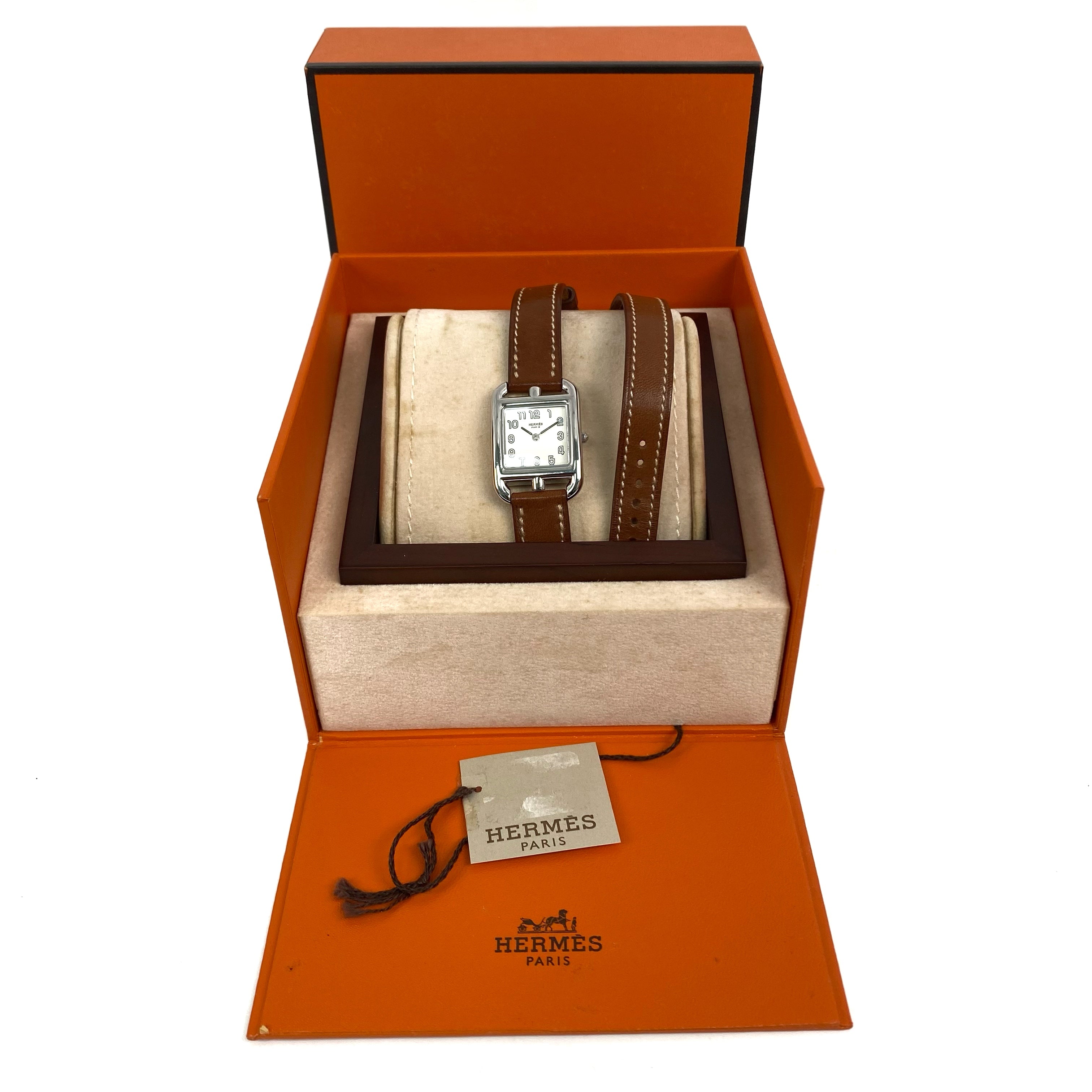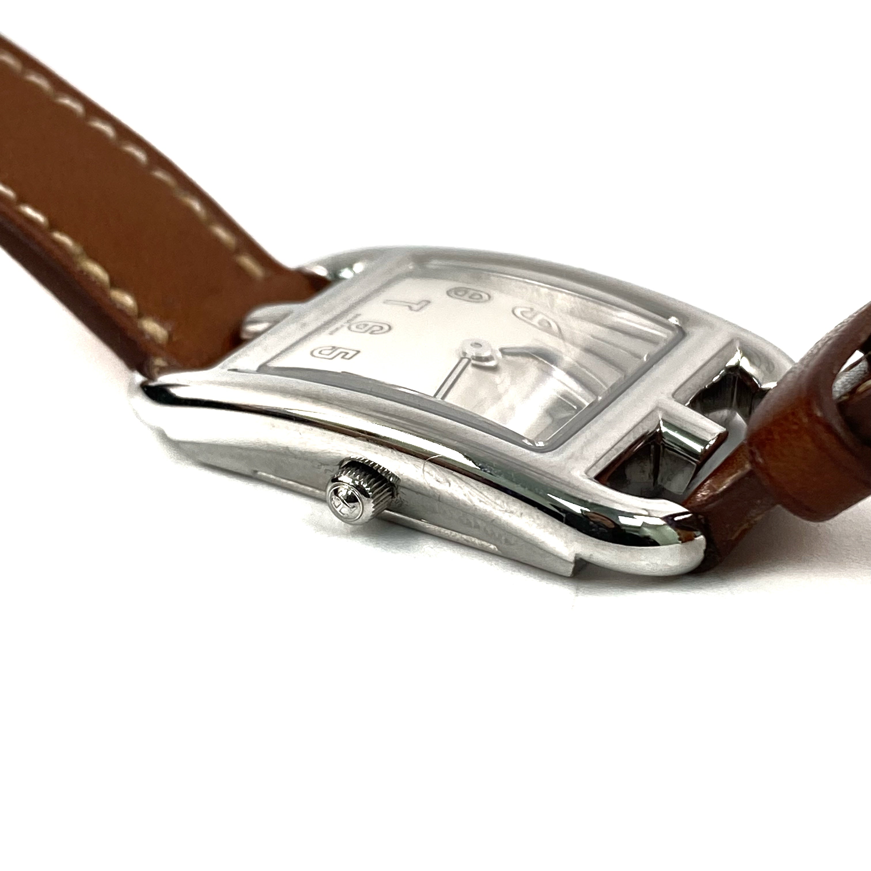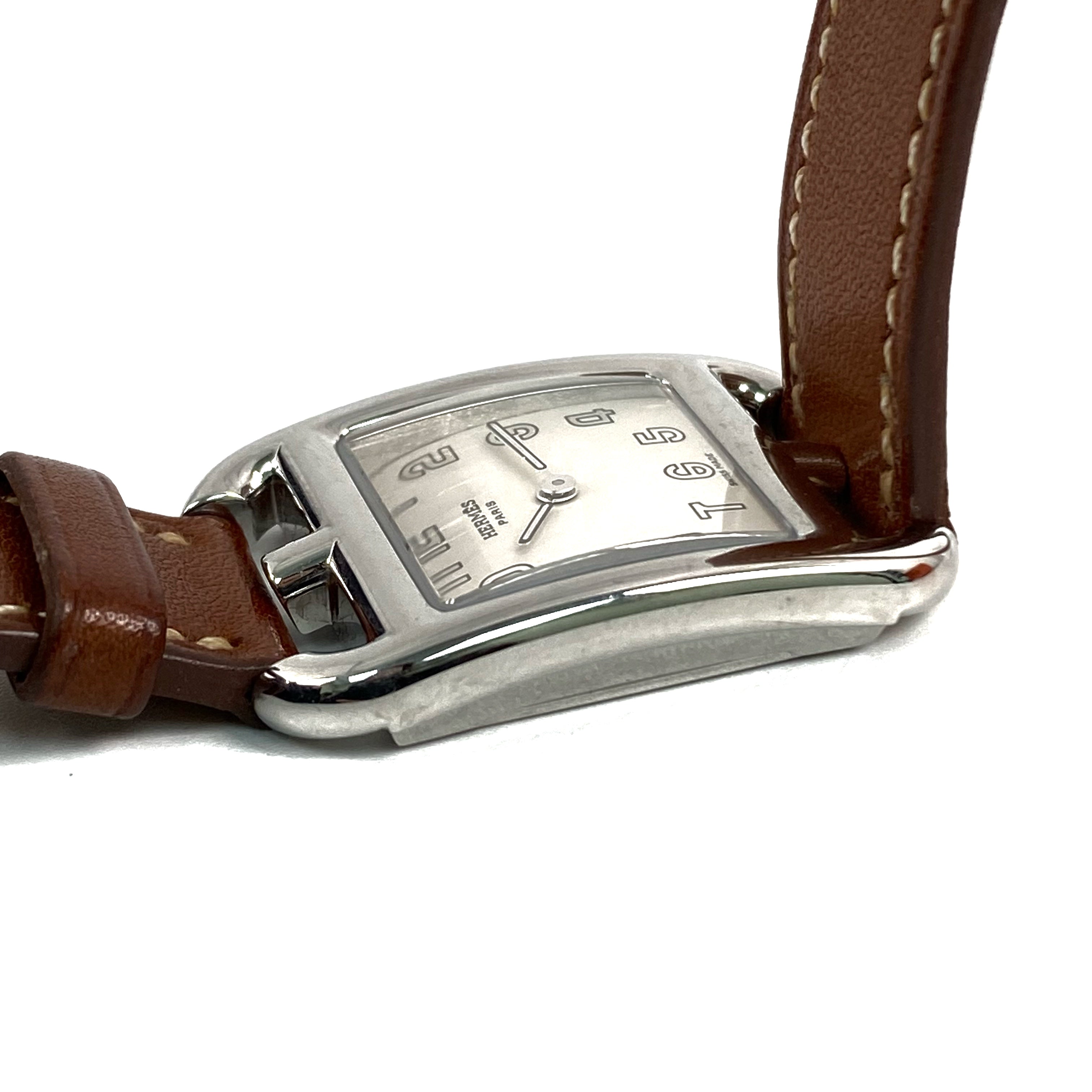△ Hermes 愛馬仕 Brown Calfskin And Stainless Steel Cape Cod Quartz Watch Stamp [V] CC1.210 啡色小牛皮和不鏽鋼石英手錶[V]刻 - 267001720