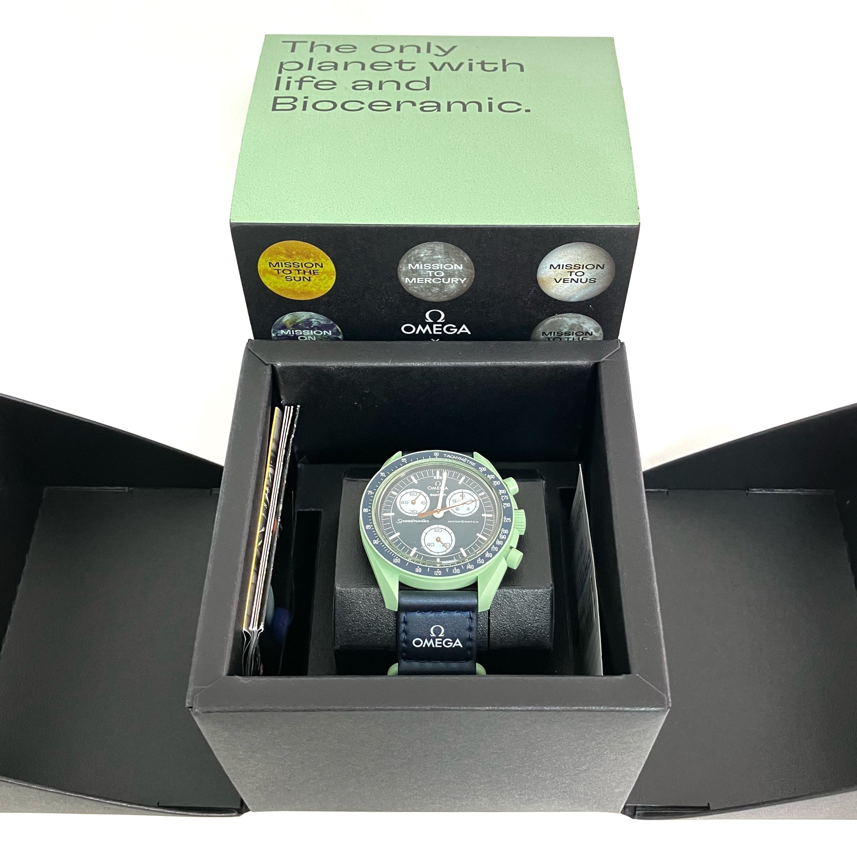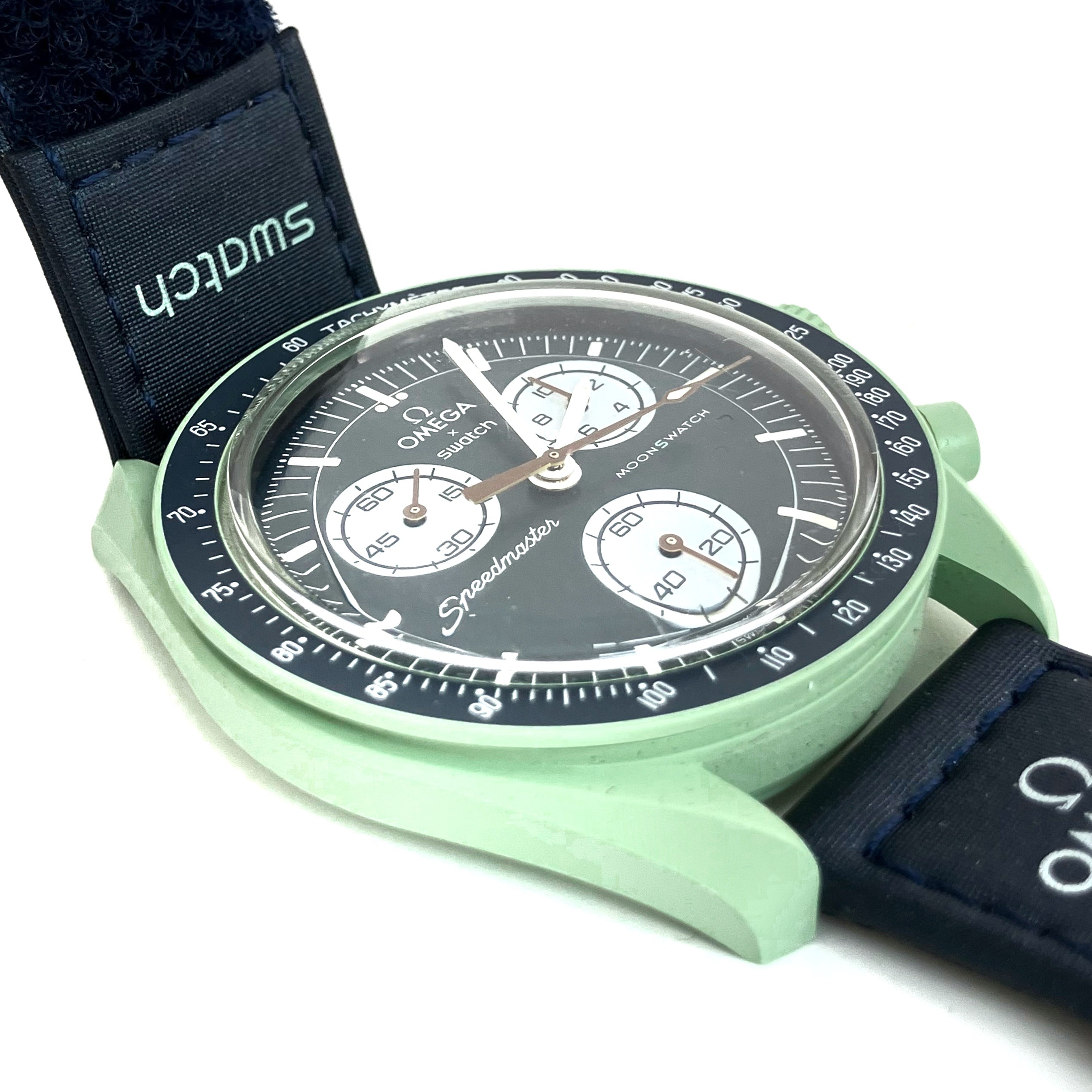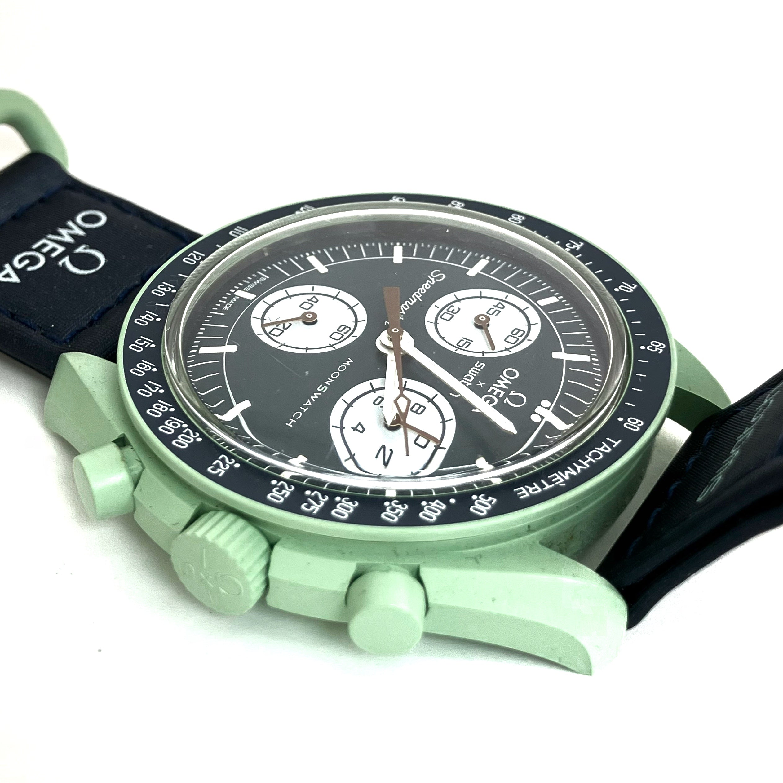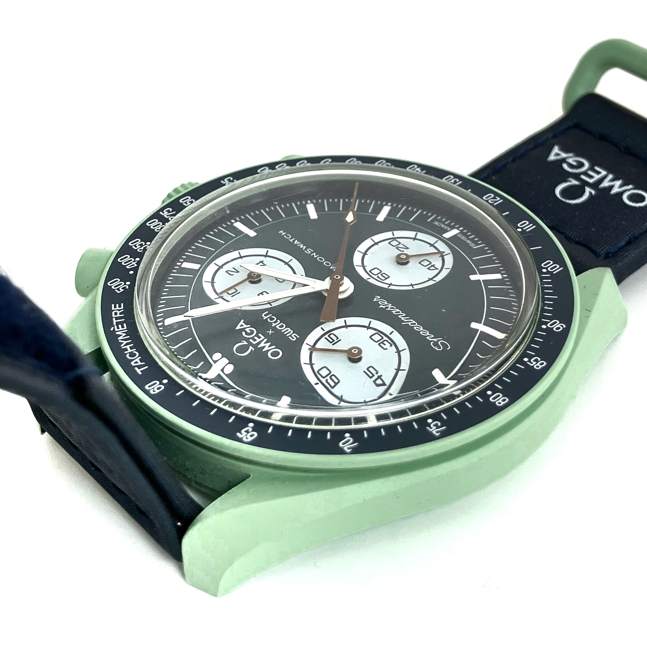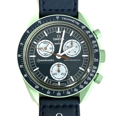 ☆ Omega 歐米茄 x Swatch Green Navy Bioceramic & Nylon Mission On Earth Quartz Watch 綠色深藍色生物陶瓷和尼龍石英錶 - 267005658