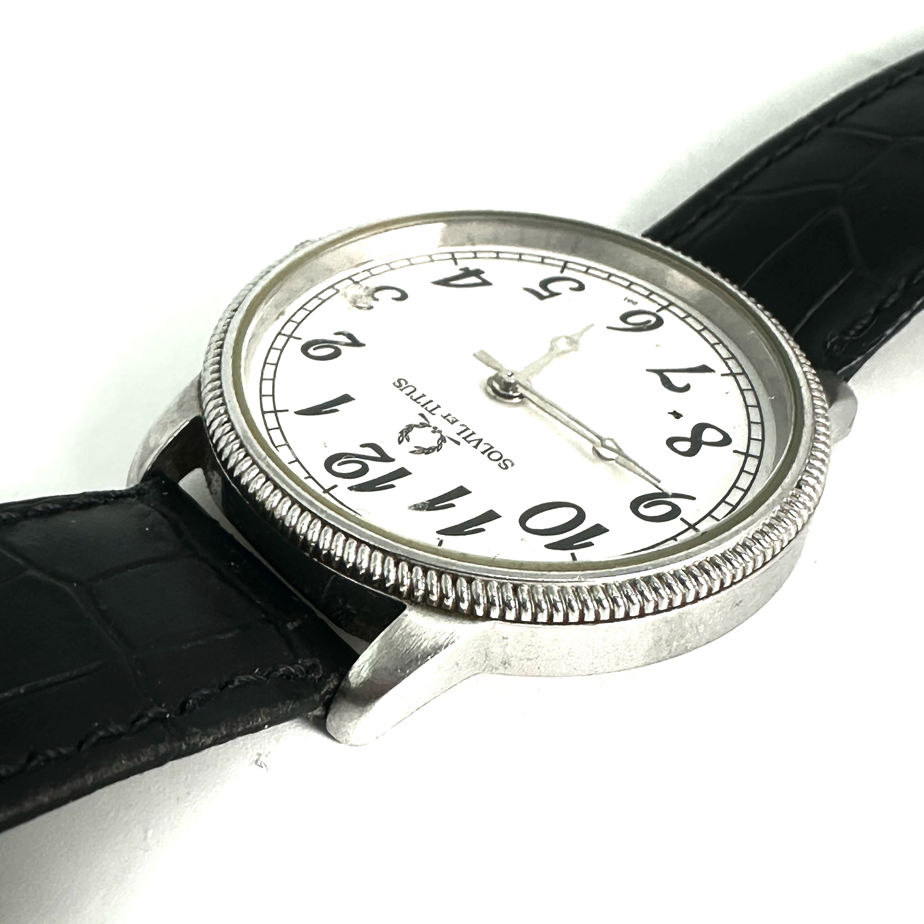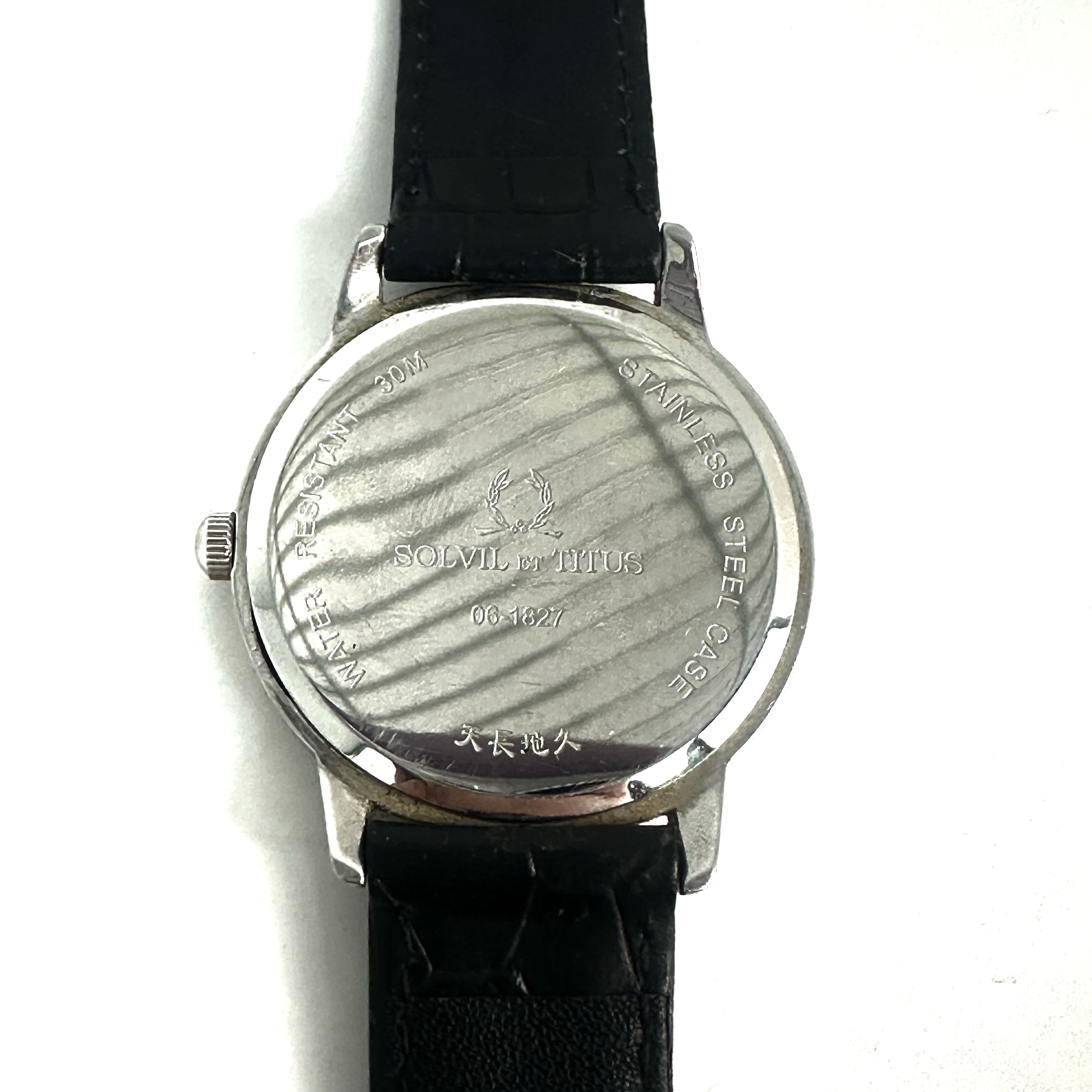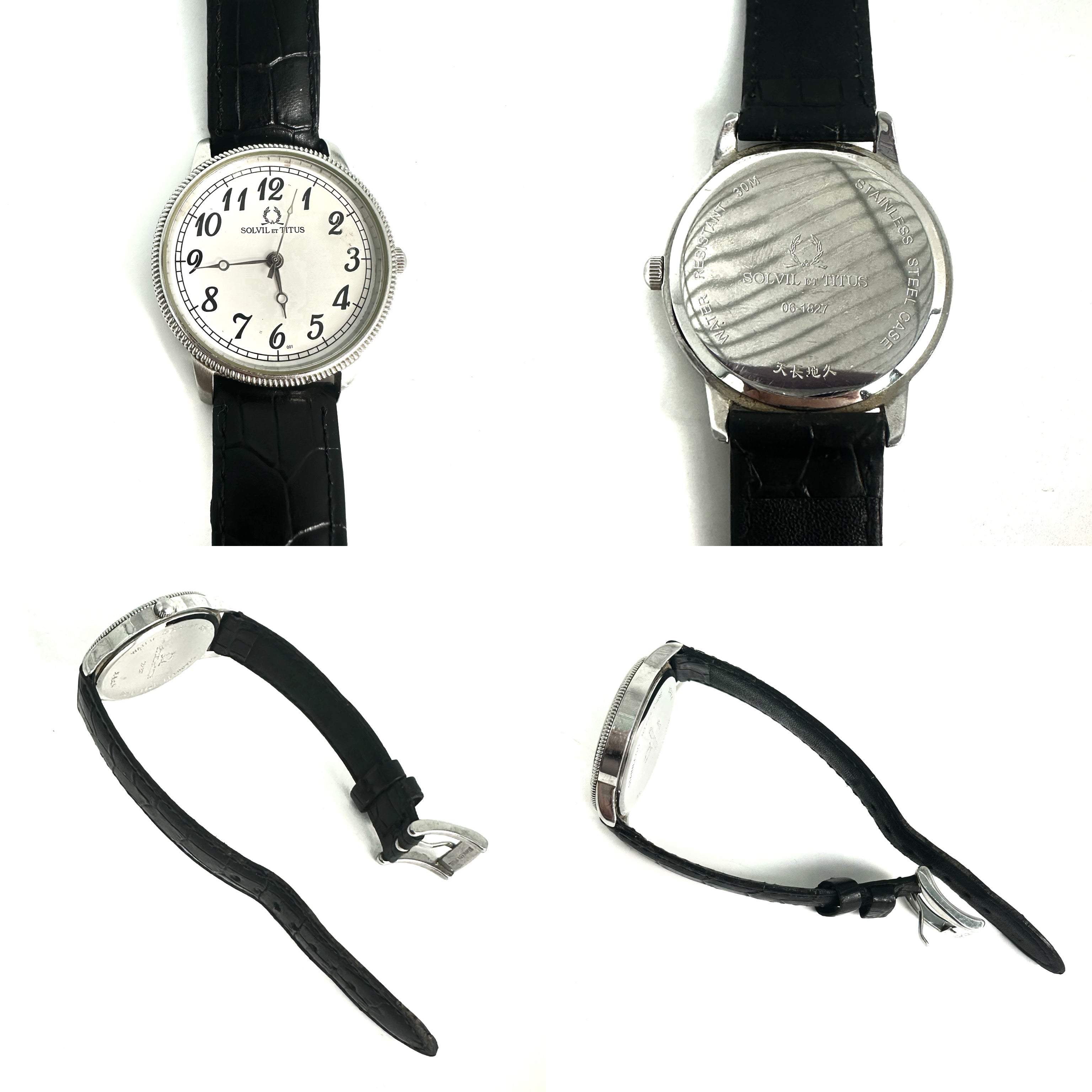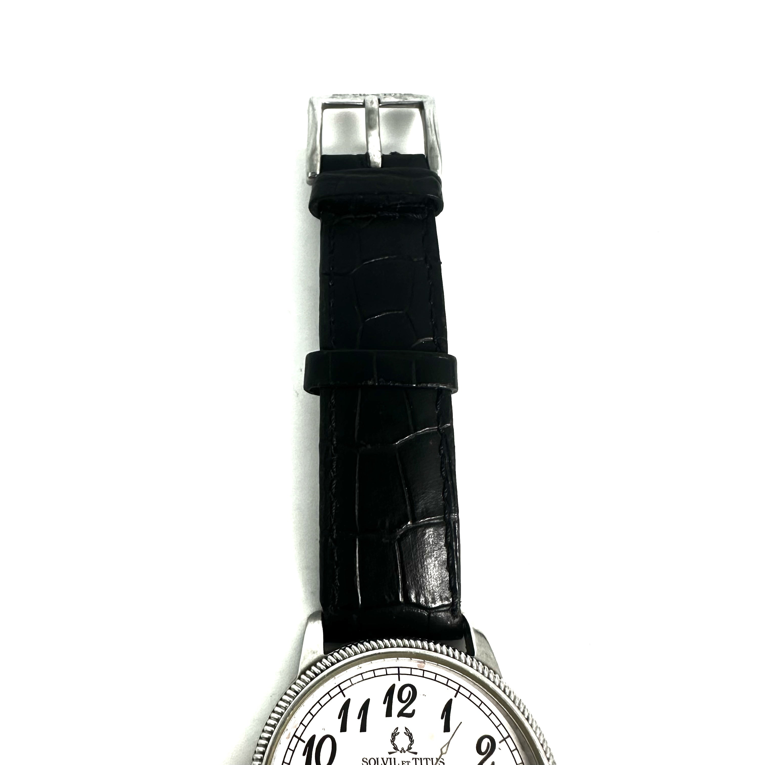 ☆ Solvil et Titus 鐵達時 Black Calfskin And Stainless Steel Quartz Watch 06-1827 黑色小牛皮和不鏽鋼石英手錶 - 257025738