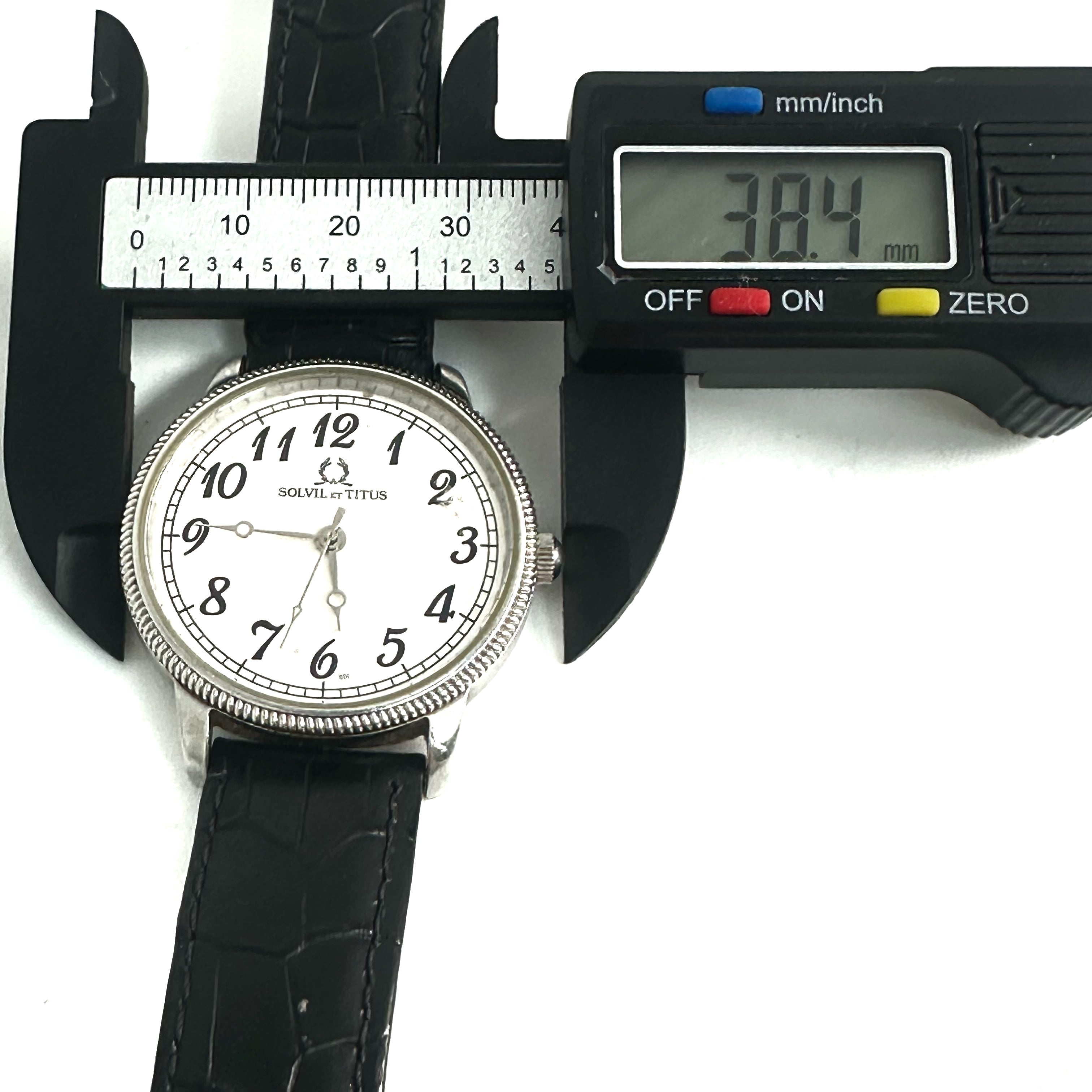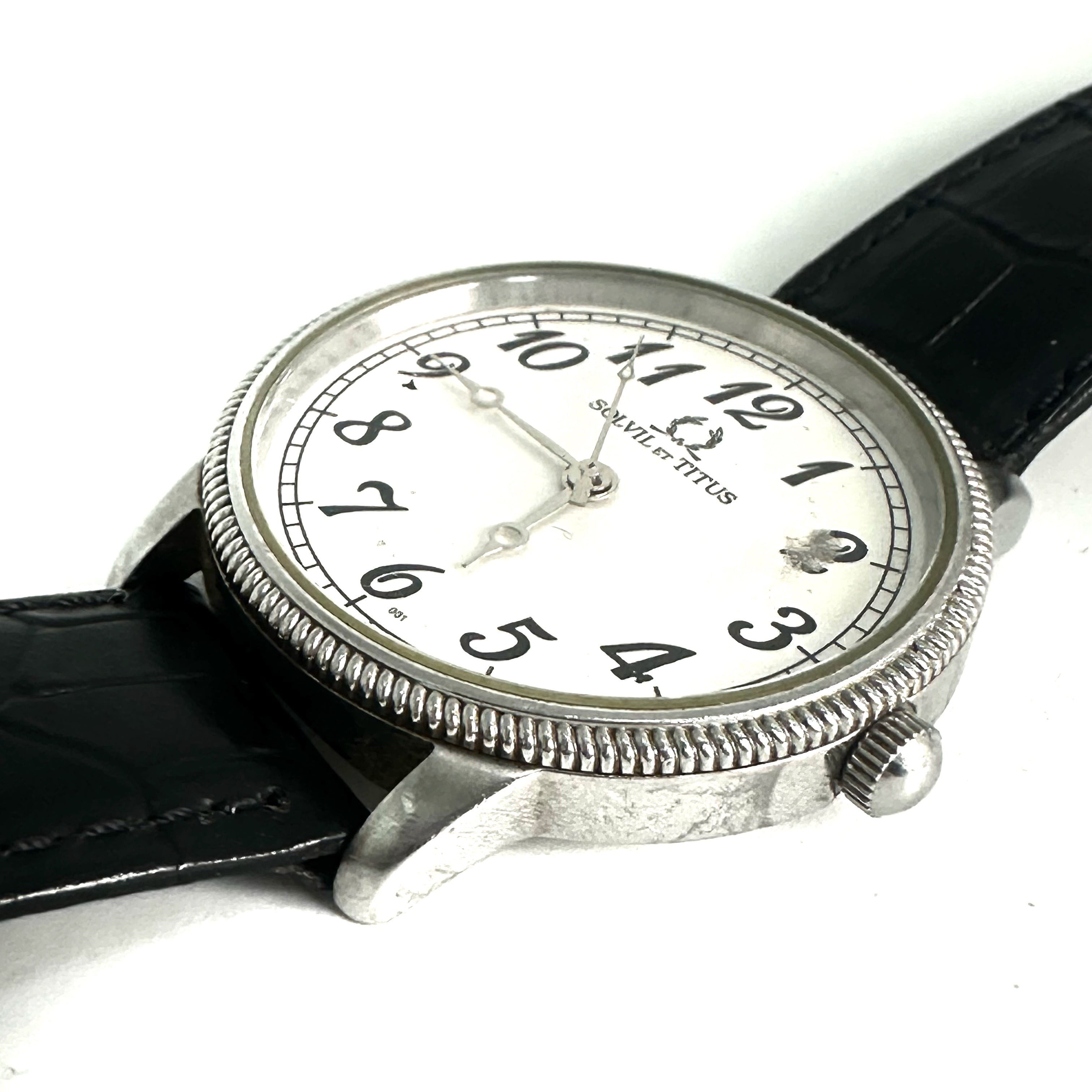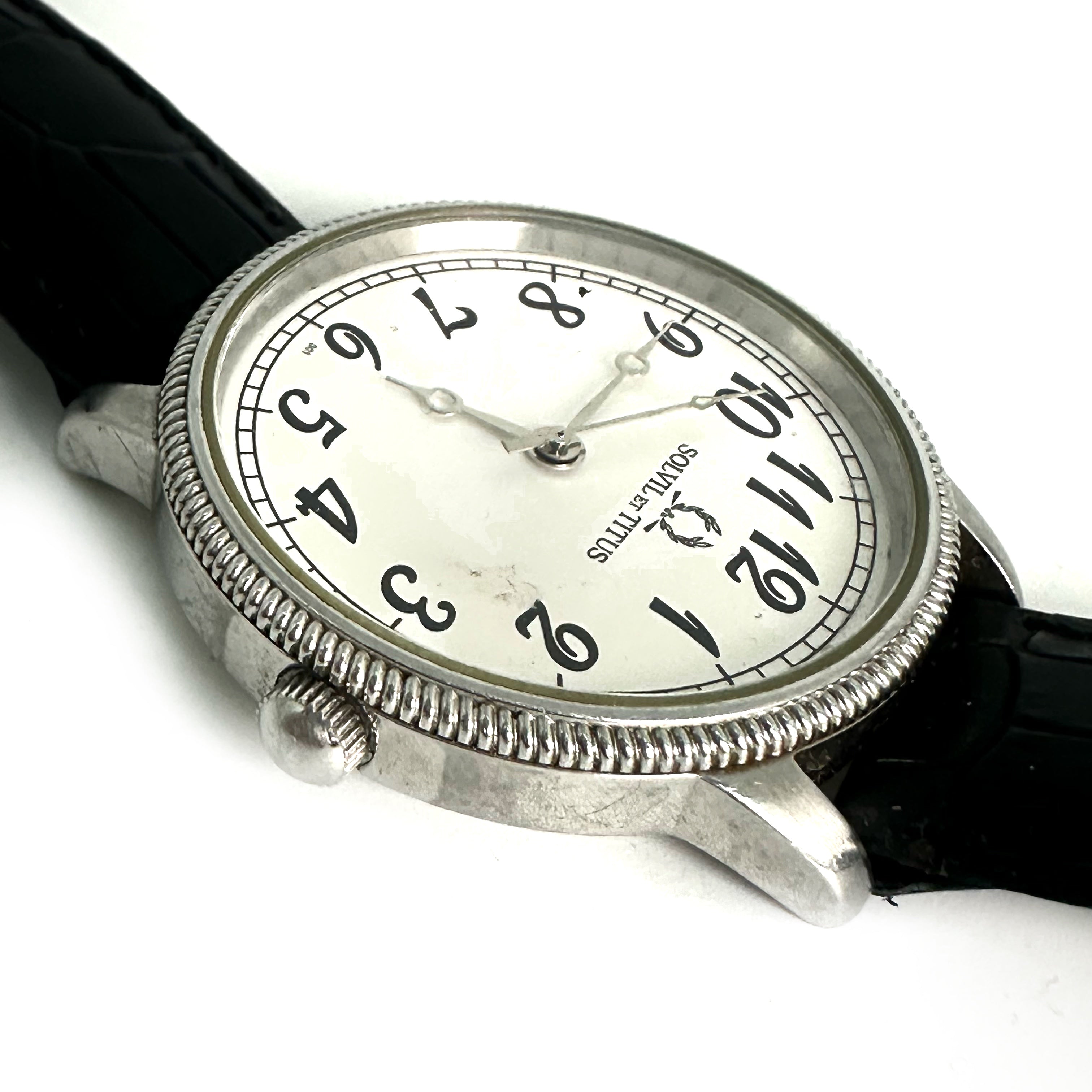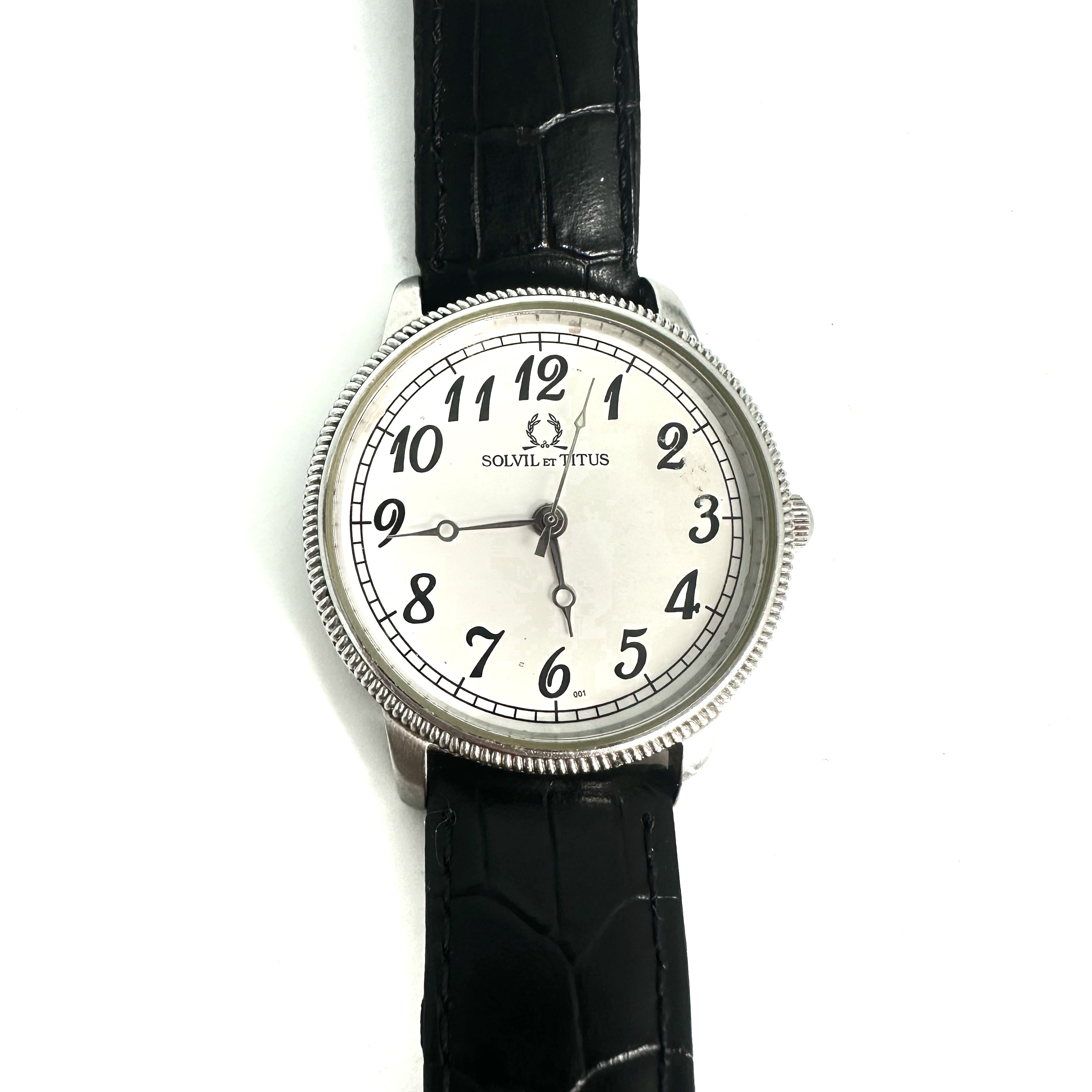 ☆ Solvil et Titus 鐵達時 Black Calfskin And Stainless Steel Quartz Watch 06-1827 黑色小牛皮和不鏽鋼石英手錶 - 257025738