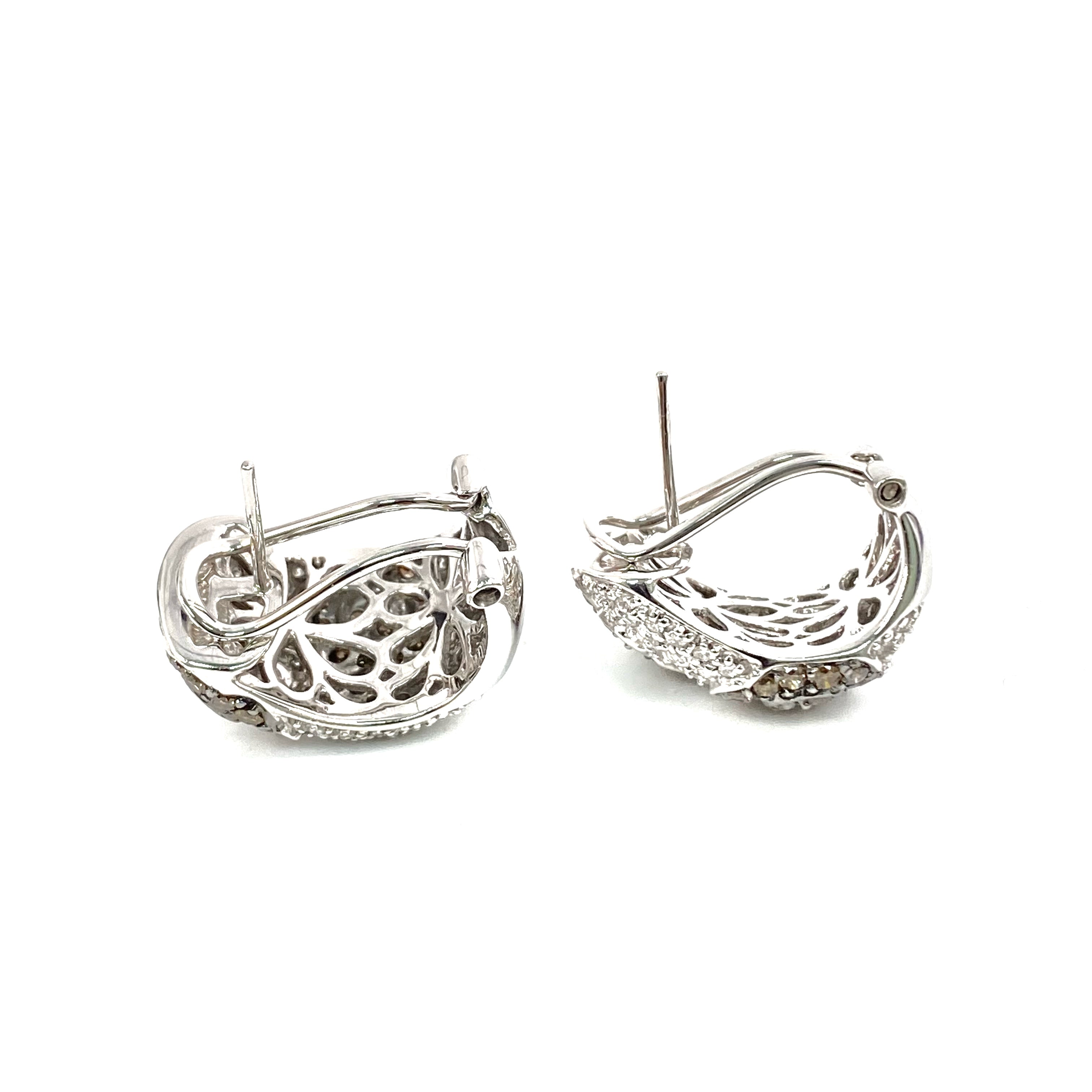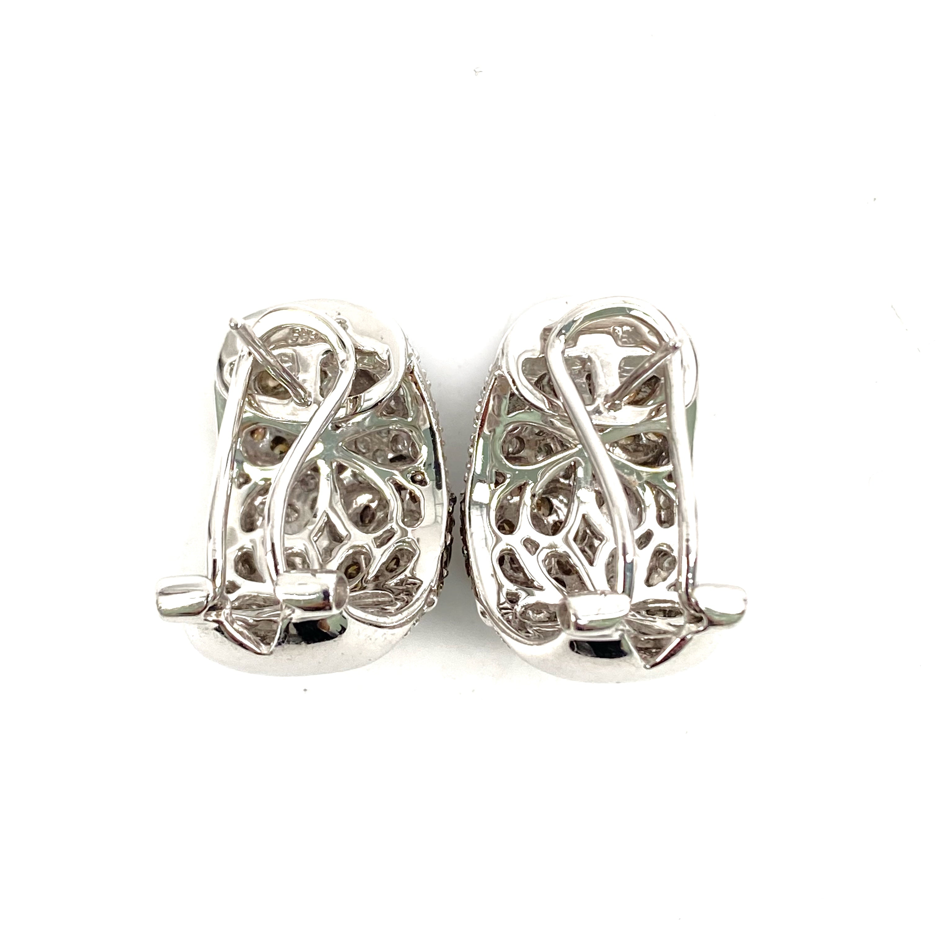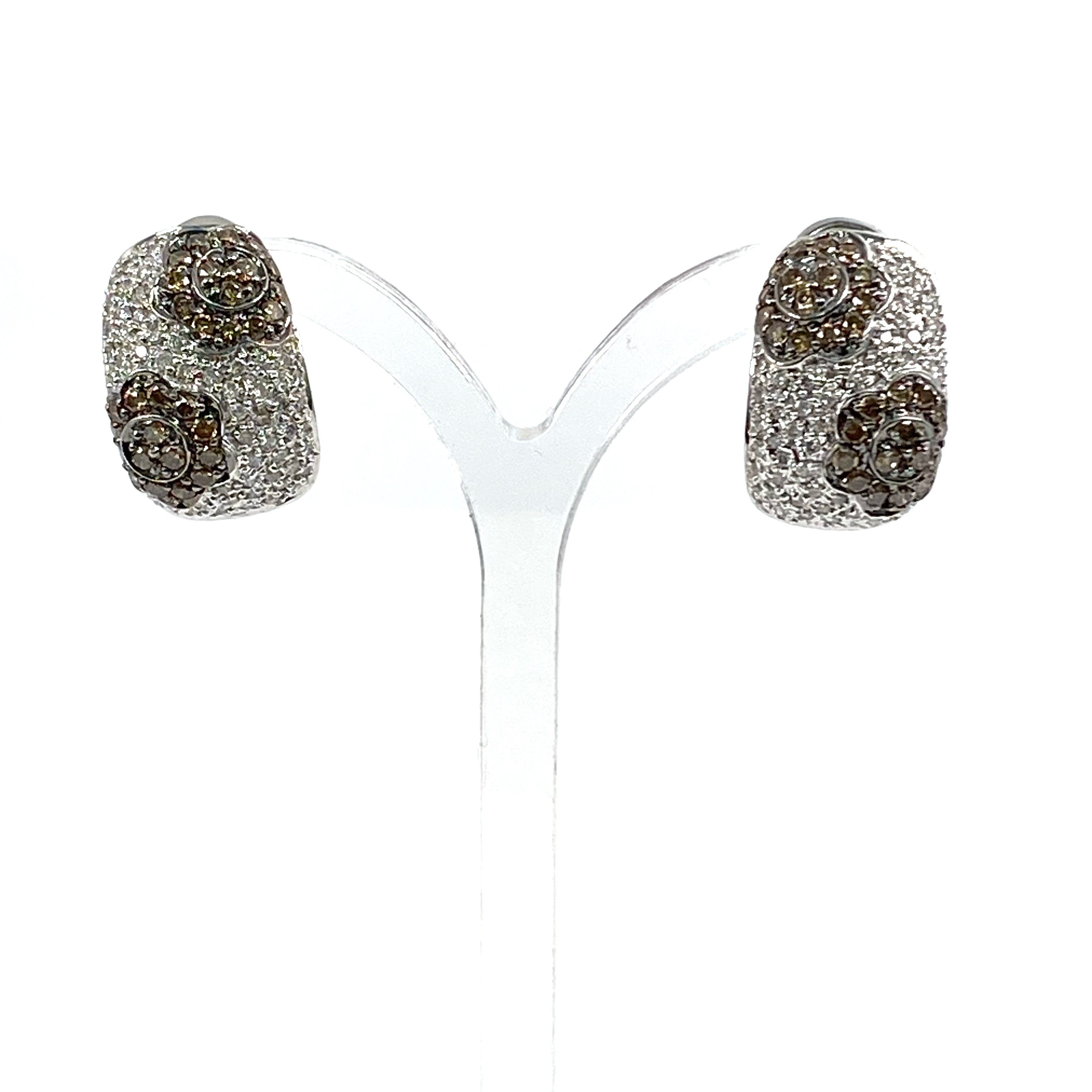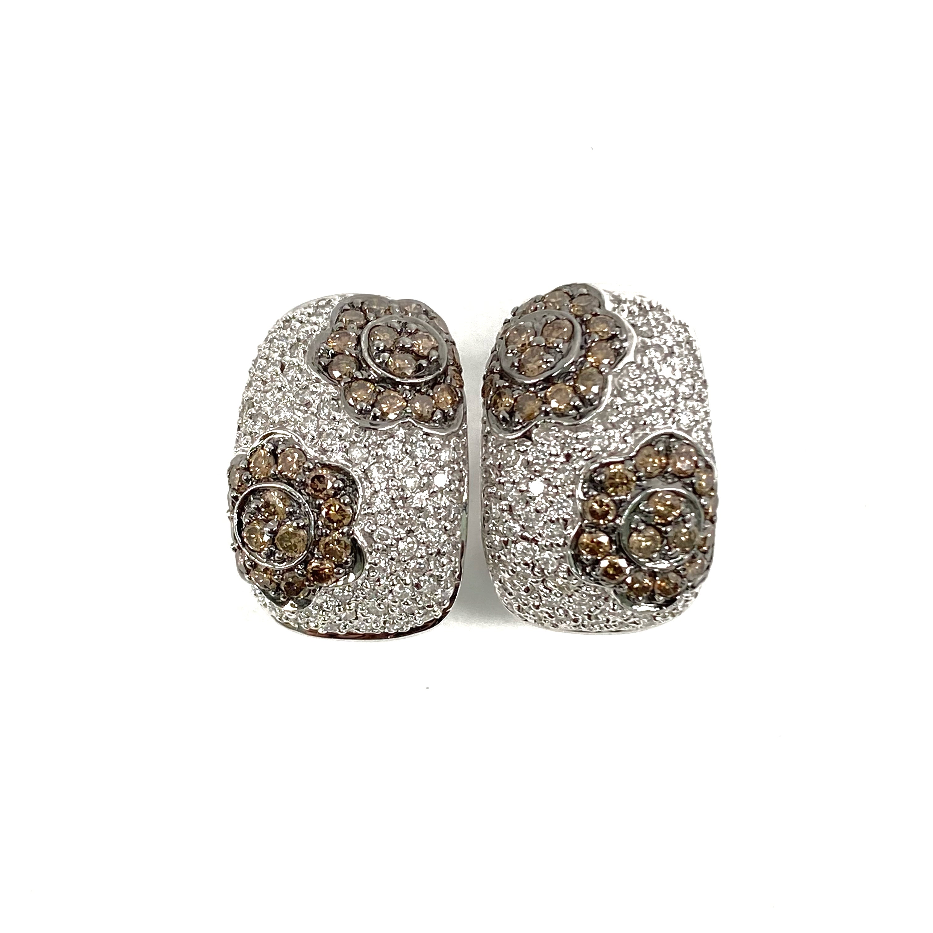 △ 14K White Gold Melee Diamonds And Brown Diamonds Flower Earrings 12.96g 14K白金碎鑽和啡鑽花花耳環 - 267001040