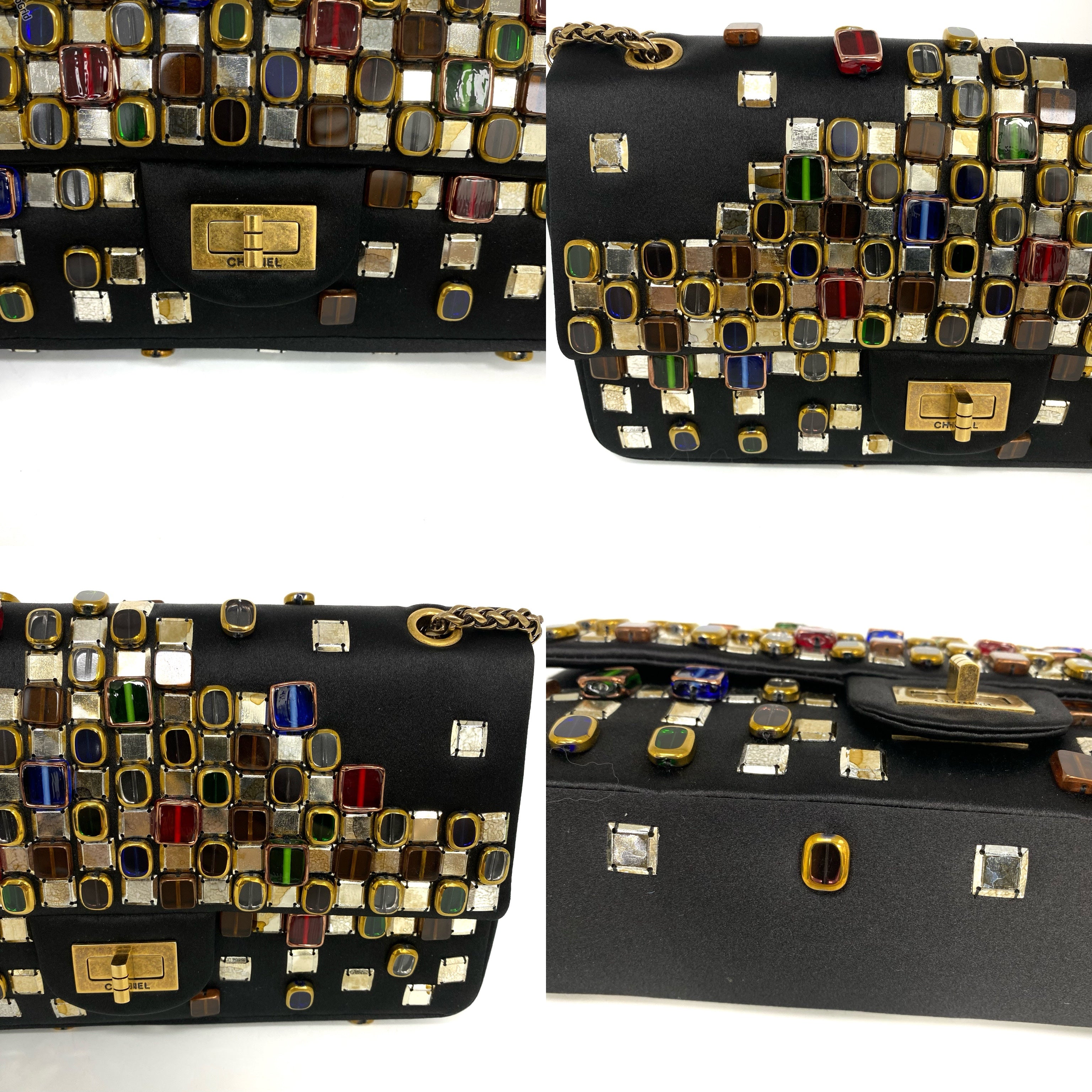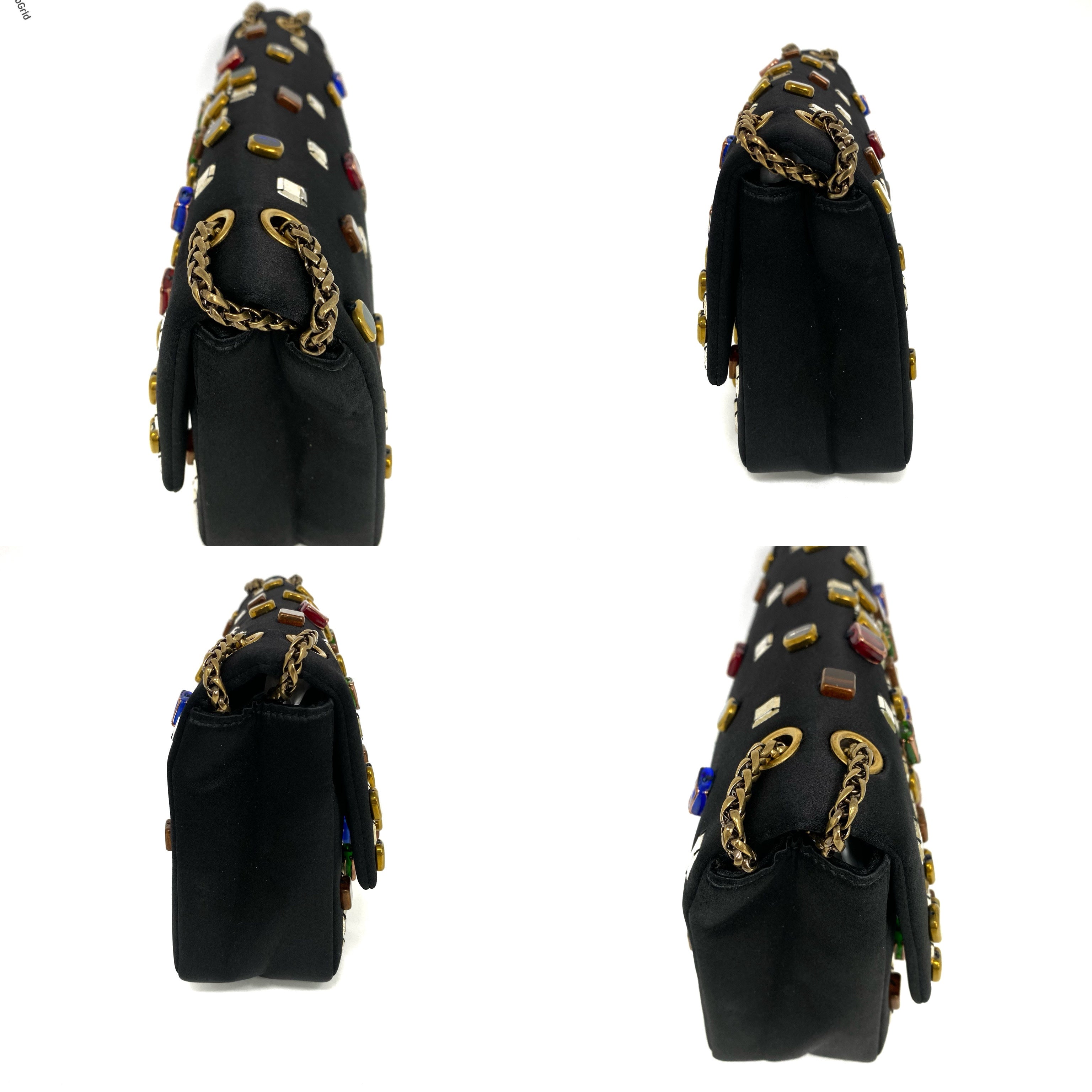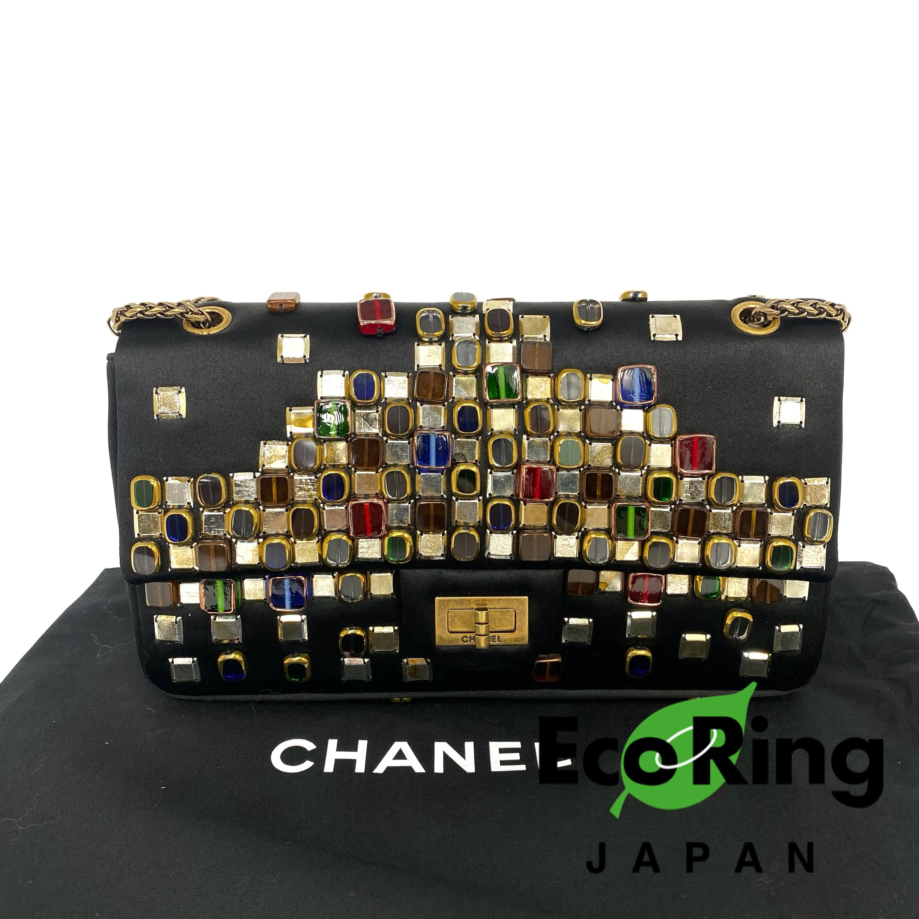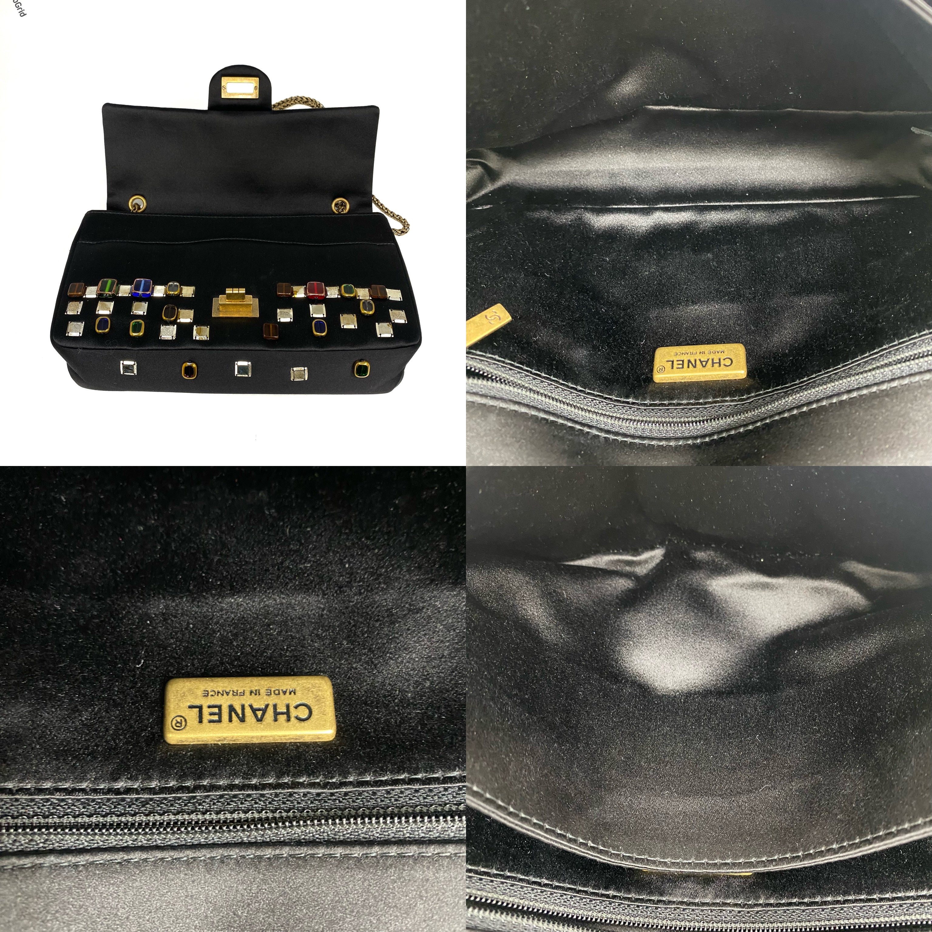 △ Chanel 香奈兒 2.55 Black Satin Beads Gold Tone Metal Chain Shoulder Bag No.14 黑色緞面飾珠金色金屬鏈 條肩背袋 No.14 -257017202
