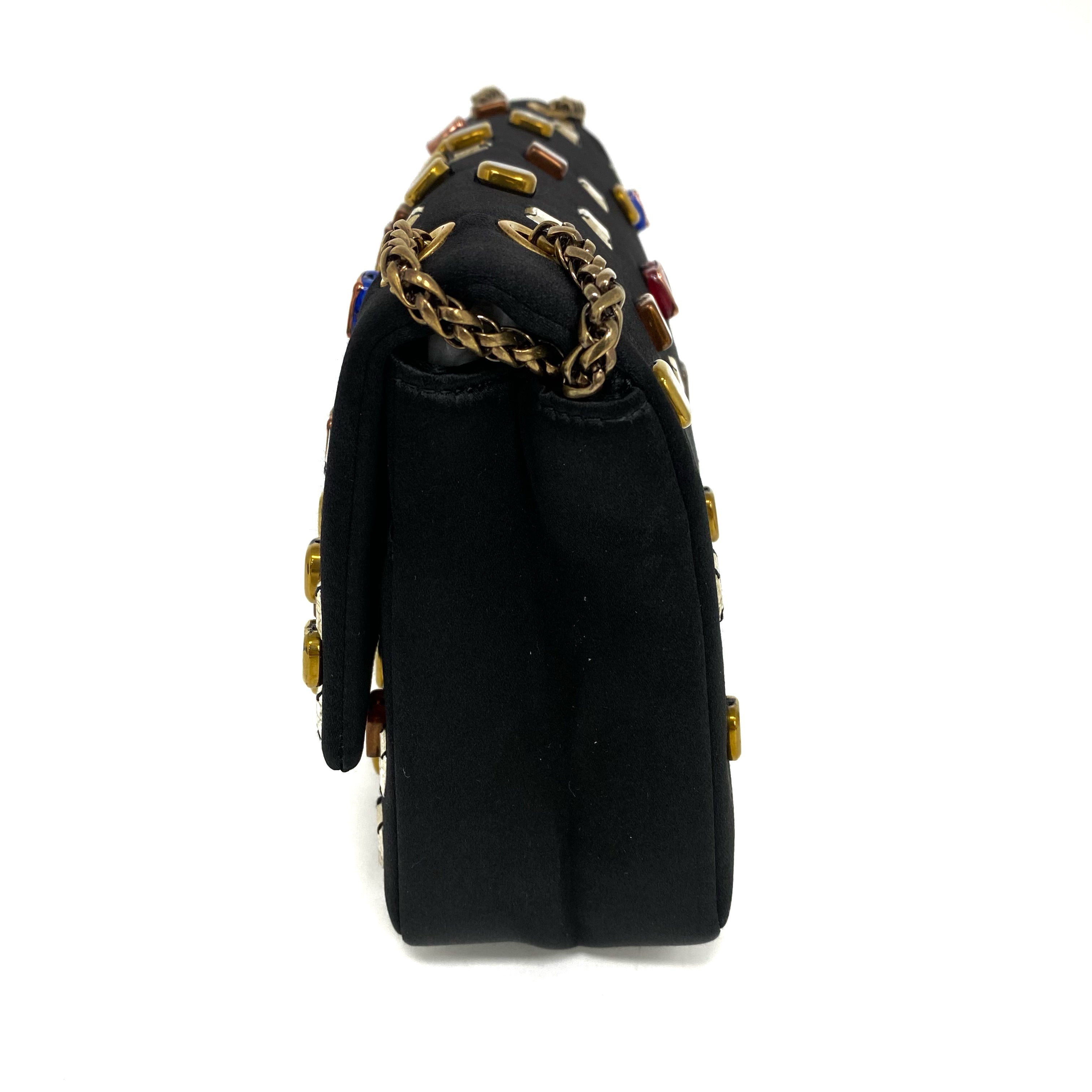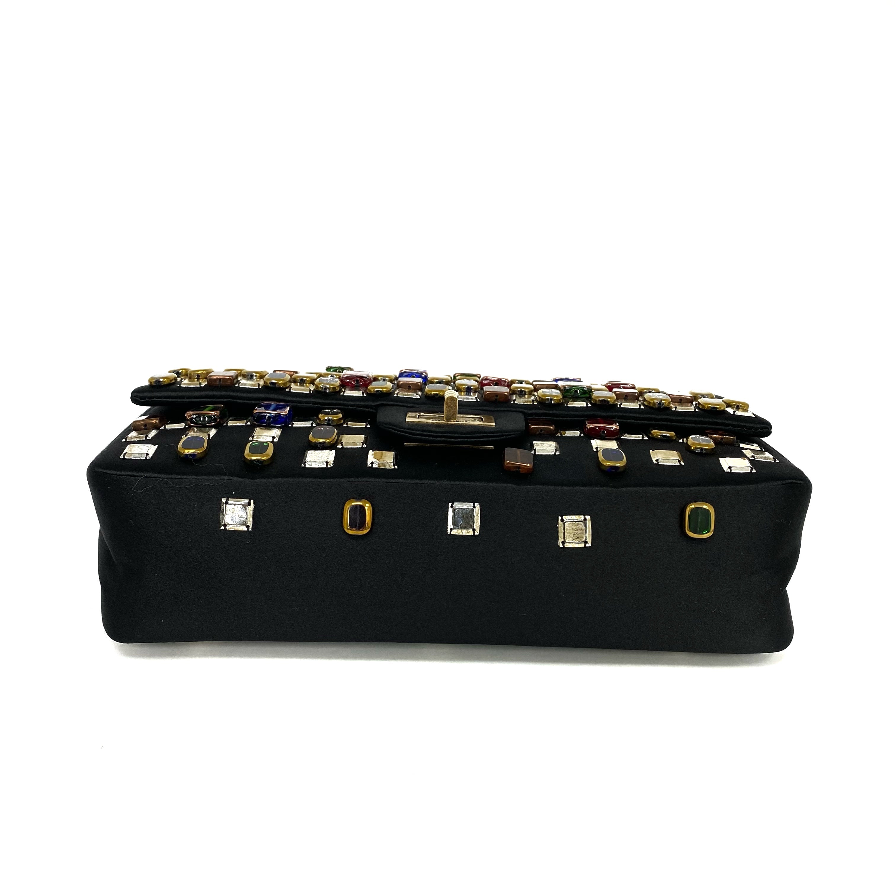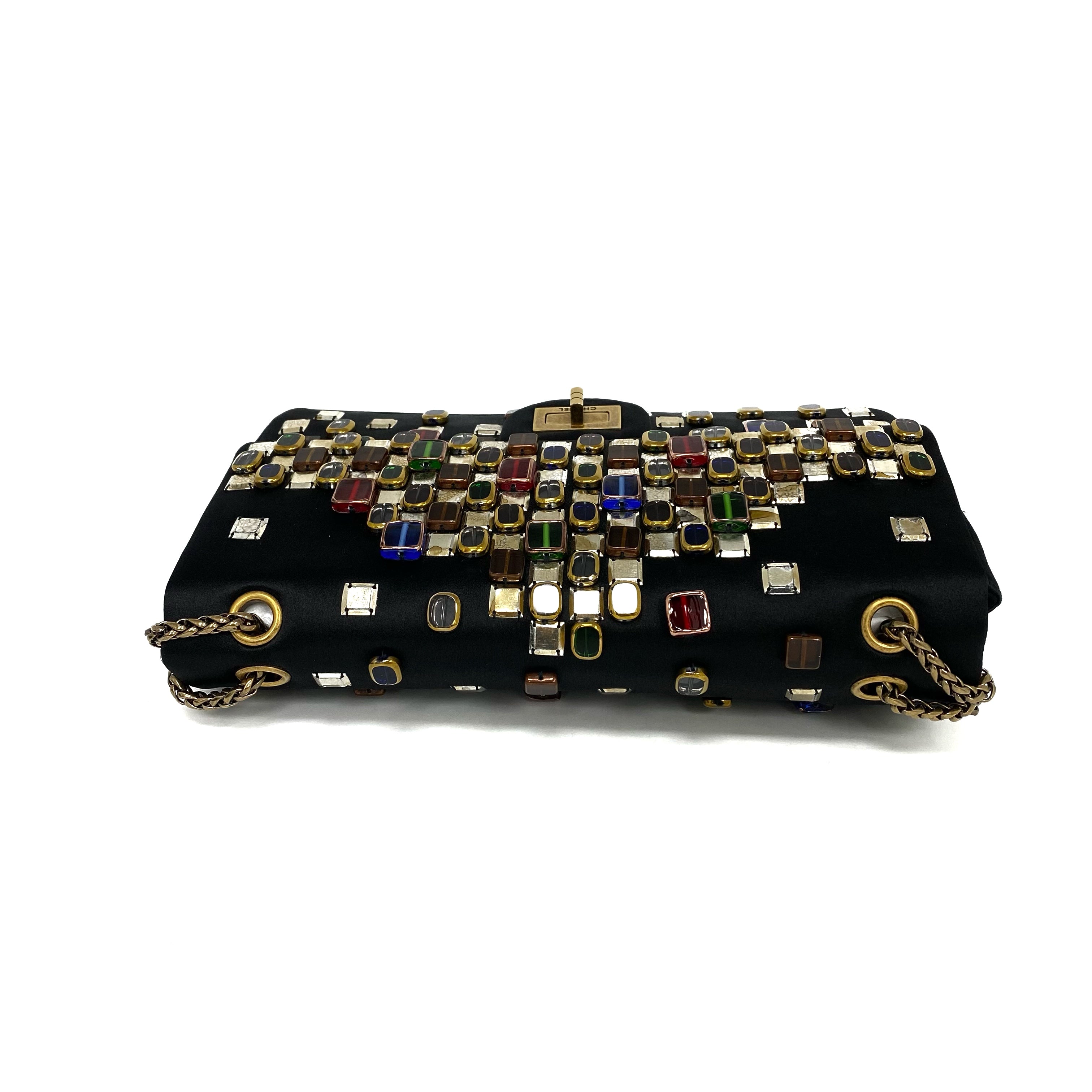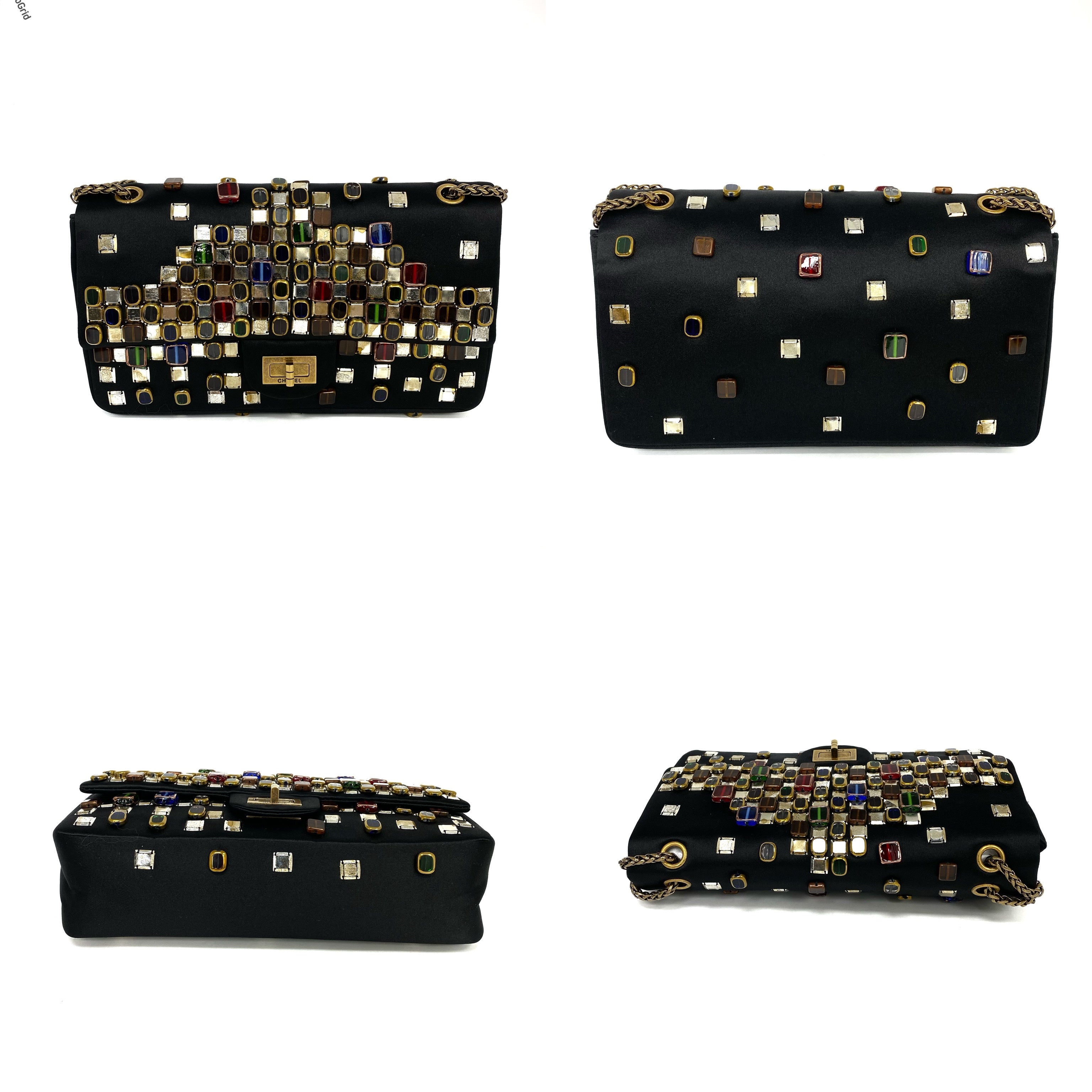 △ Chanel 香奈兒 2.55 Black Satin Beads Gold Tone Metal Chain Shoulder Bag No.14 黑色緞面飾珠金色金屬鏈 條肩背袋 No.14 -257017202