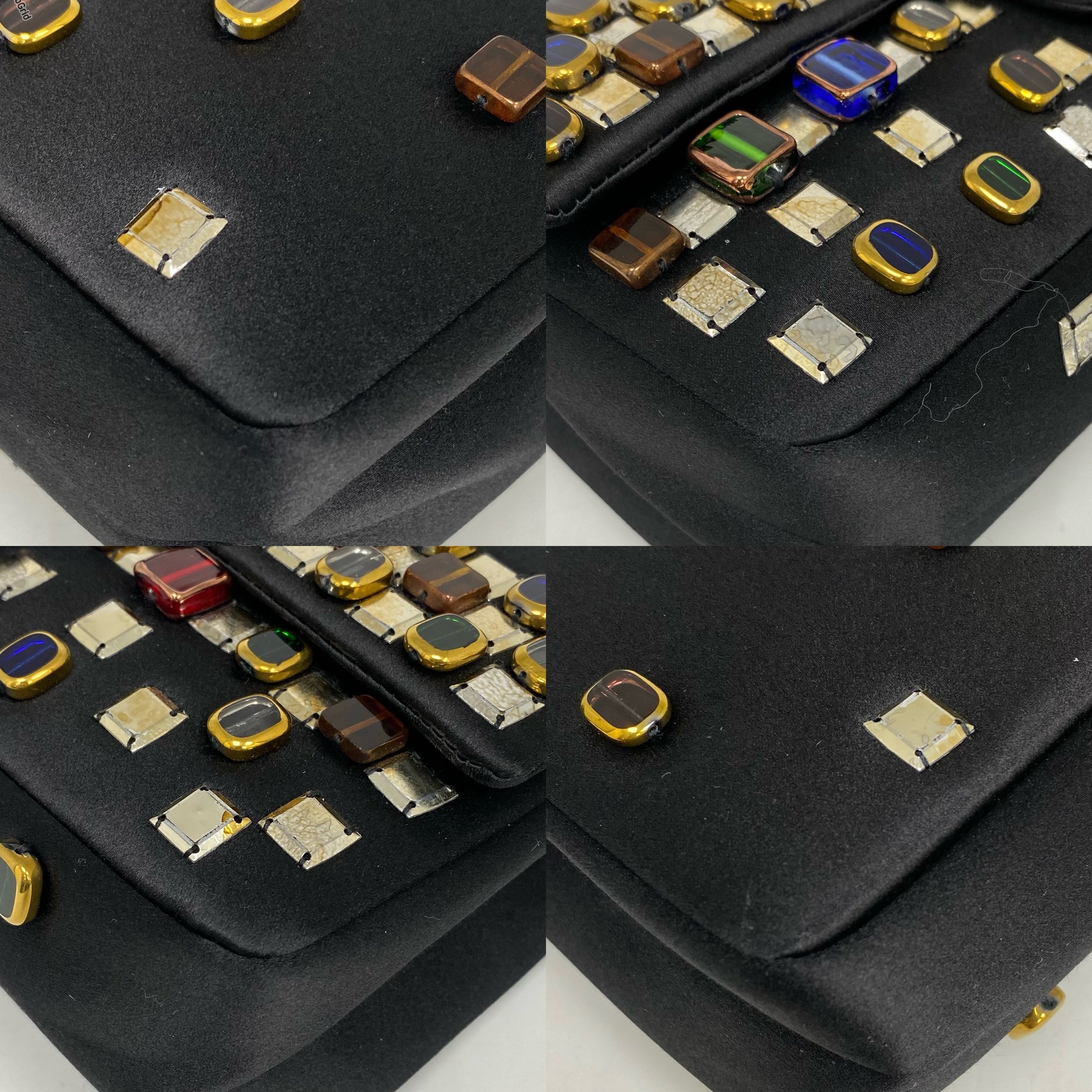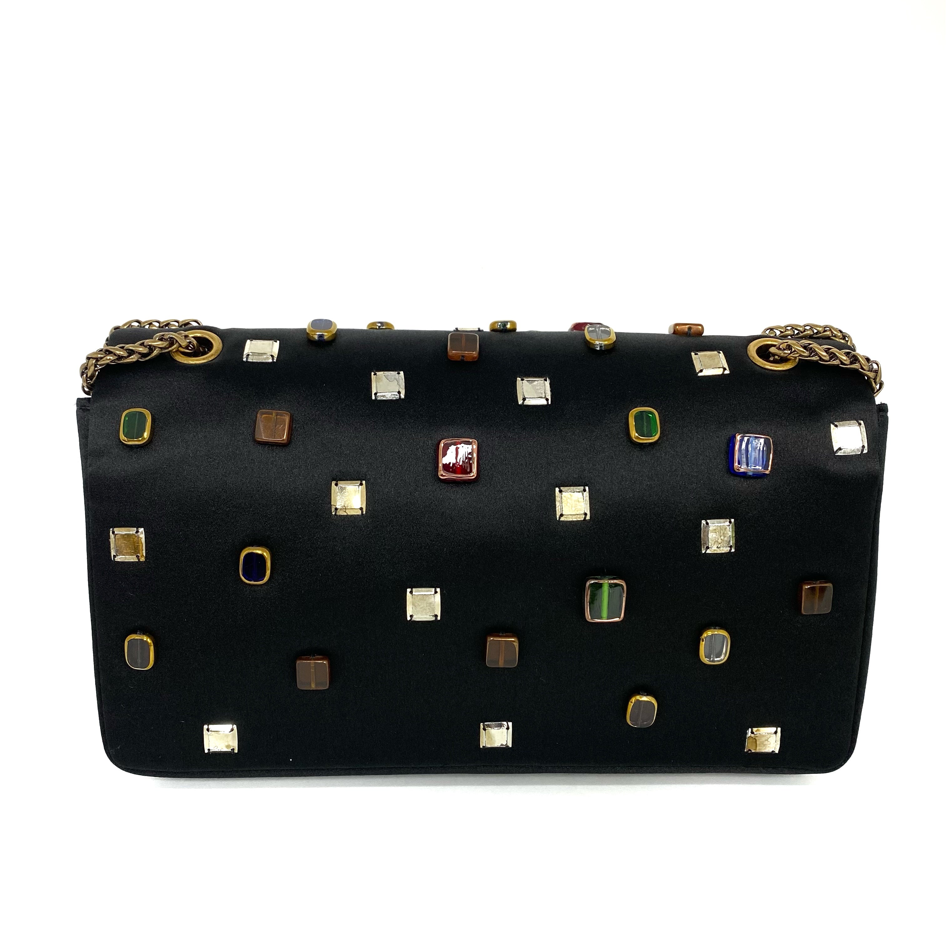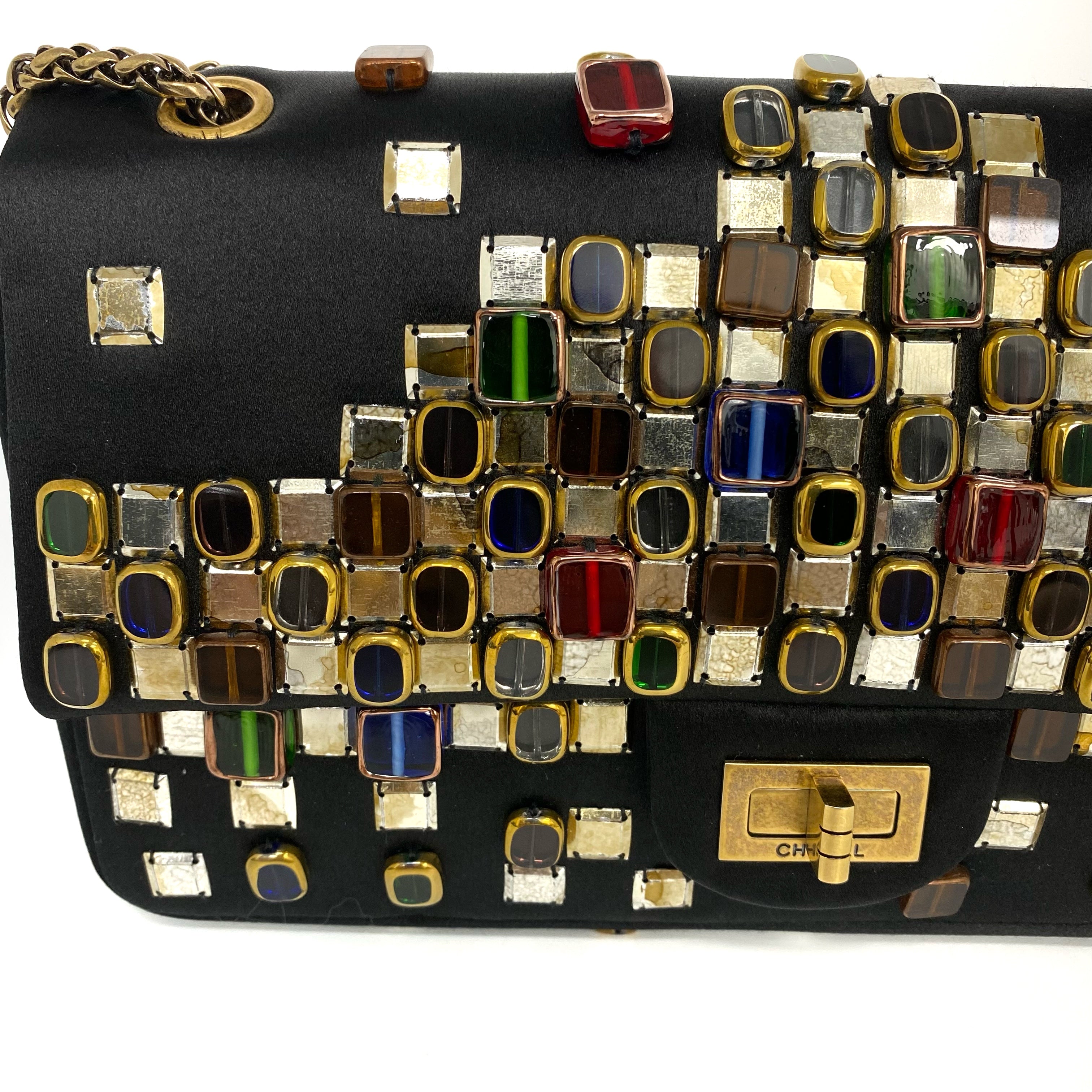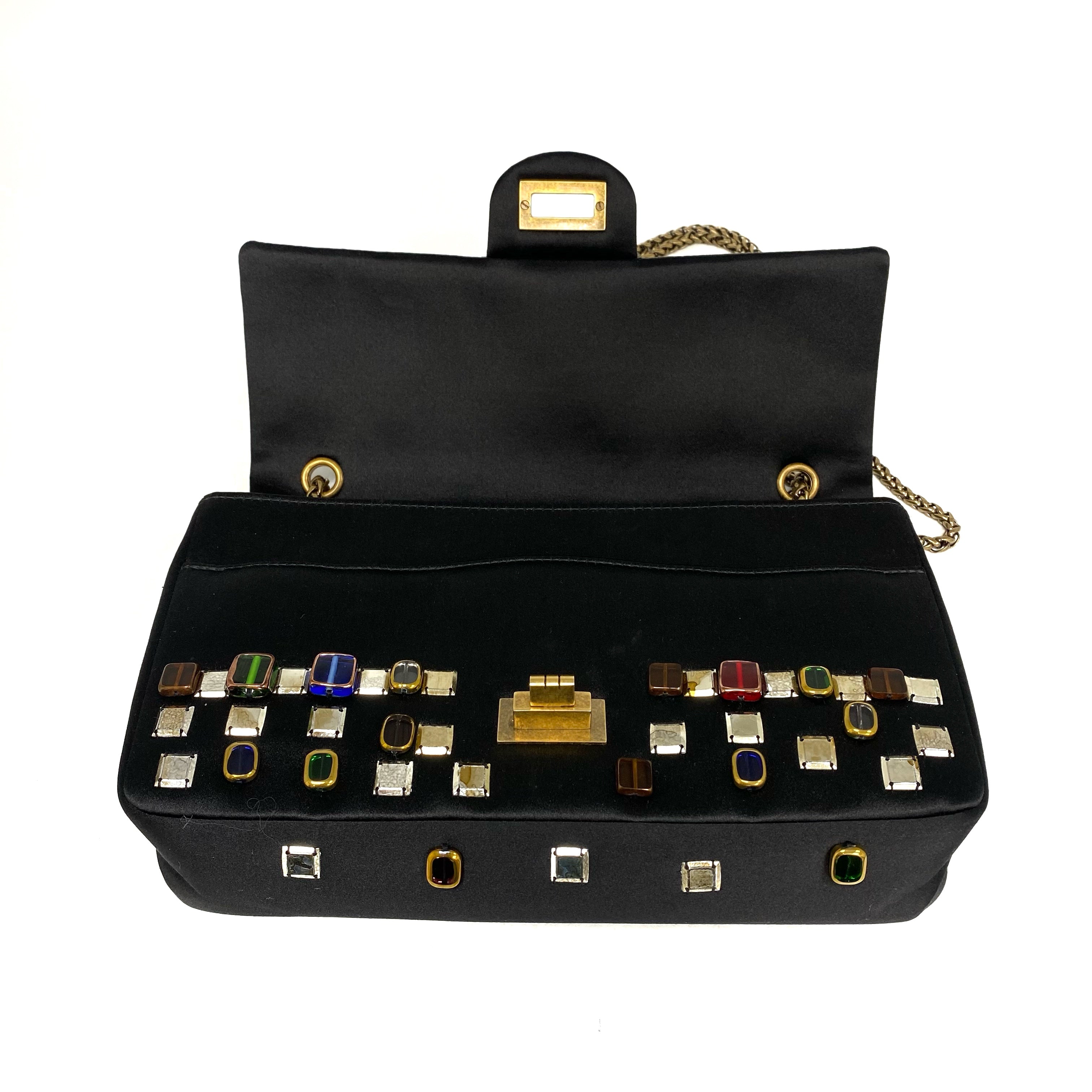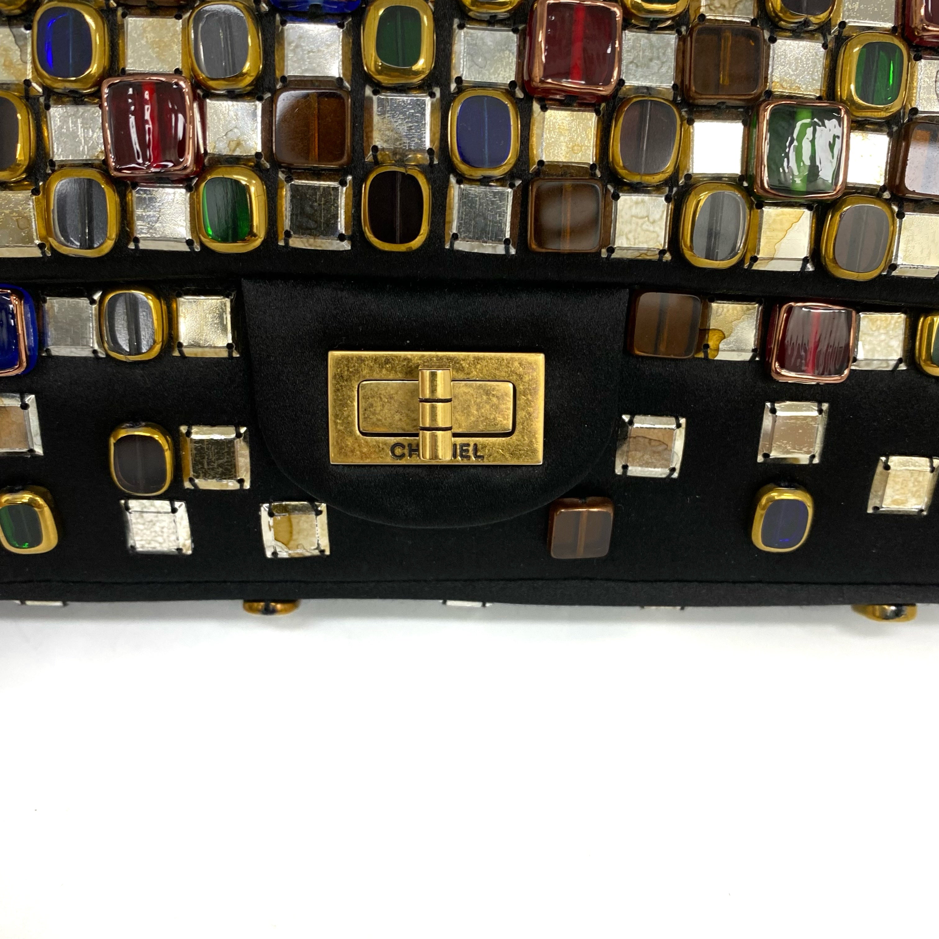 △ Chanel 香奈兒 2.55 Black Satin Beads Gold Tone Metal Chain Shoulder Bag No.14 黑色緞面飾珠金色金屬鏈 條肩背袋 No.14 -257017202