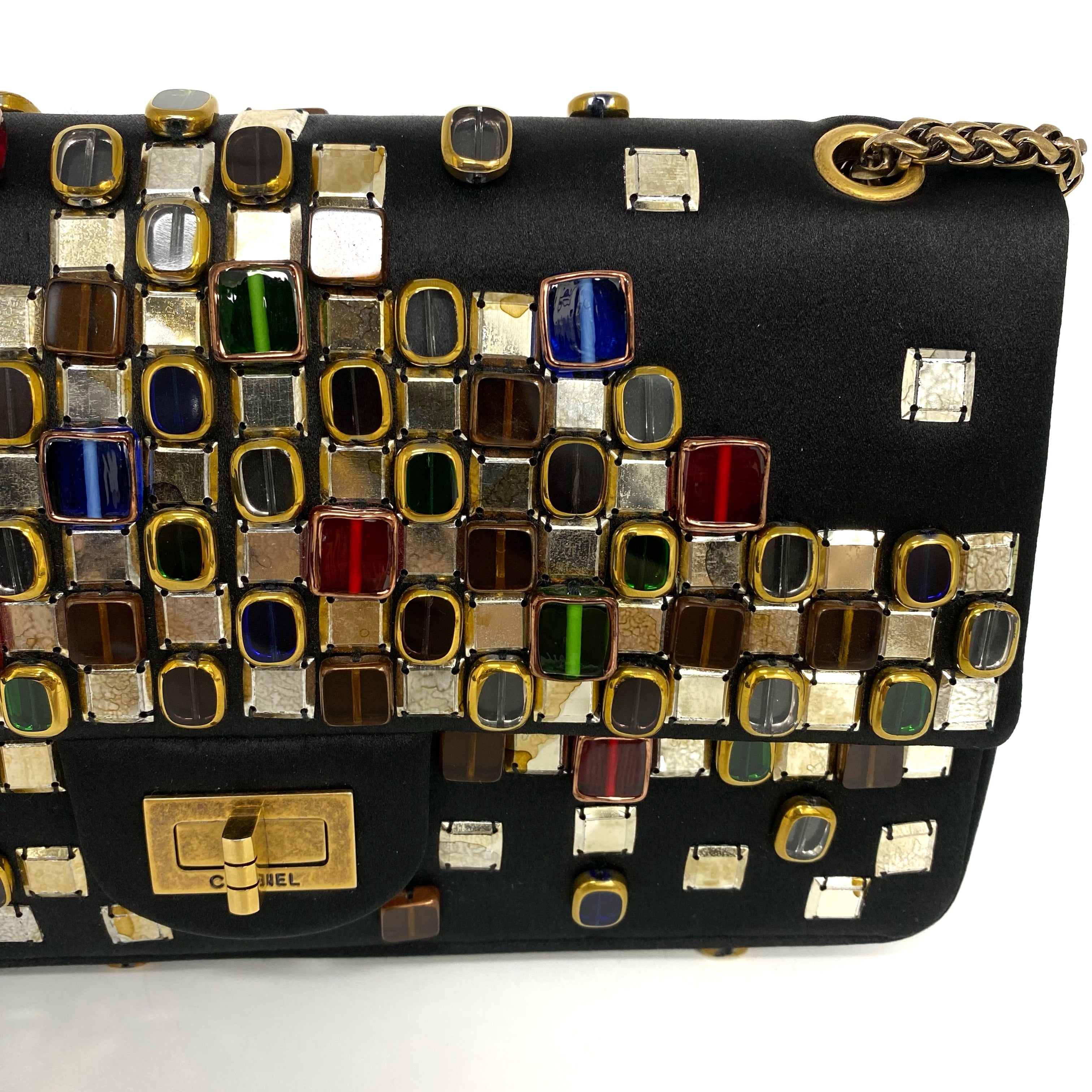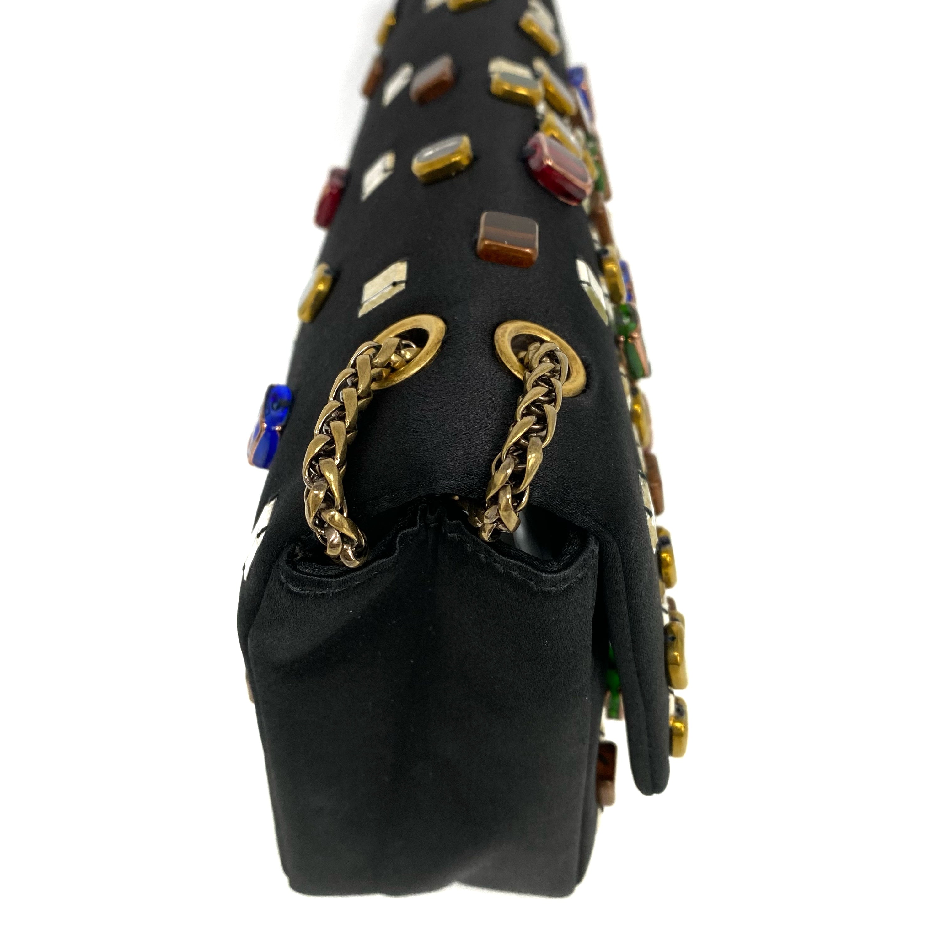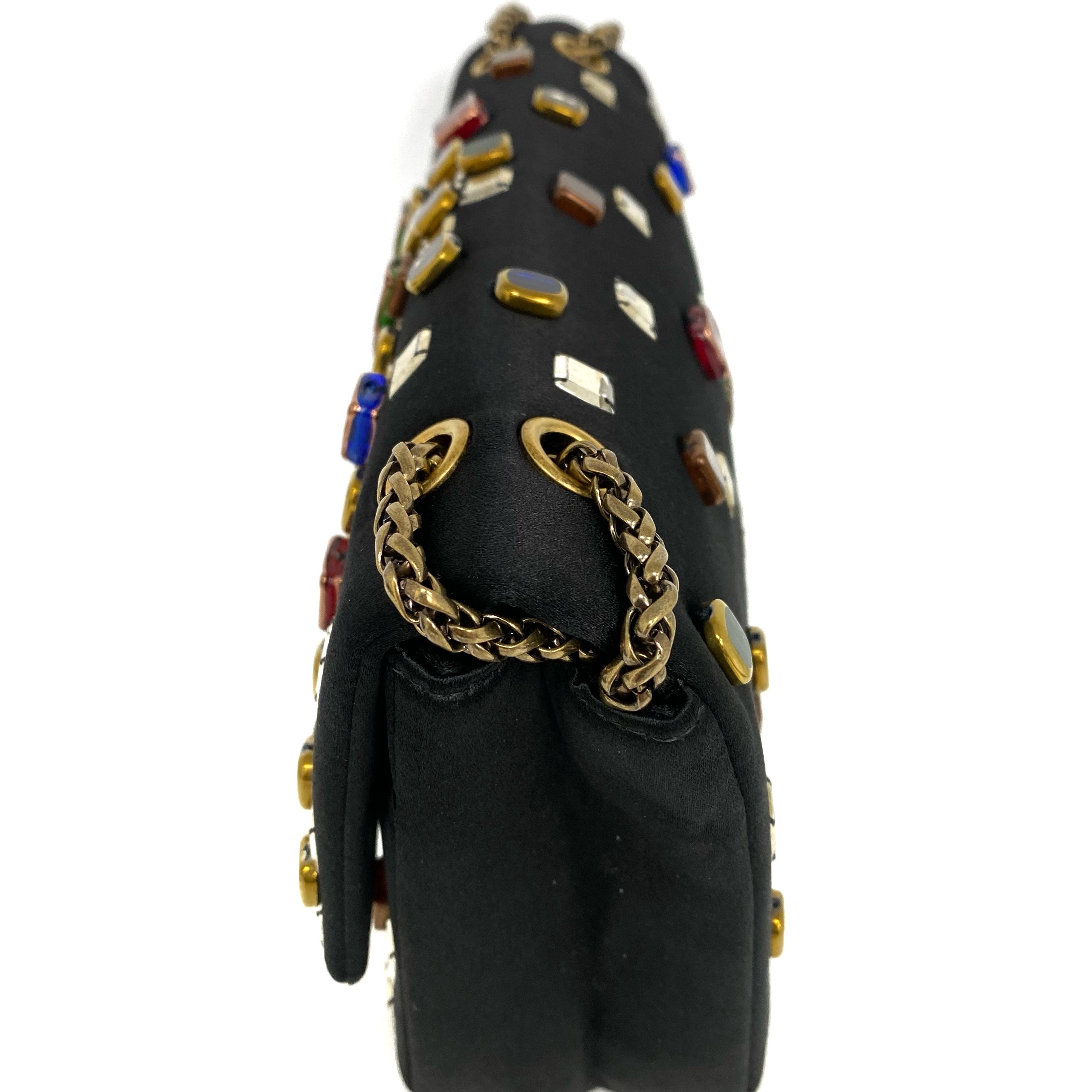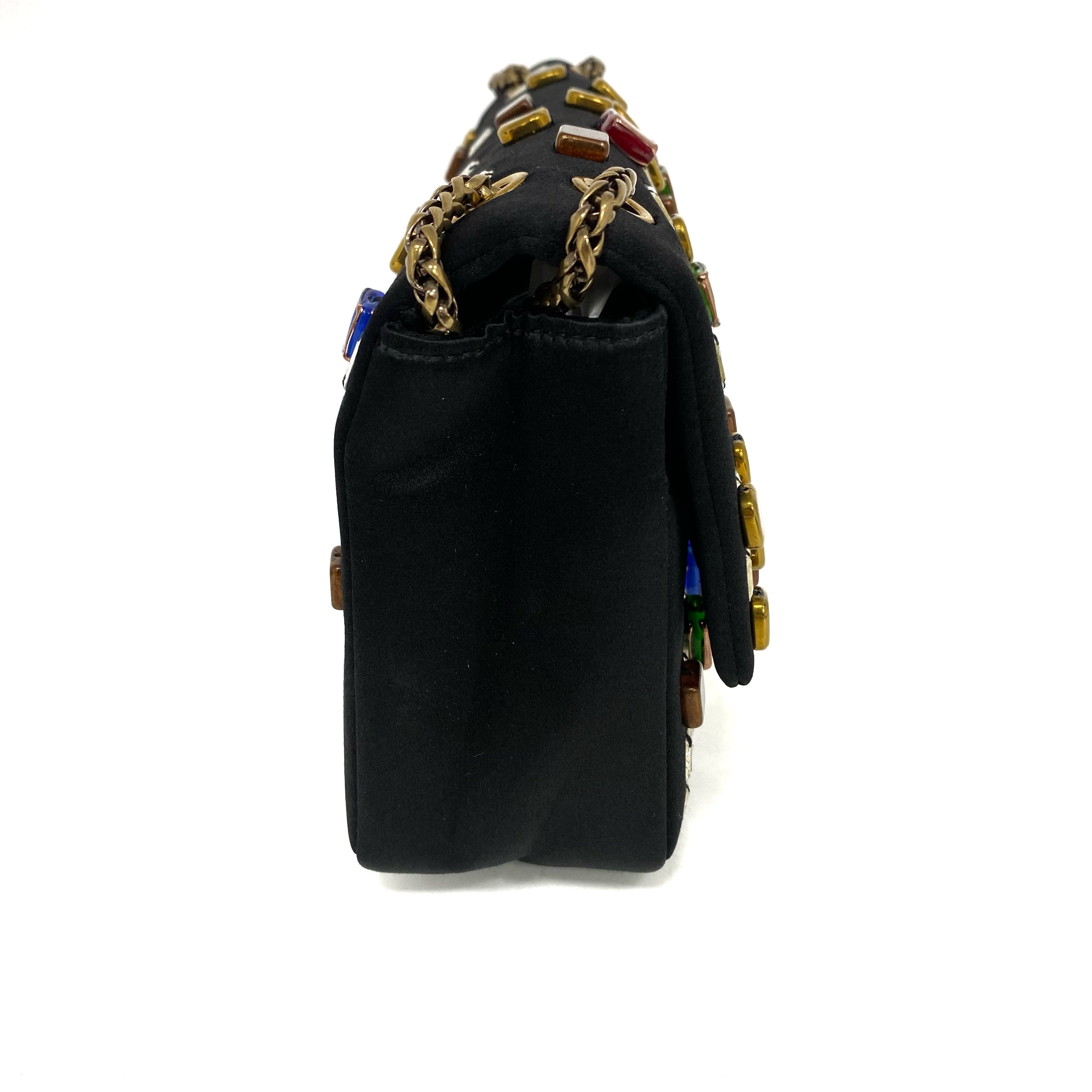 △ Chanel 香奈兒 2.55 Black Satin Beads Gold Tone Metal Chain Shoulder Bag No.14 黑色緞面飾珠金色金屬鏈 條肩背袋 No.14 -257017202